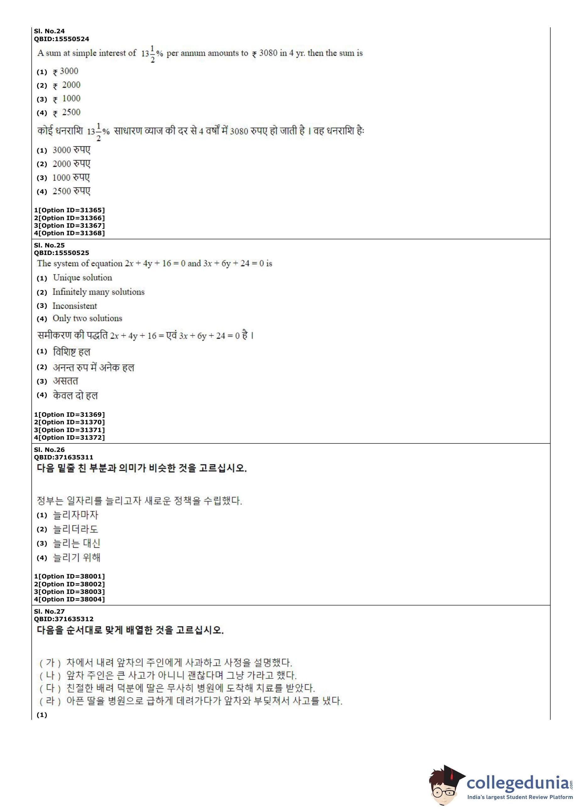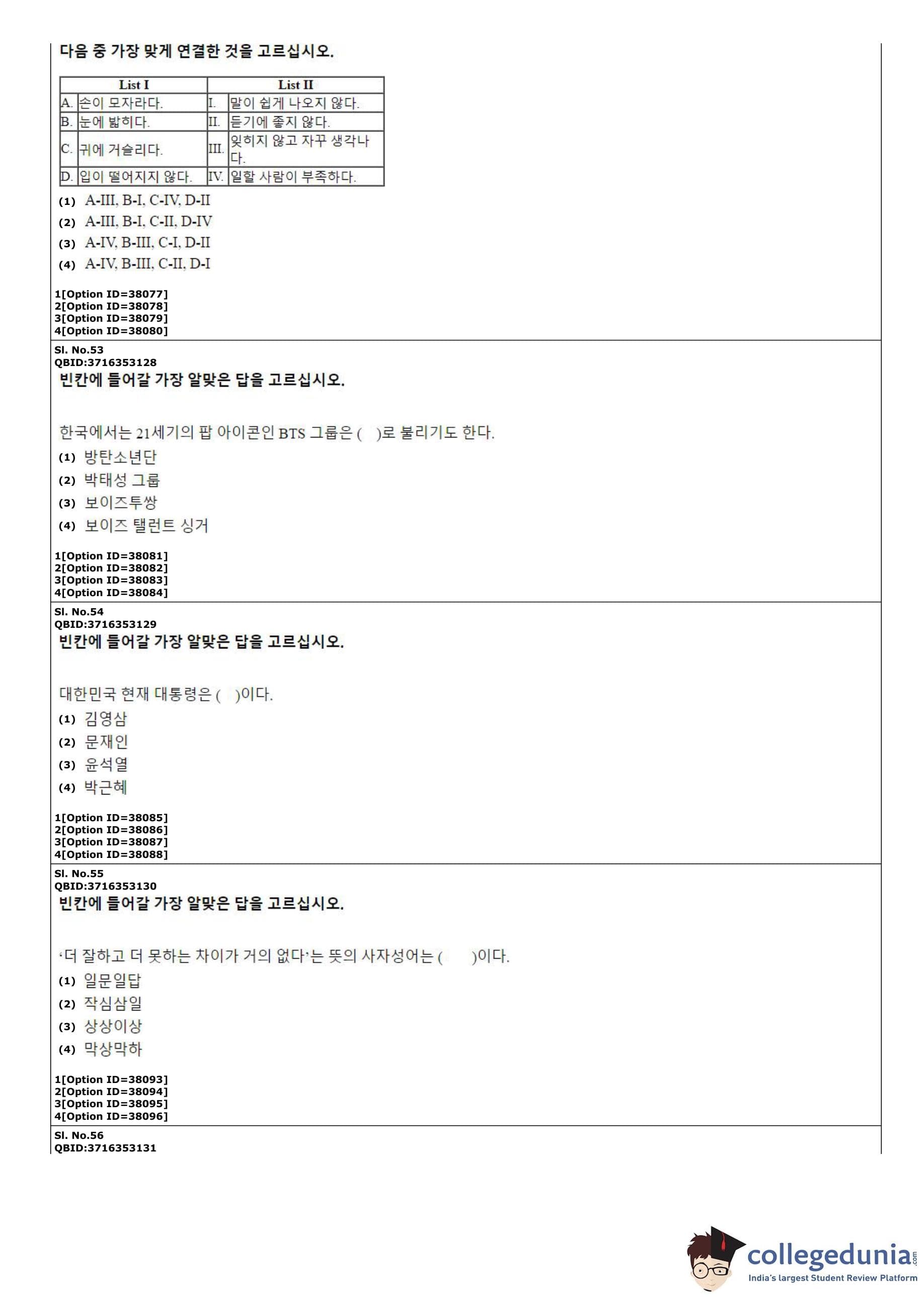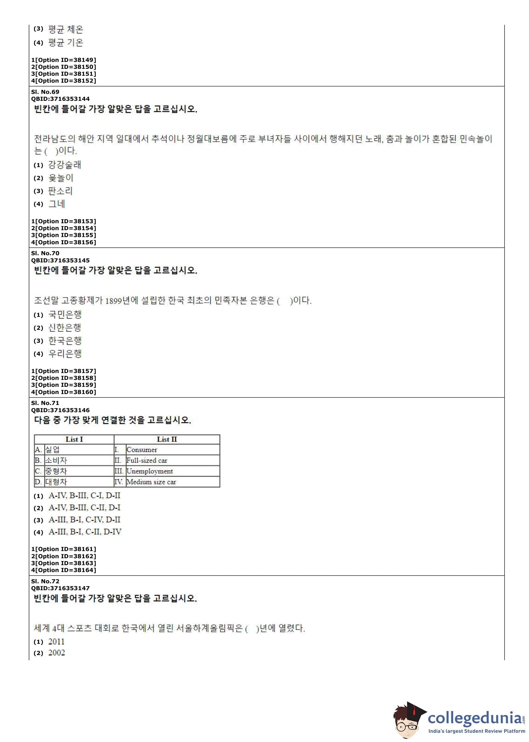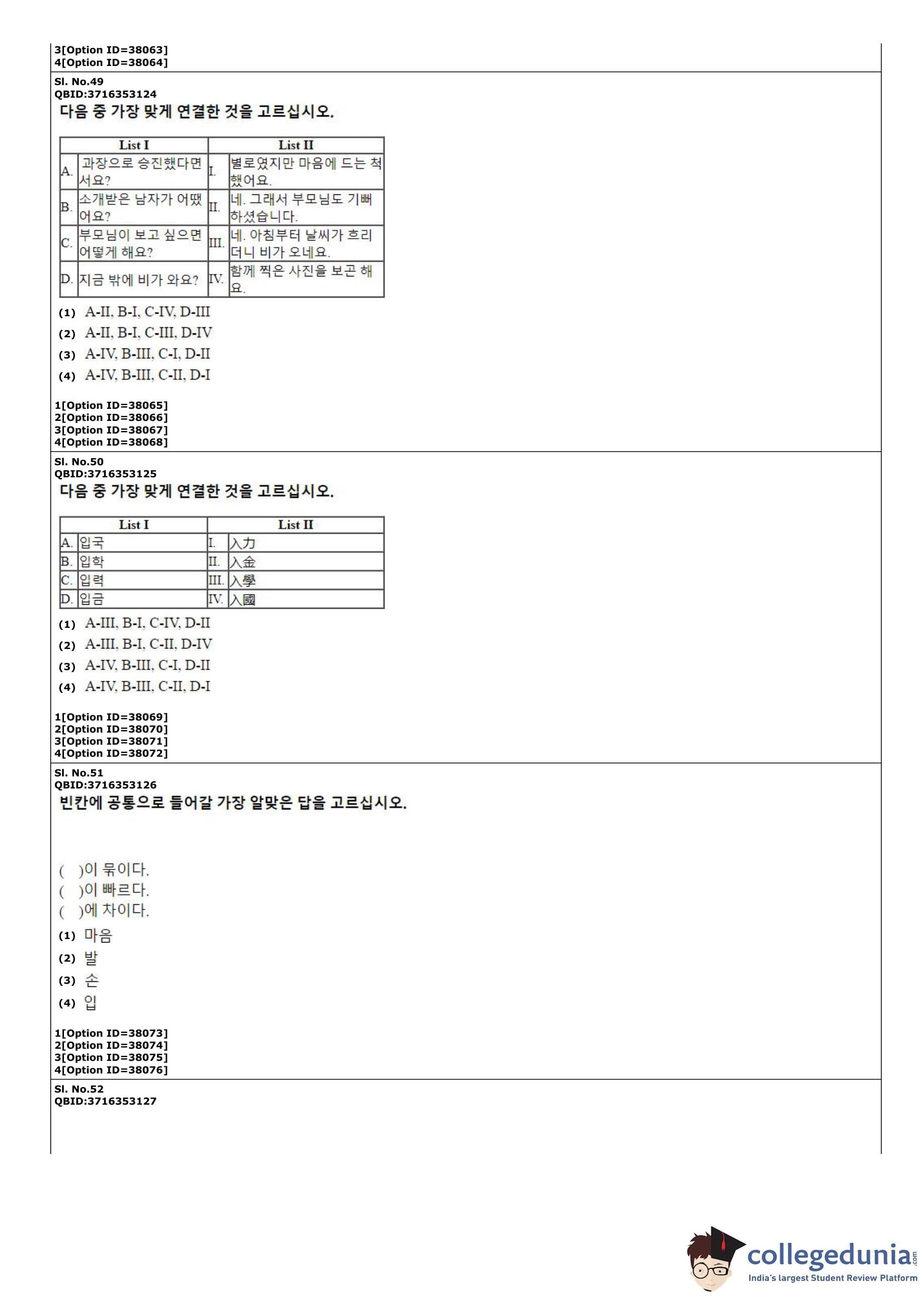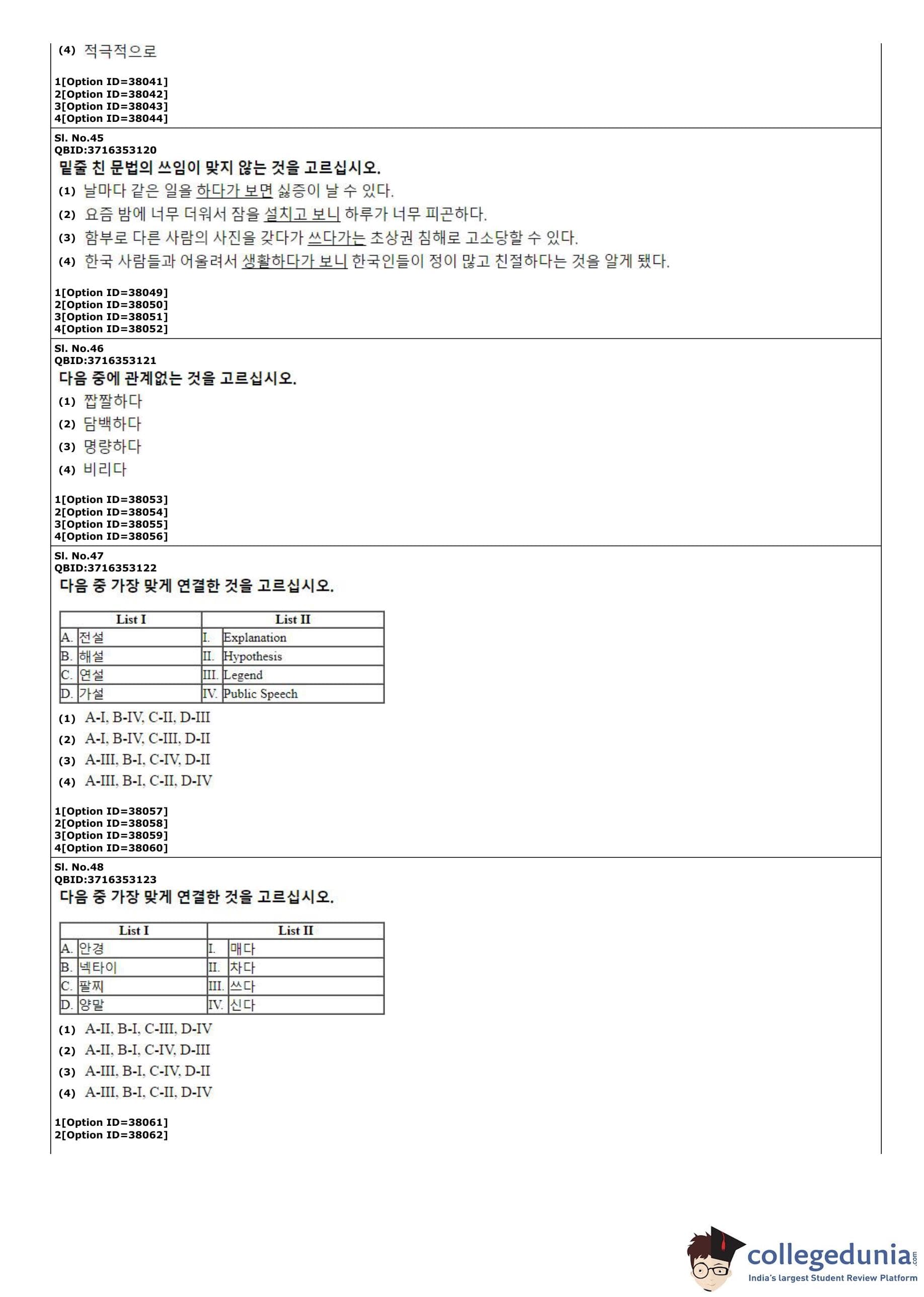 CUET PG 2022 Korean Question Paper with Answer Key PDF