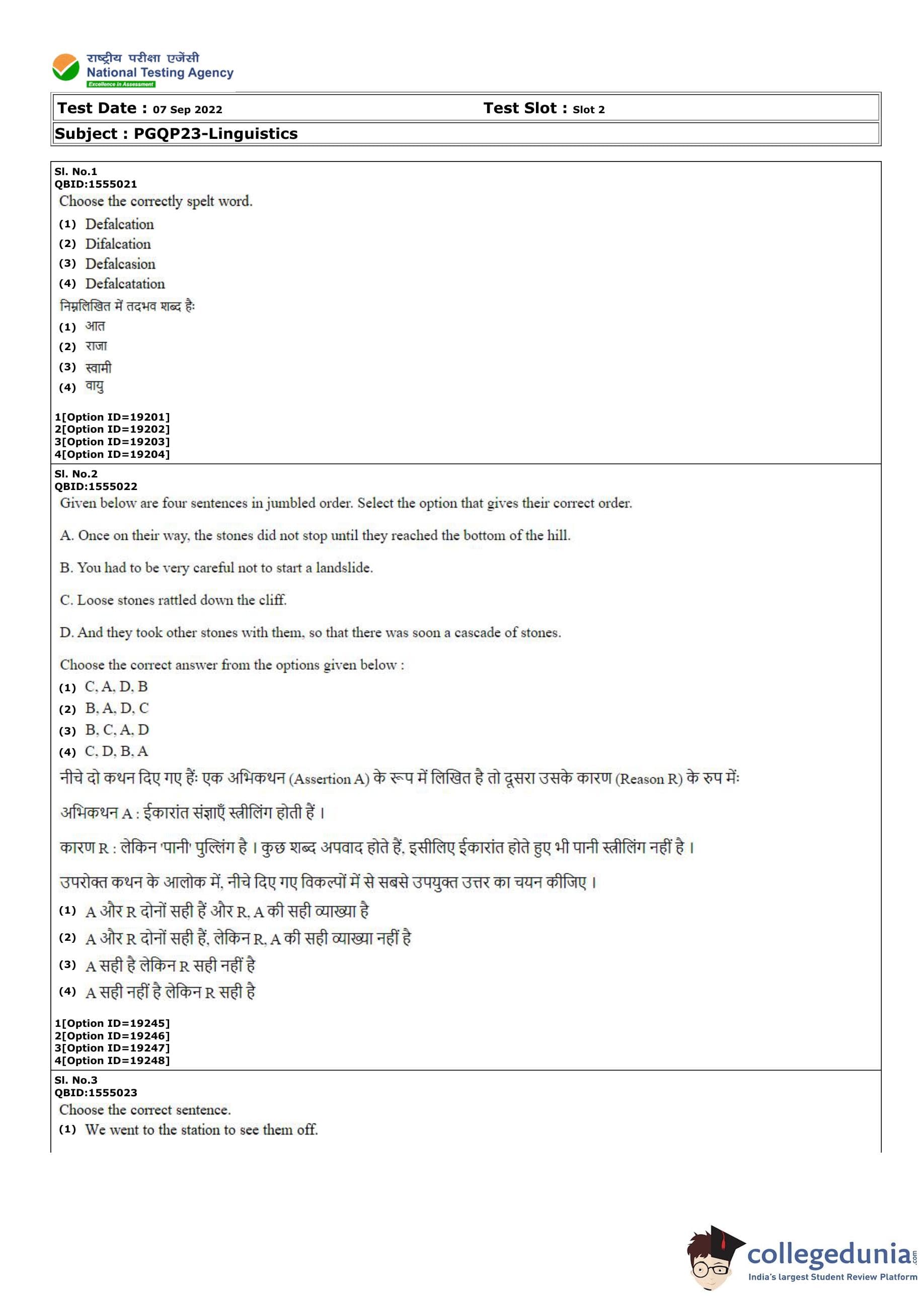 CUET PG Linguistics Question Paper 2022 is available for download. CUET PG 2022 Linguistics paper was conducted by National Testing Agency (NTA) on September 7, 2022 in Shift 2. The question paper comprised a total of 100 questions.
