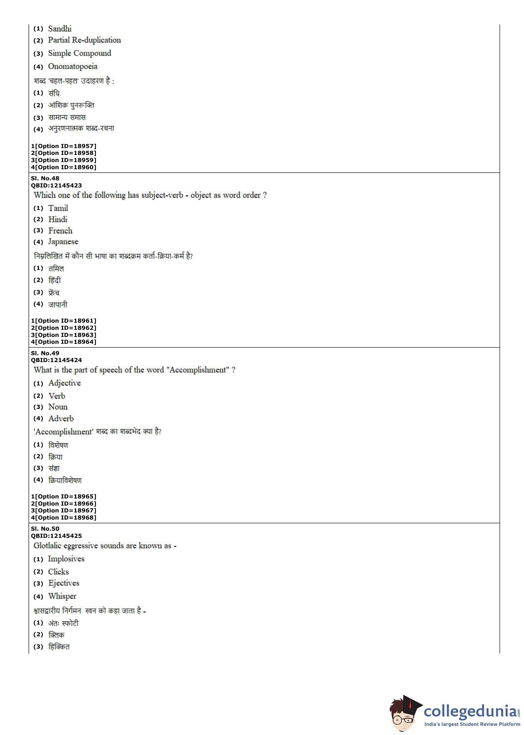 | CUET PG Linguistics Question Paper PDF | CUET PG Linguistics Answer Key PDF |
