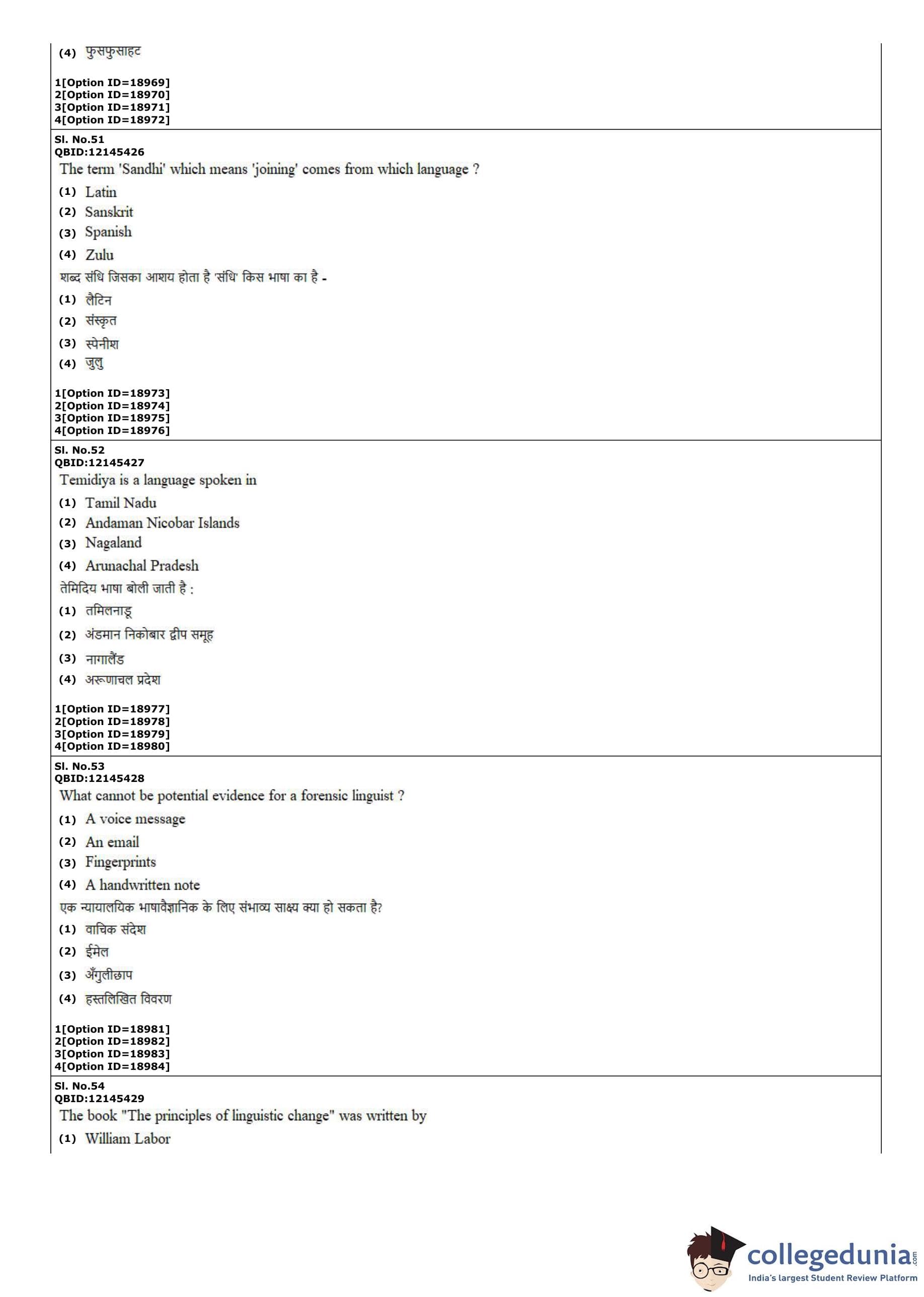 CUET PG 2022 Linguistics Question Paper with Answer Key PDF