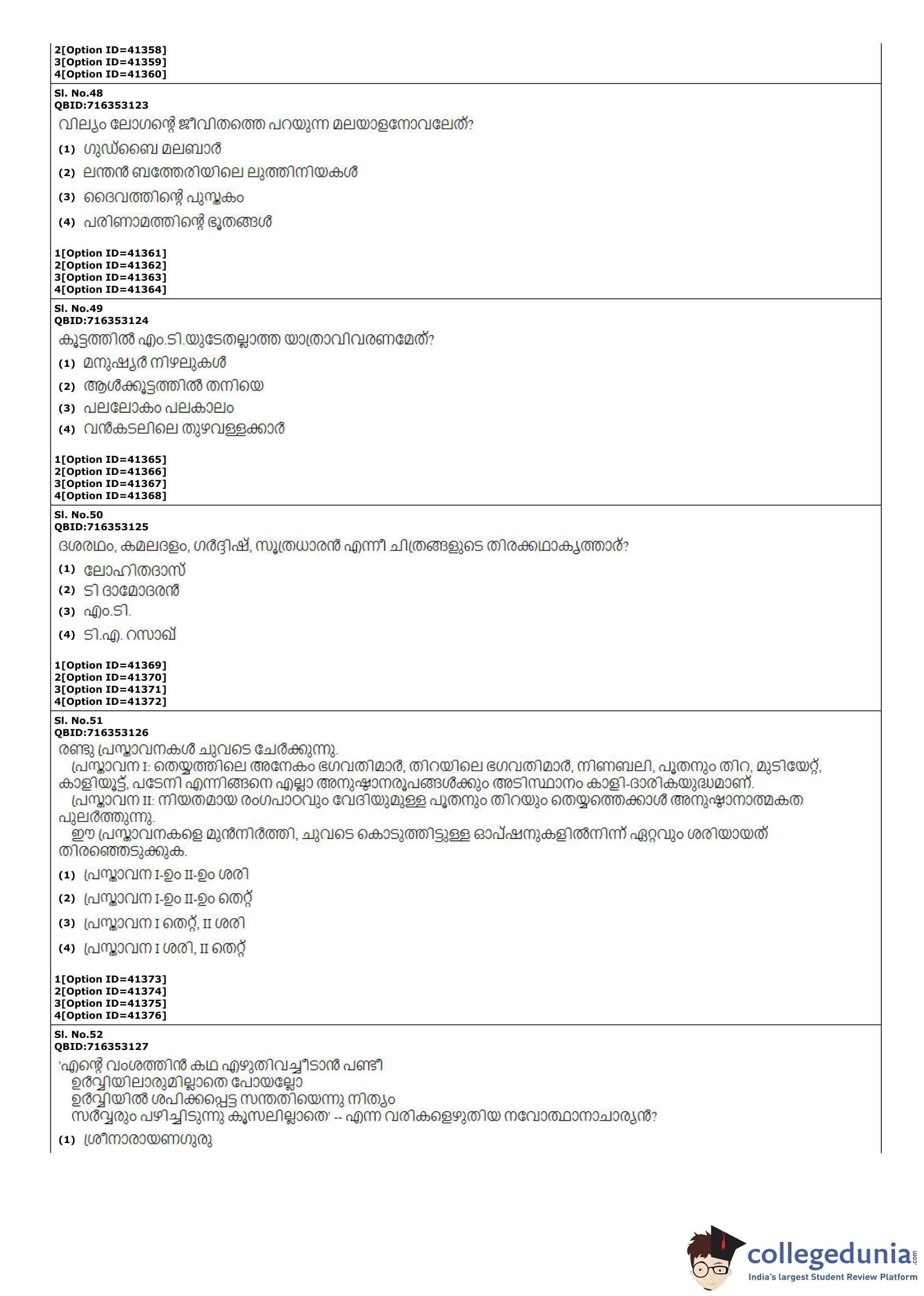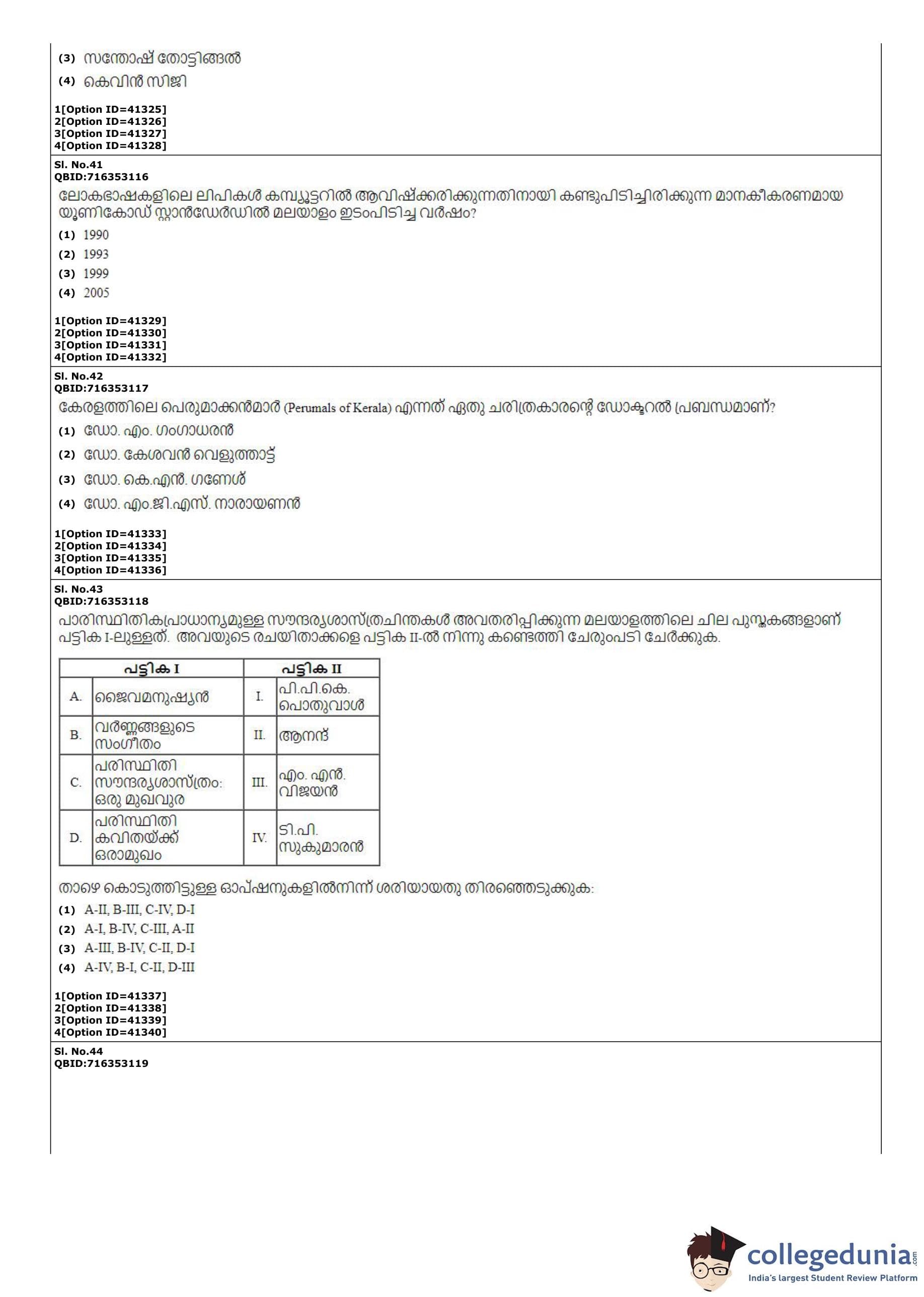 CUET PG 2022 Malayalam Question Paper with Answer Key PDF