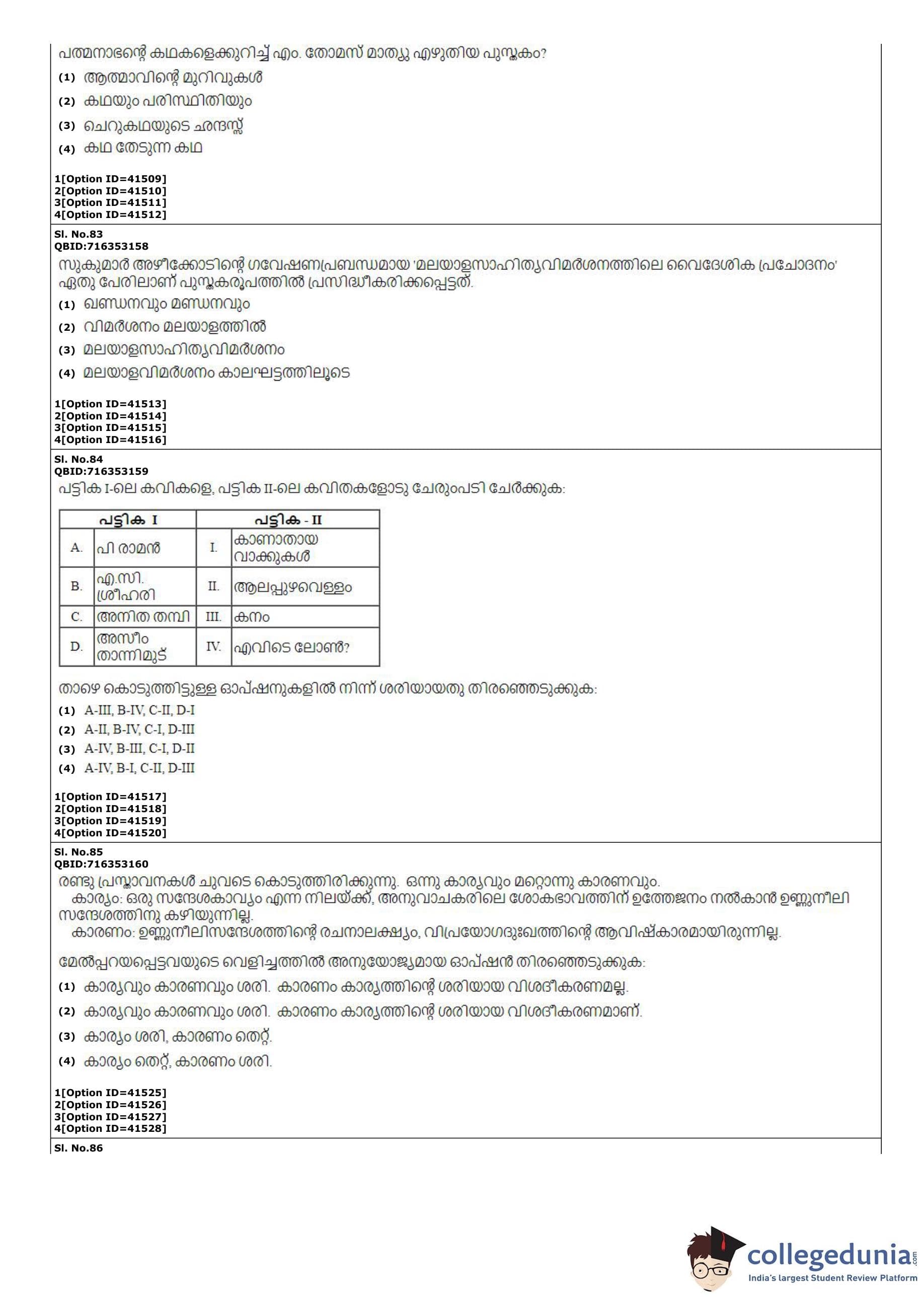 | CUET PG Malayalam Question Paper PDF | CUET PG Malayalam Answer Key PDF |