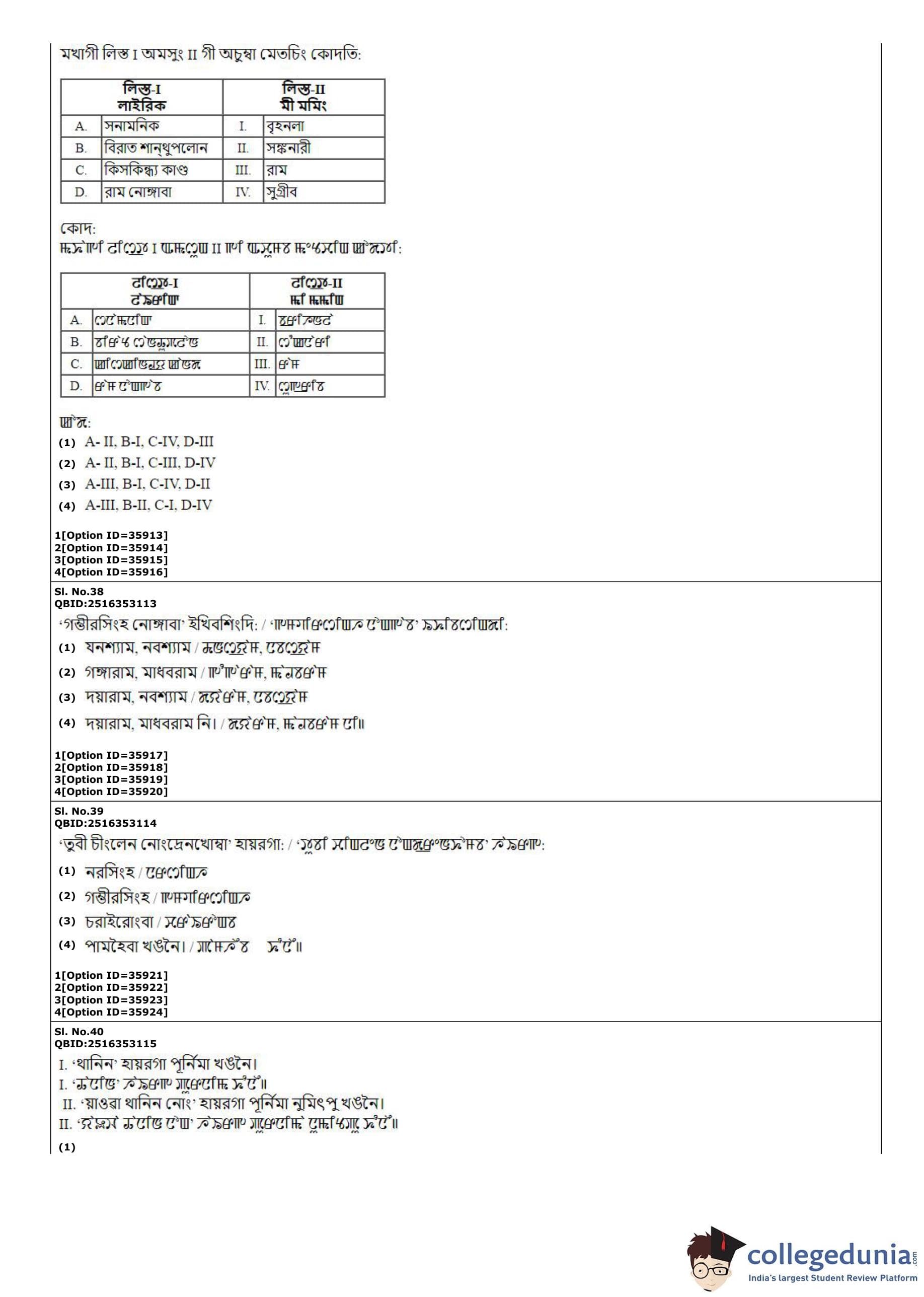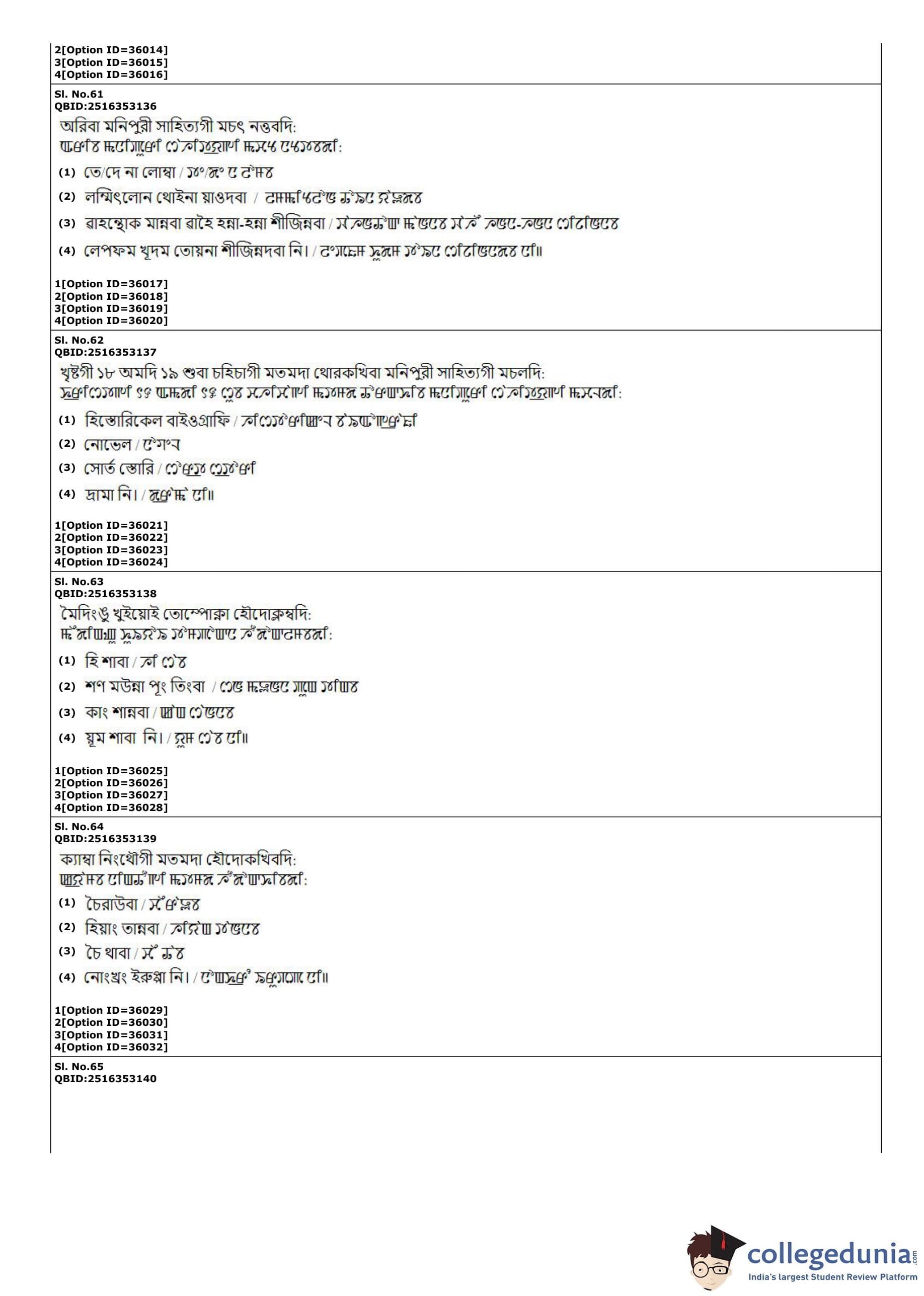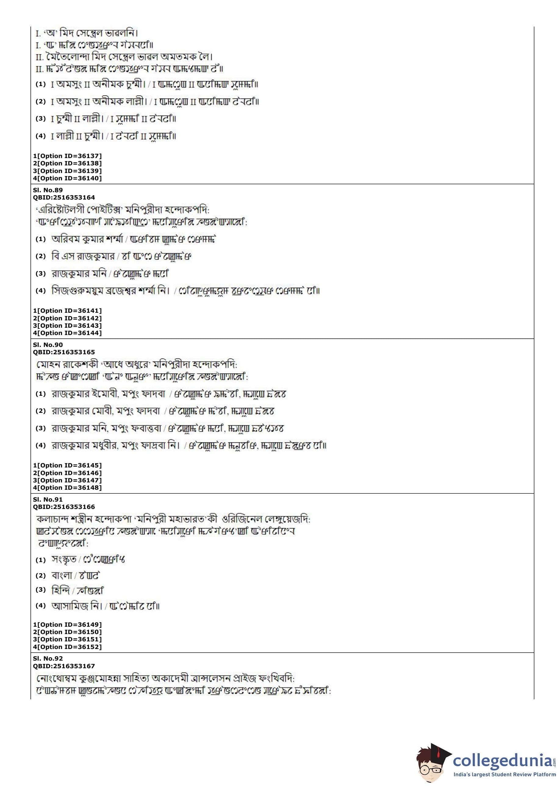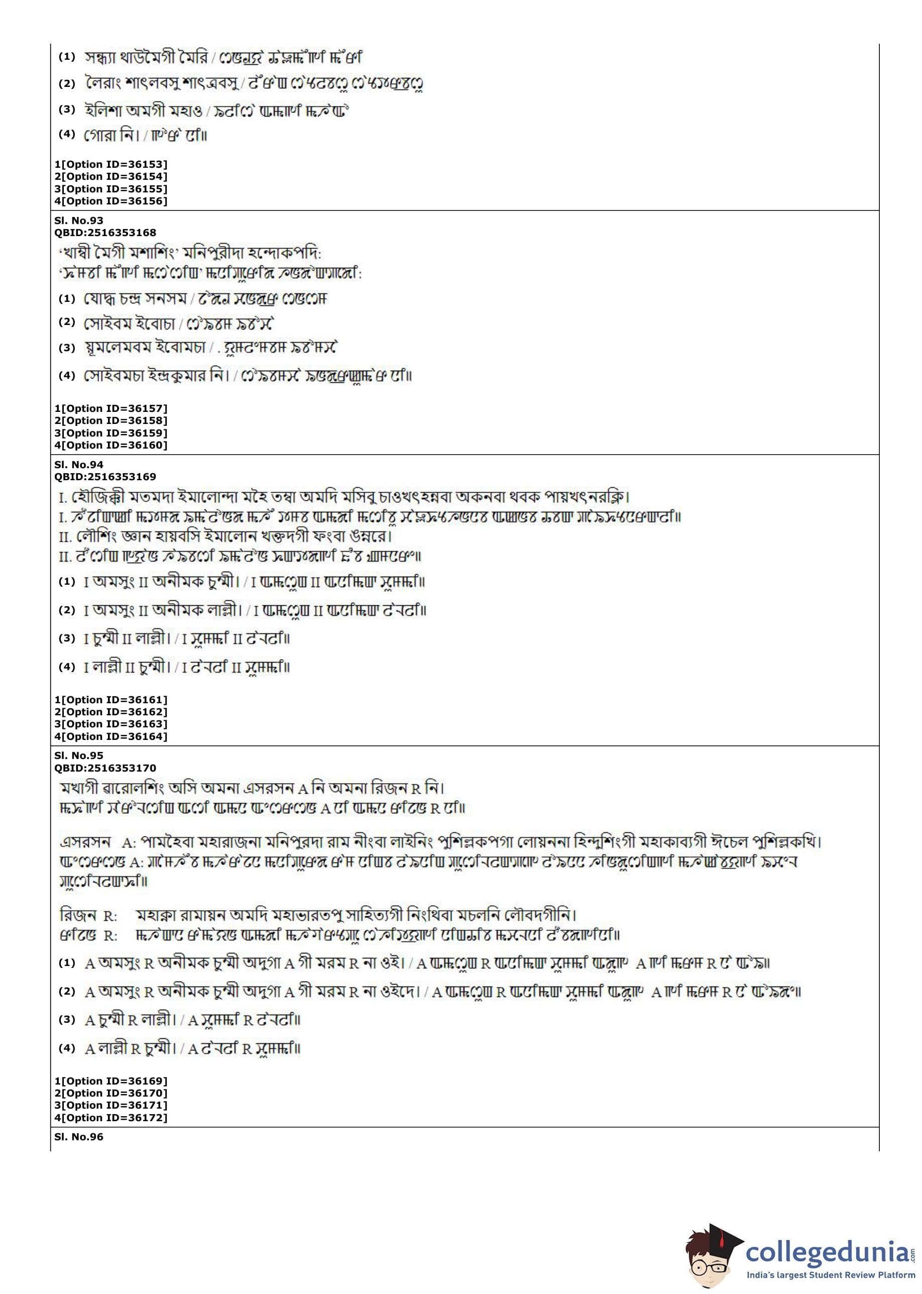 CUET PG 2022 Manipuri Question Paper with Answer Key PDF