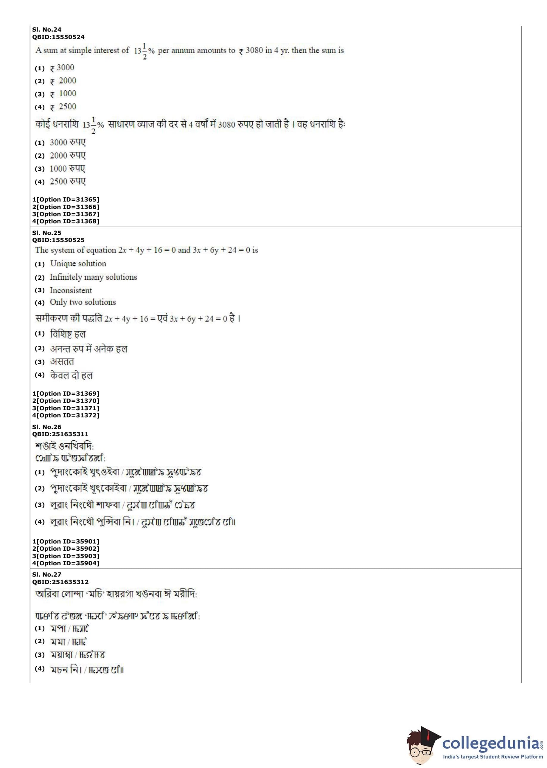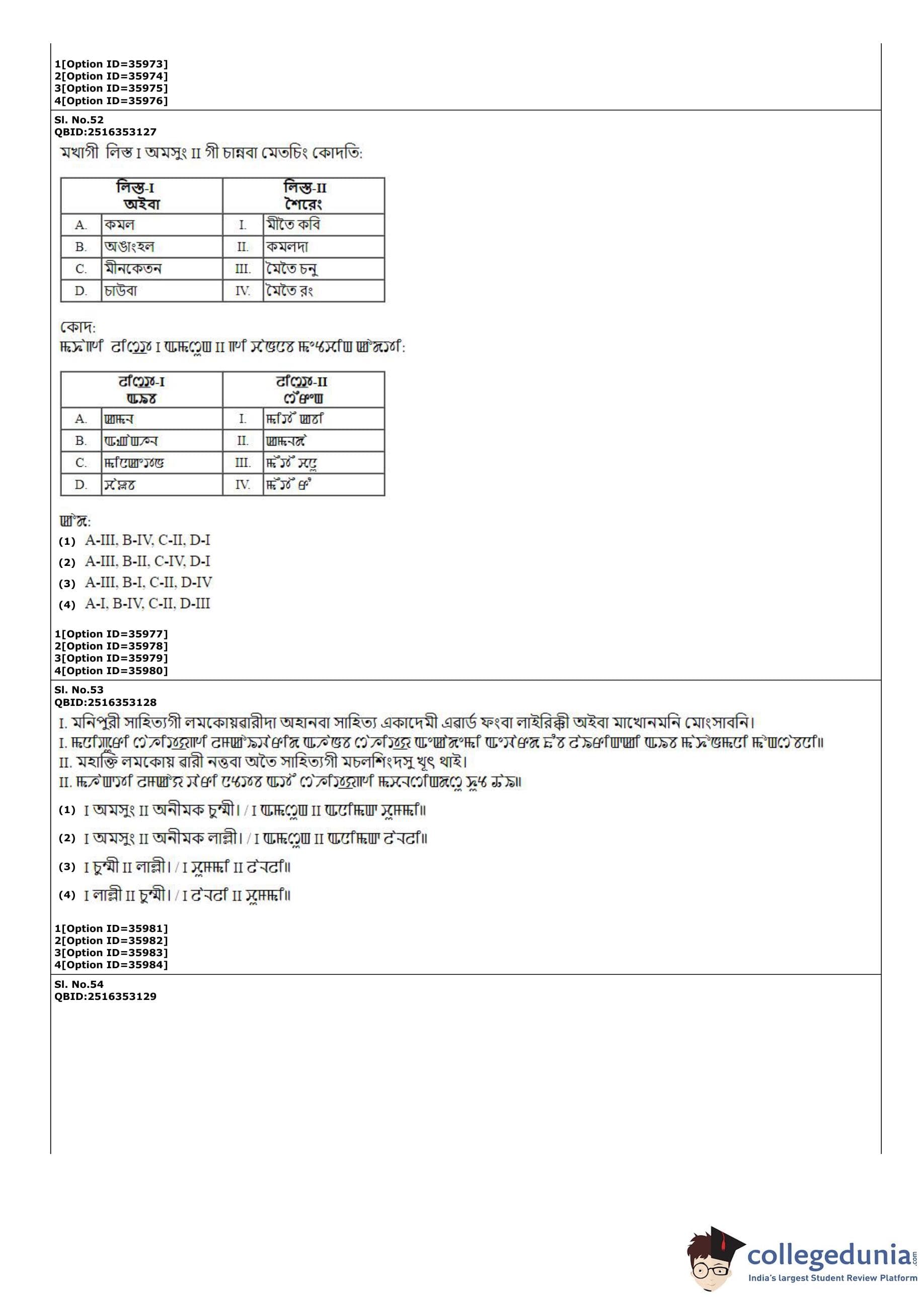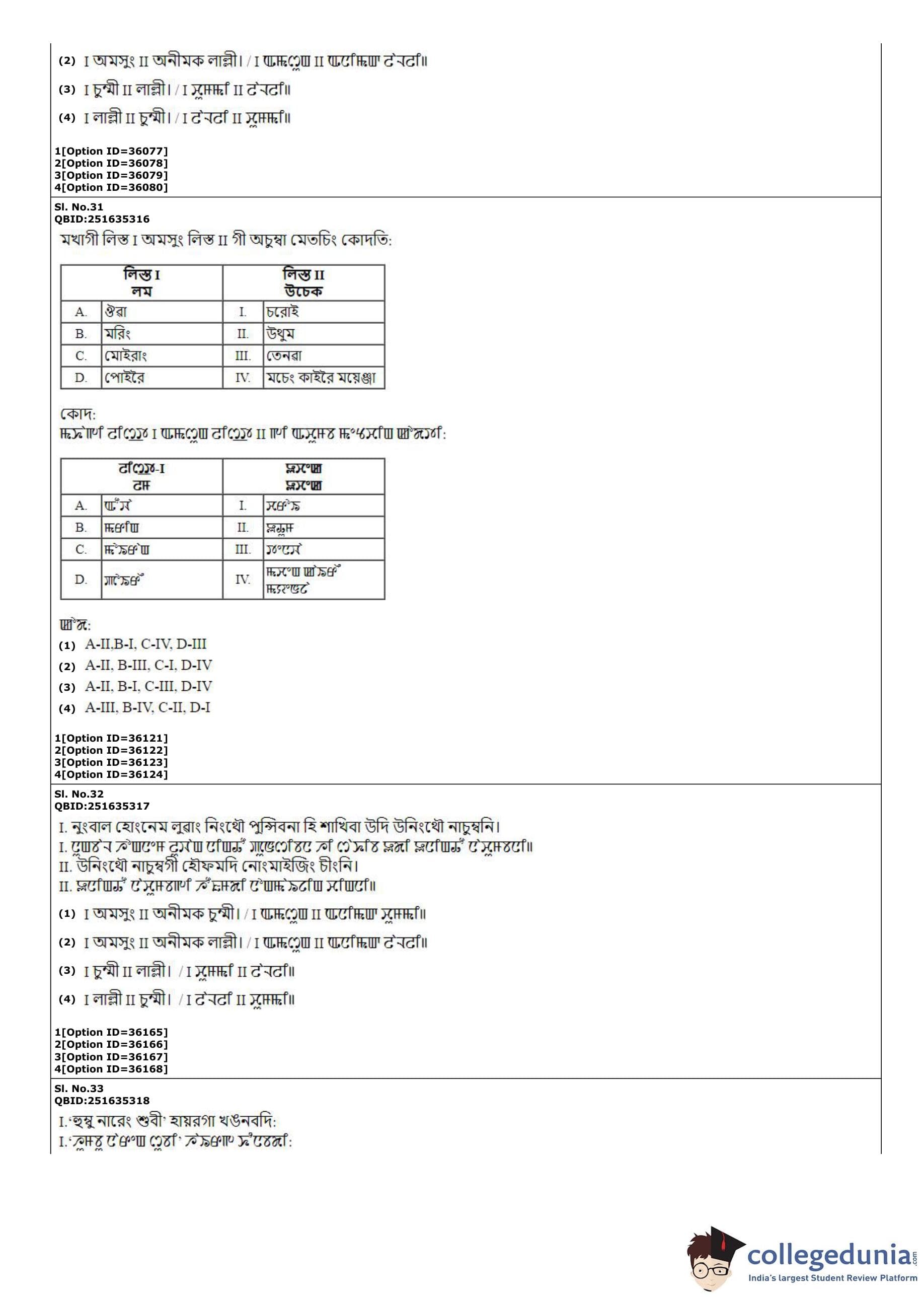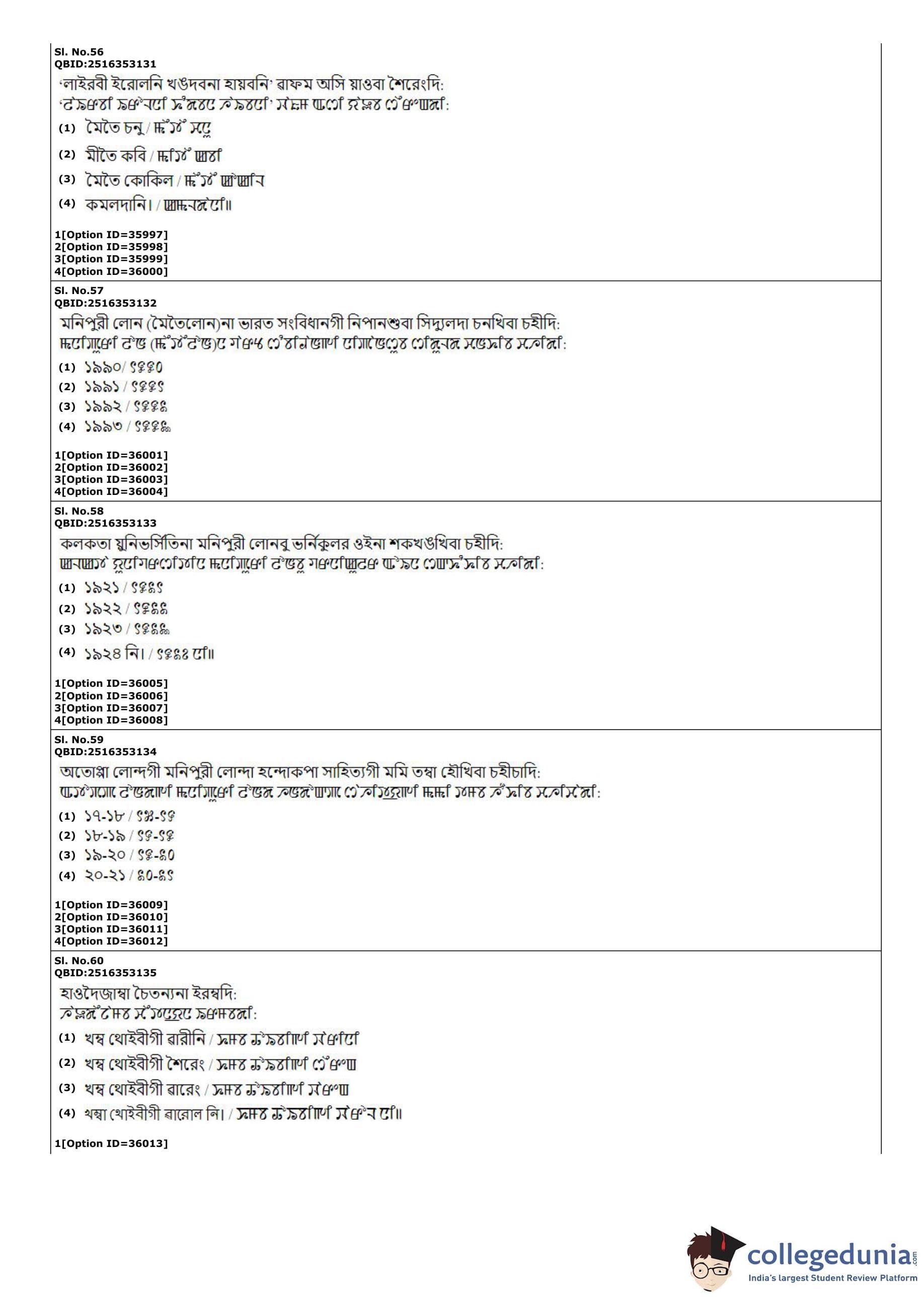 CUET PG 2022 Manipuri Question Paper with Answer Key PDF