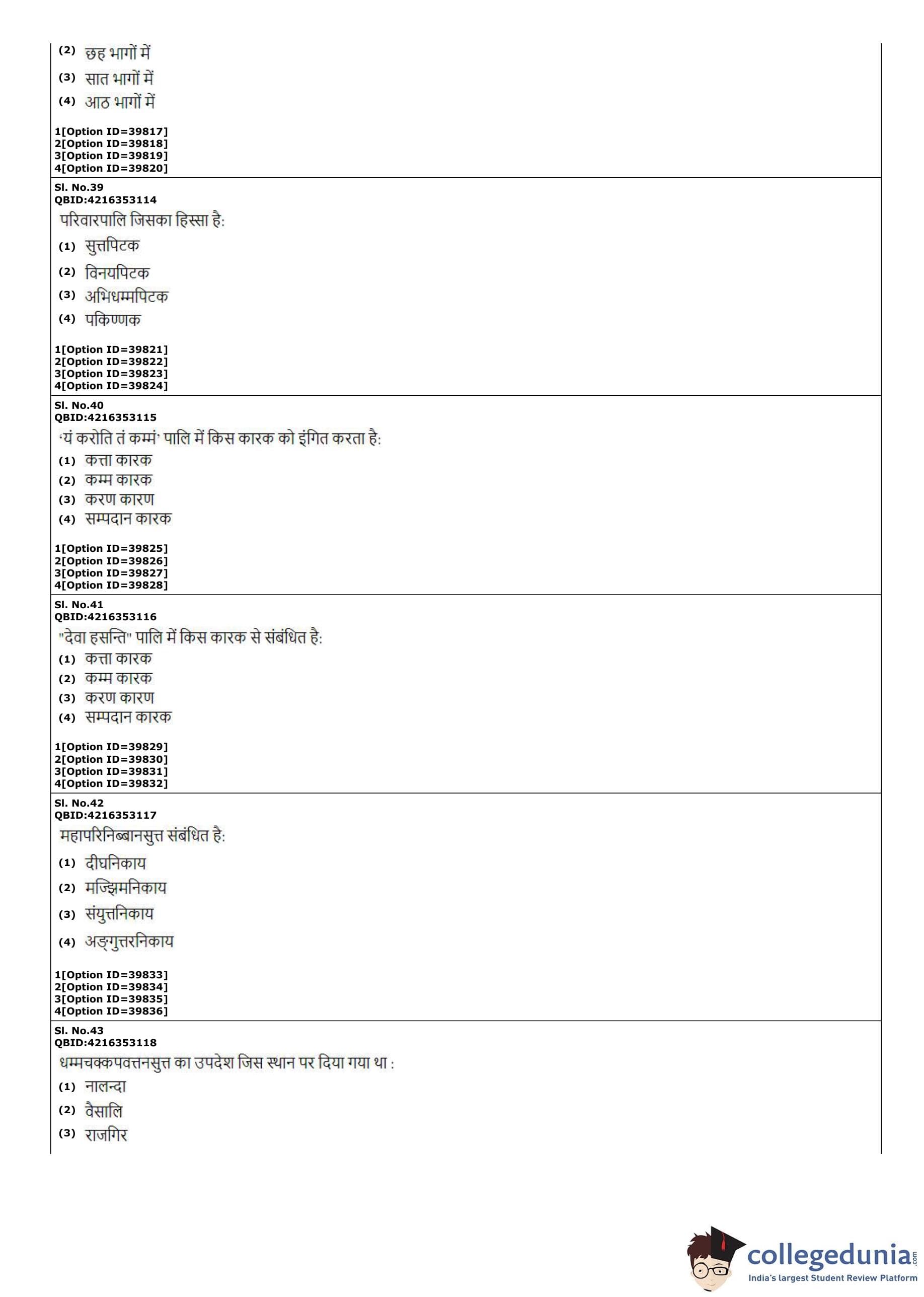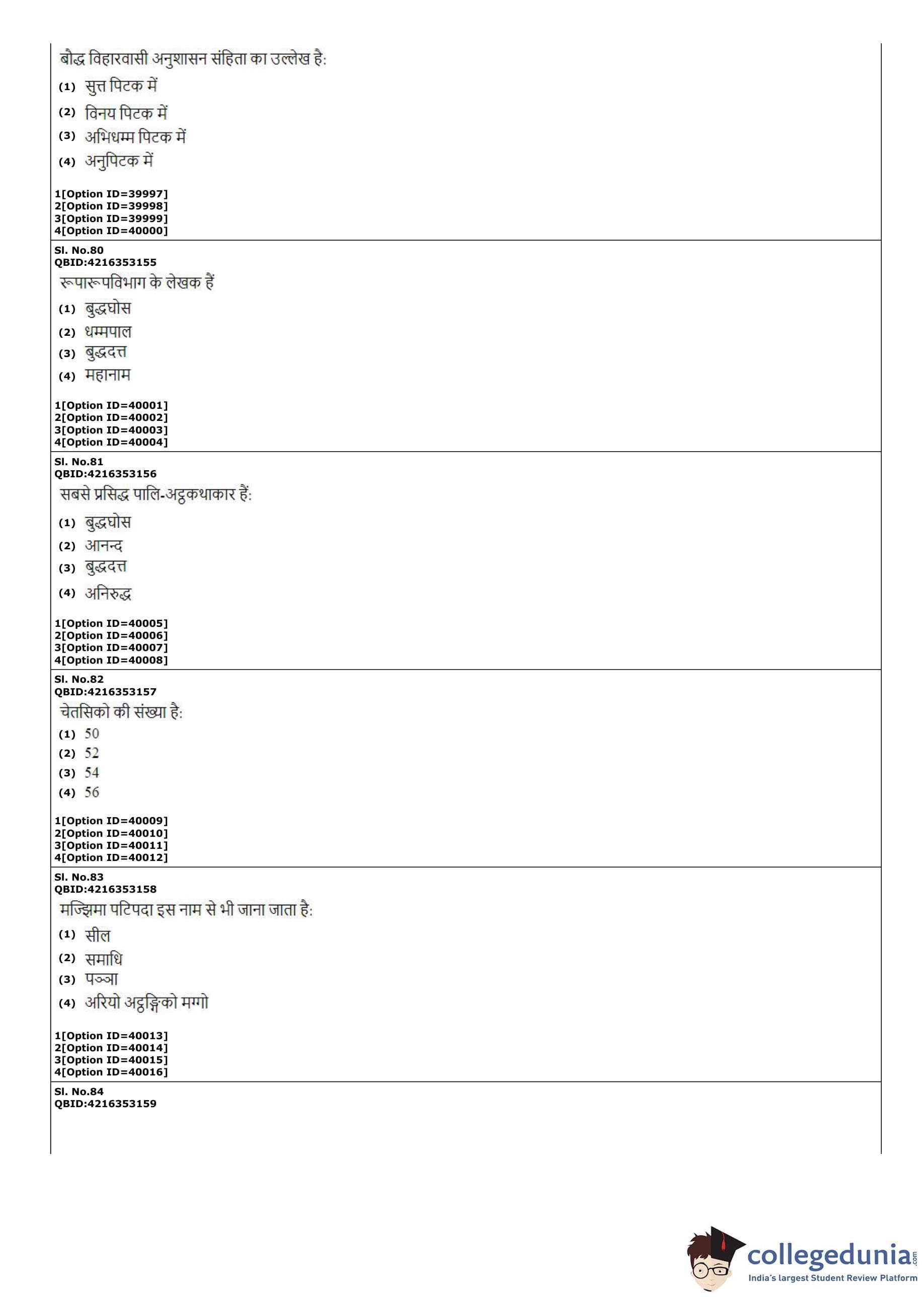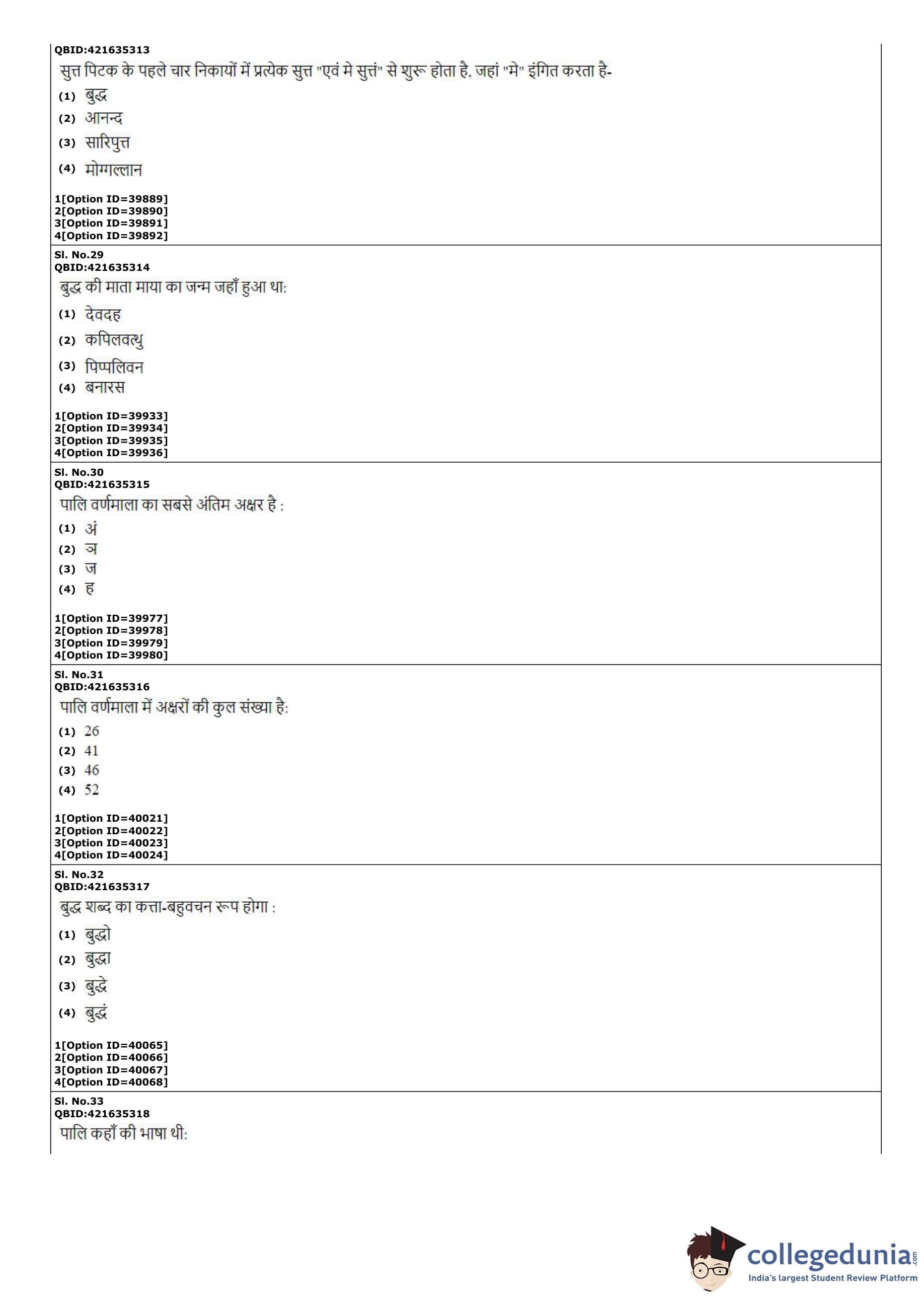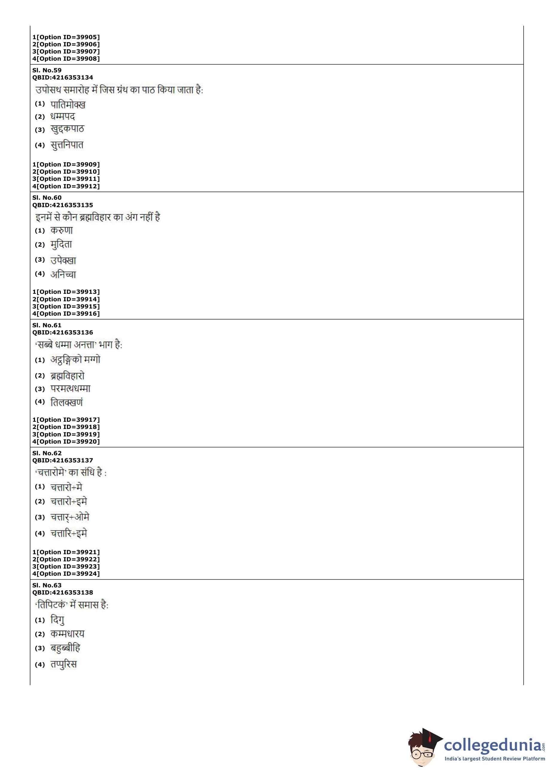 CUET PG 2022 Pali Question Paper with Answer Key PDF