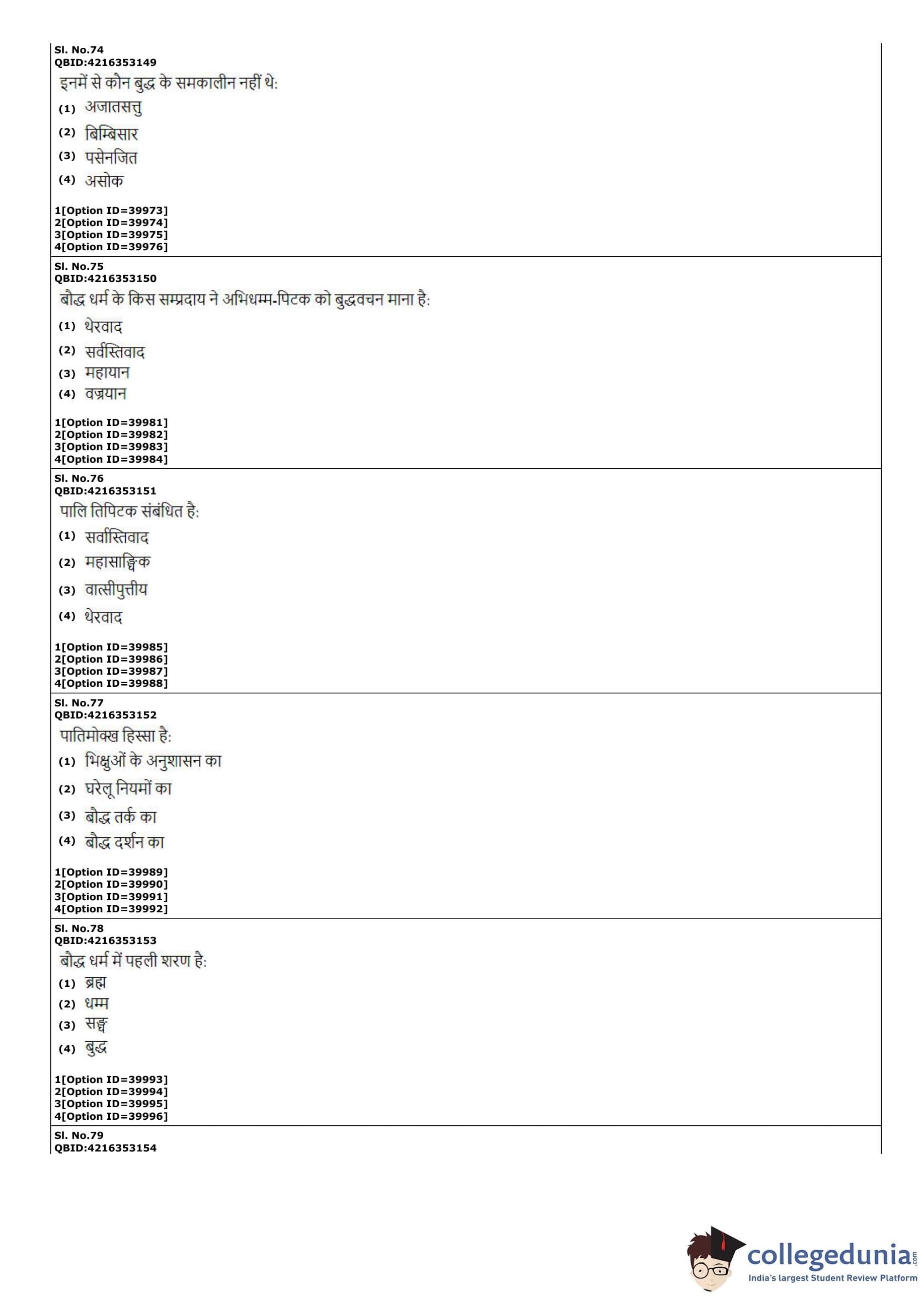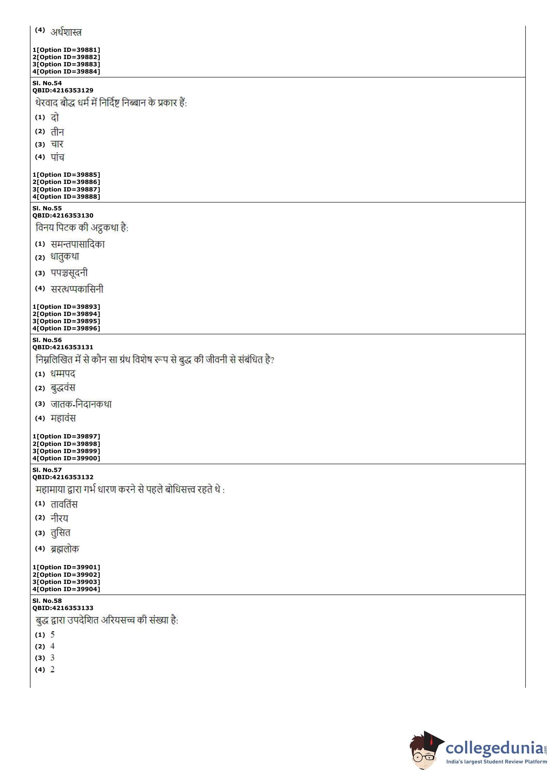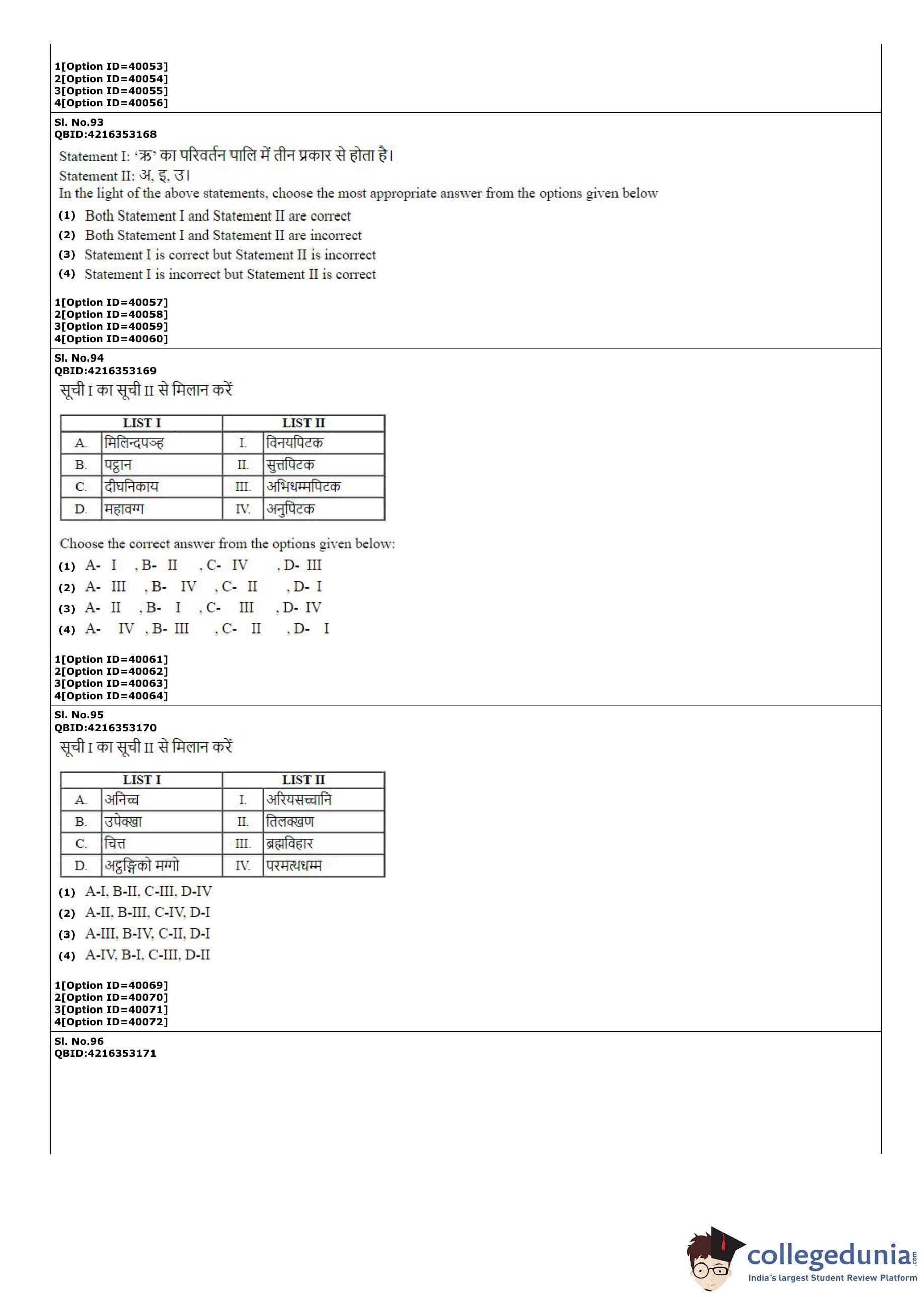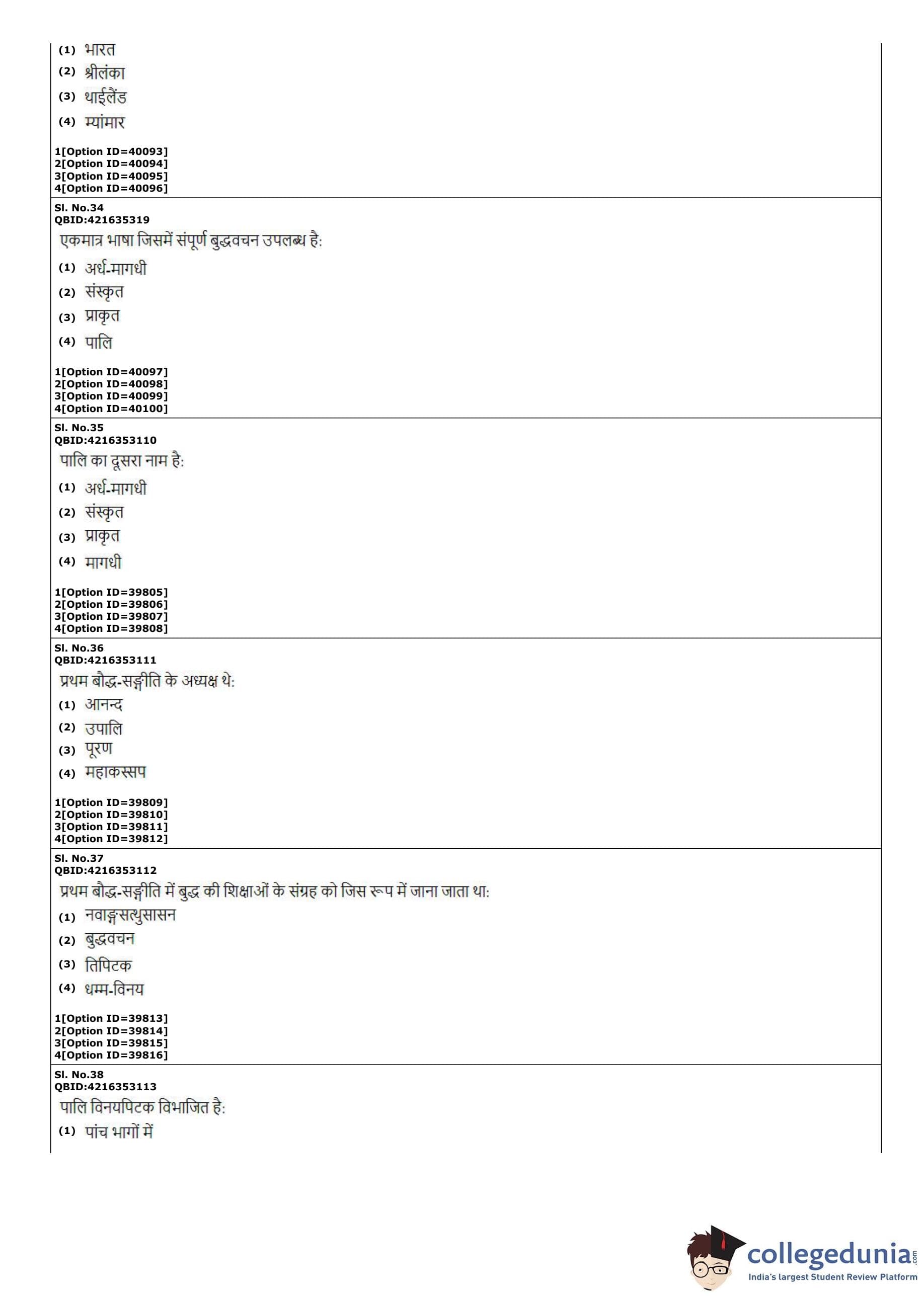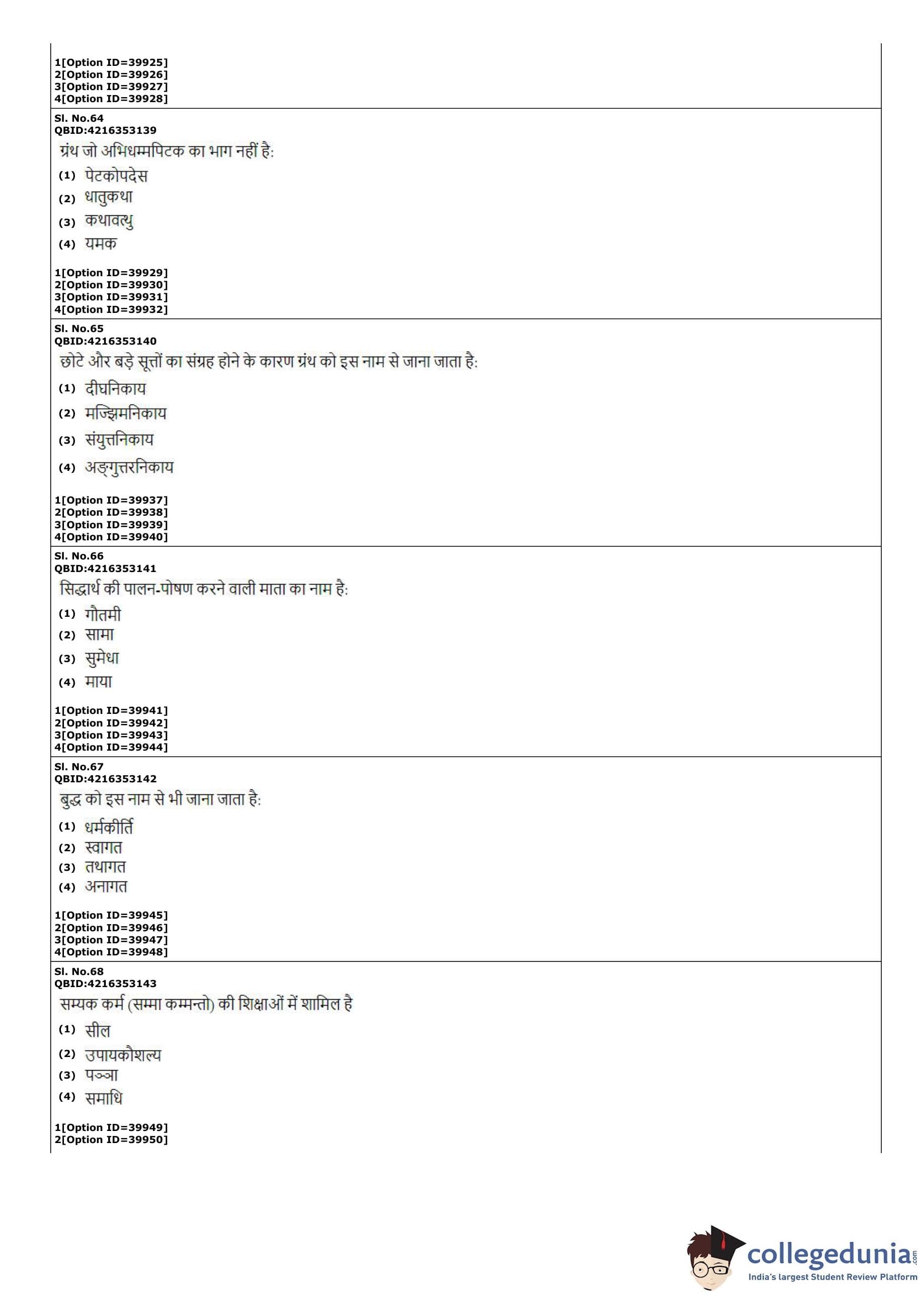 CUET PG 2022 Pali Question Paper with Answer Key PDF