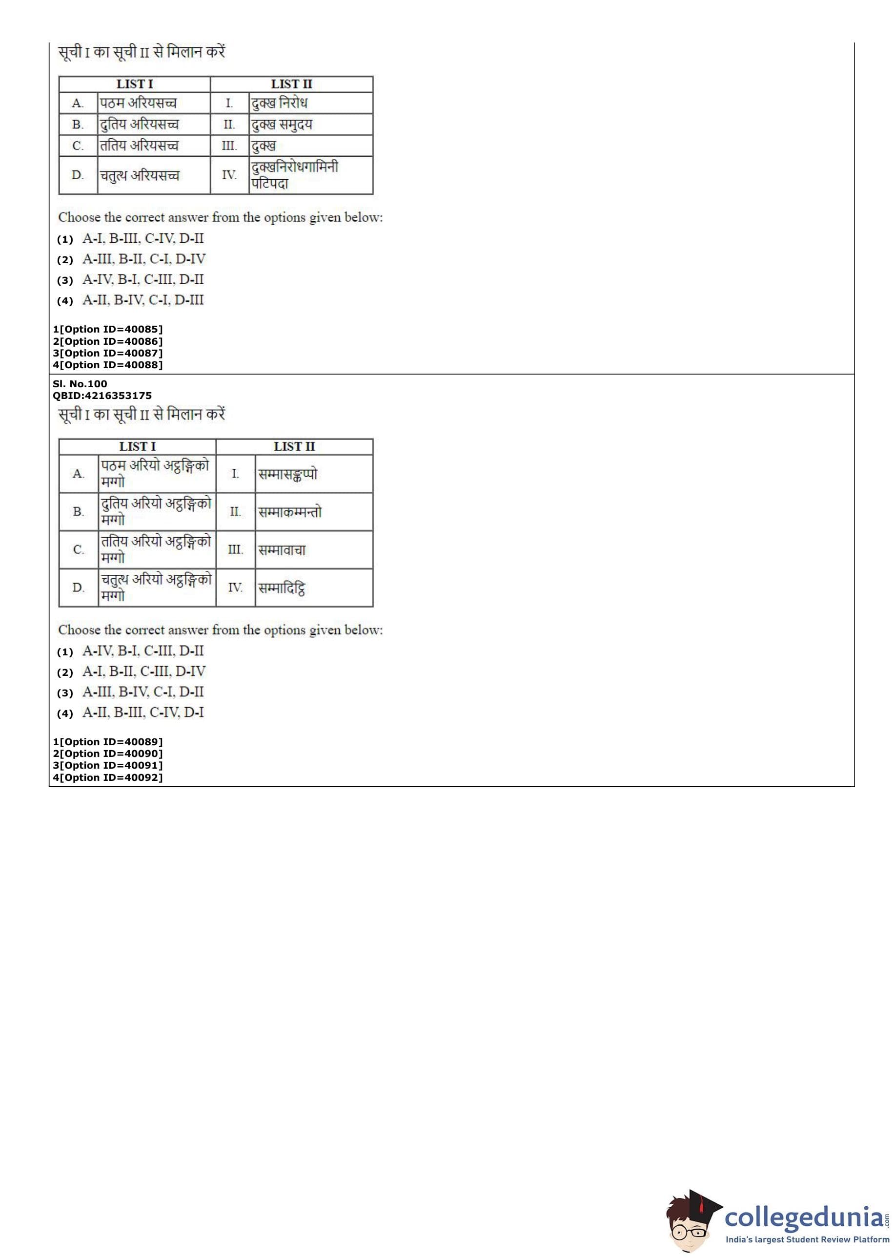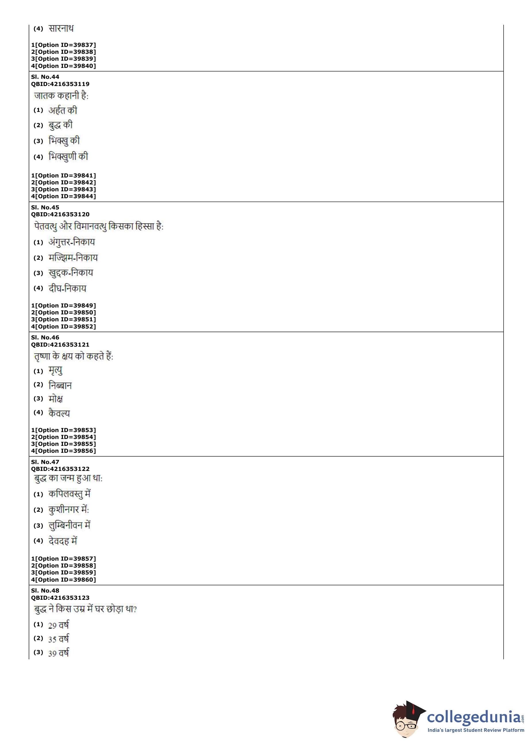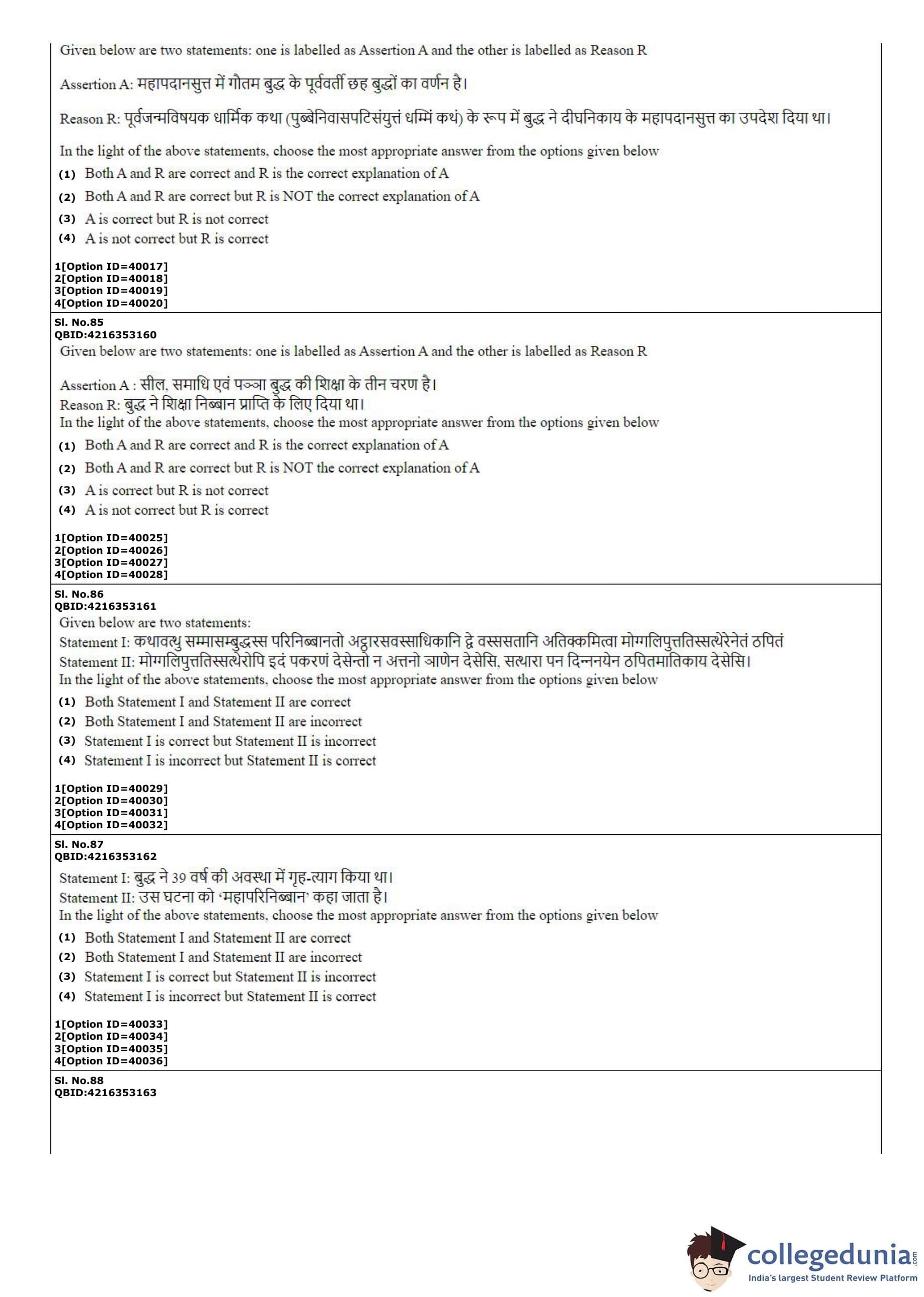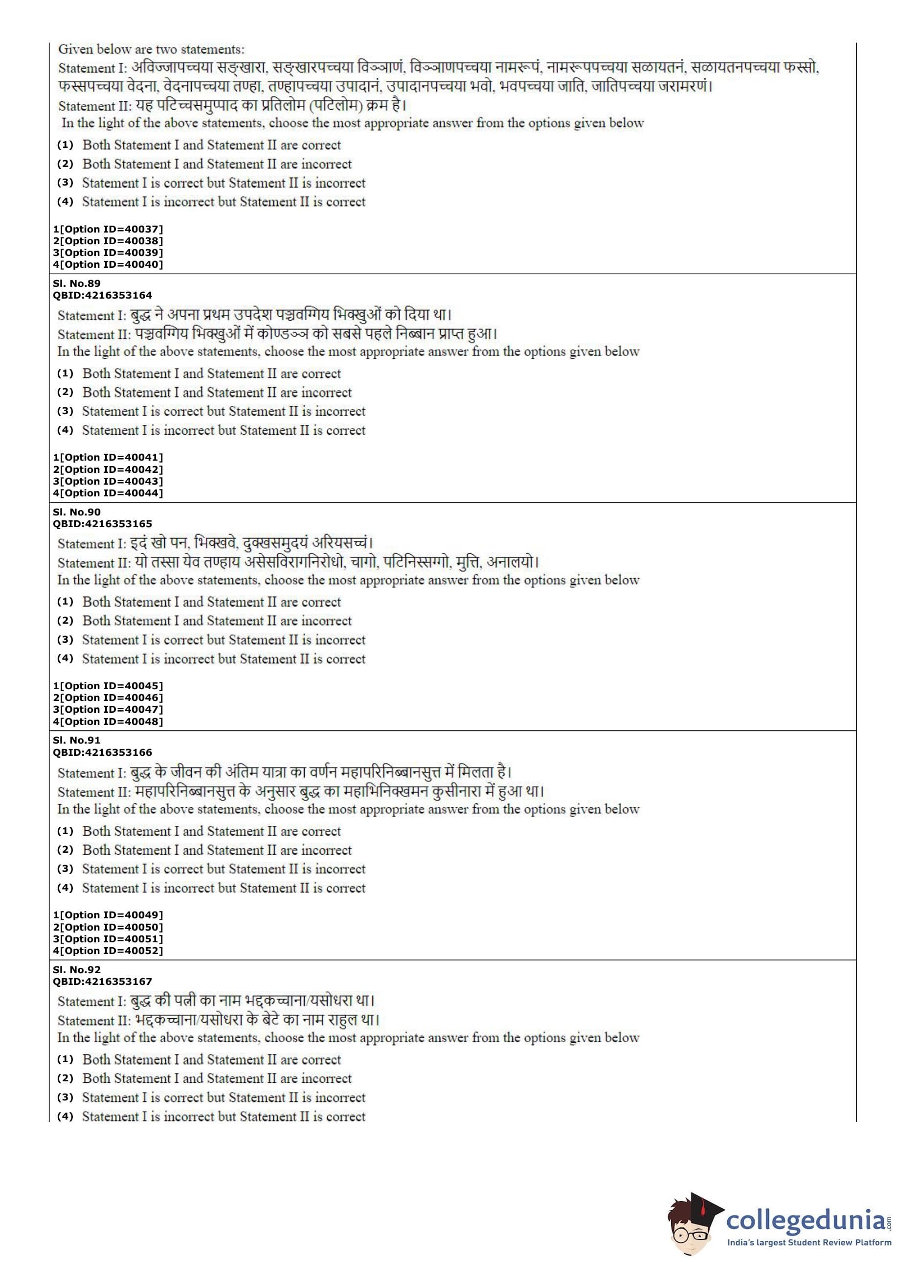 CUET PG 2022 Pali Question Paper with Answer Key PDF