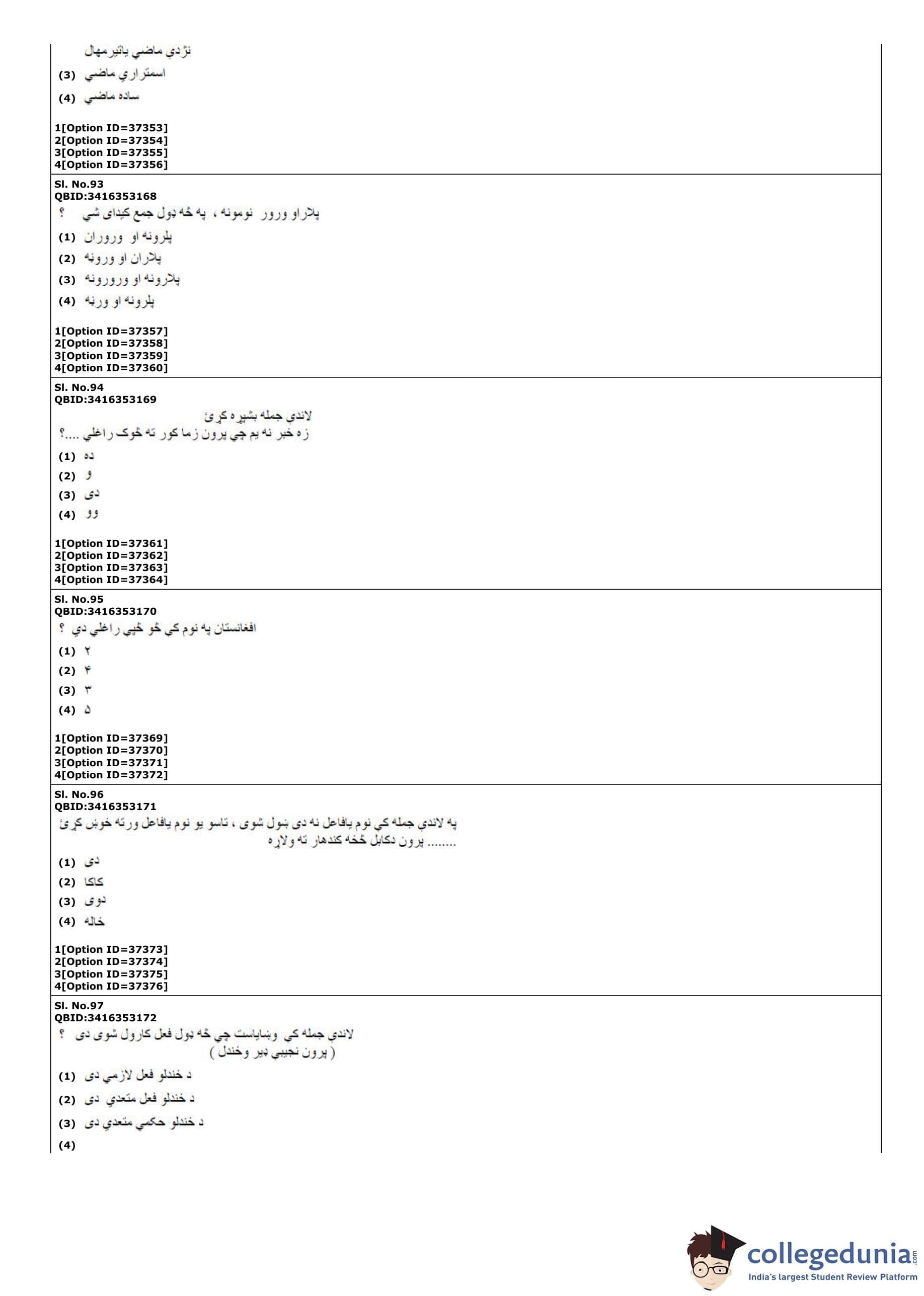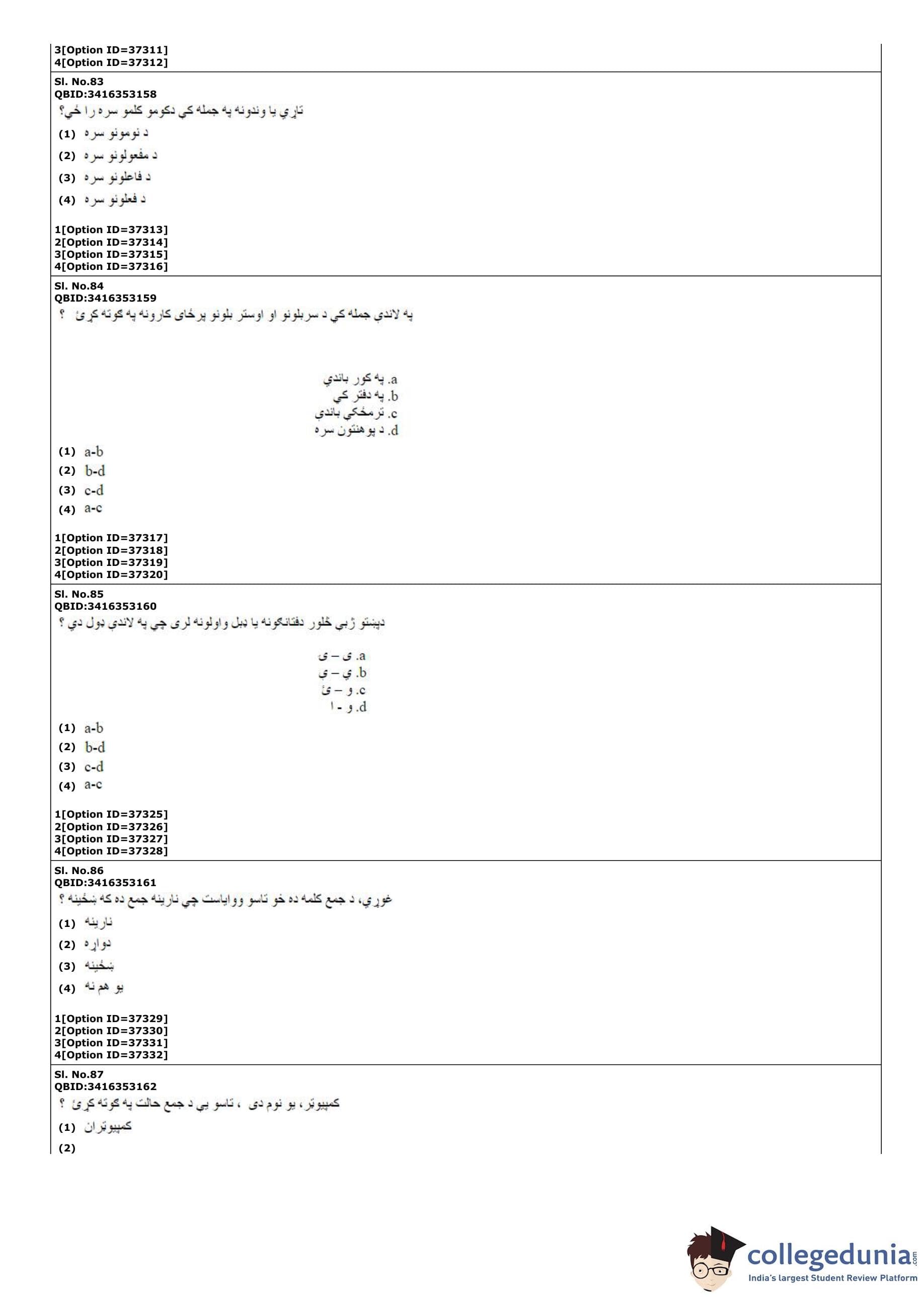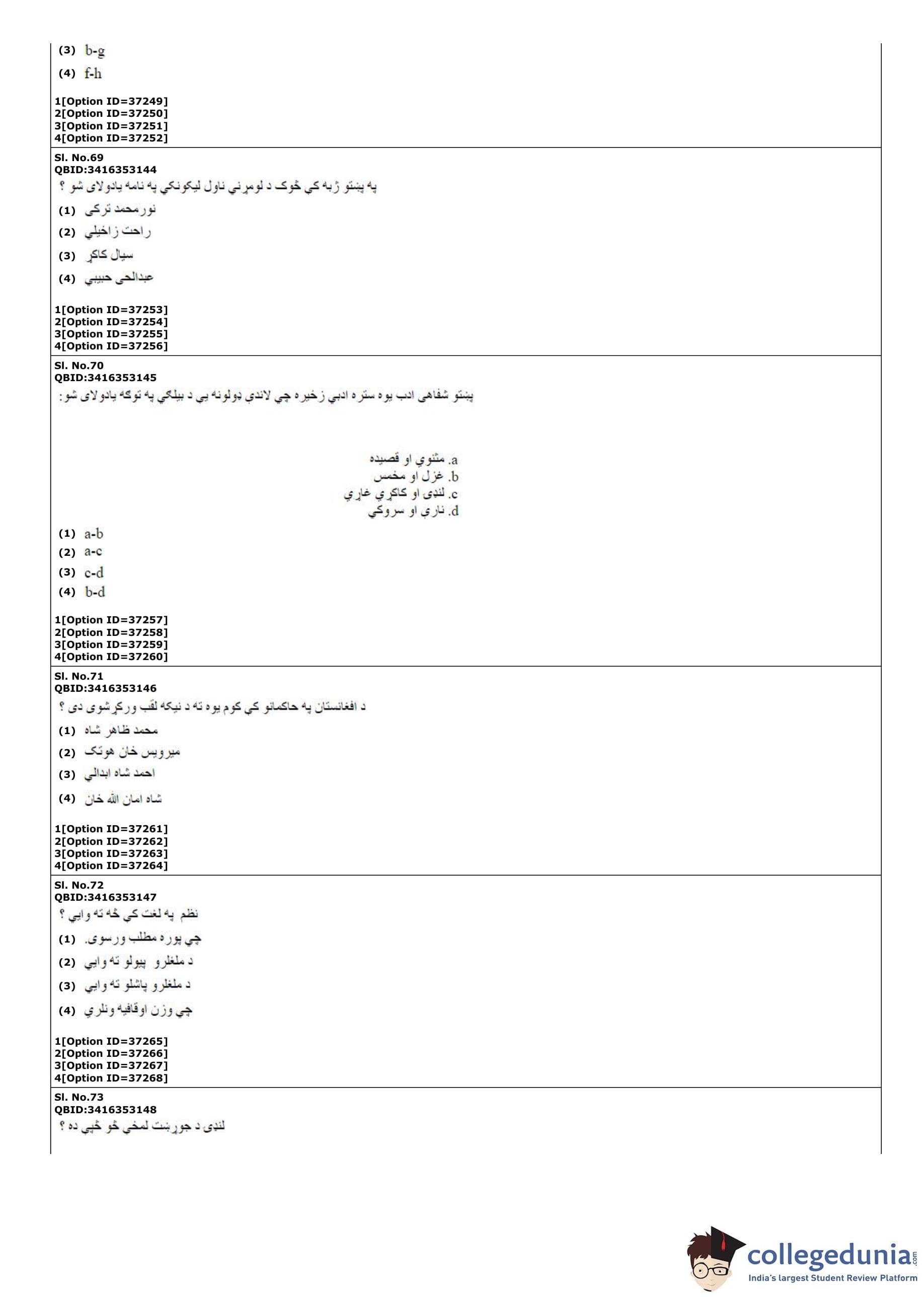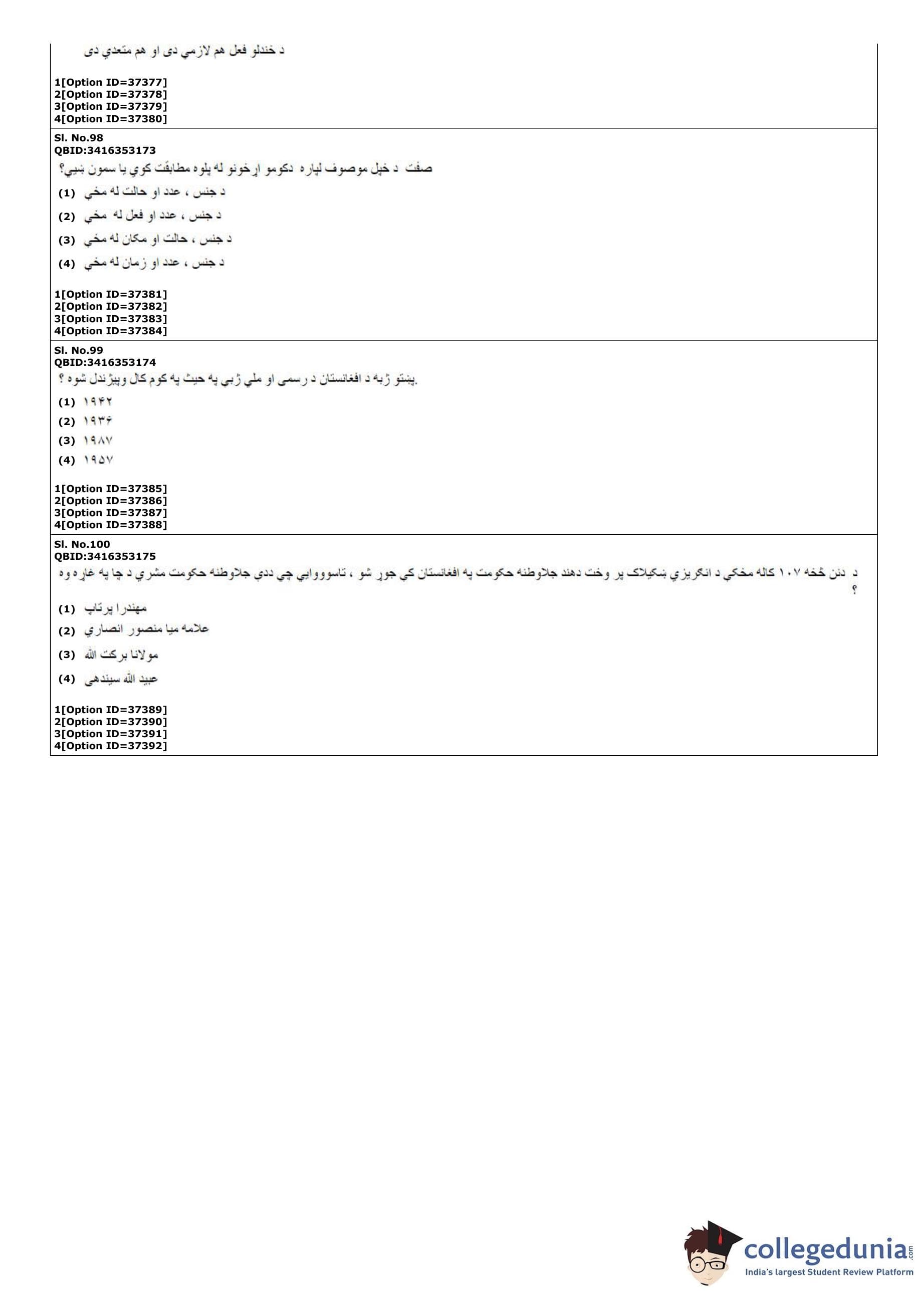| CUET PG Pashto Question Paper PDF | CUET PG Pashto Answer Key PDF |