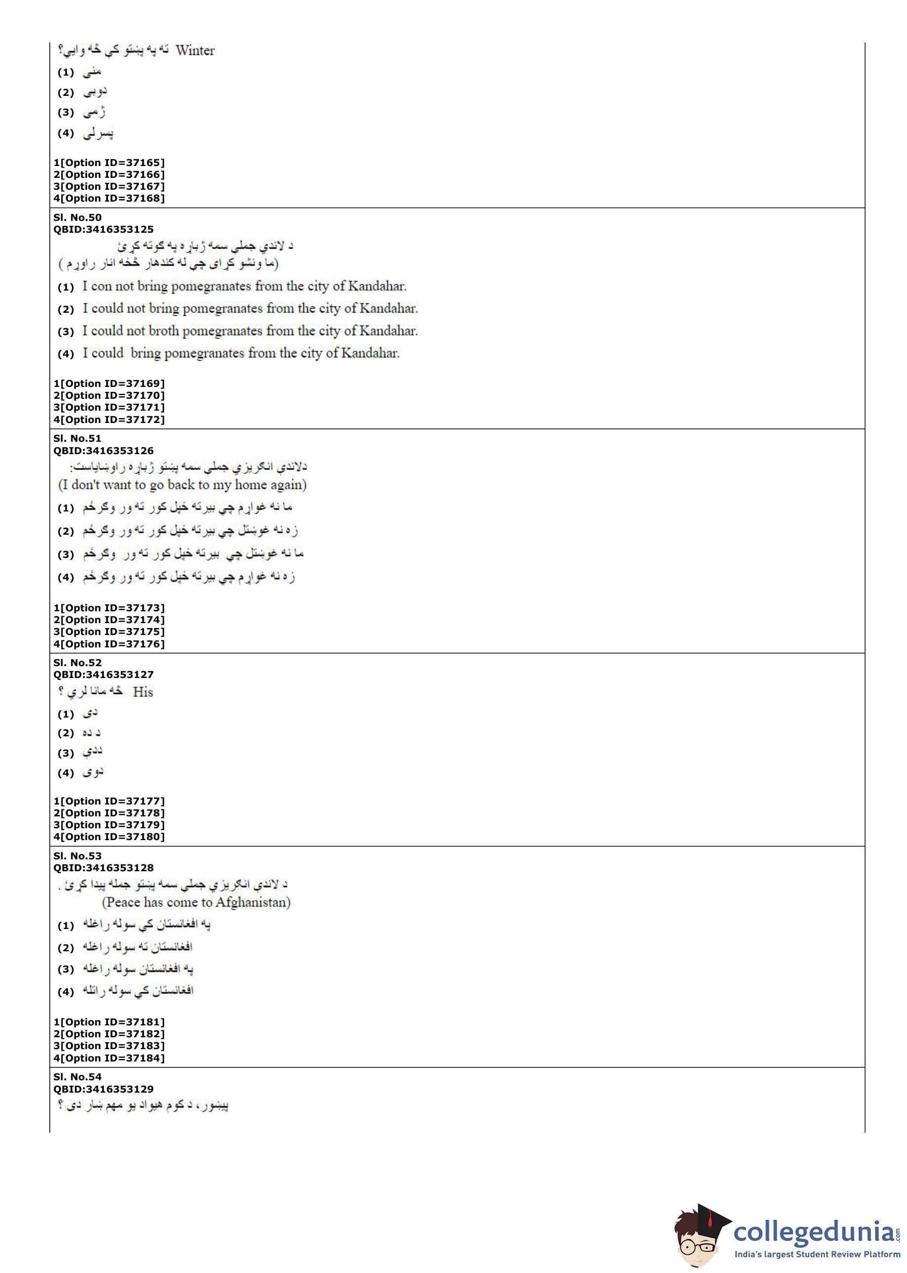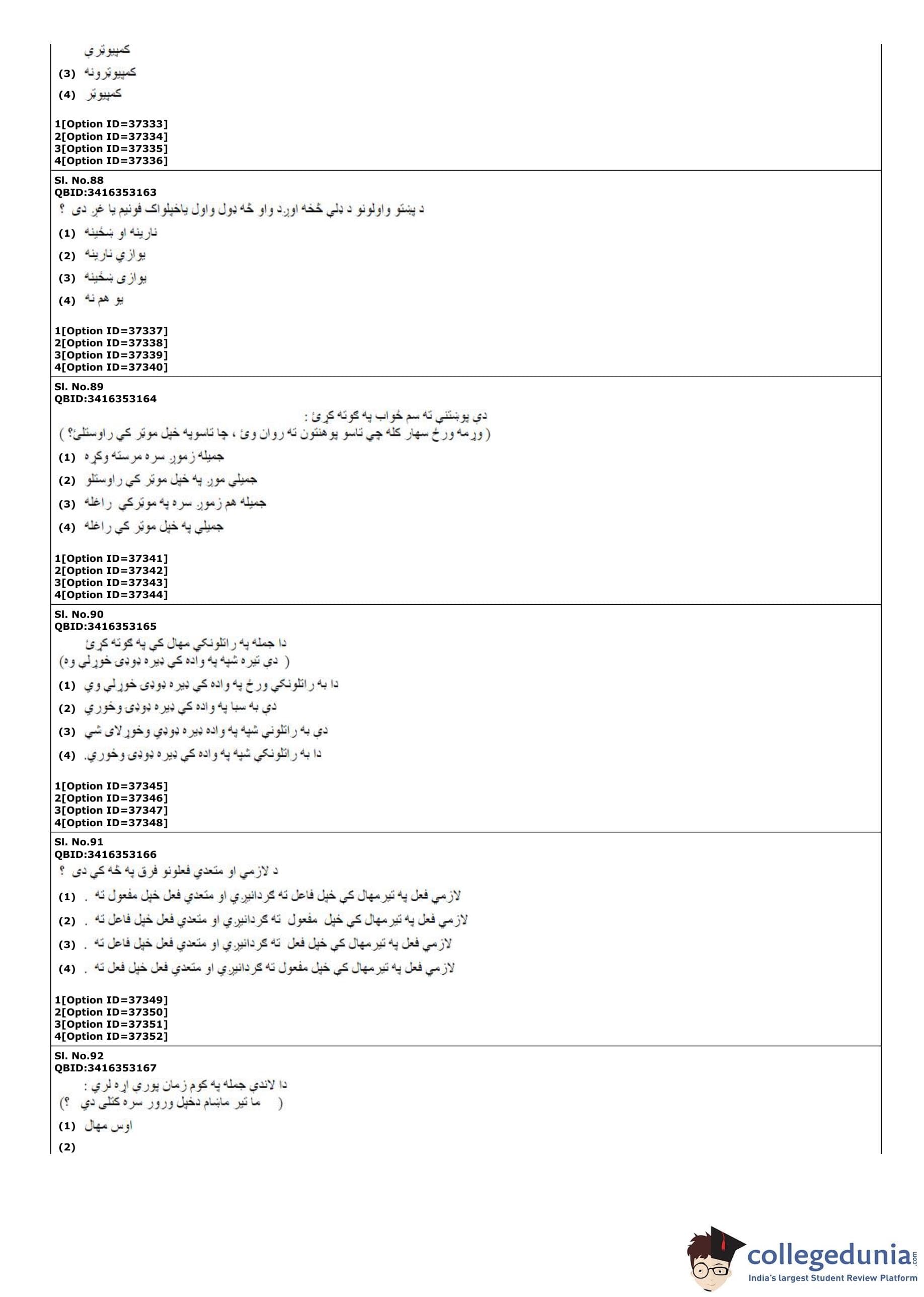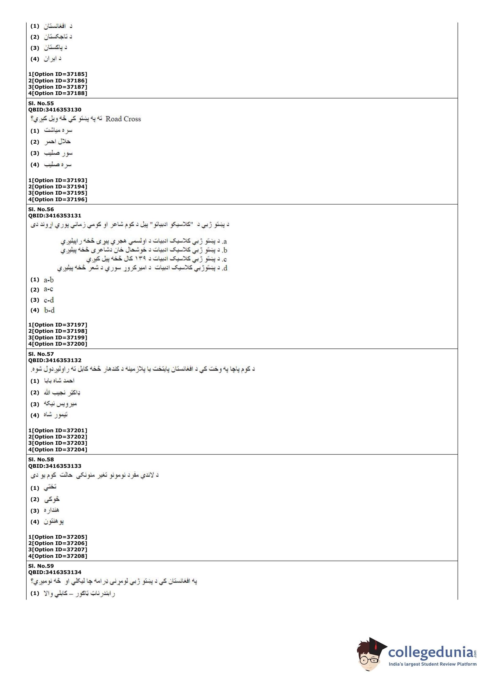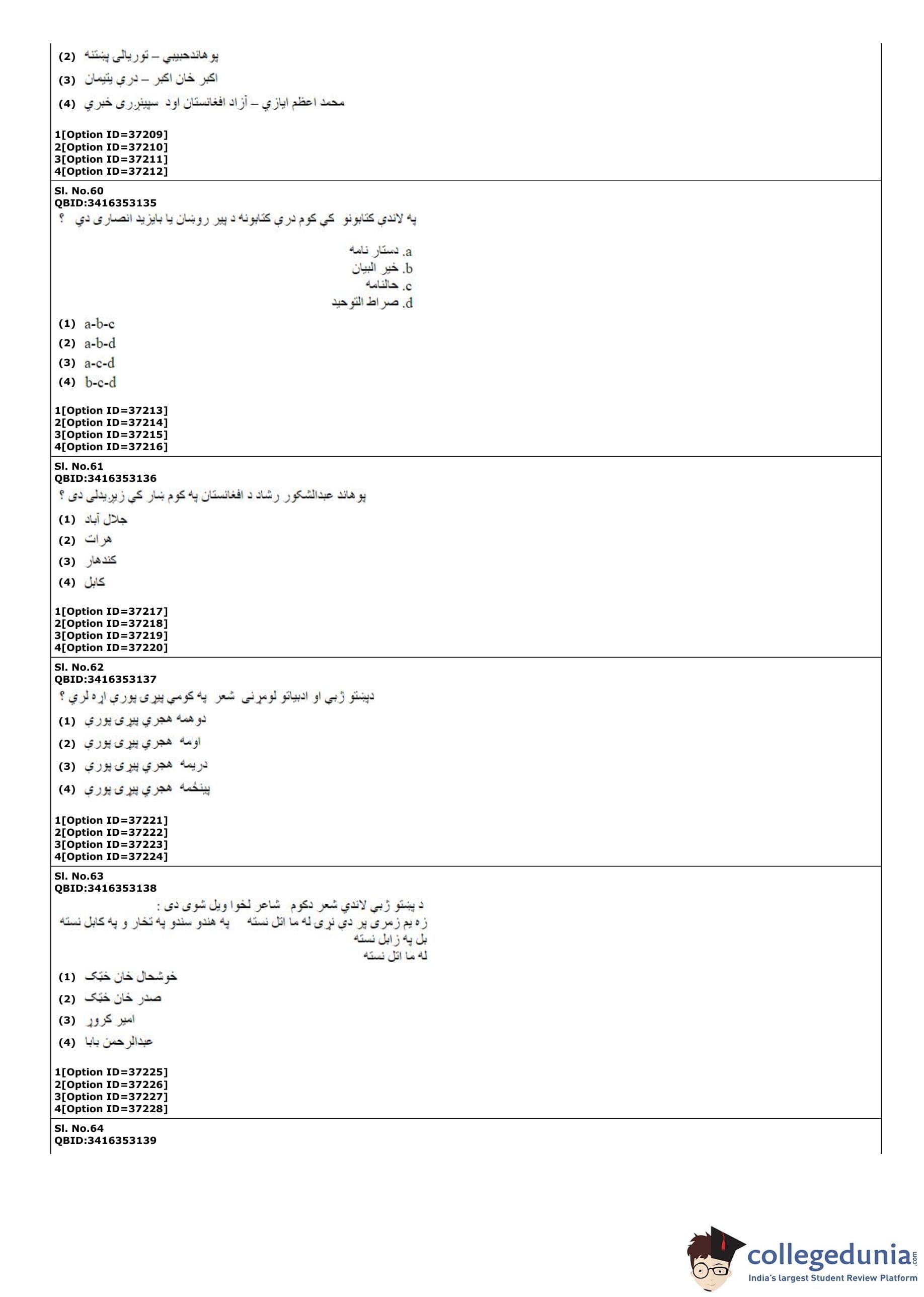 | CUET PG Pashto Question Paper PDF | CUET PG Pashto Answer Key PDF |