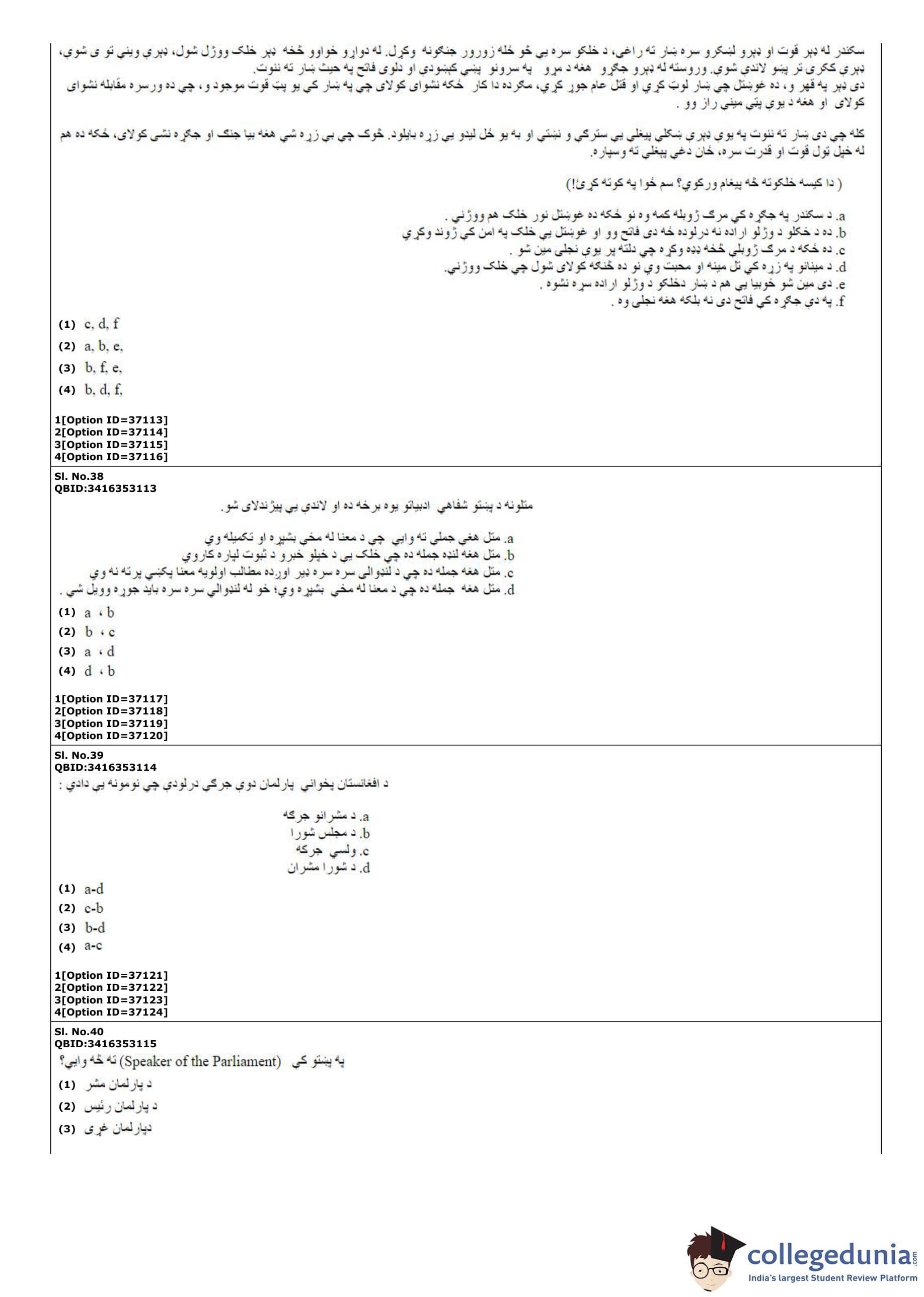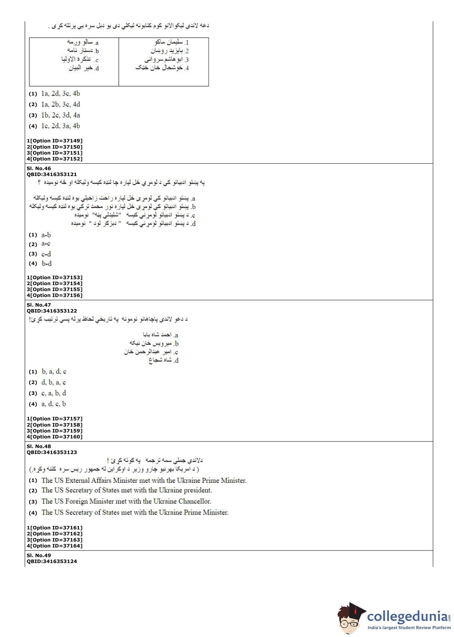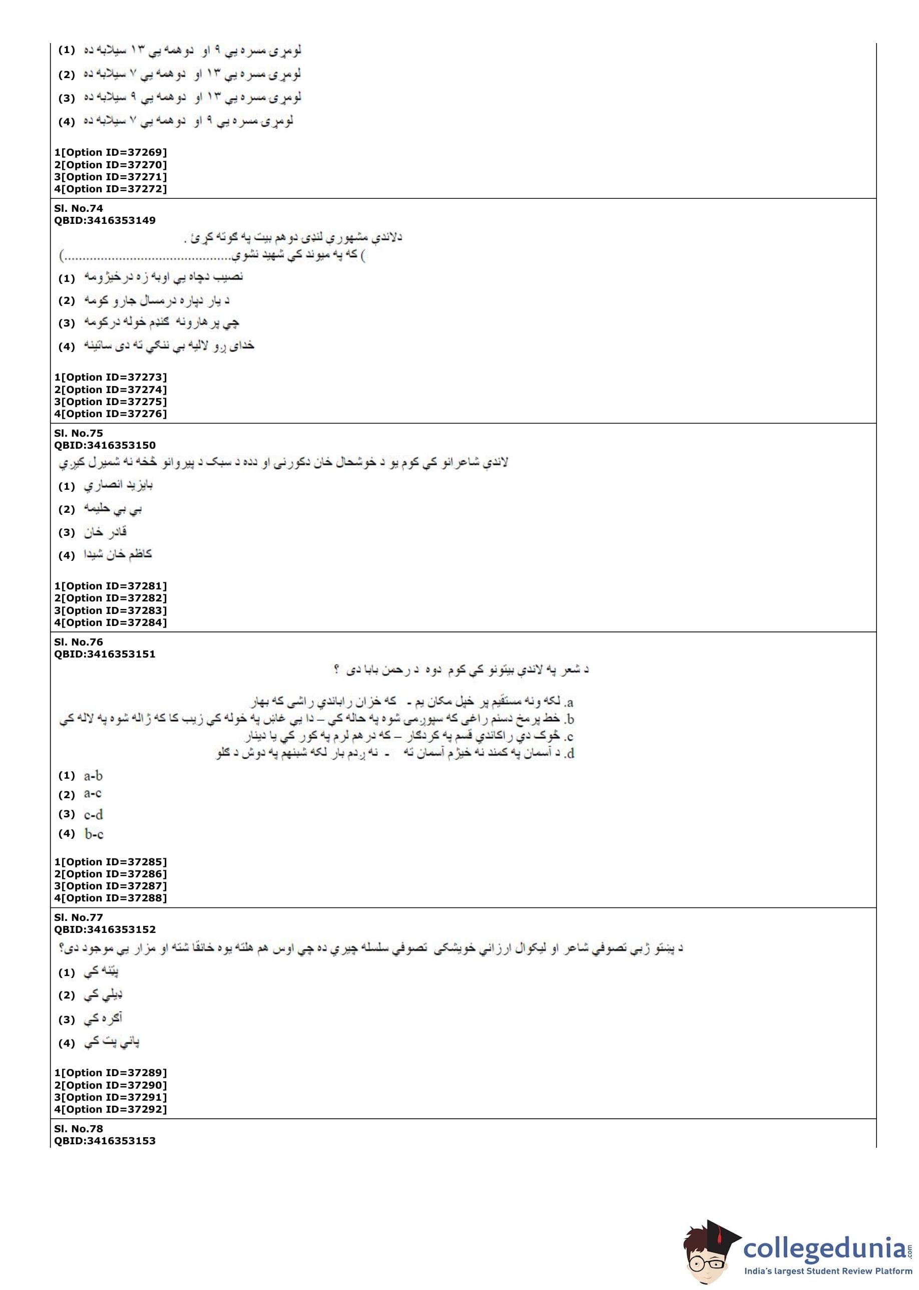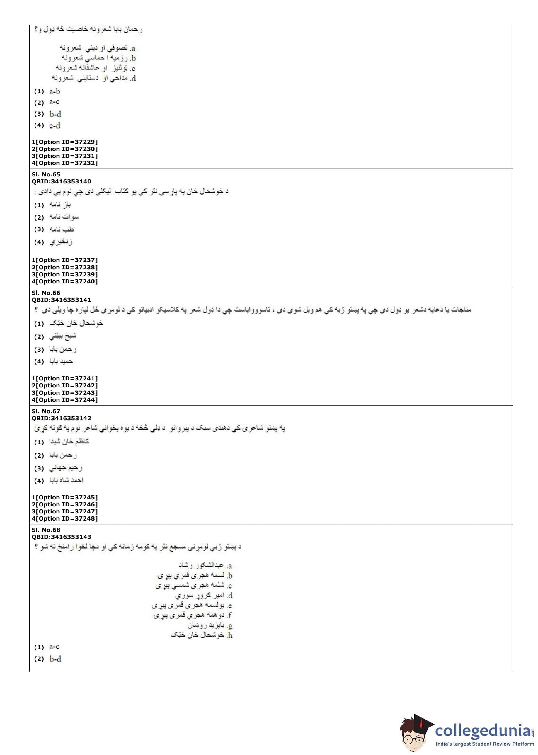 | CUET PG Pashto Question Paper PDF | CUET PG Pashto Answer Key PDF |