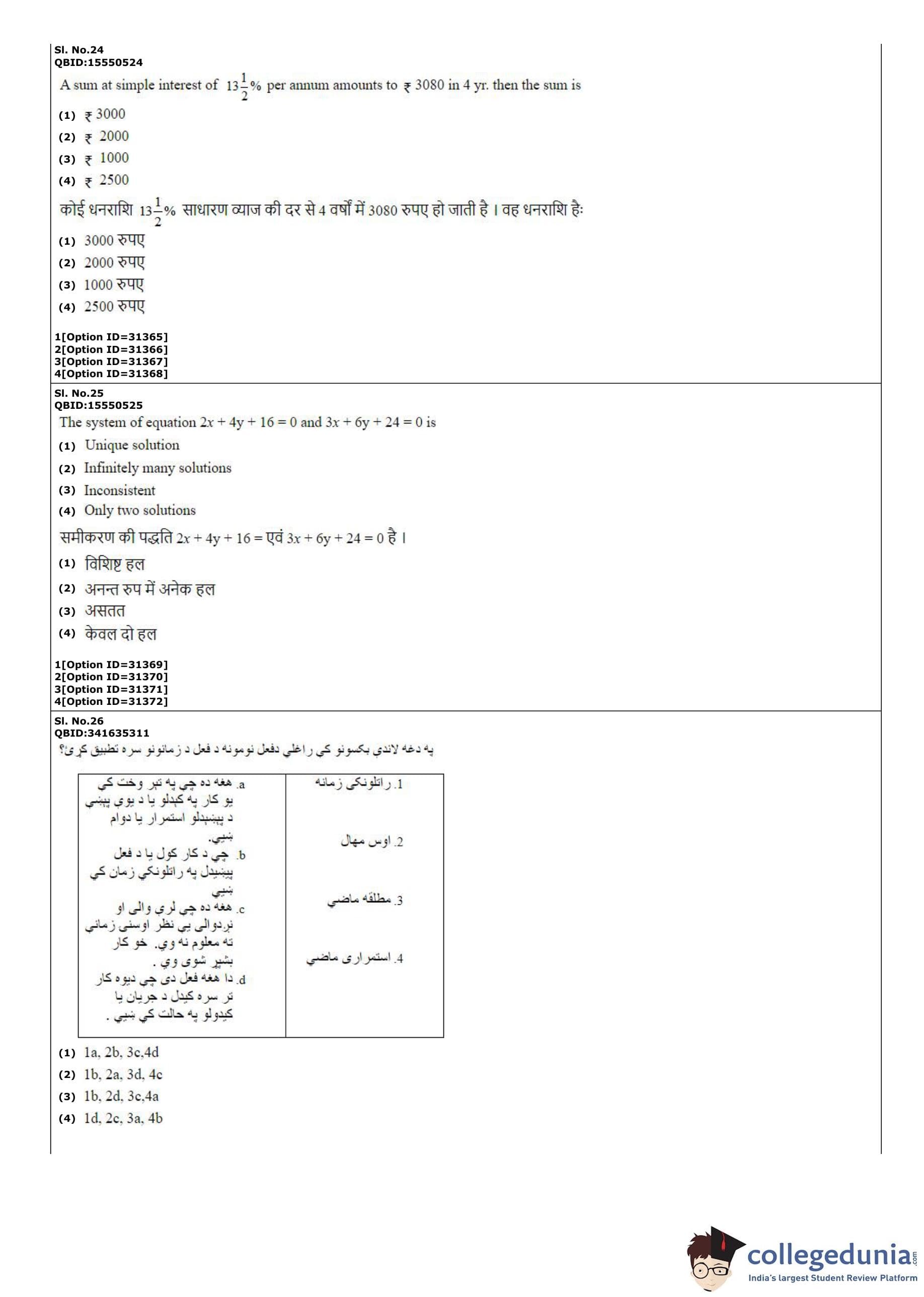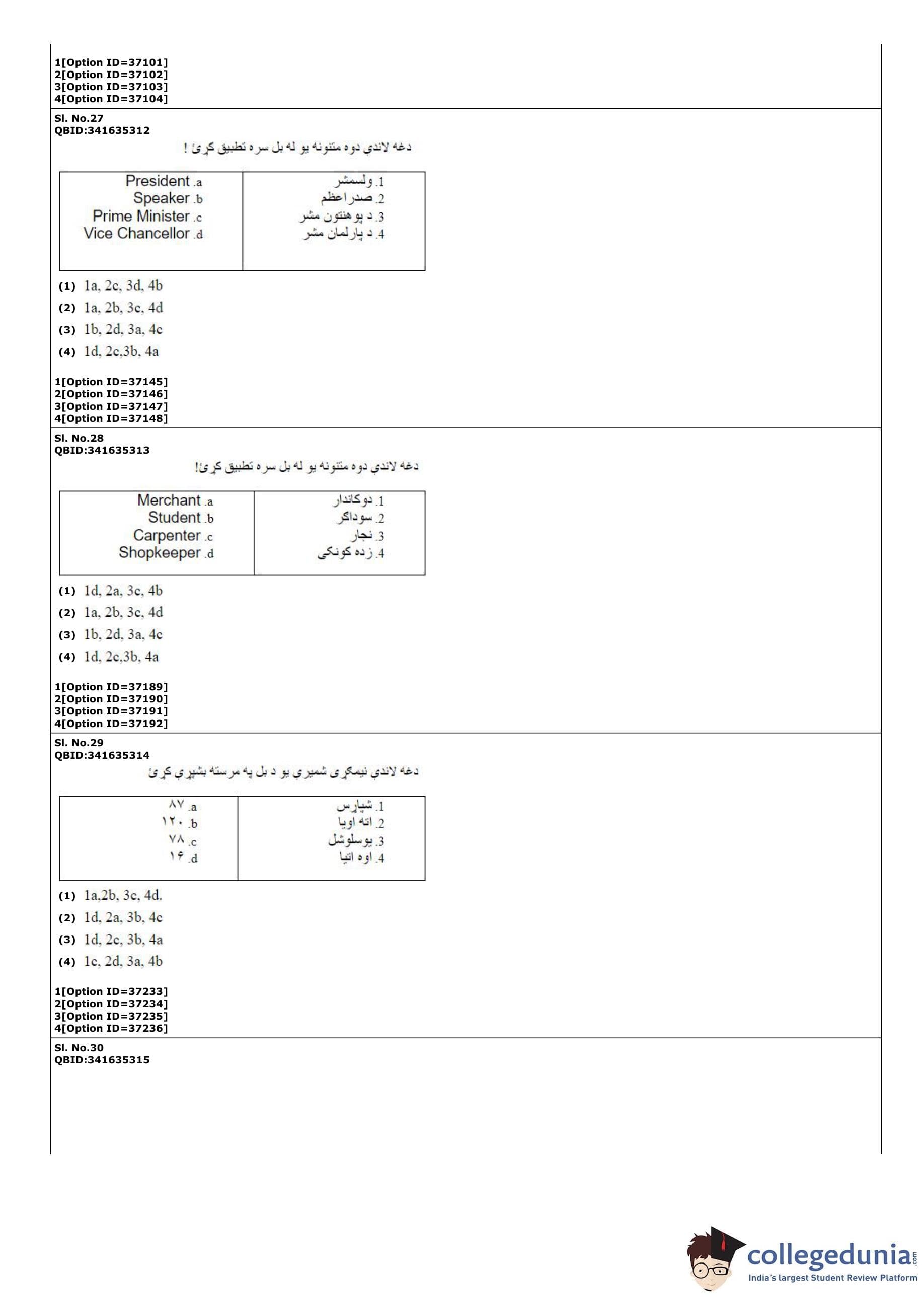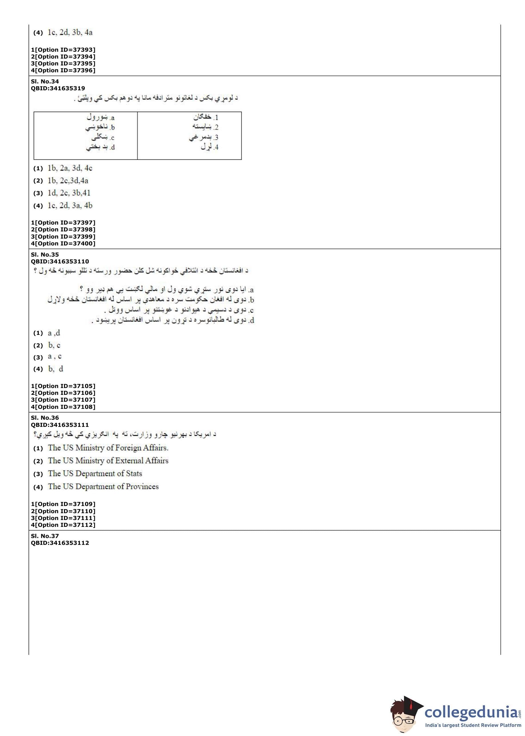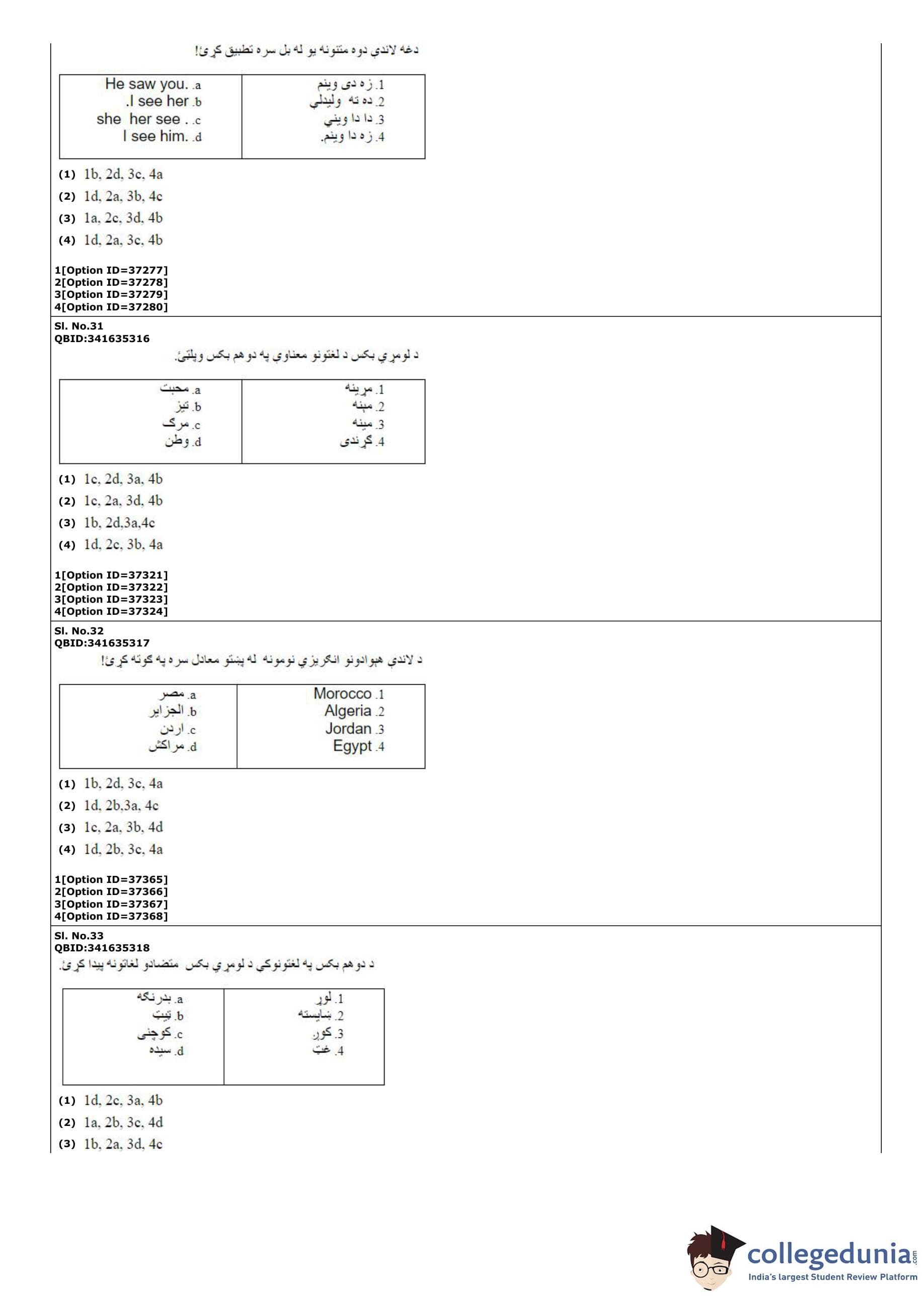 | CUET PG Pashto Question Paper PDF | CUET PG Pashto Answer Key PDF |