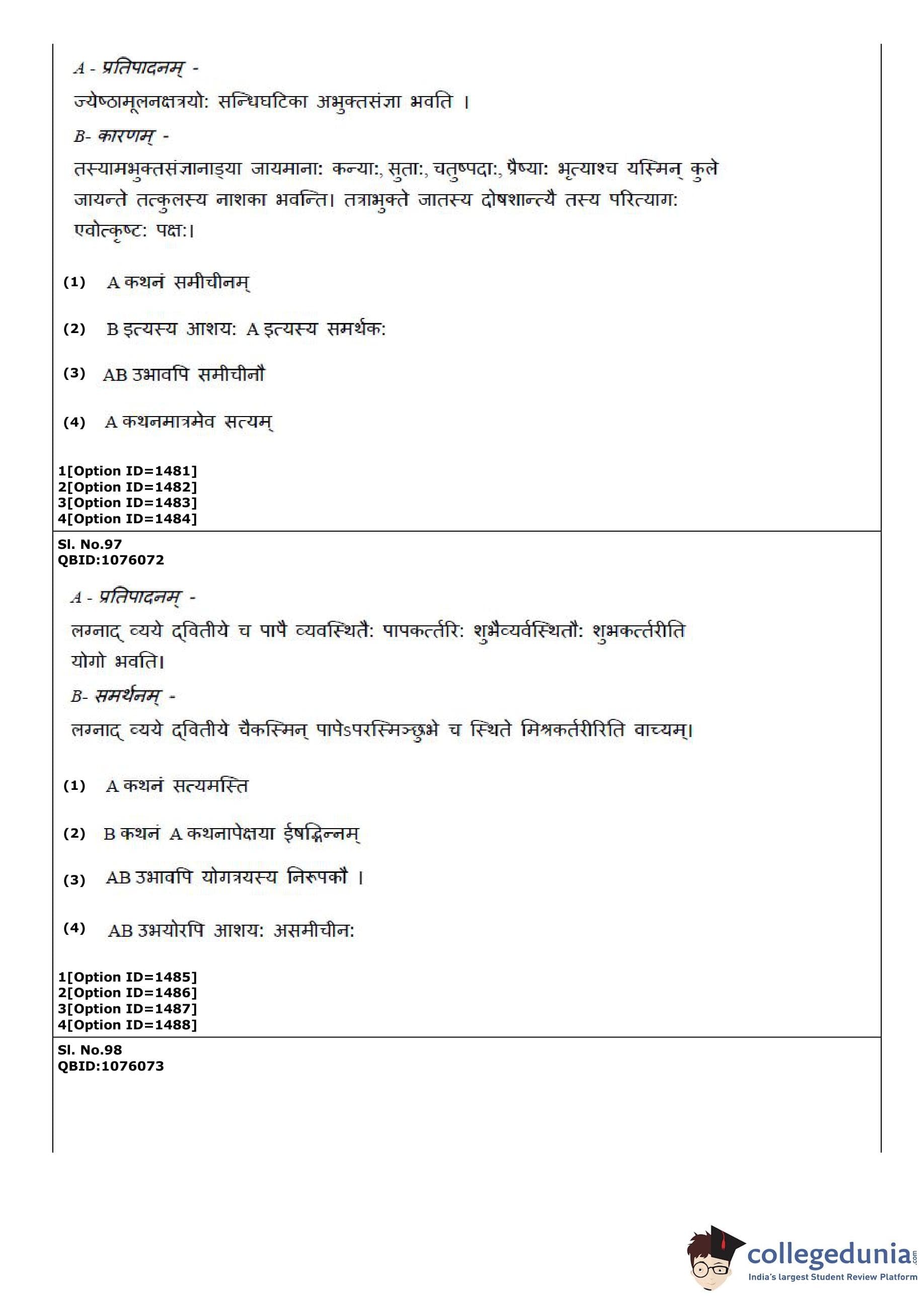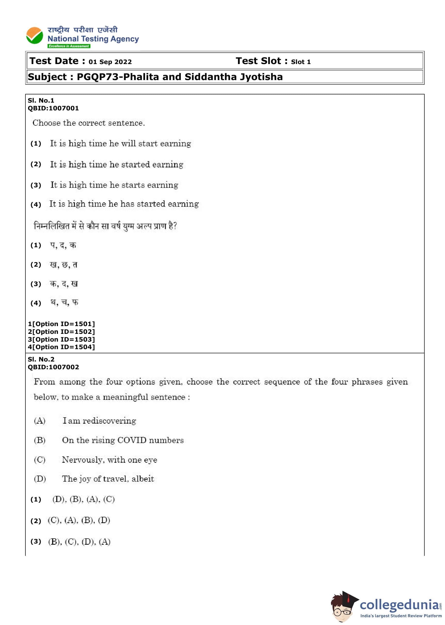 CUET PG Phalita and Siddantha Jyotisha Question Paper 2022 is available for download. CUET PG 2022 Phalita and Siddantha Jyotisha paper was conducted by National Testing Agency (NTA) on September 1, 2022 in Shift 1. The question paper comprised a total of 100 questions.