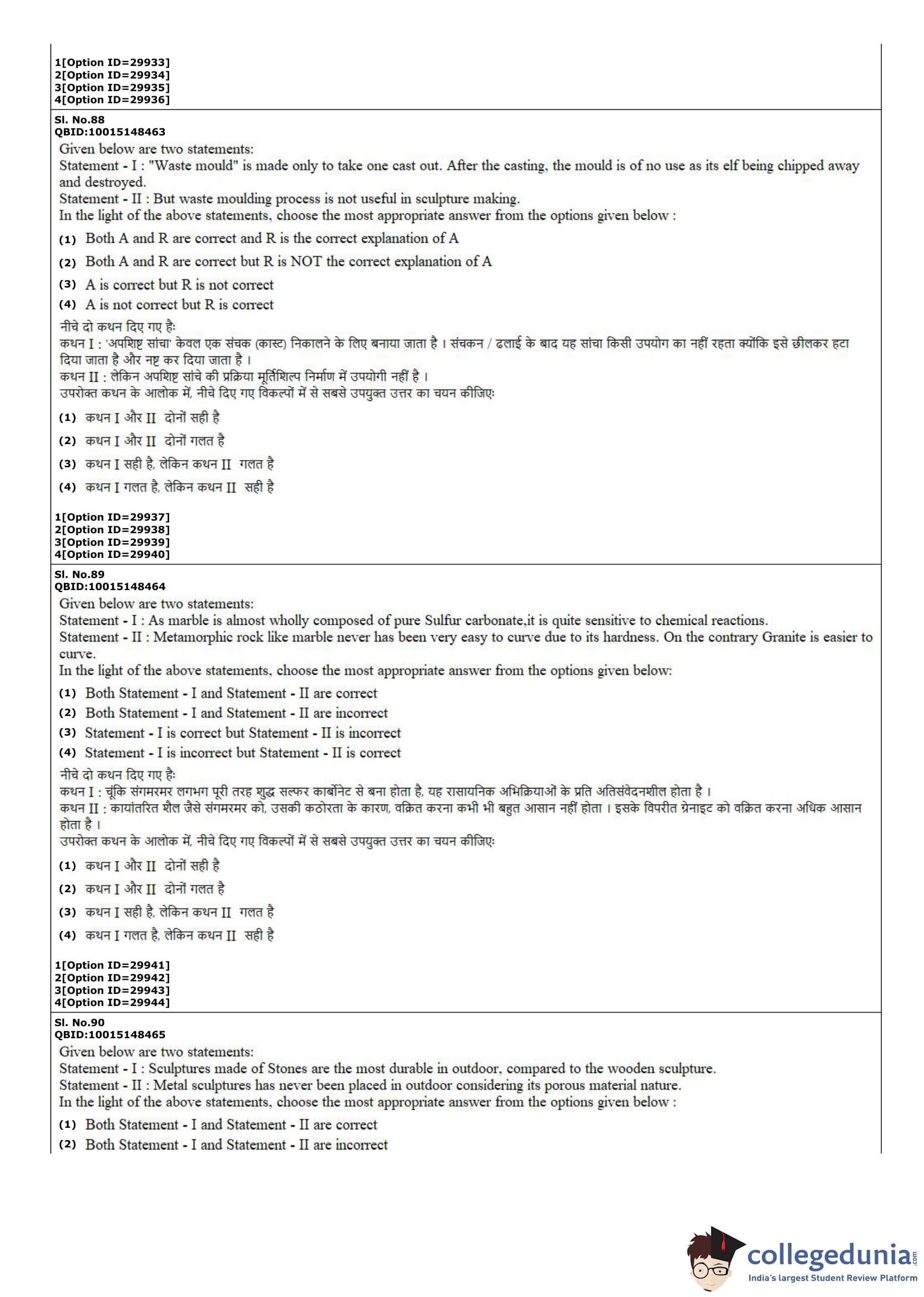 CUET PG 2022 Plastic Arts Question Paper with Answer Key PDF