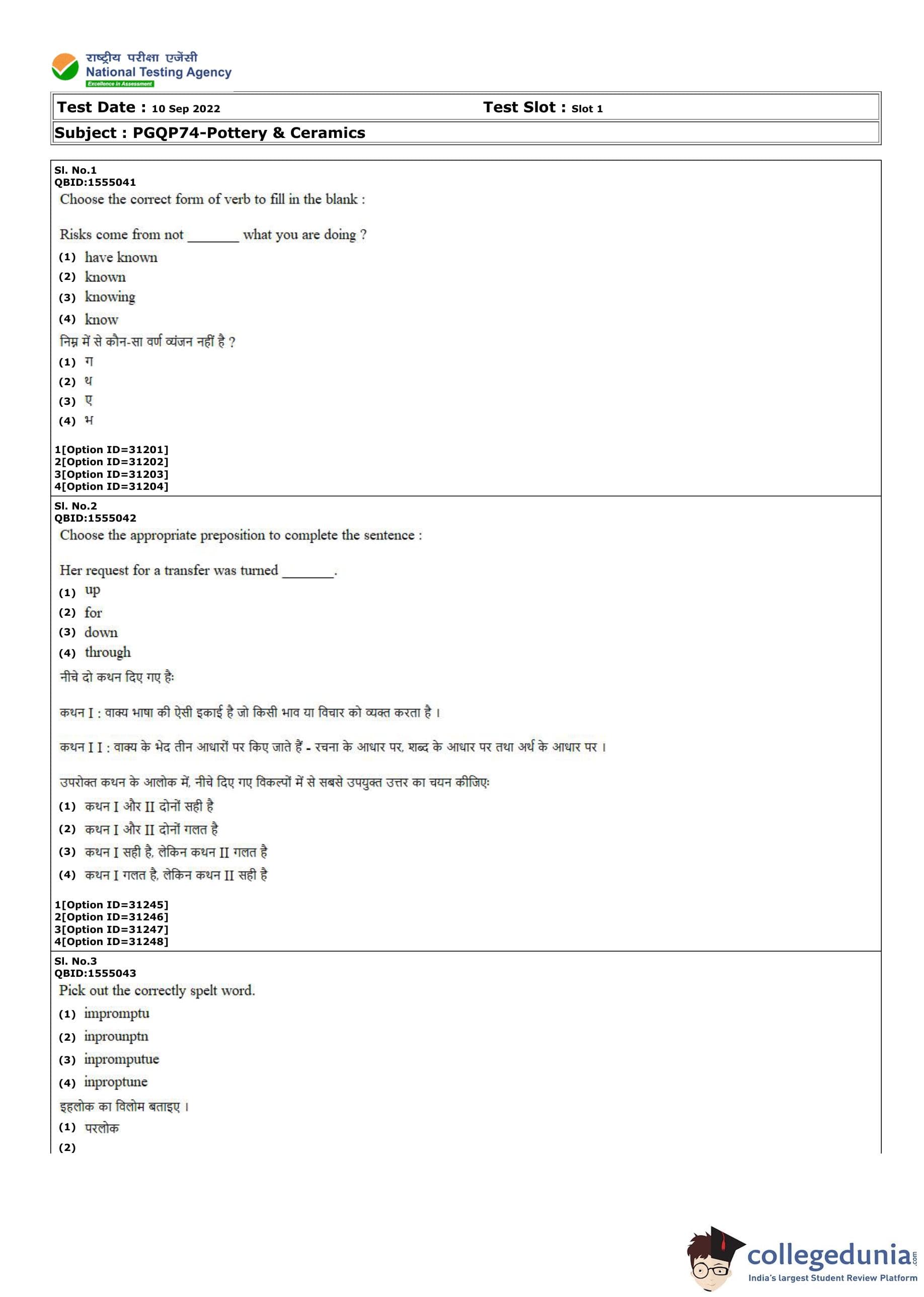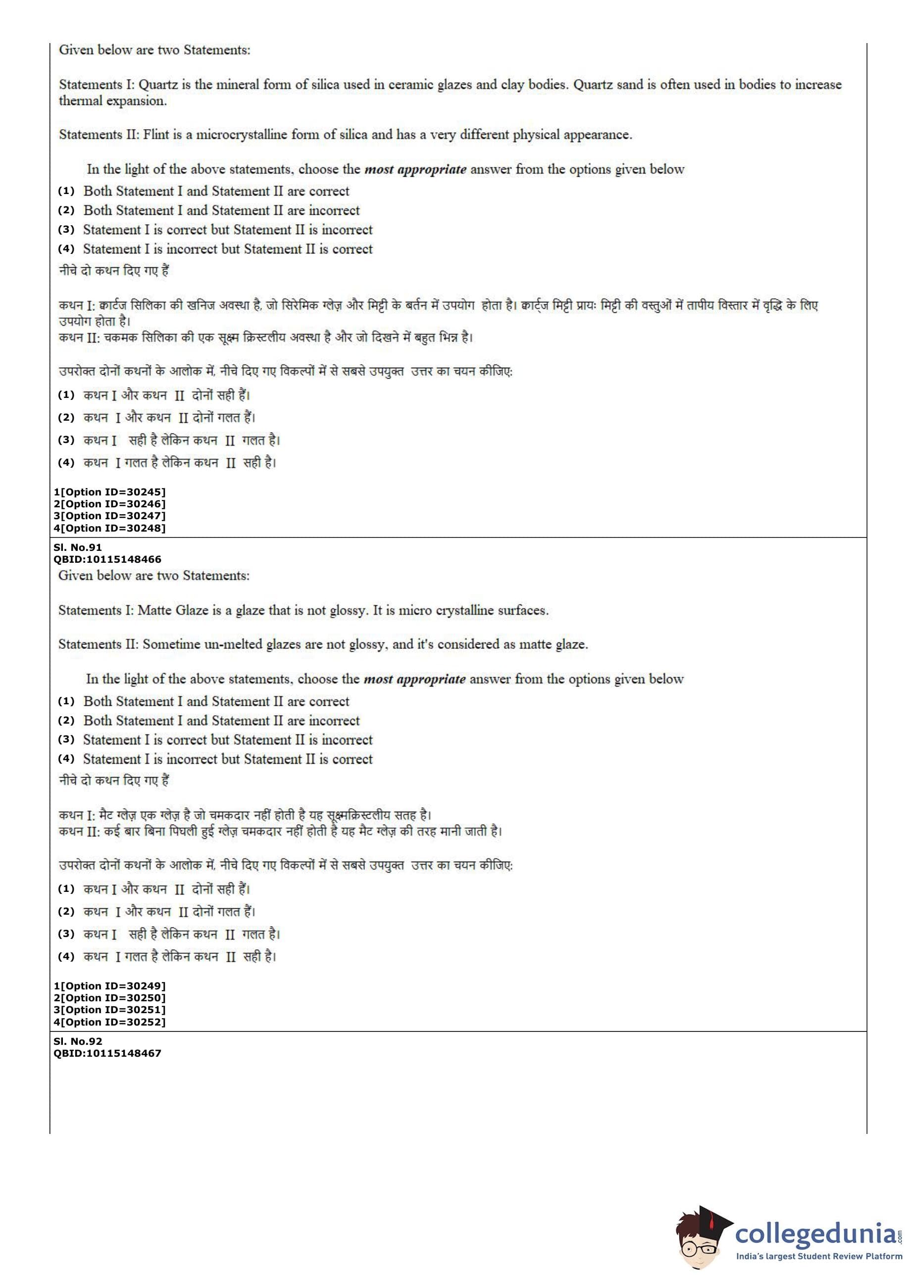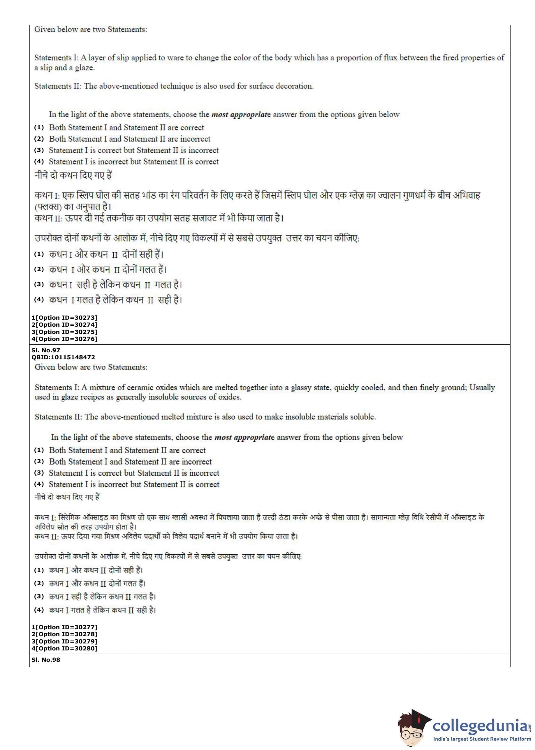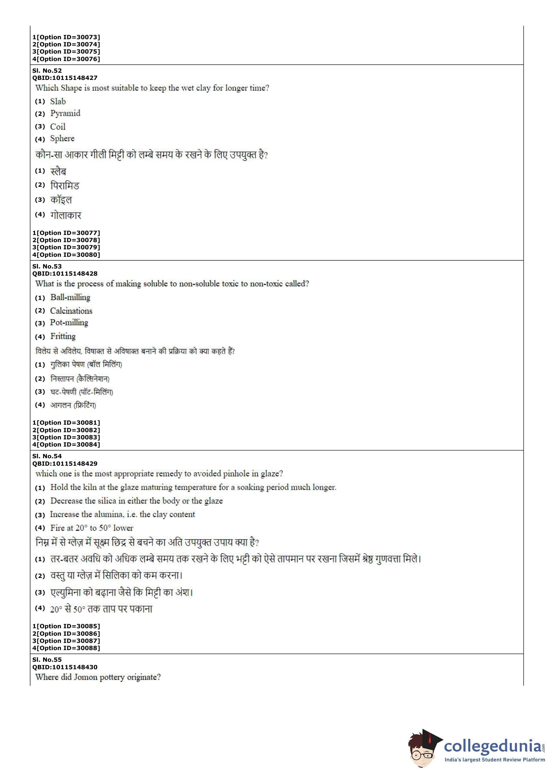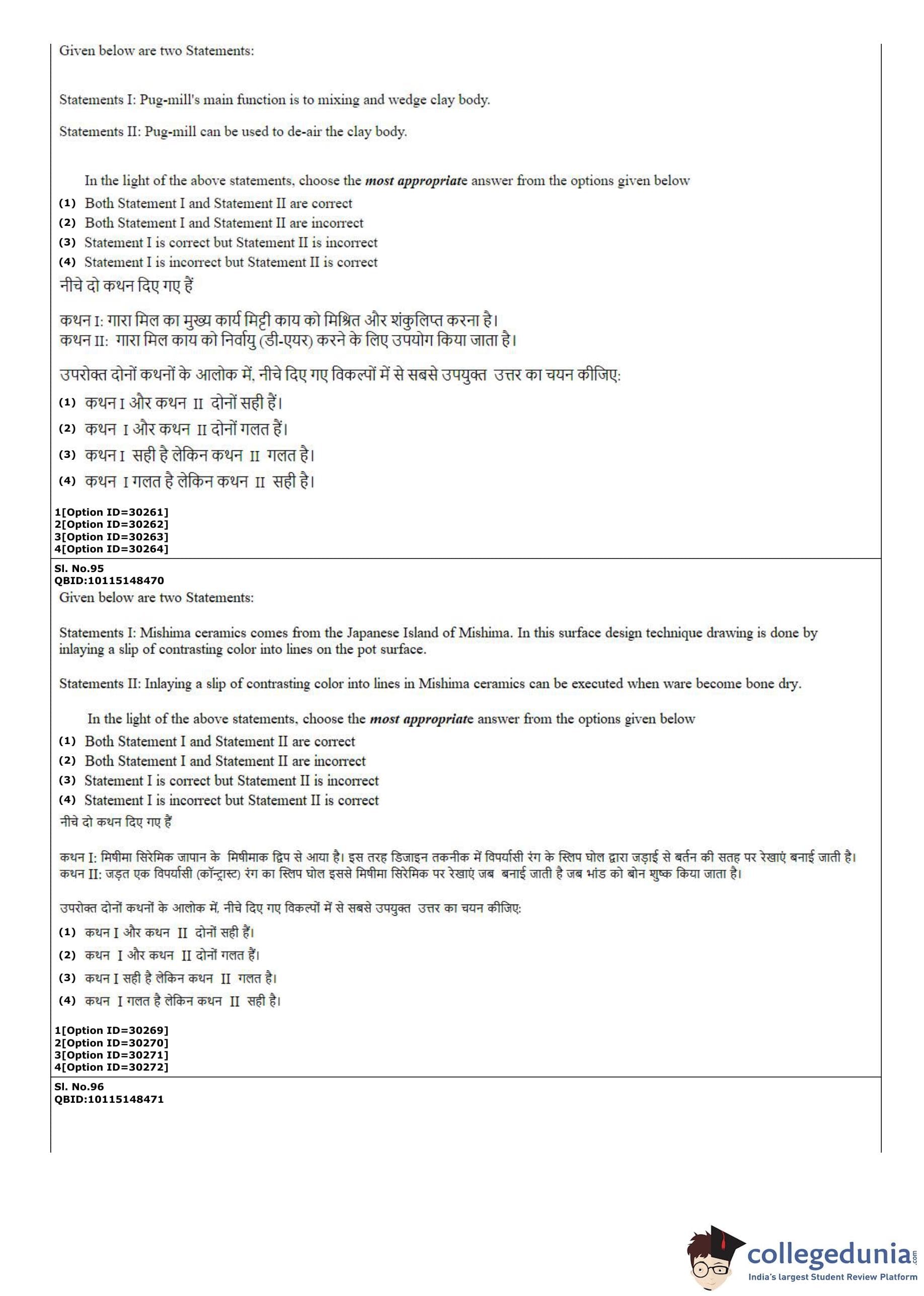 CUET PG Pottery & Ceramics Question Paper 2022 is available for download. CUET PG 2022 Pottery & Ceramics paper was conducted by National Testing Agency (NTA) on September 10, 2022 in Shift 1. The question paper comprised a total of 100 questions.