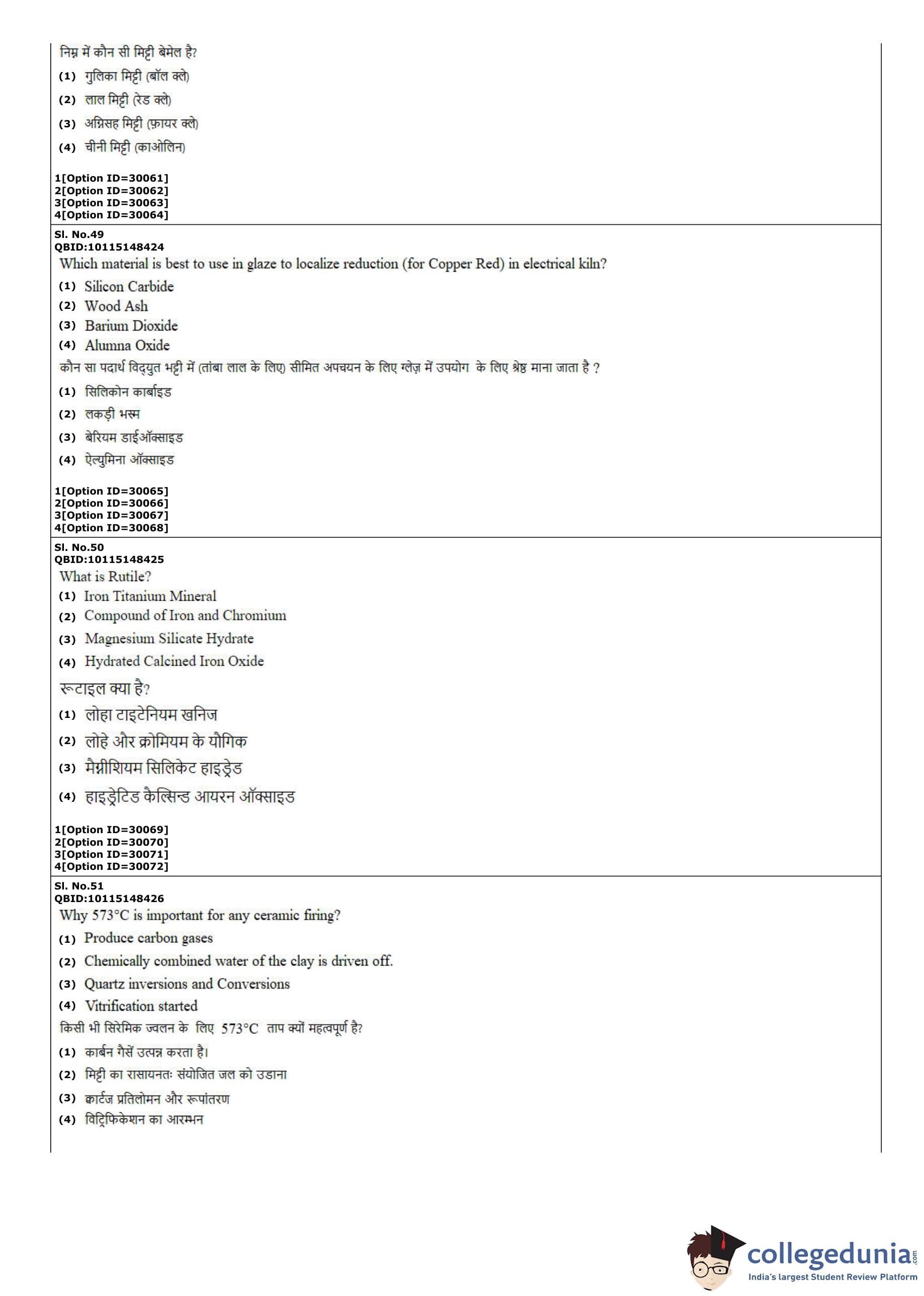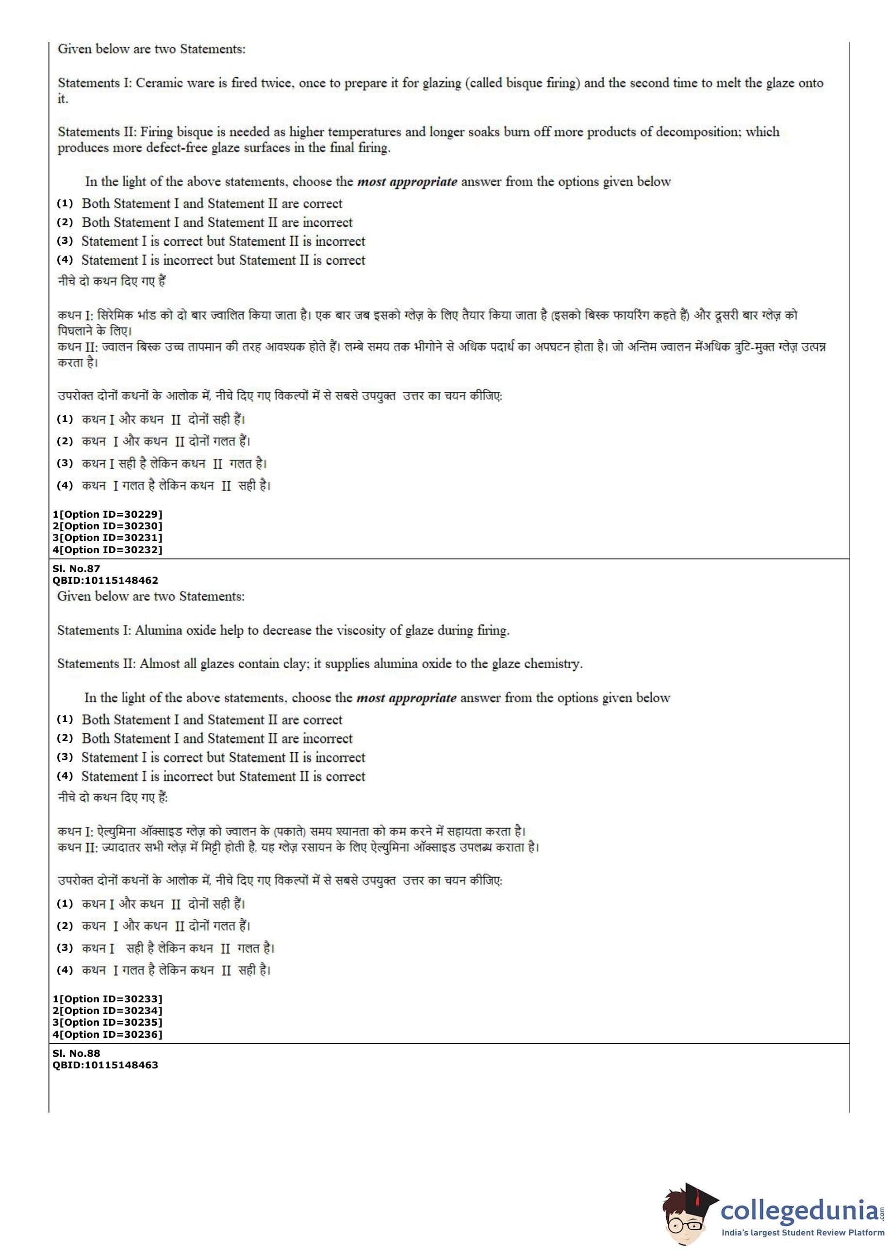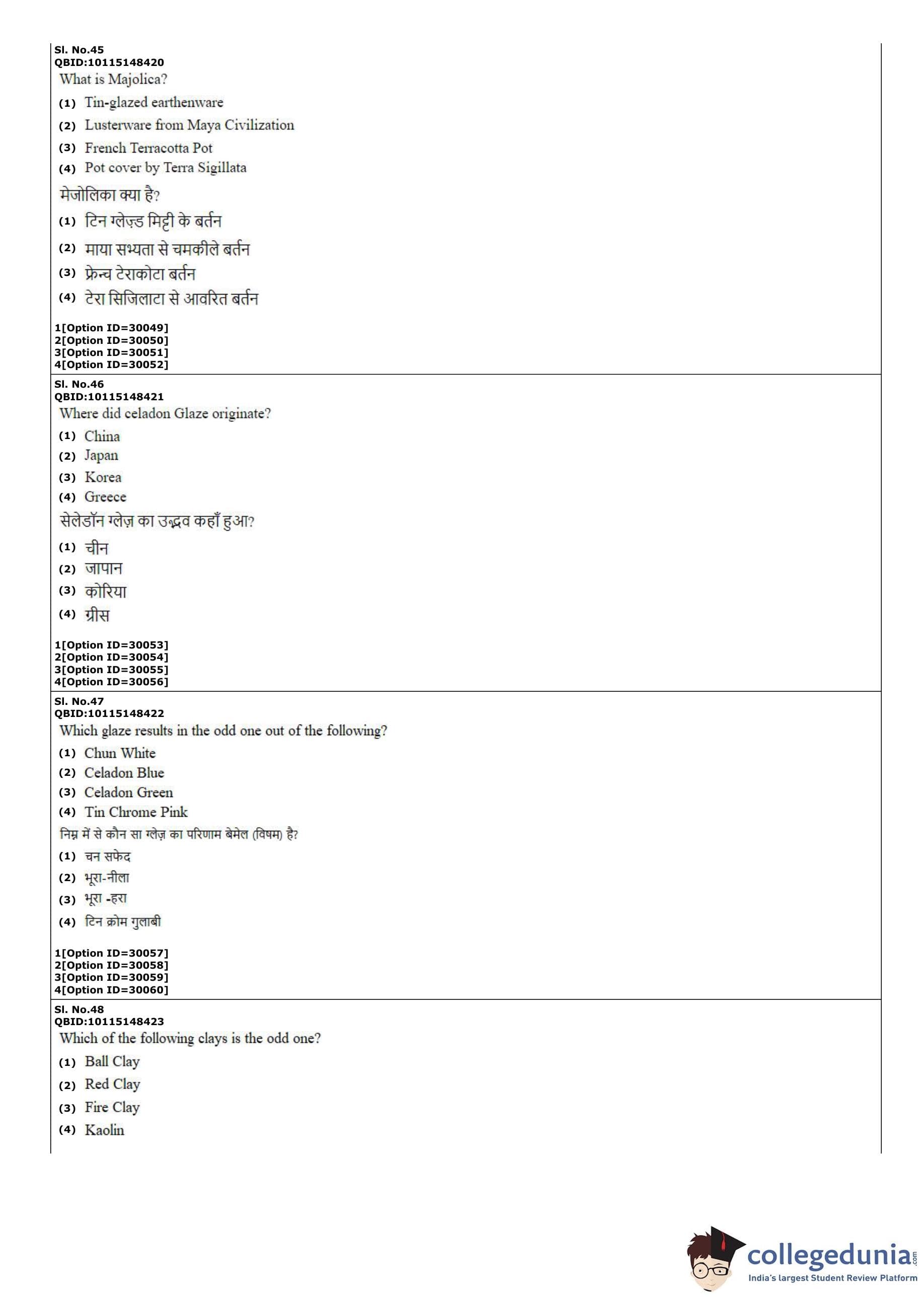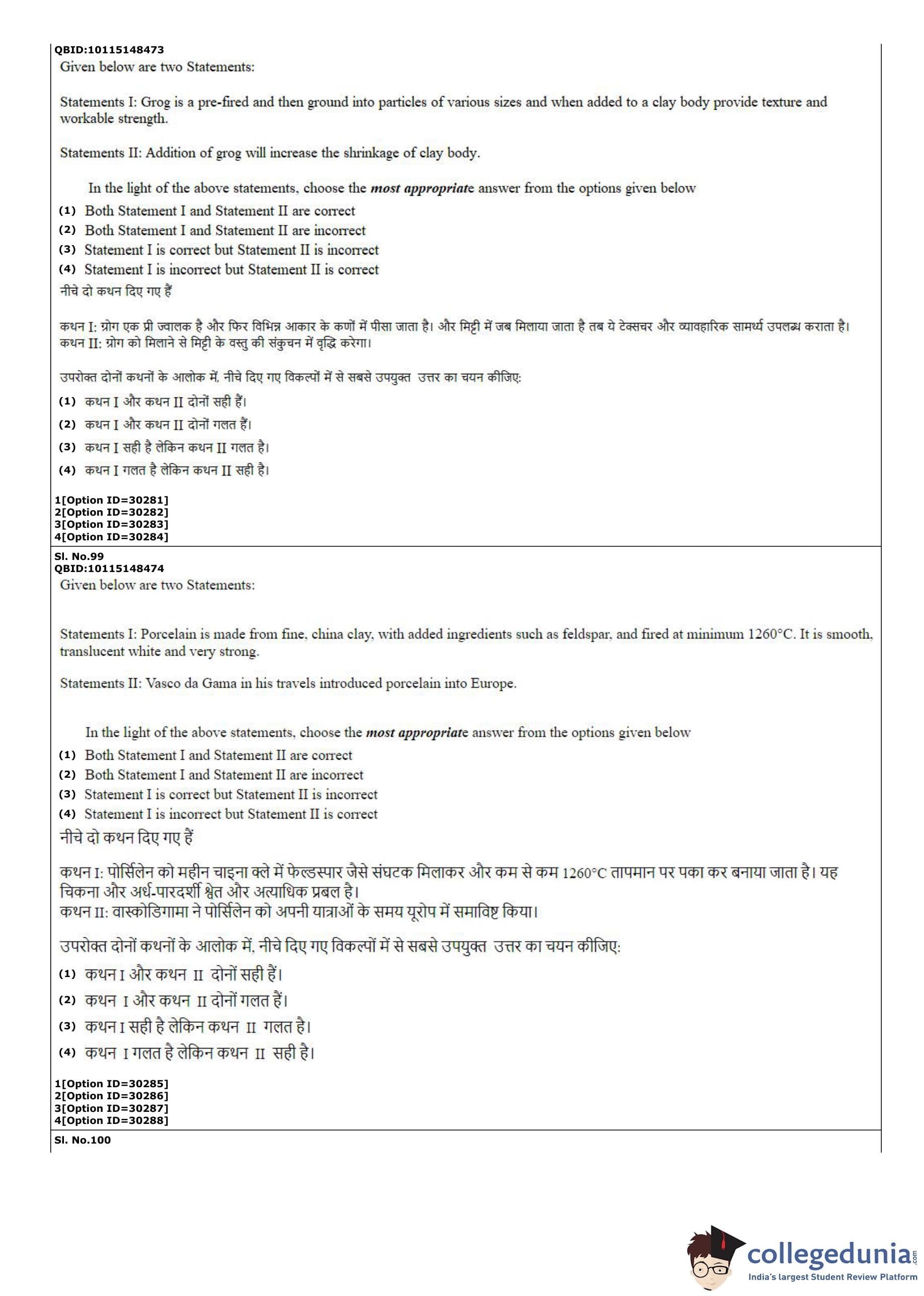 CUET PG 2022 Pottery & Ceramics Question Paper with Answer Key PDF