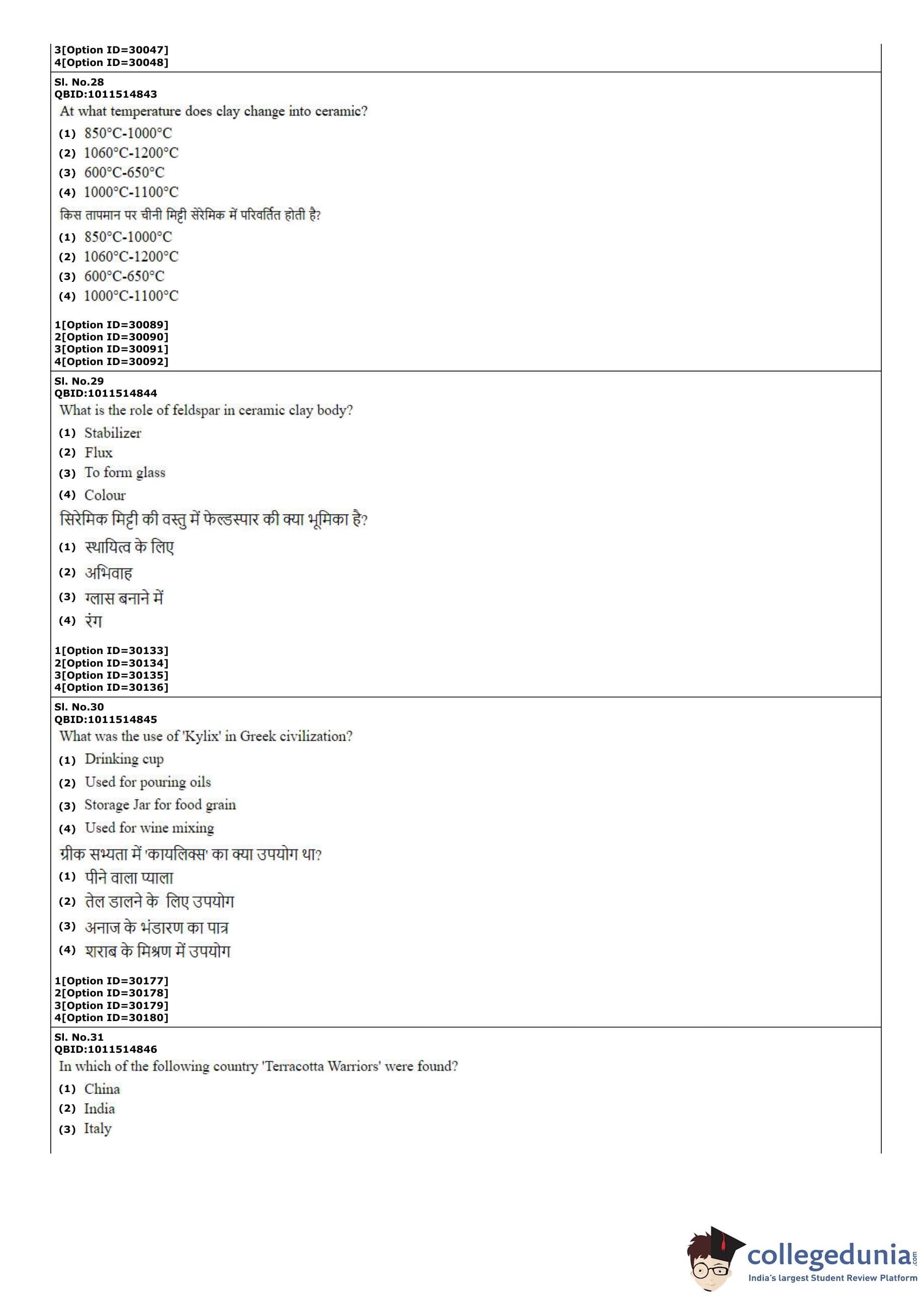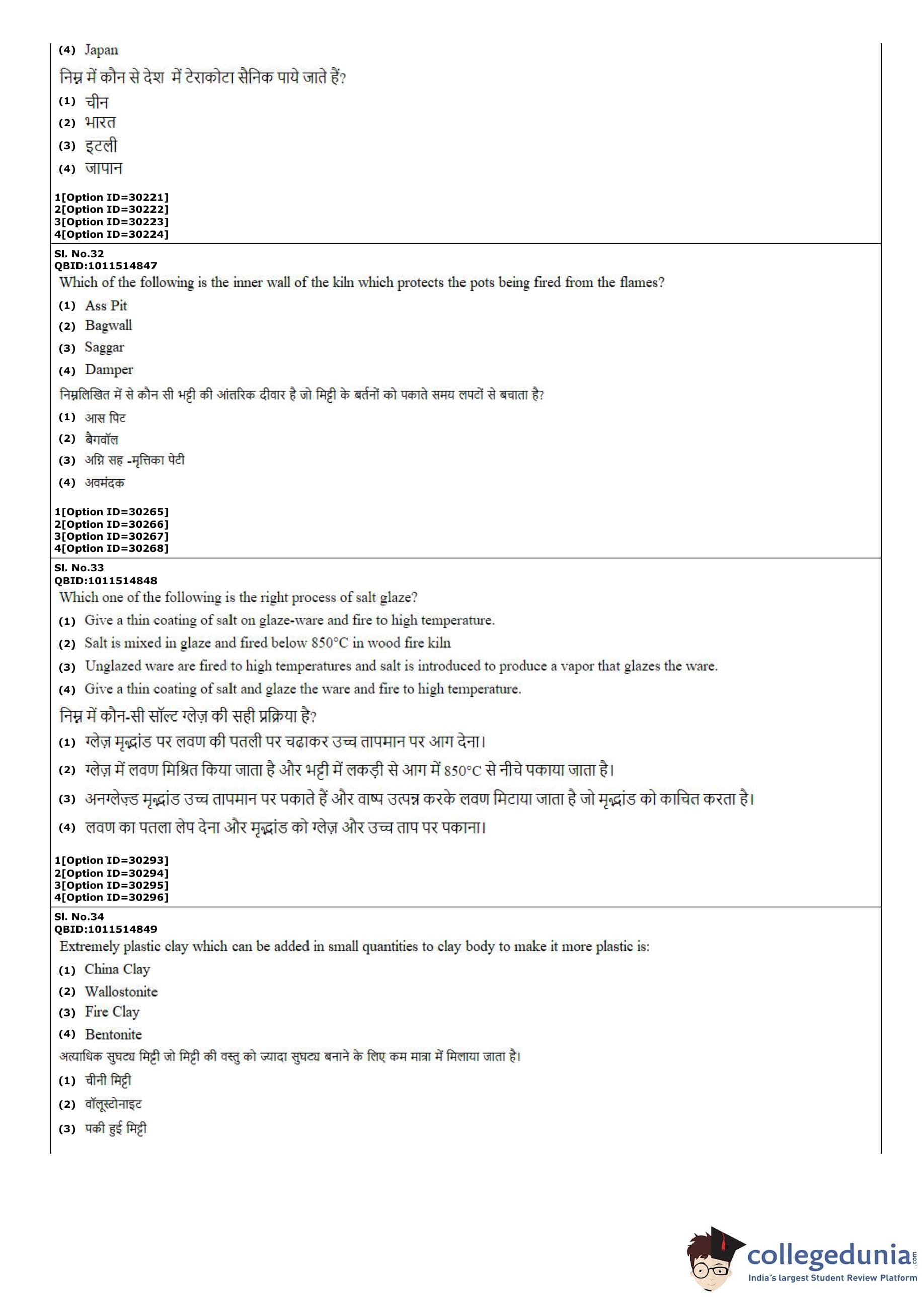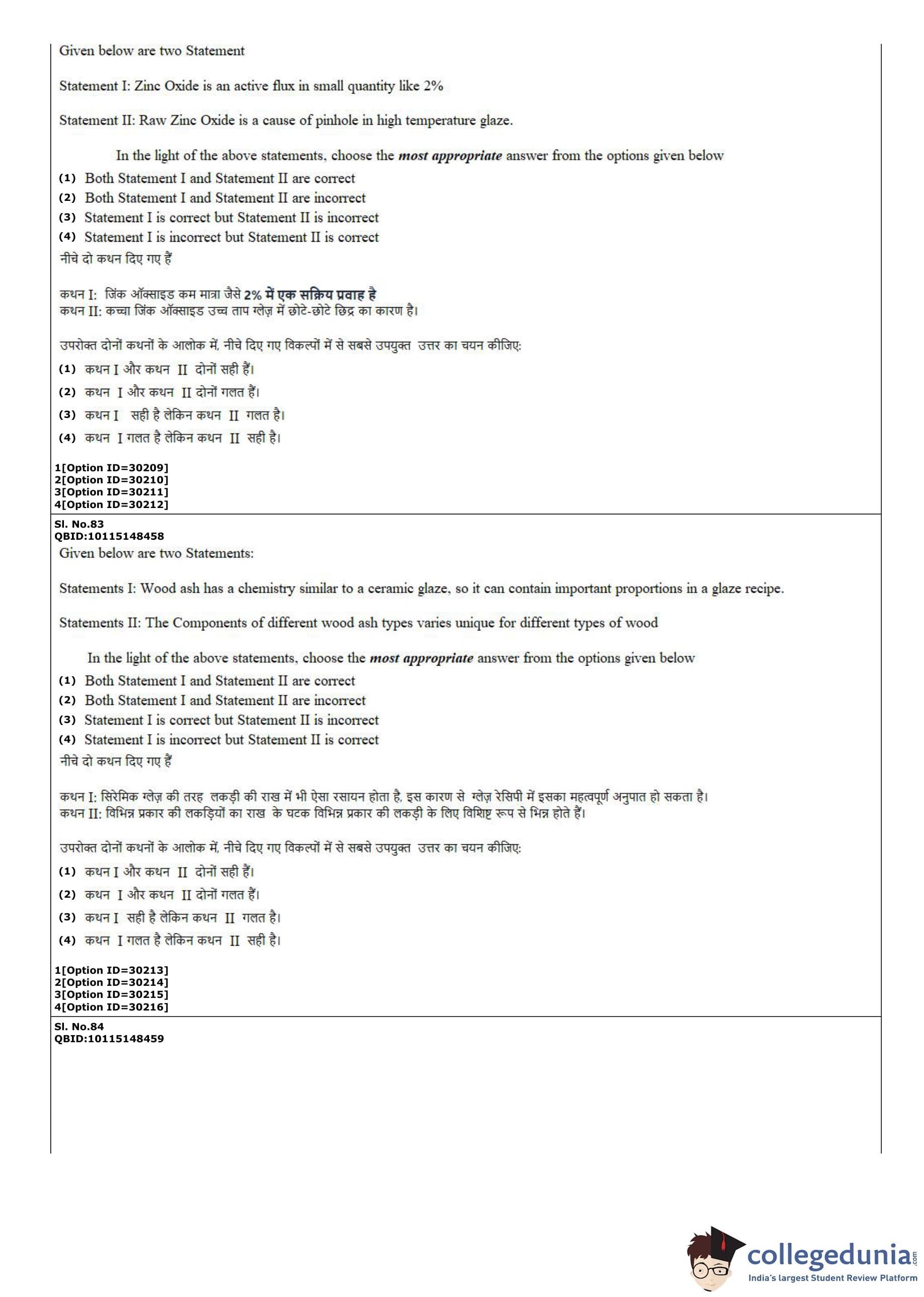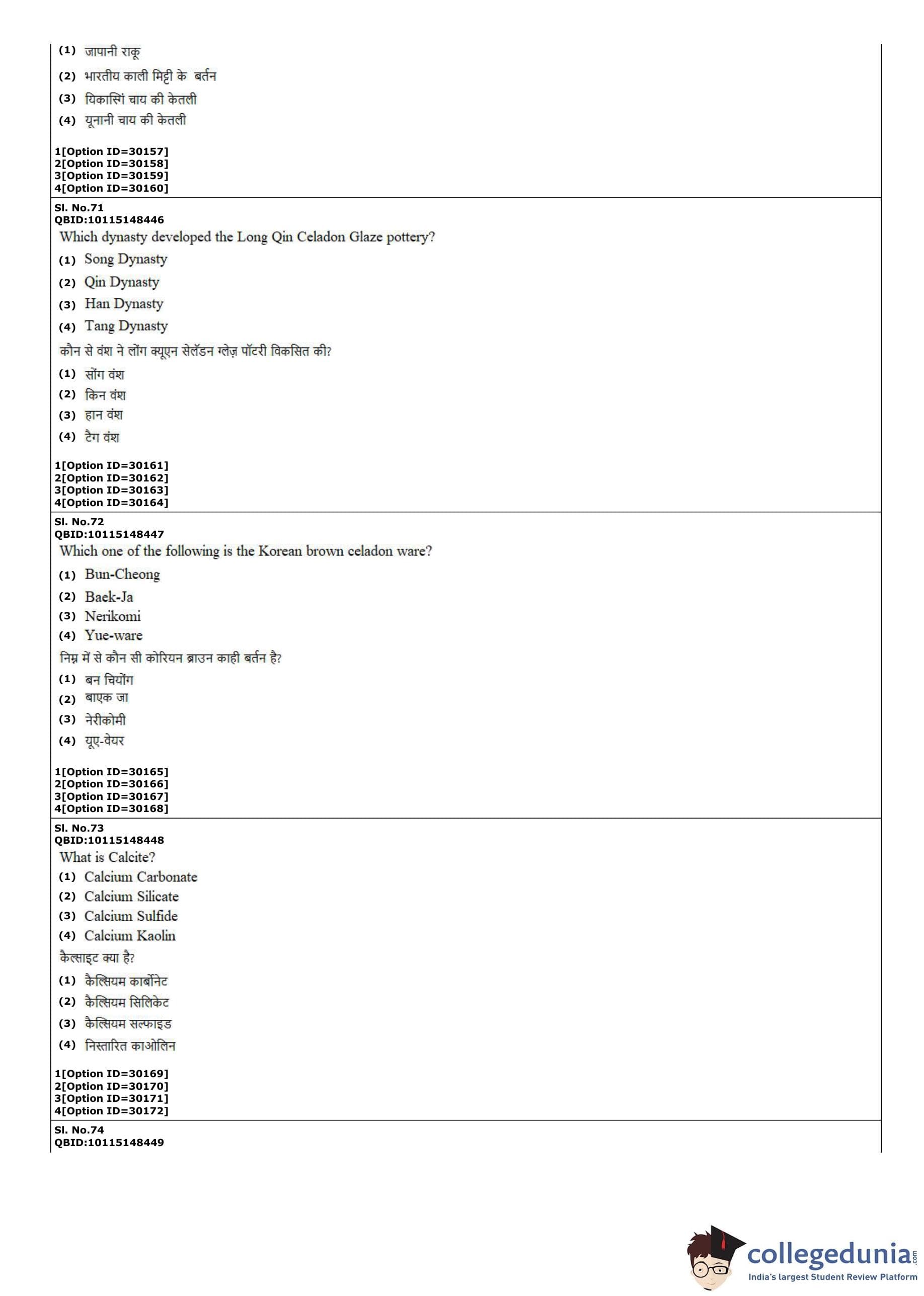 CUET PG 2022 Pottery & Ceramics Question Paper with Answer Key PDF