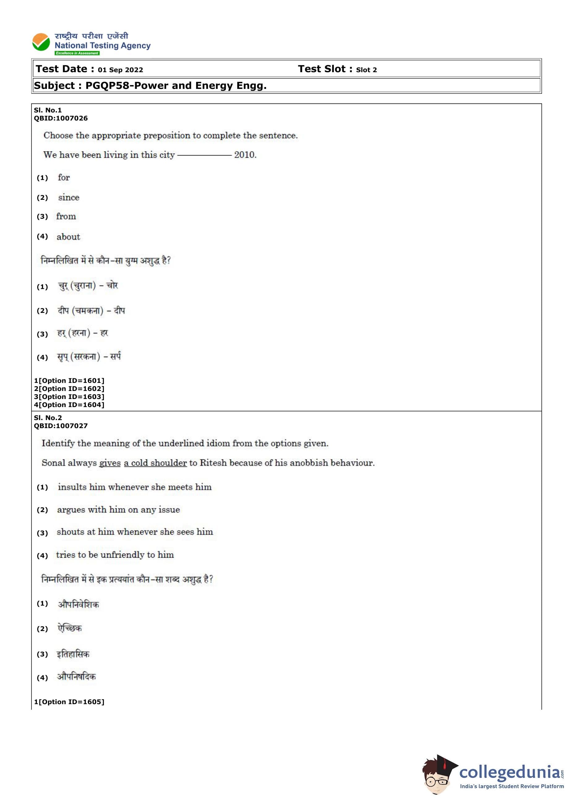 | CUET PG Power and Energy Engg Question Paper PDF | CUET PG Power and Energy Engg Answer Key PDF |