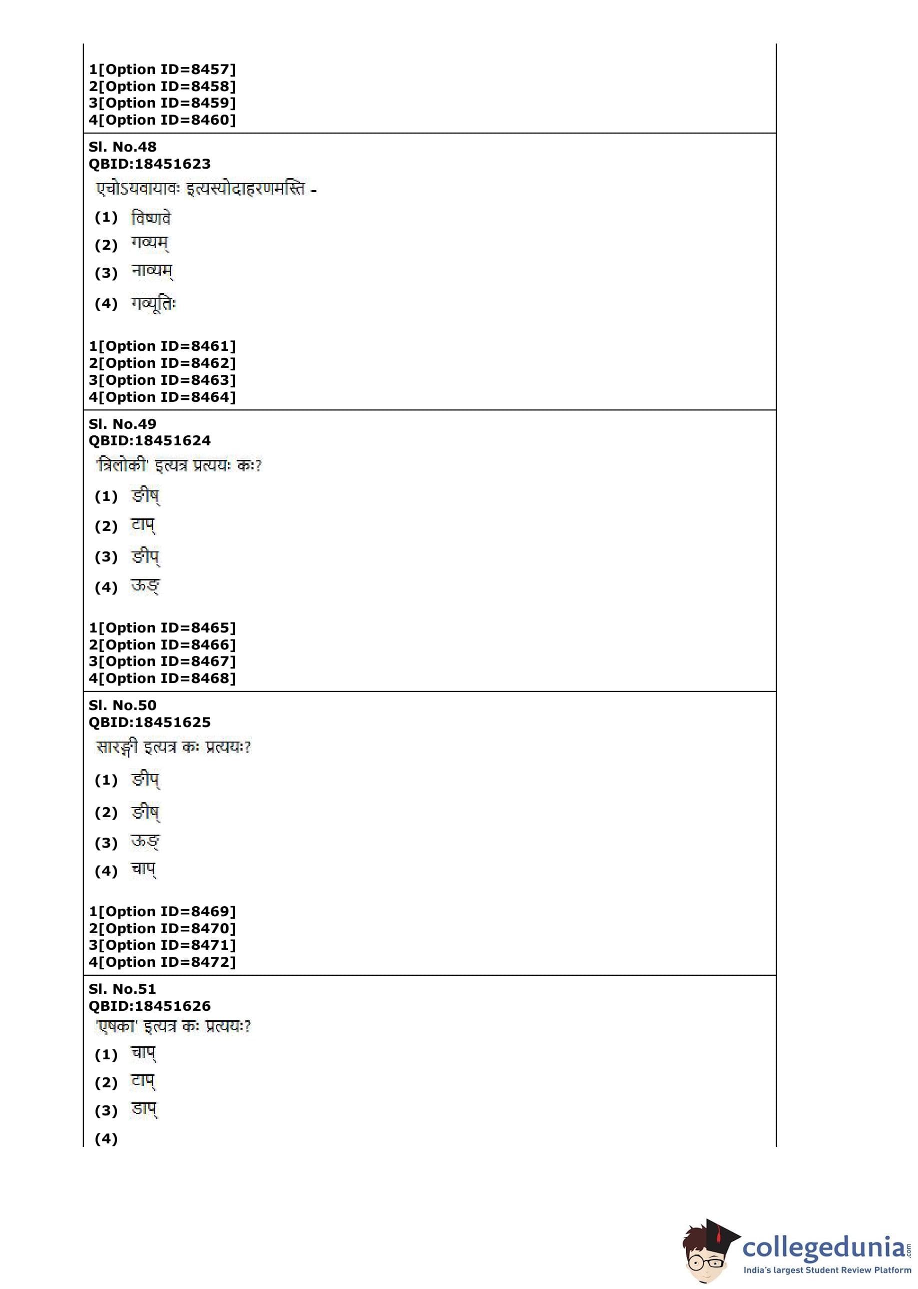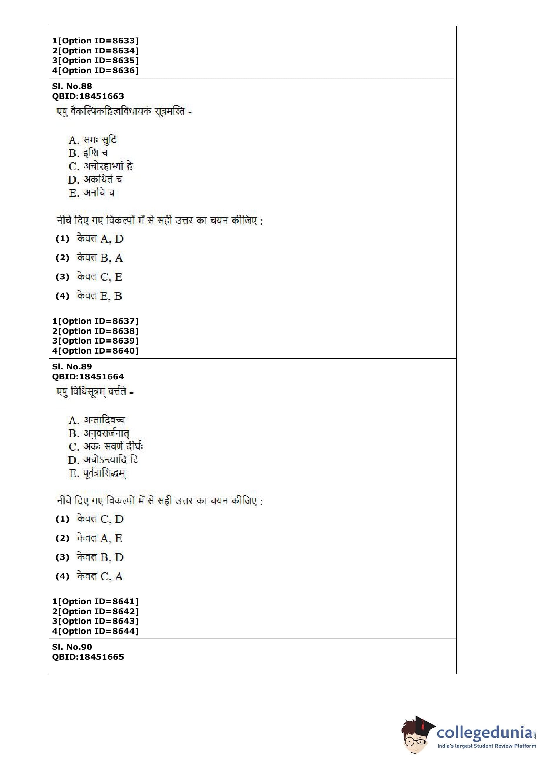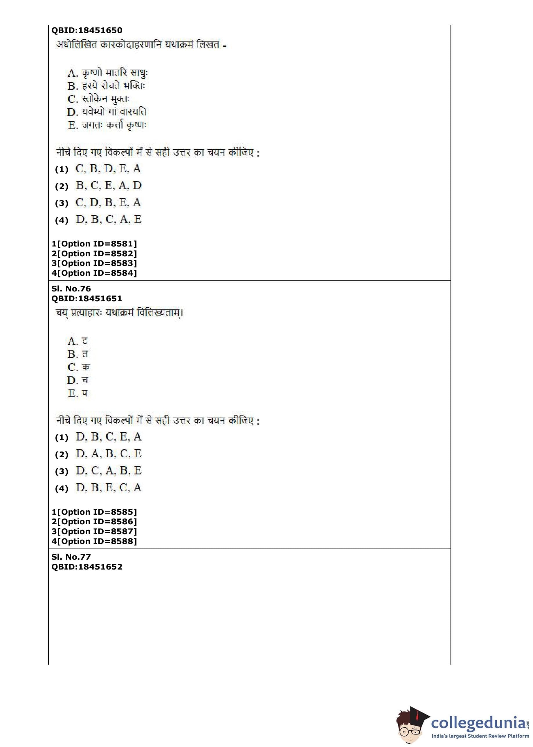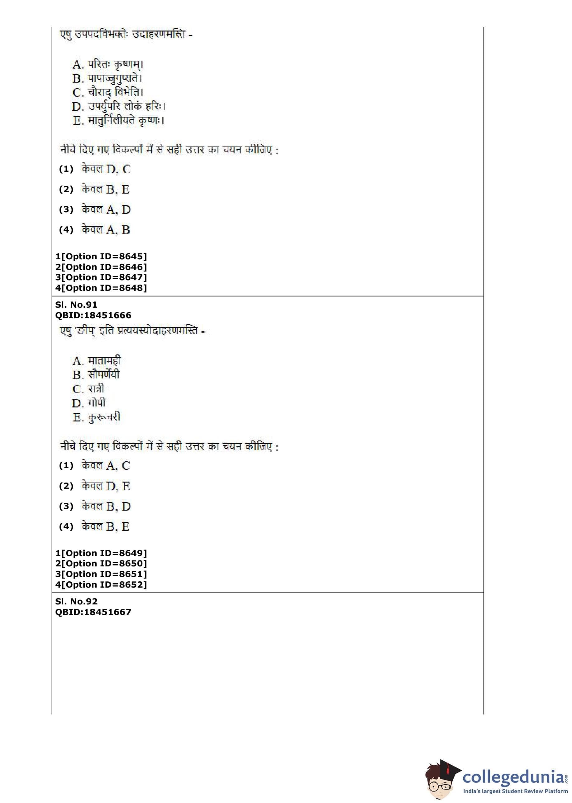 CUET PG 2022 Prachin Vyakarana Question Paper with Answer Key PDF
