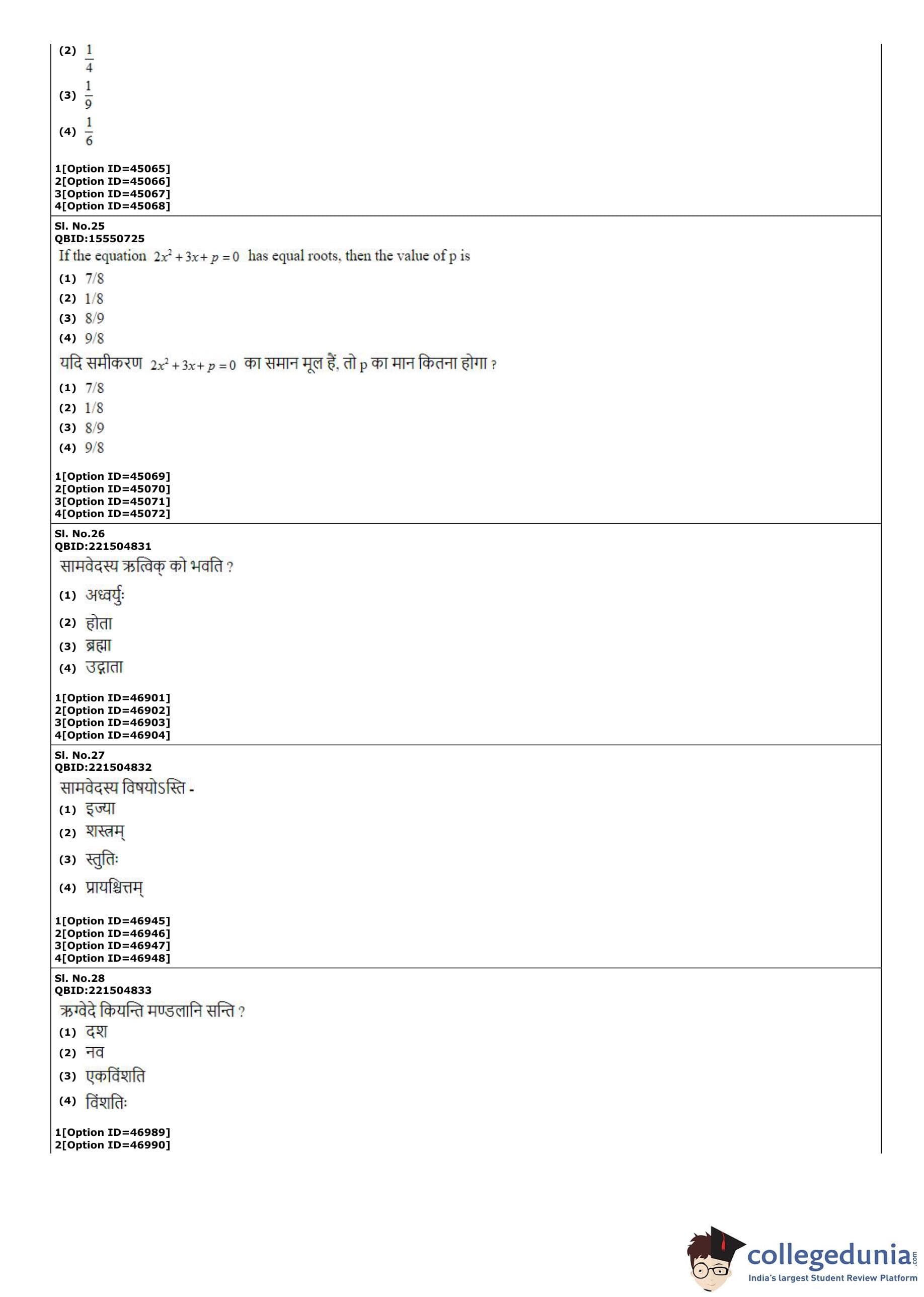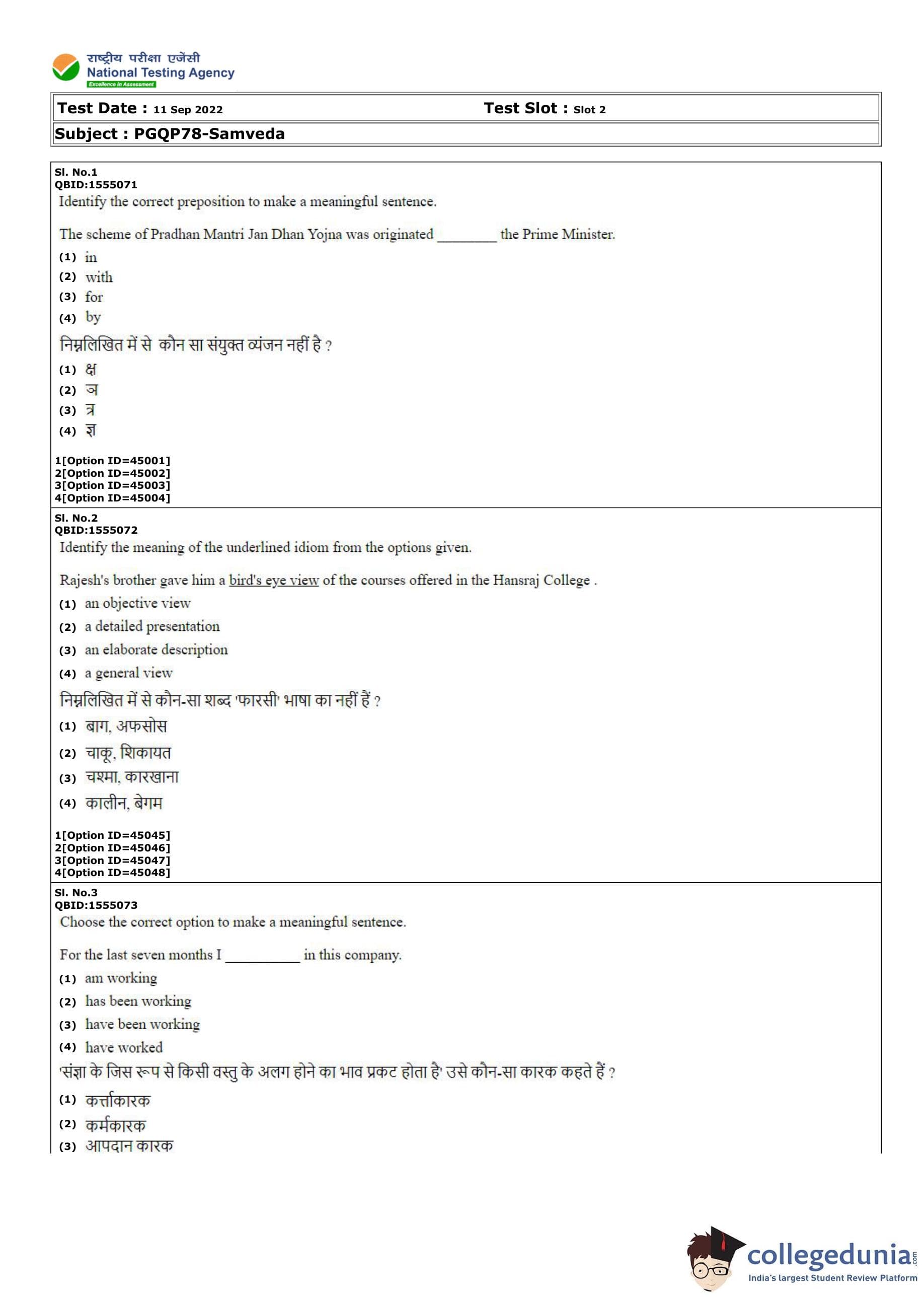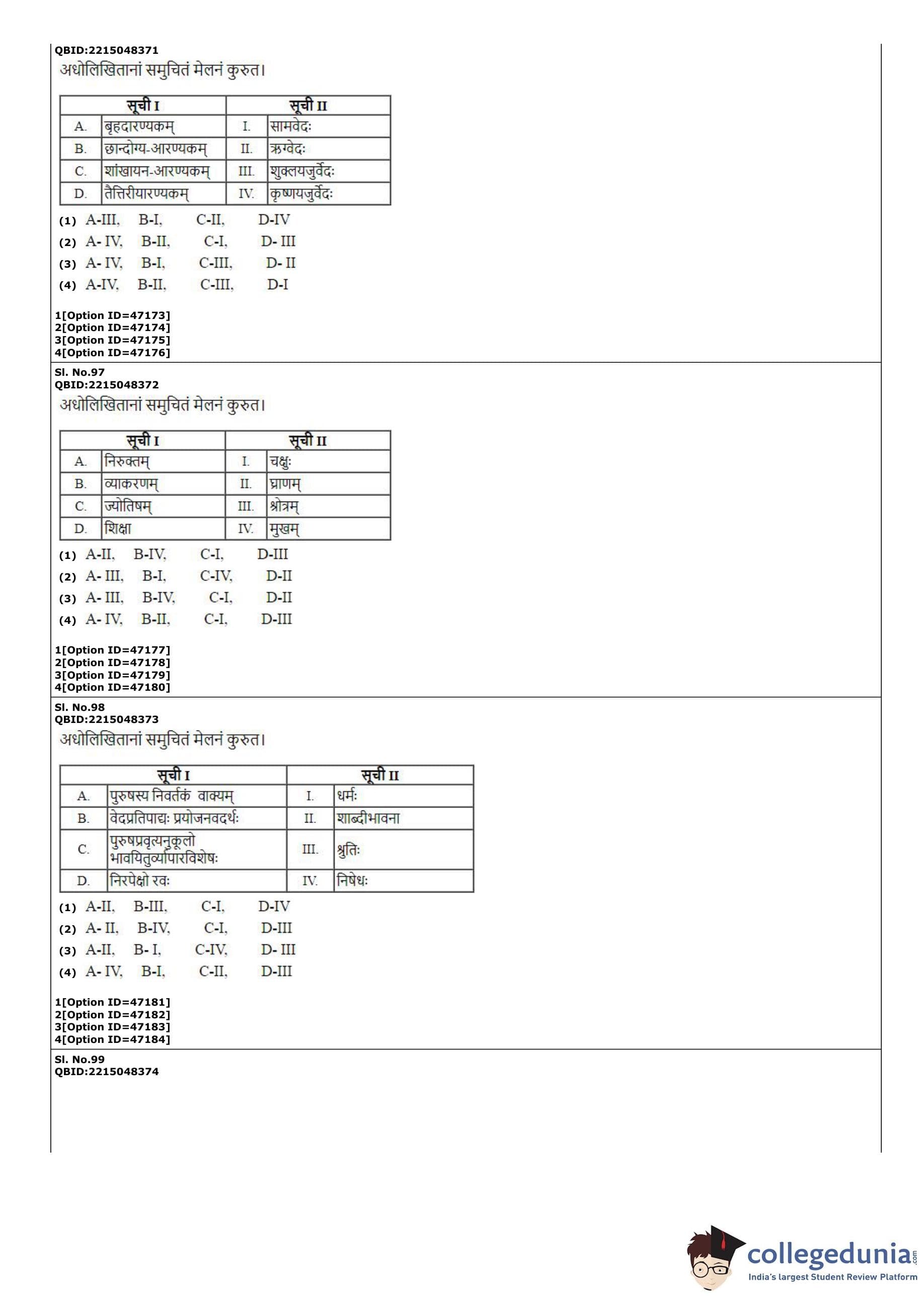 | CUET PG Samveda Question Paper PDF | CUET PG Samveda Answer Key PDF |