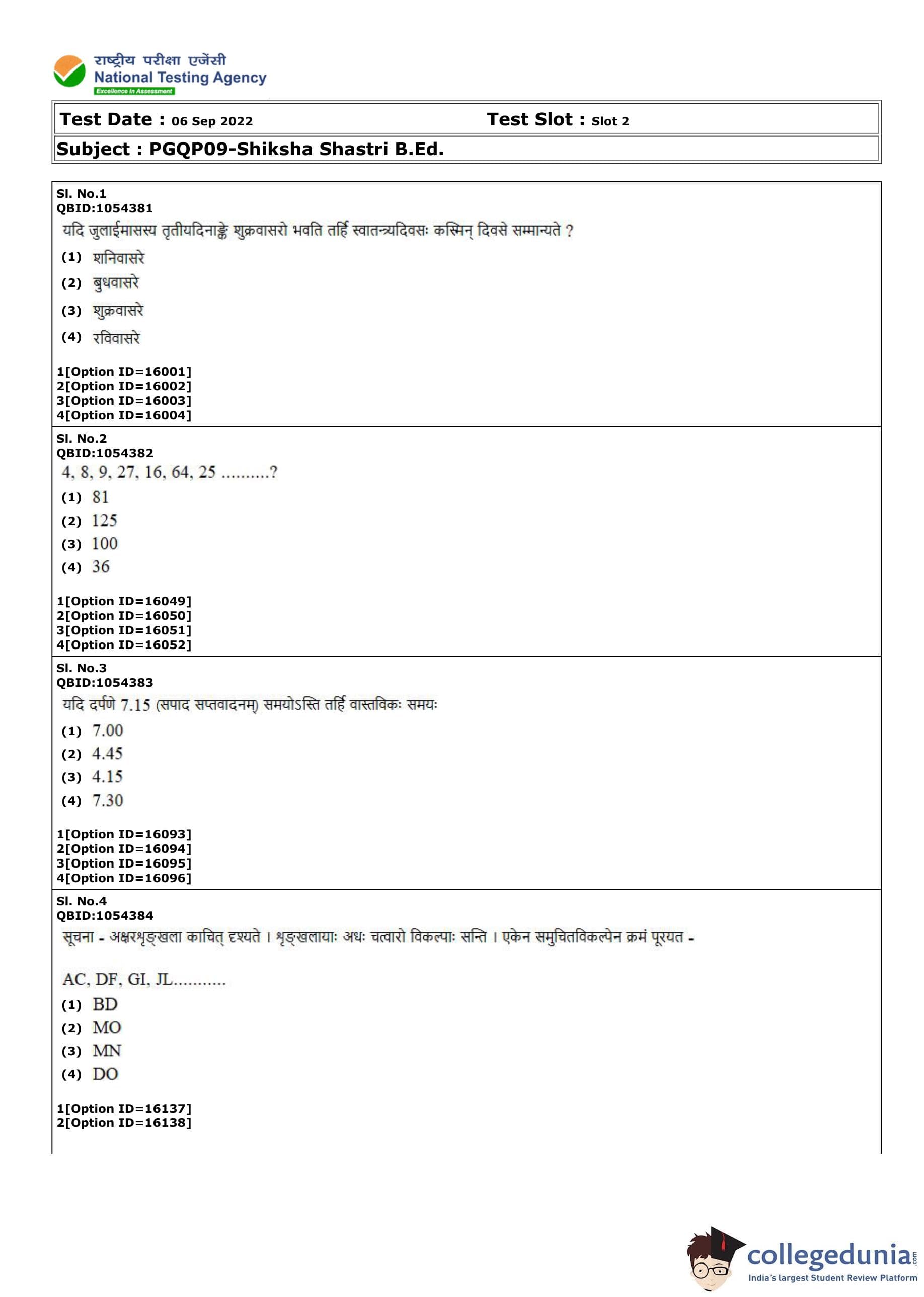 CUET PG Shiksha Shastri B.Ed Question Paper 2022 is available for download. CUET PG 2022 Shiksha Shastri B.Ed paper was conducted by National Testing Agency (NTA) on September 6, 2022 in Shift 2. The question paper comprised a total of 100 questions.