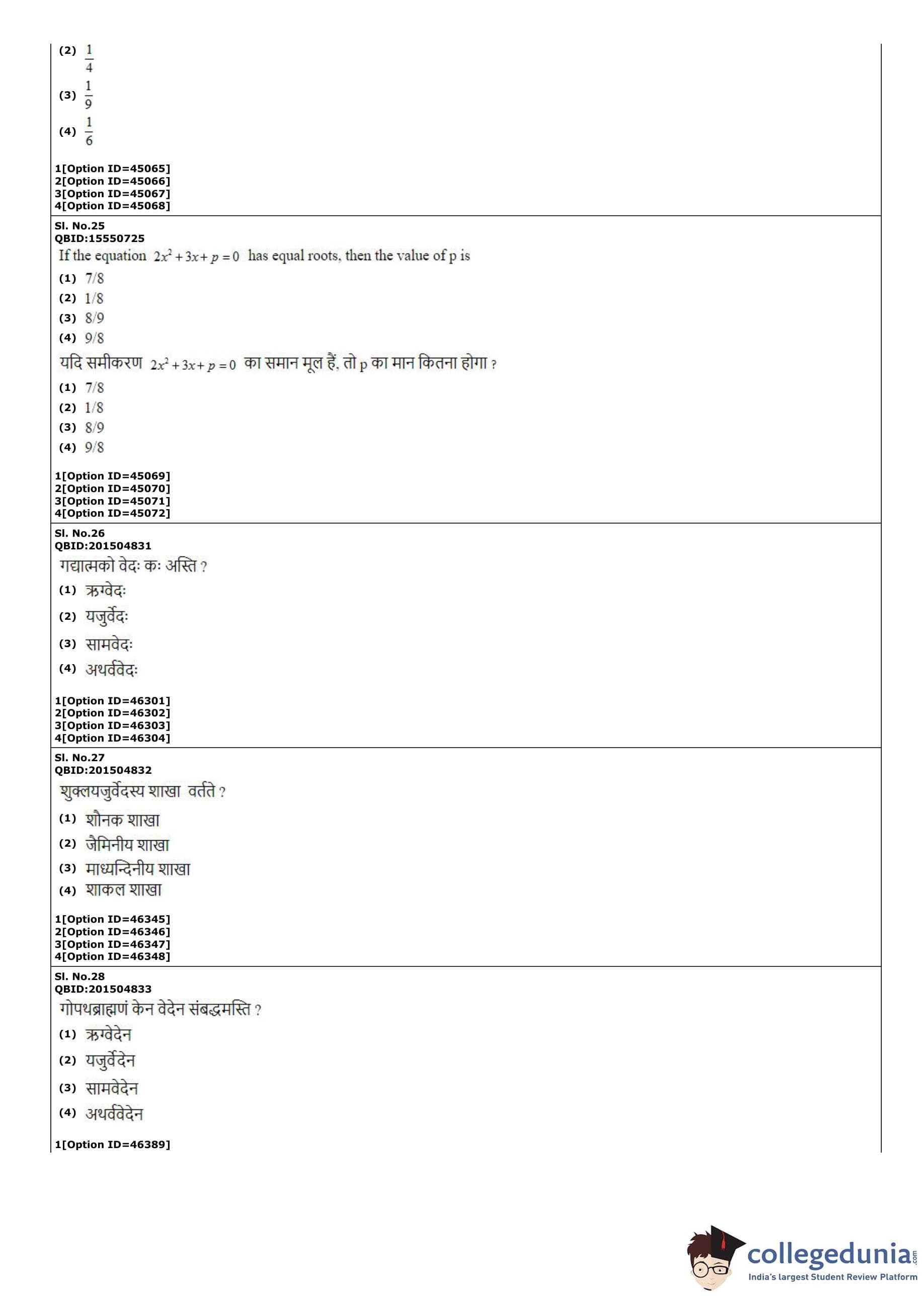 | CUET PG Shukla Yajurveda Question Paper PDF | CUET PG Shukla Yajurveda Answer Key PDF |