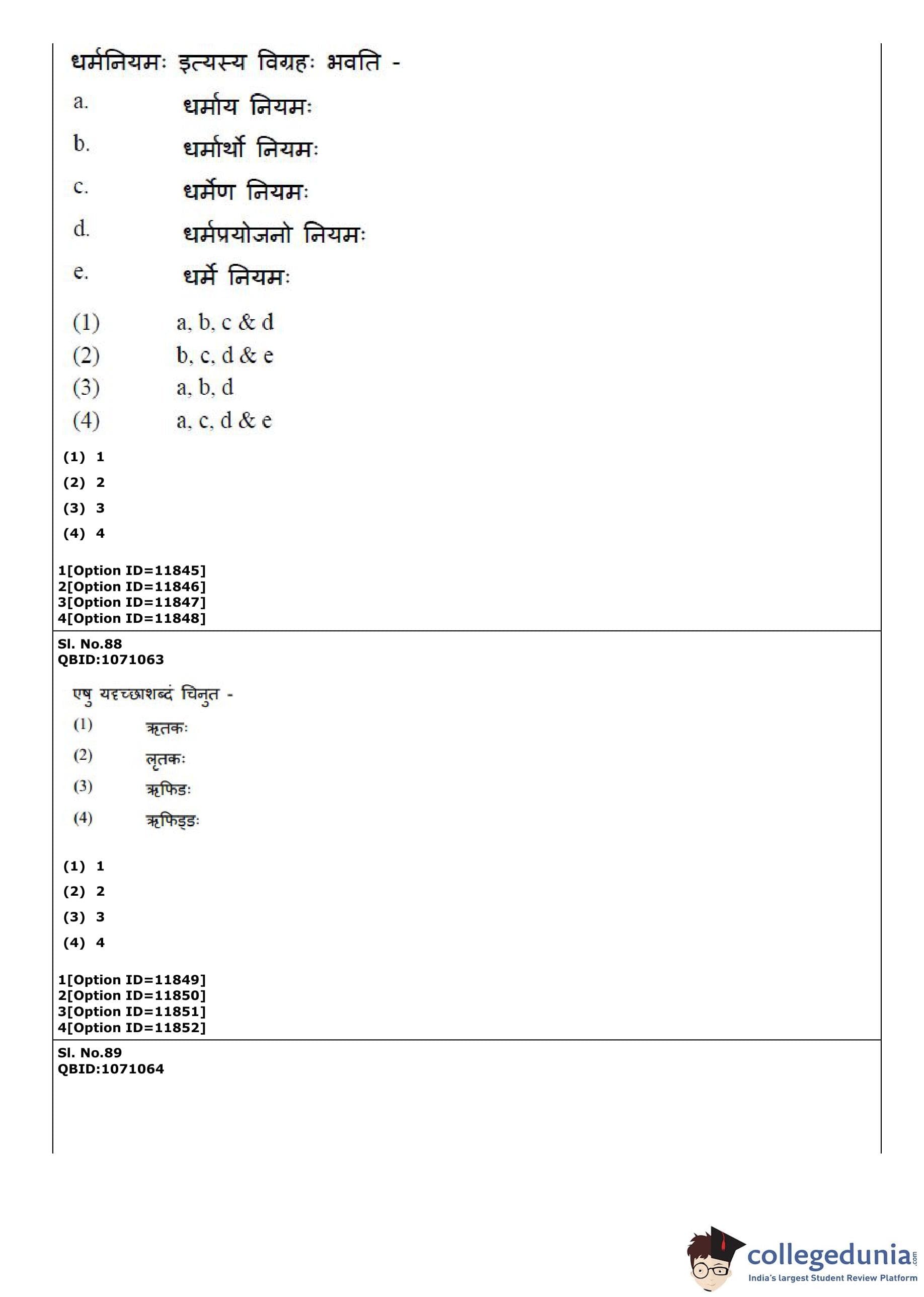 CUET PG 2022 Vyakaran Question Paper with Answer Key PDF