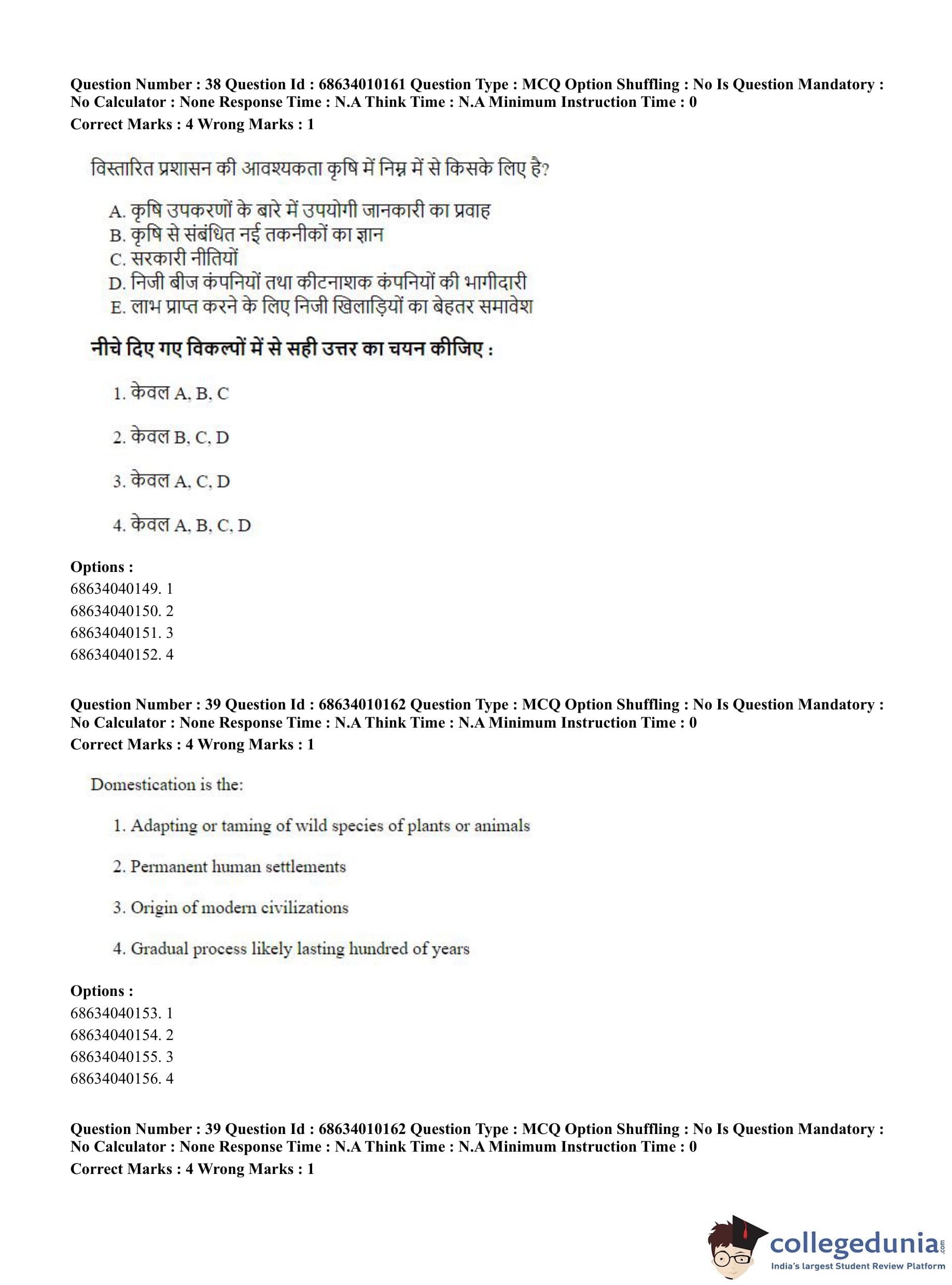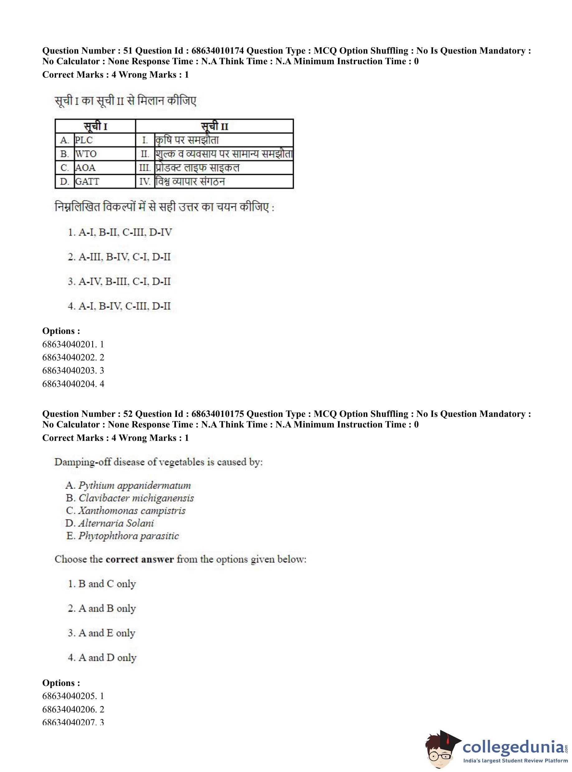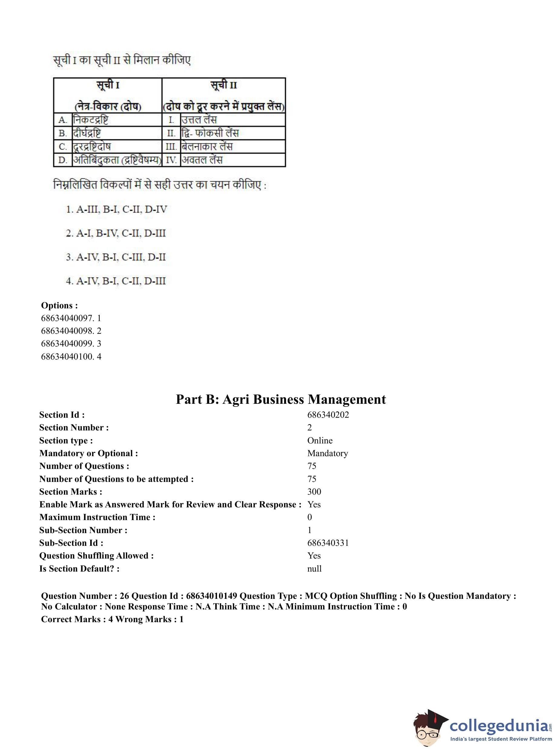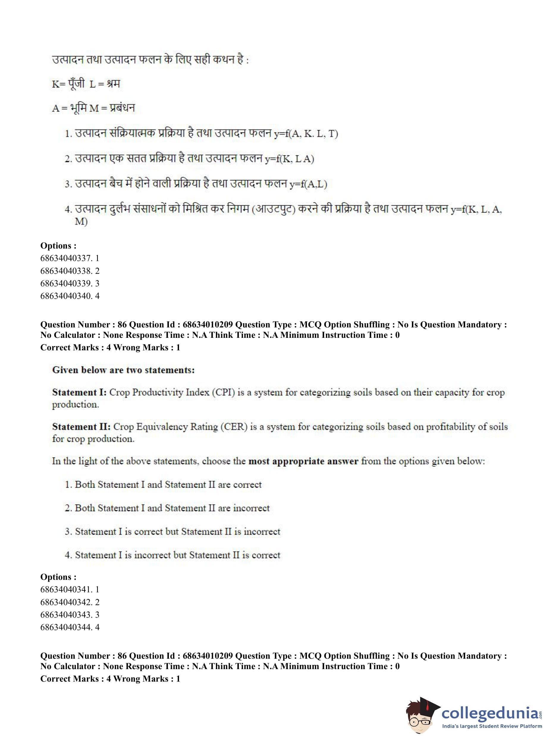 CUET PG 2023 Agri-Business Management Question Paper in Hindi (June 9 - Shift 1)