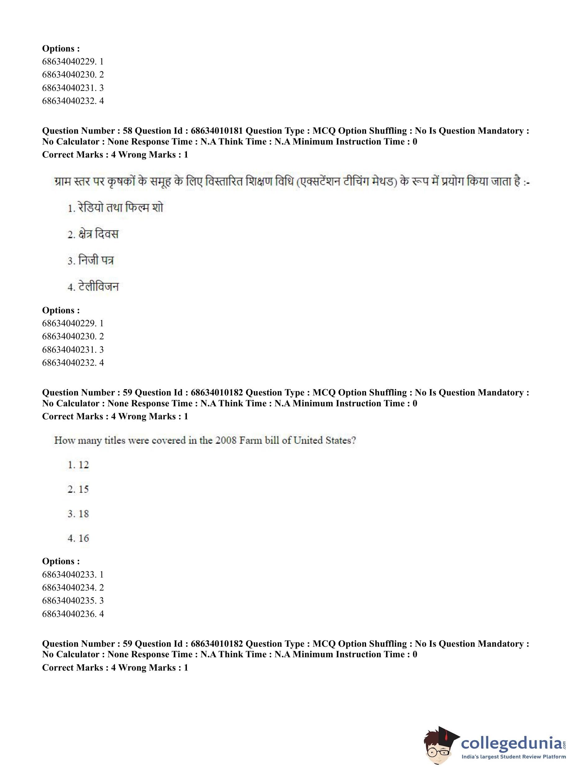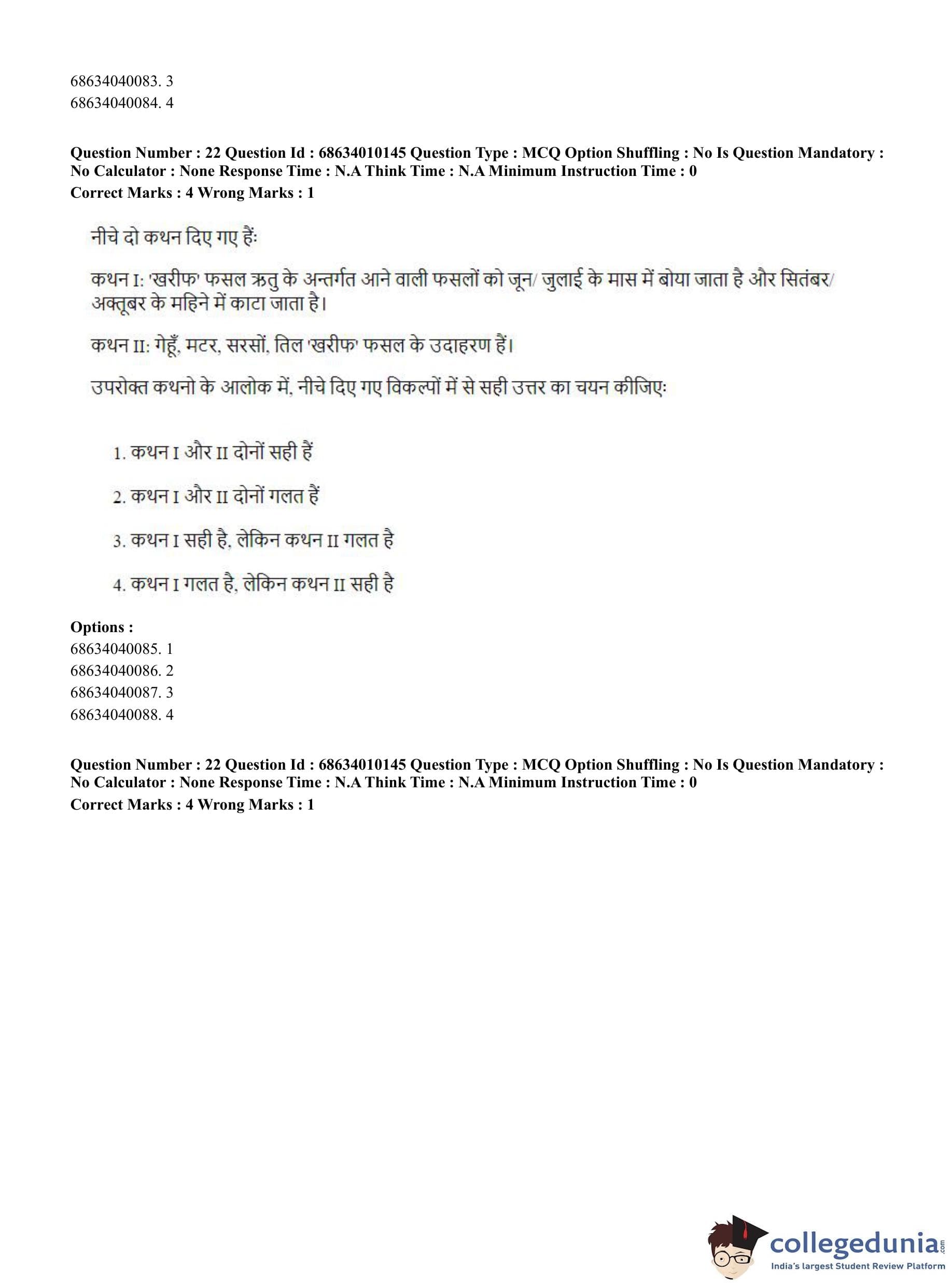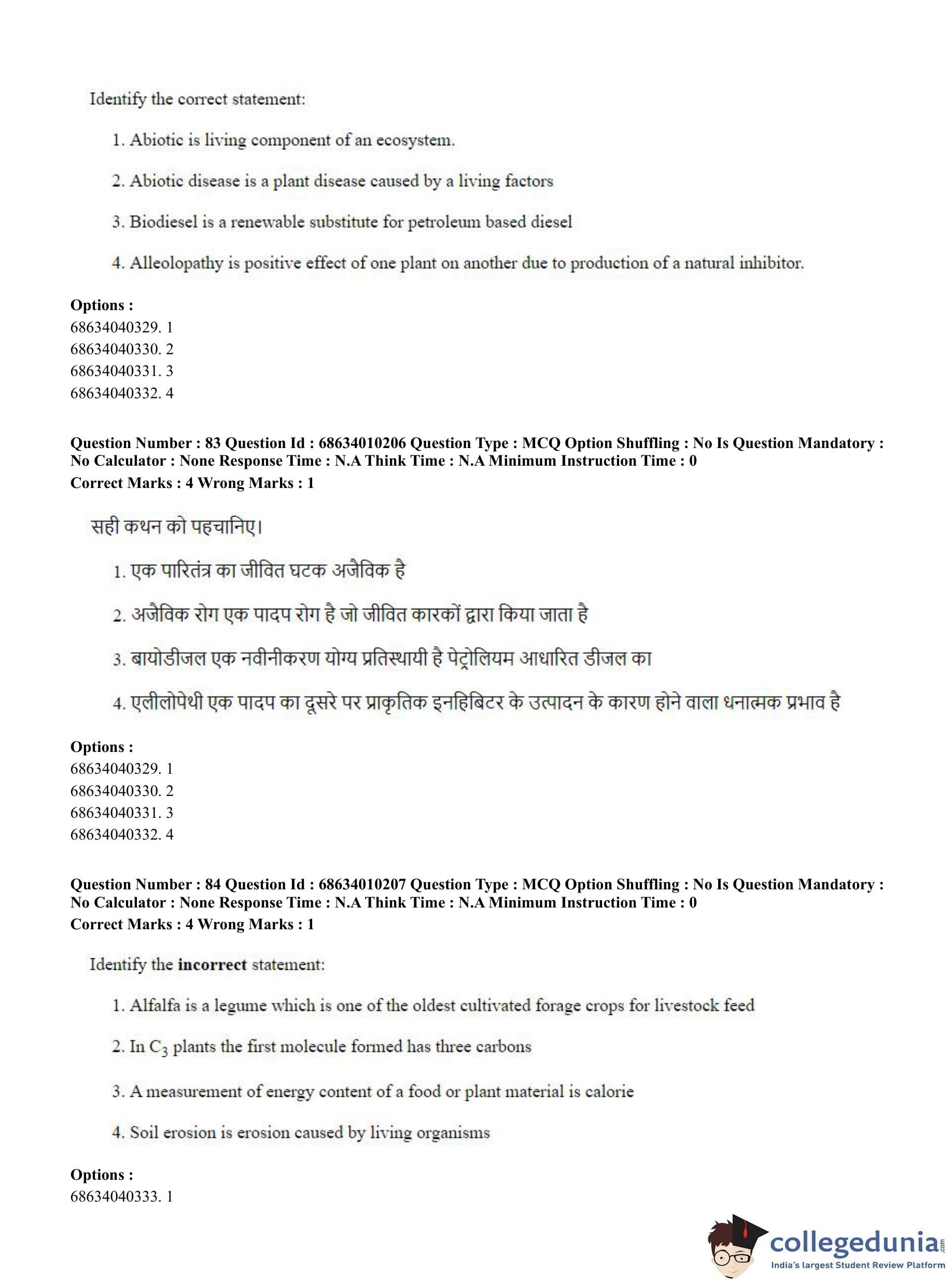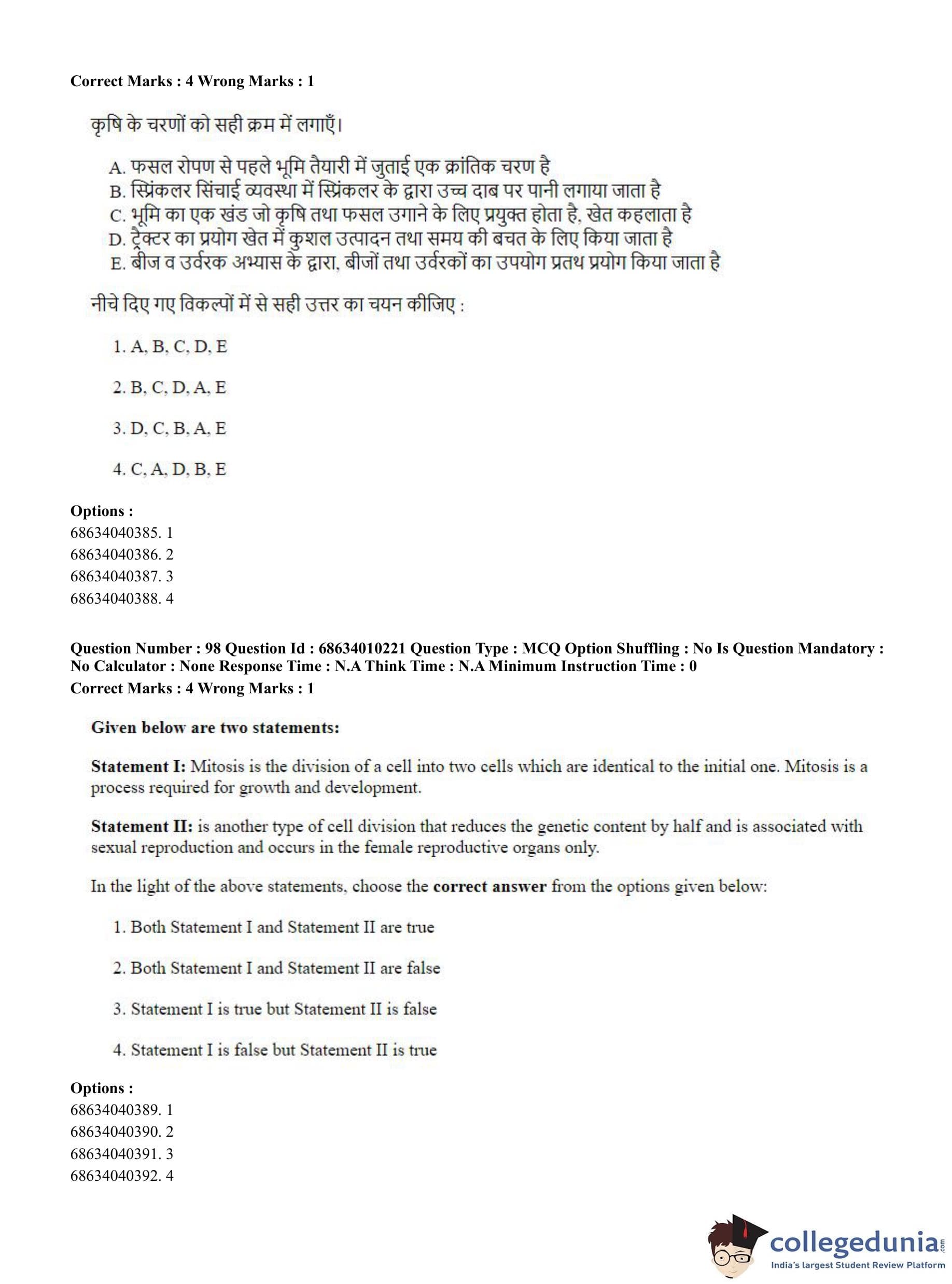 CUET PG 2023 Agri-Business Management Question Paper in Hindi (June 9 - Shift 1)