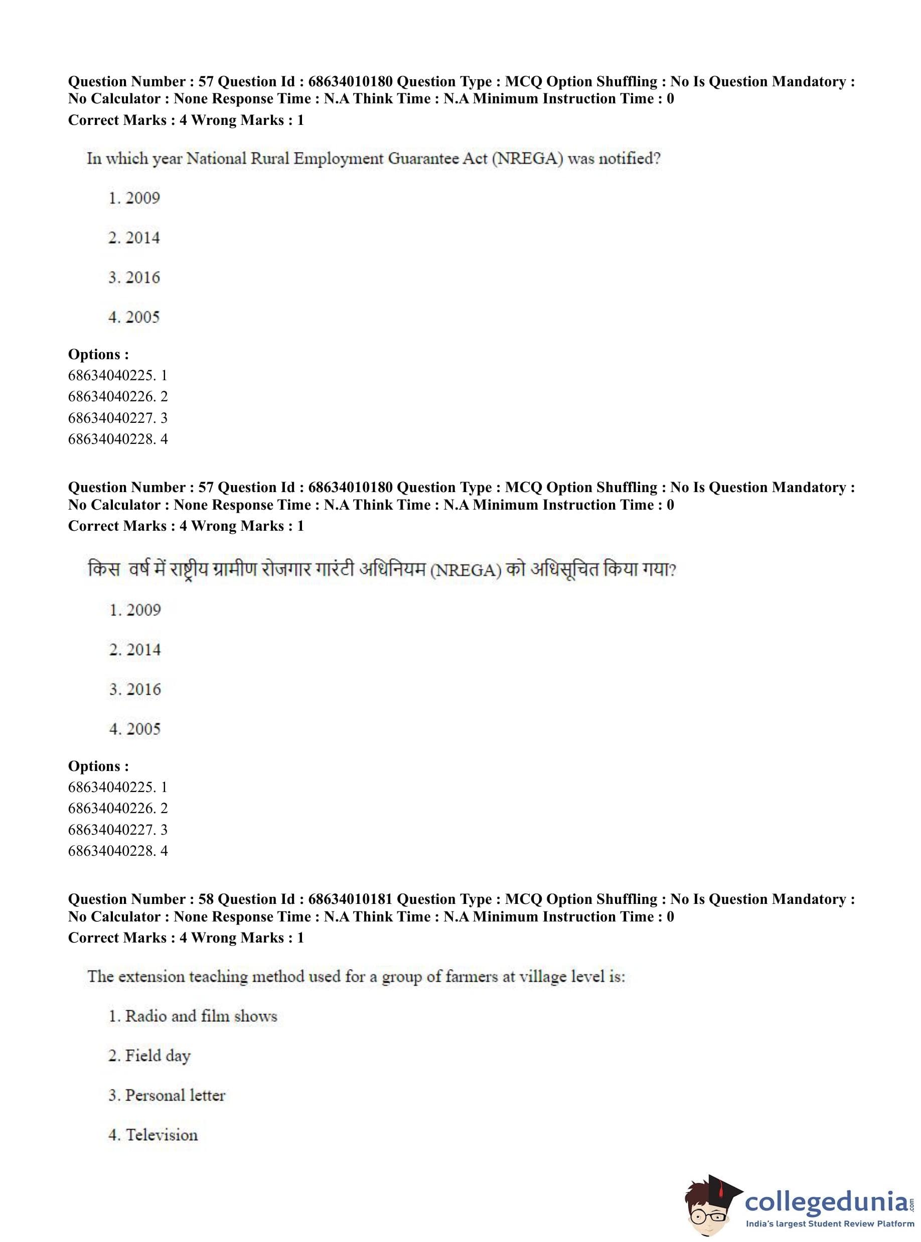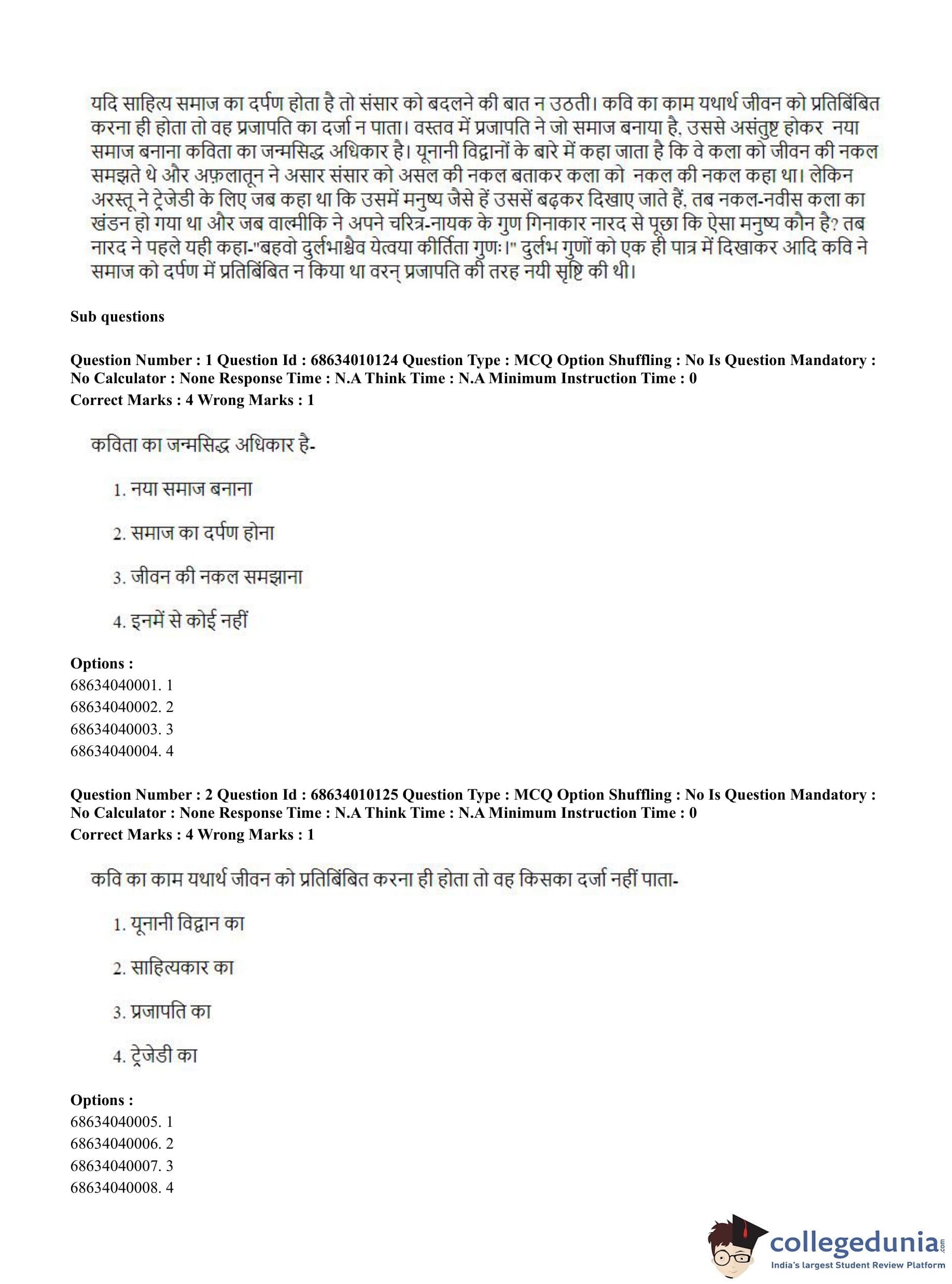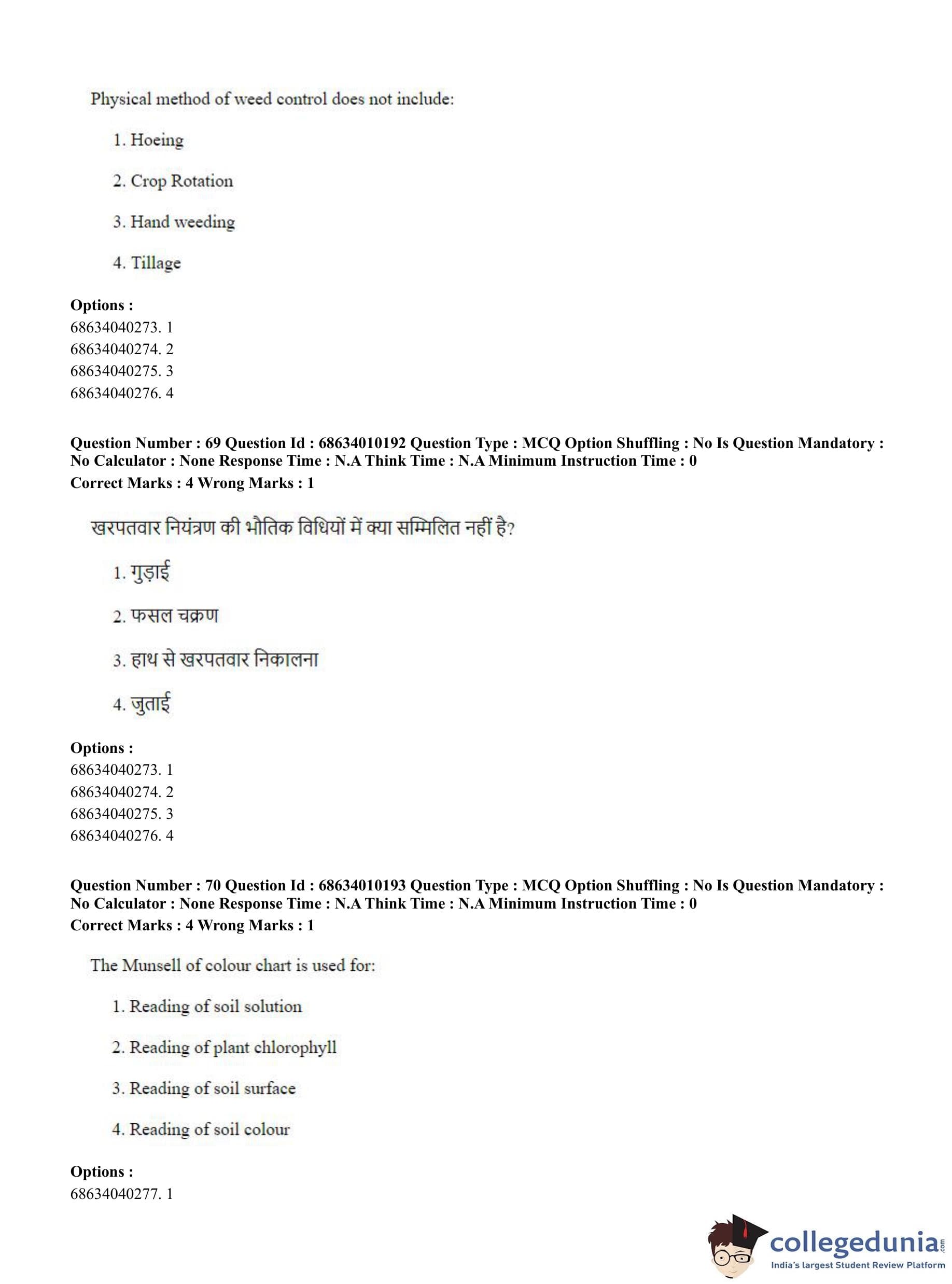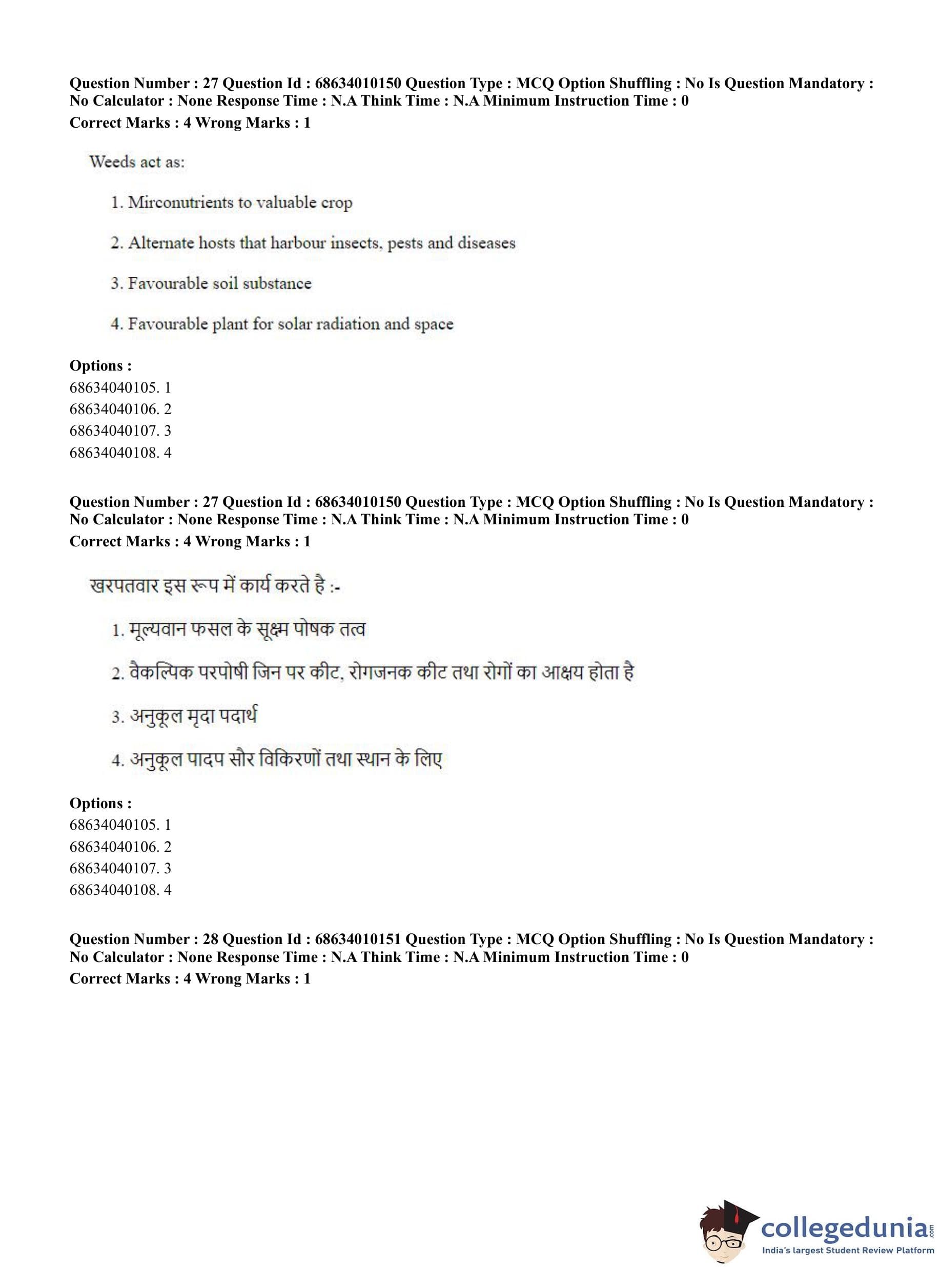 CUET PG 2023 Agri-Business Management Question Paper in Hindi (June 9 - Shift 1)