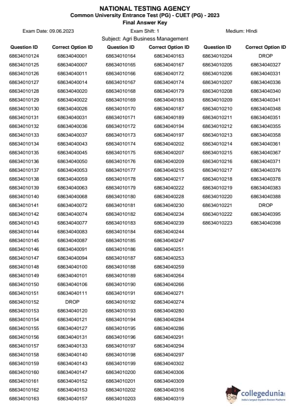 | CUET PG Agri-Business Management Question Paper 2023 PDF | CUET PG Agri-Business Management Answer Key 2023 PDF |