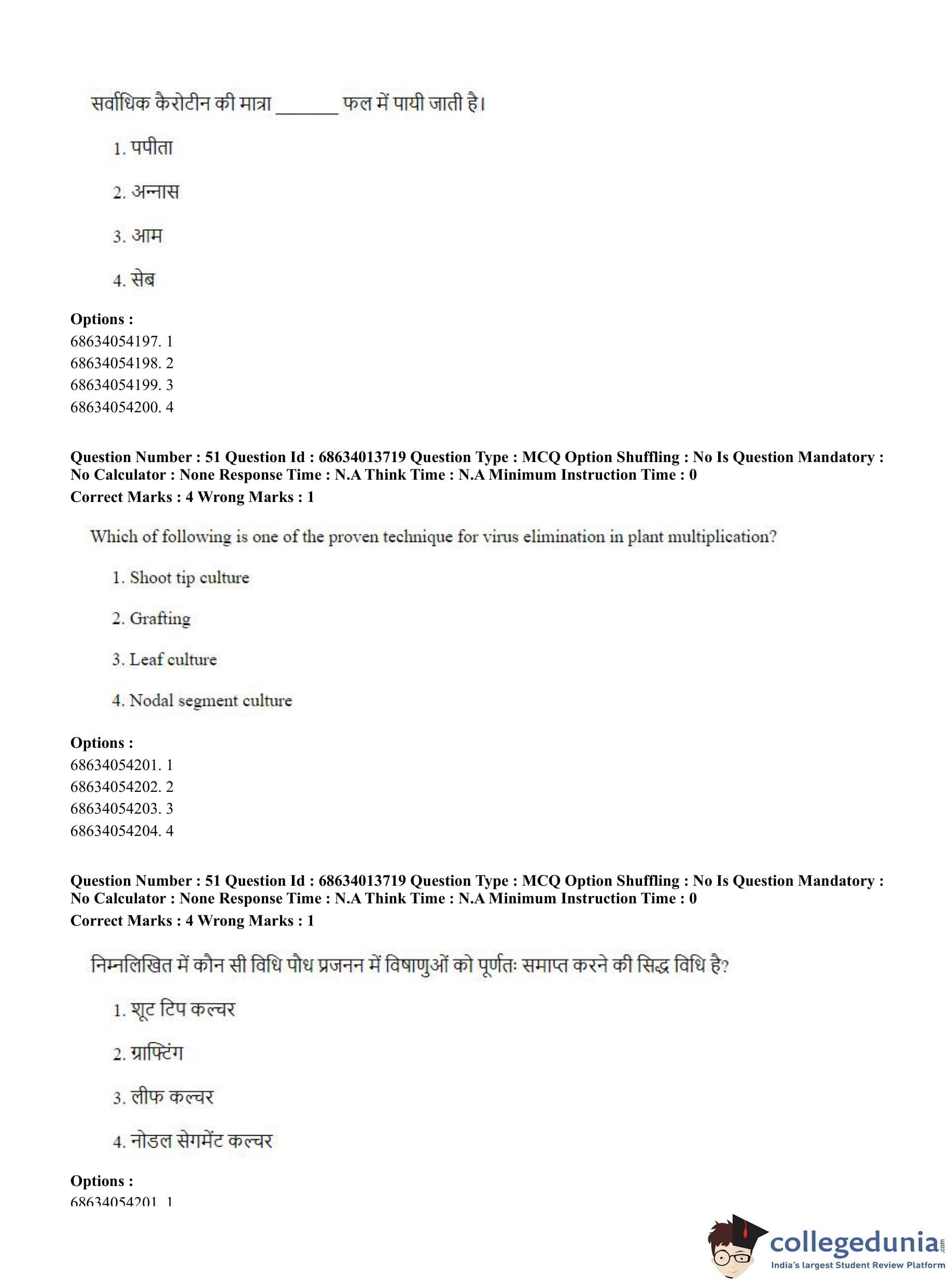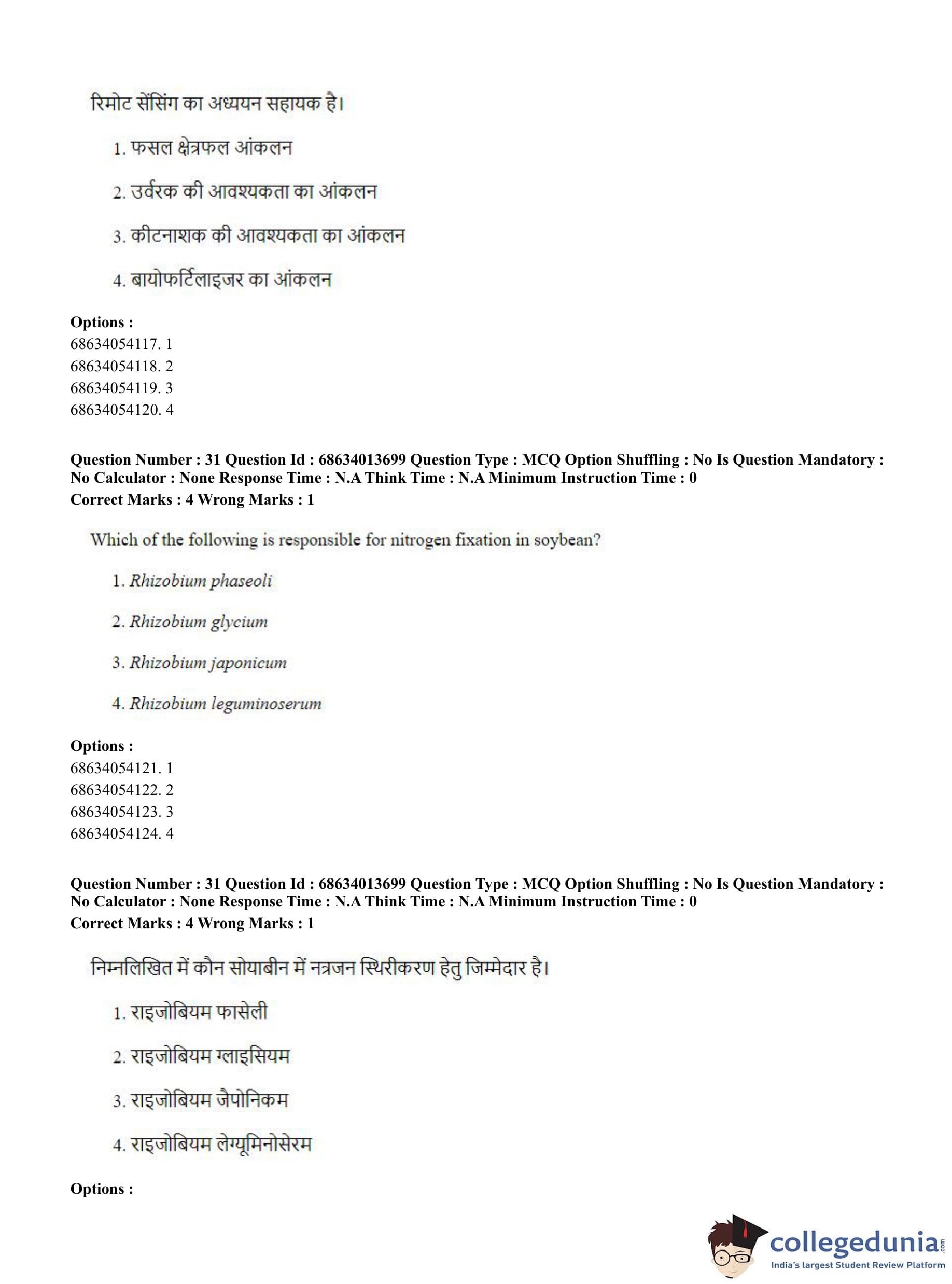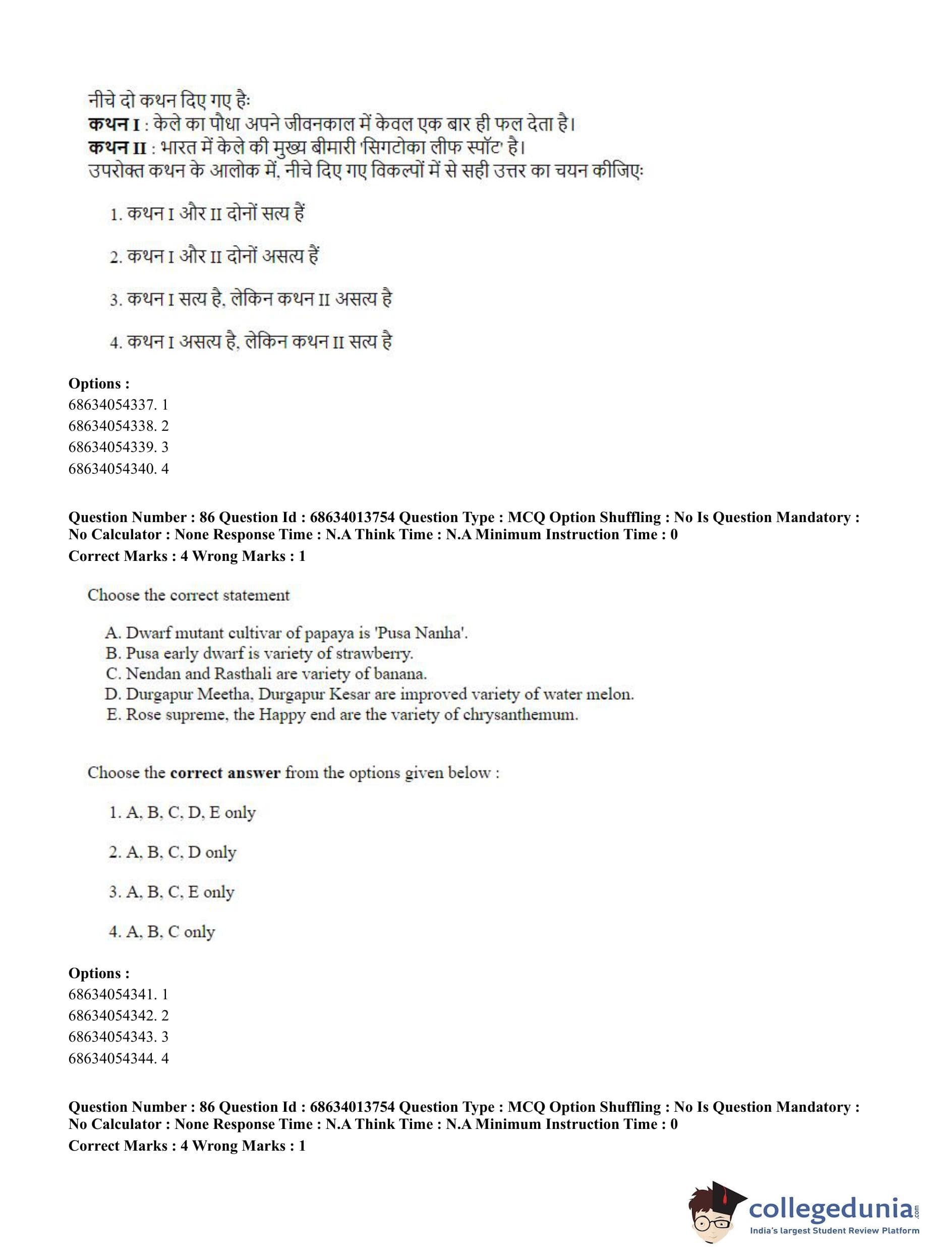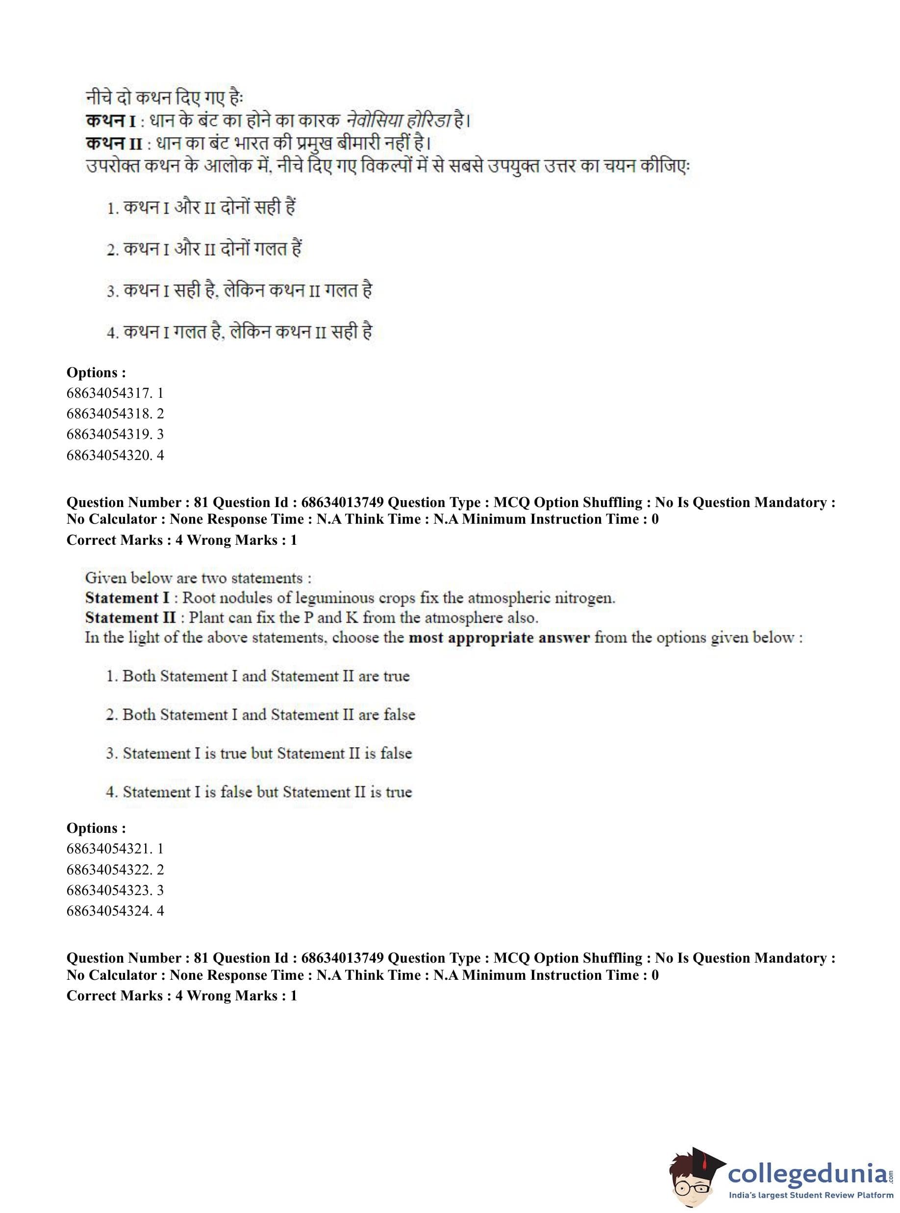 CUET PG 2023 Agricultural Science Question Paper in English (June 11 - Shift 3)