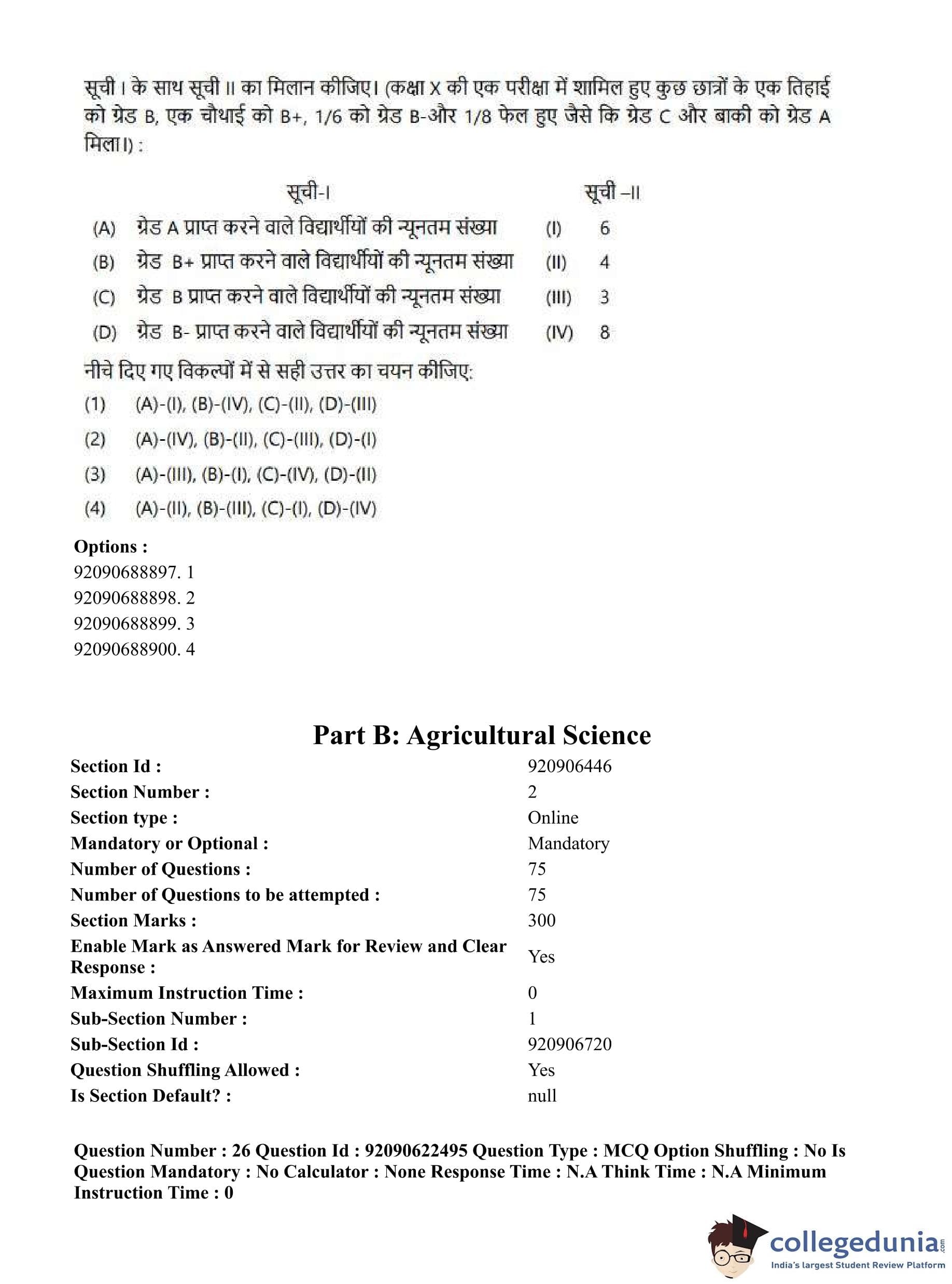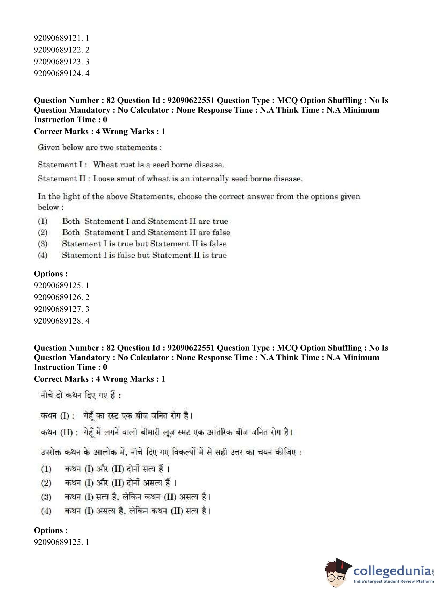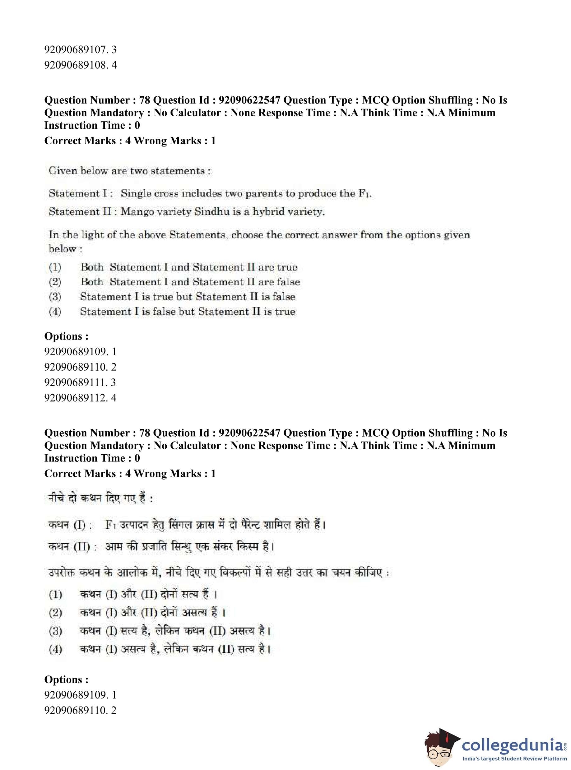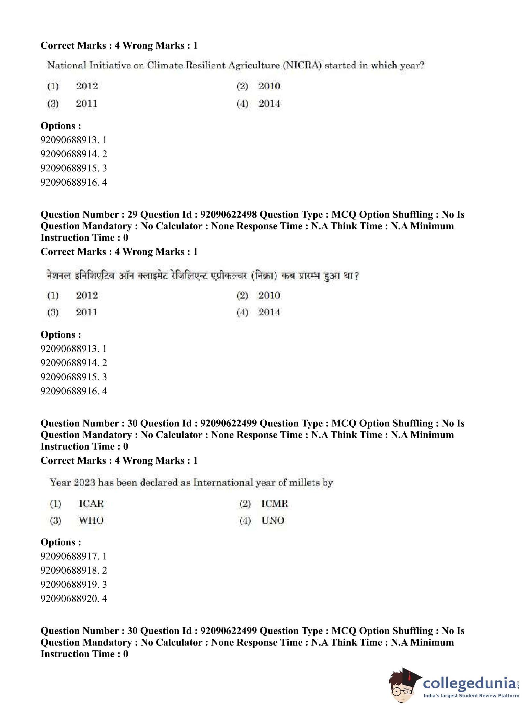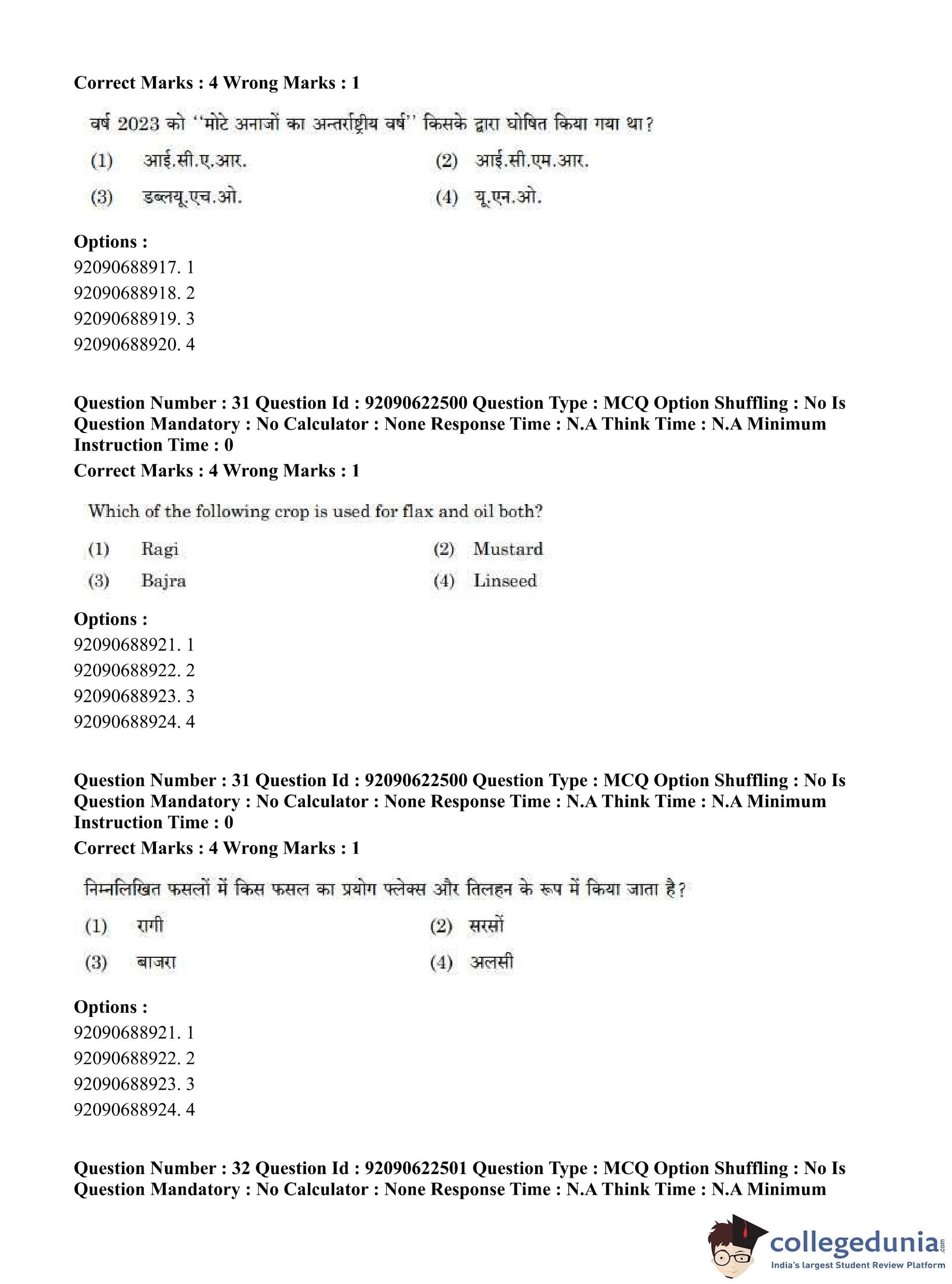 CUET PG 2023 Agricultural Science Question Paper in Hindi (June 24 - Shift 2)