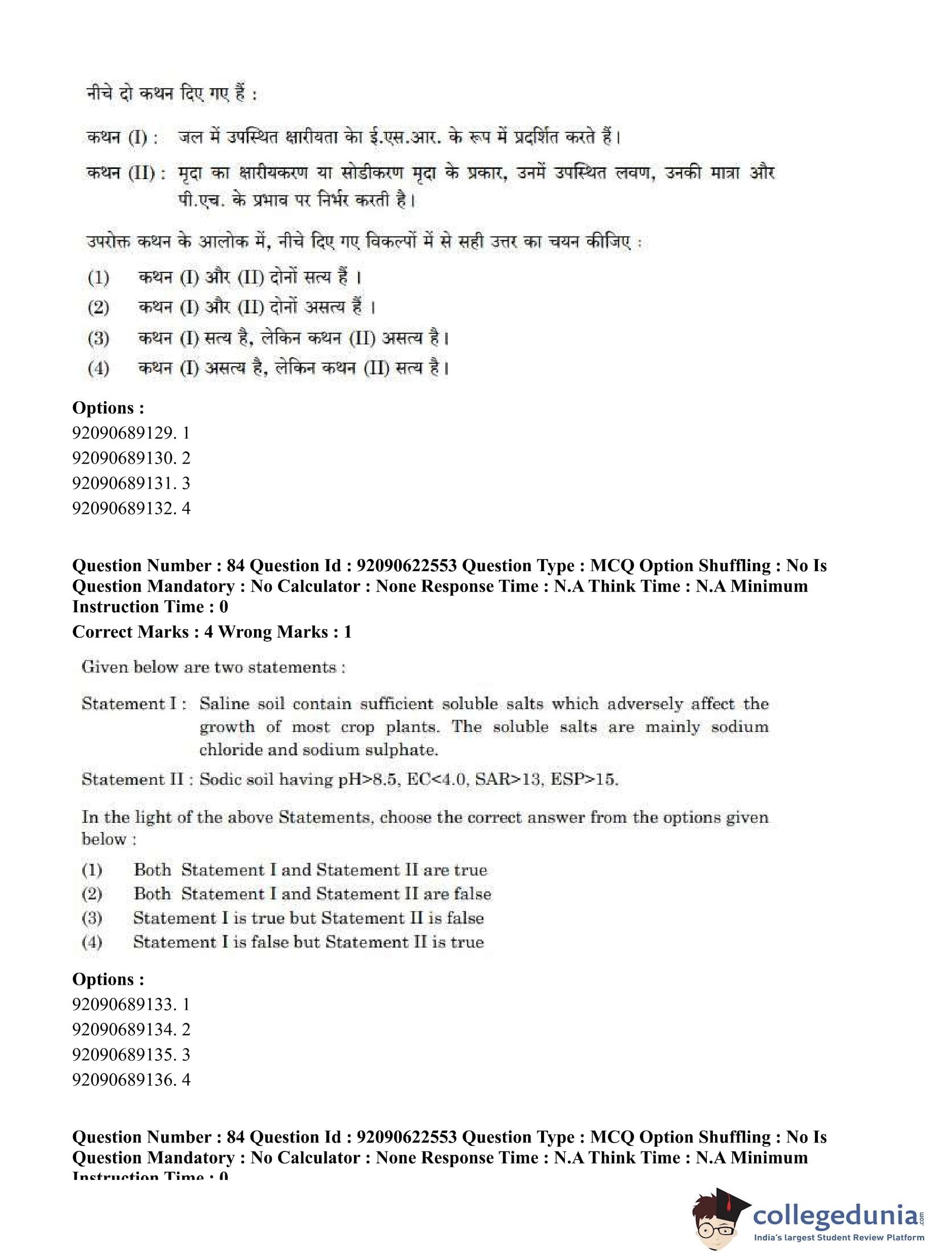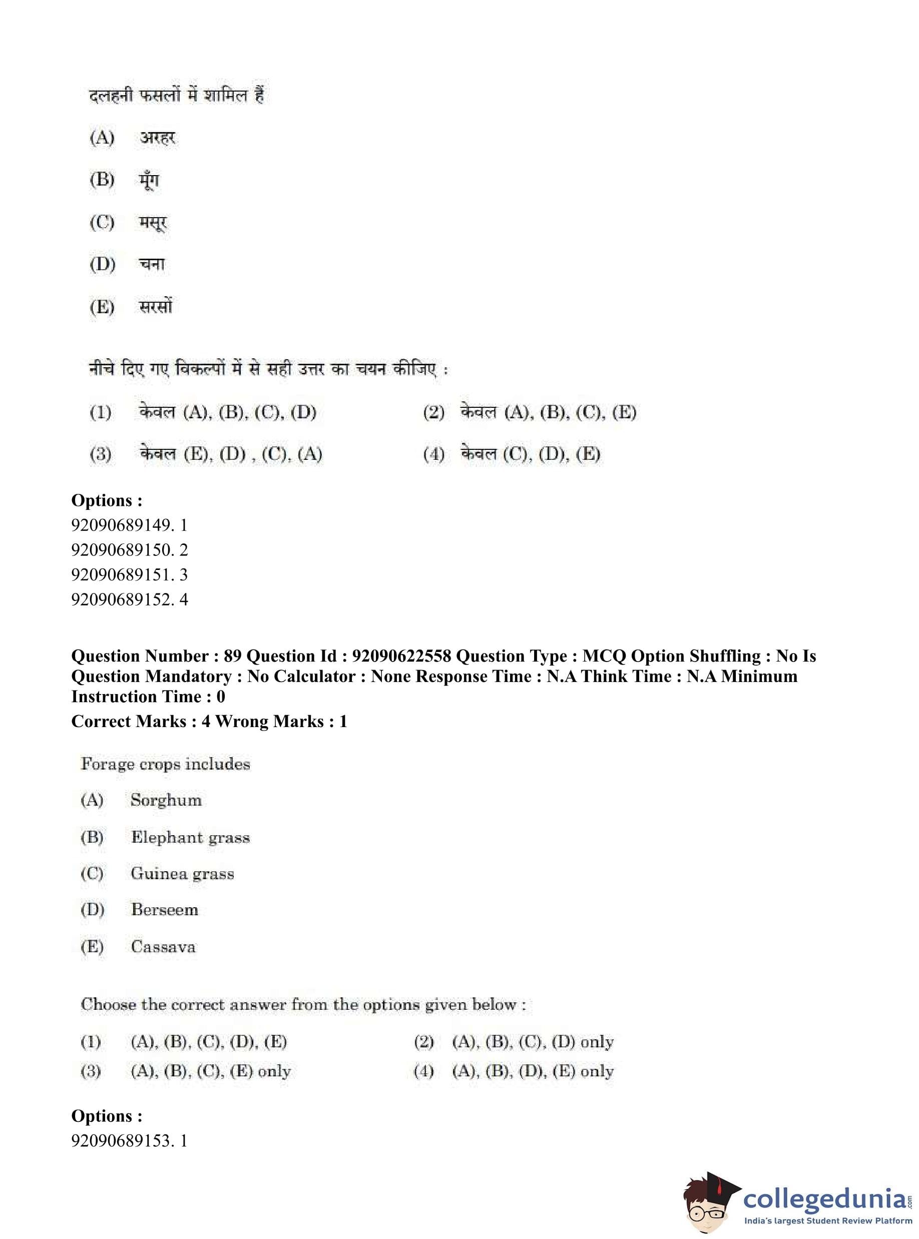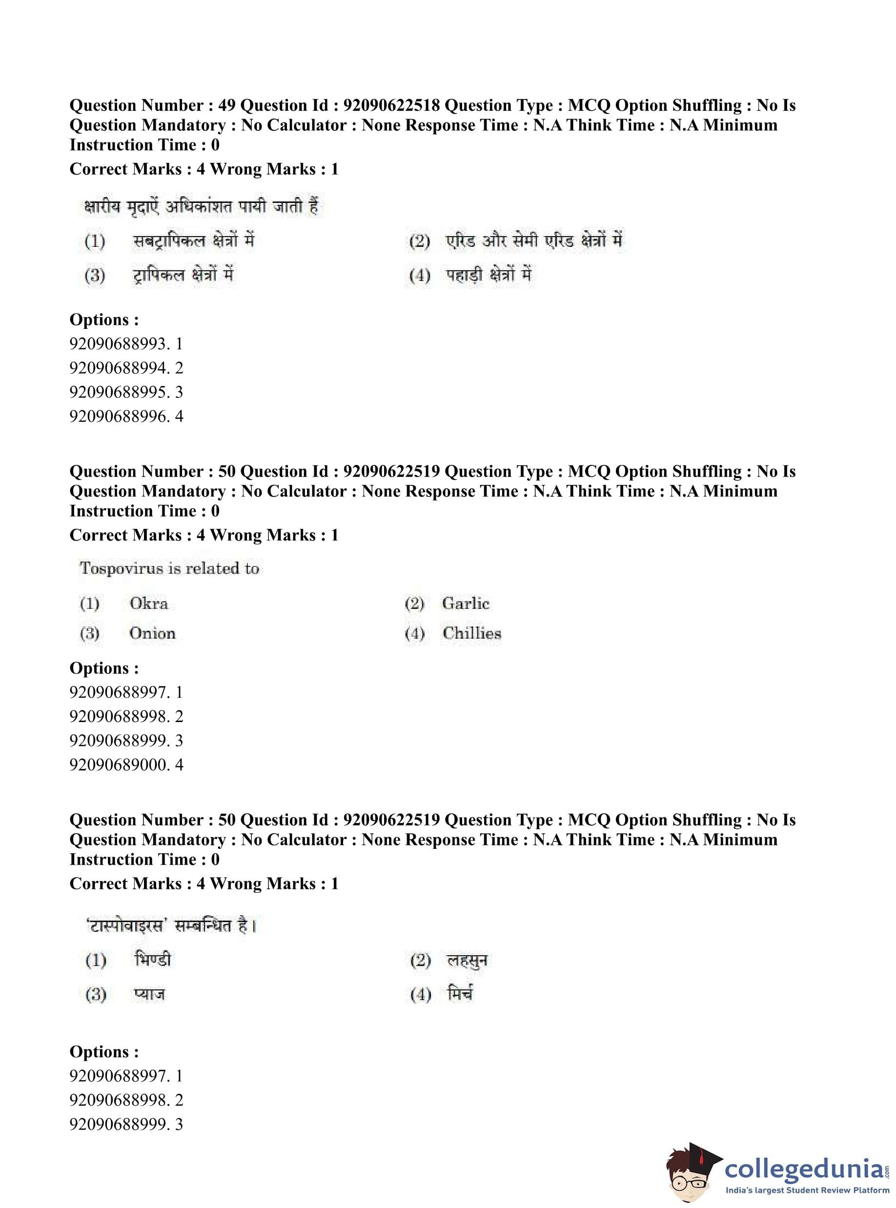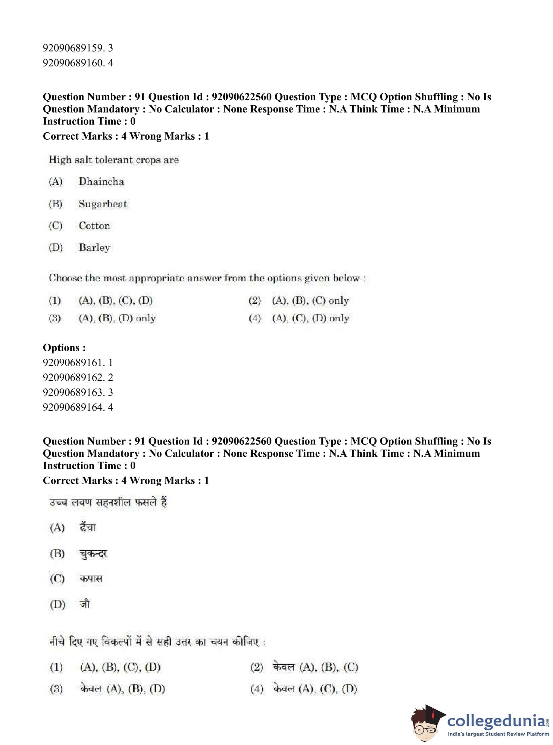 CUET PG 2023 Agricultural Science Question Paper in Hindi (June 24 - Shift 2)