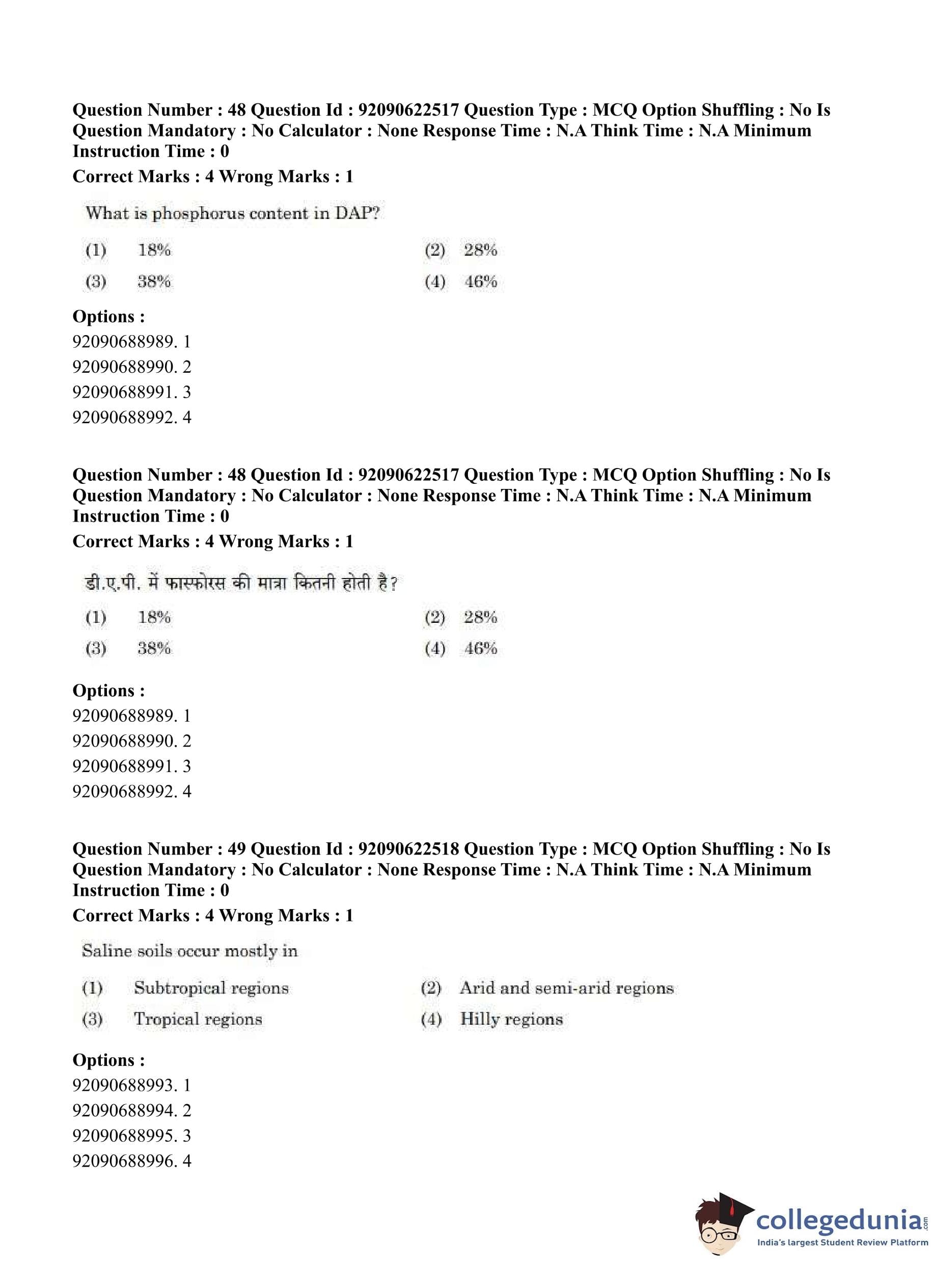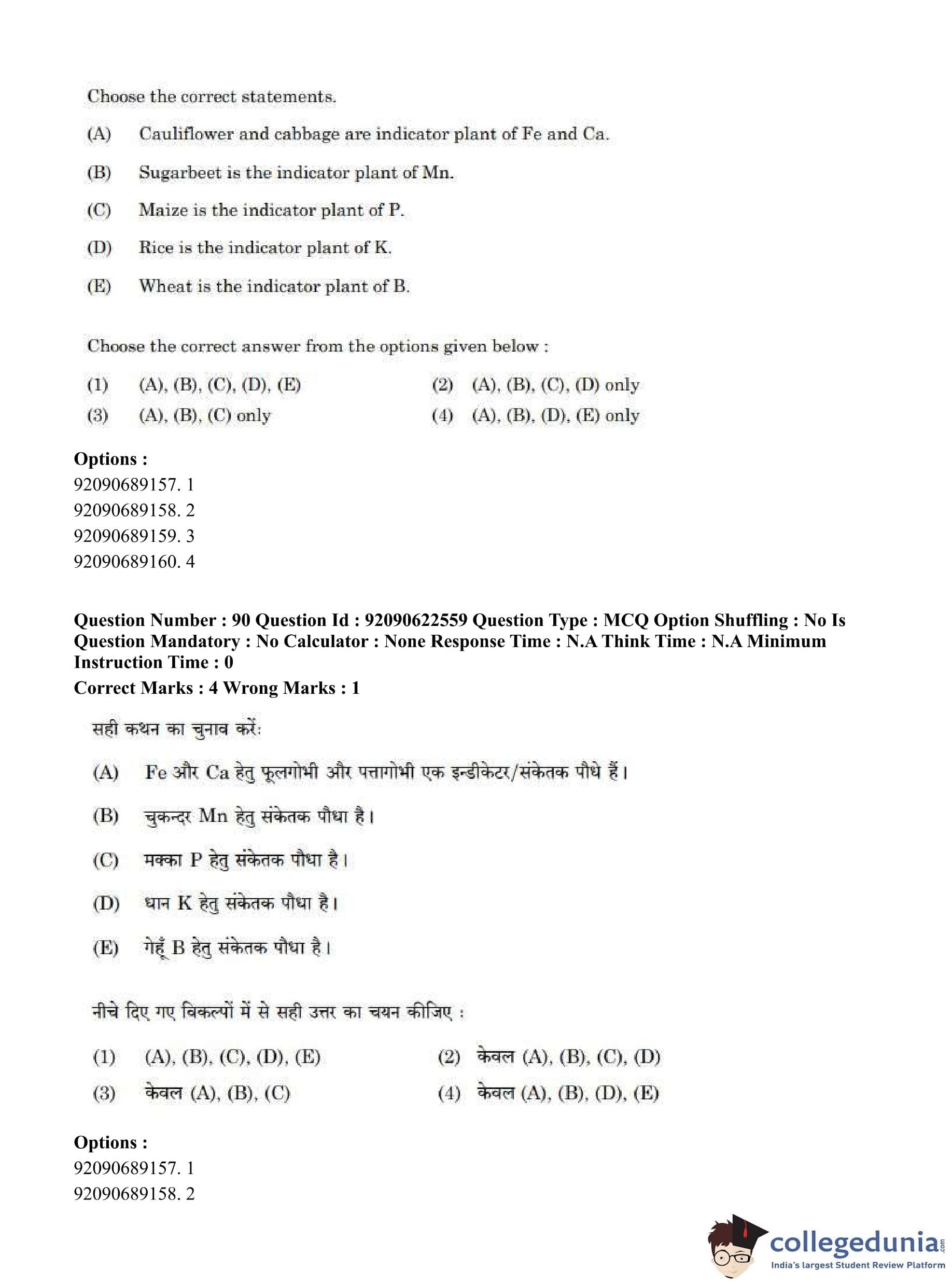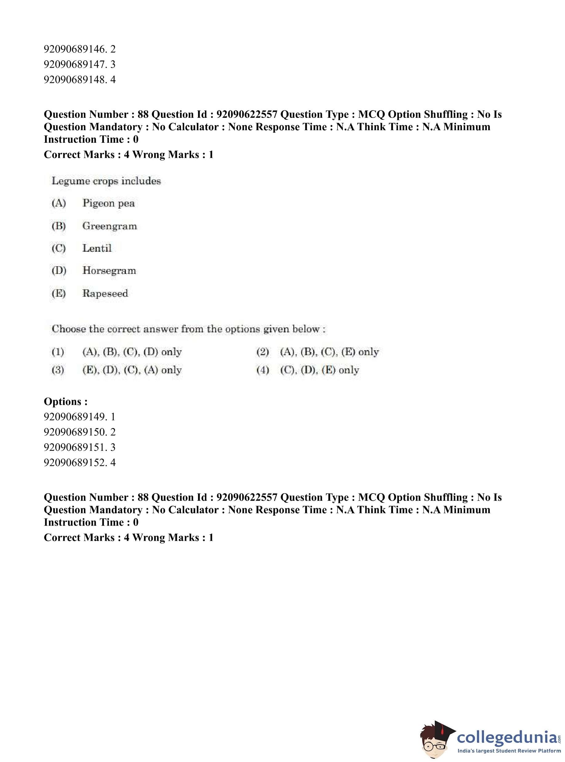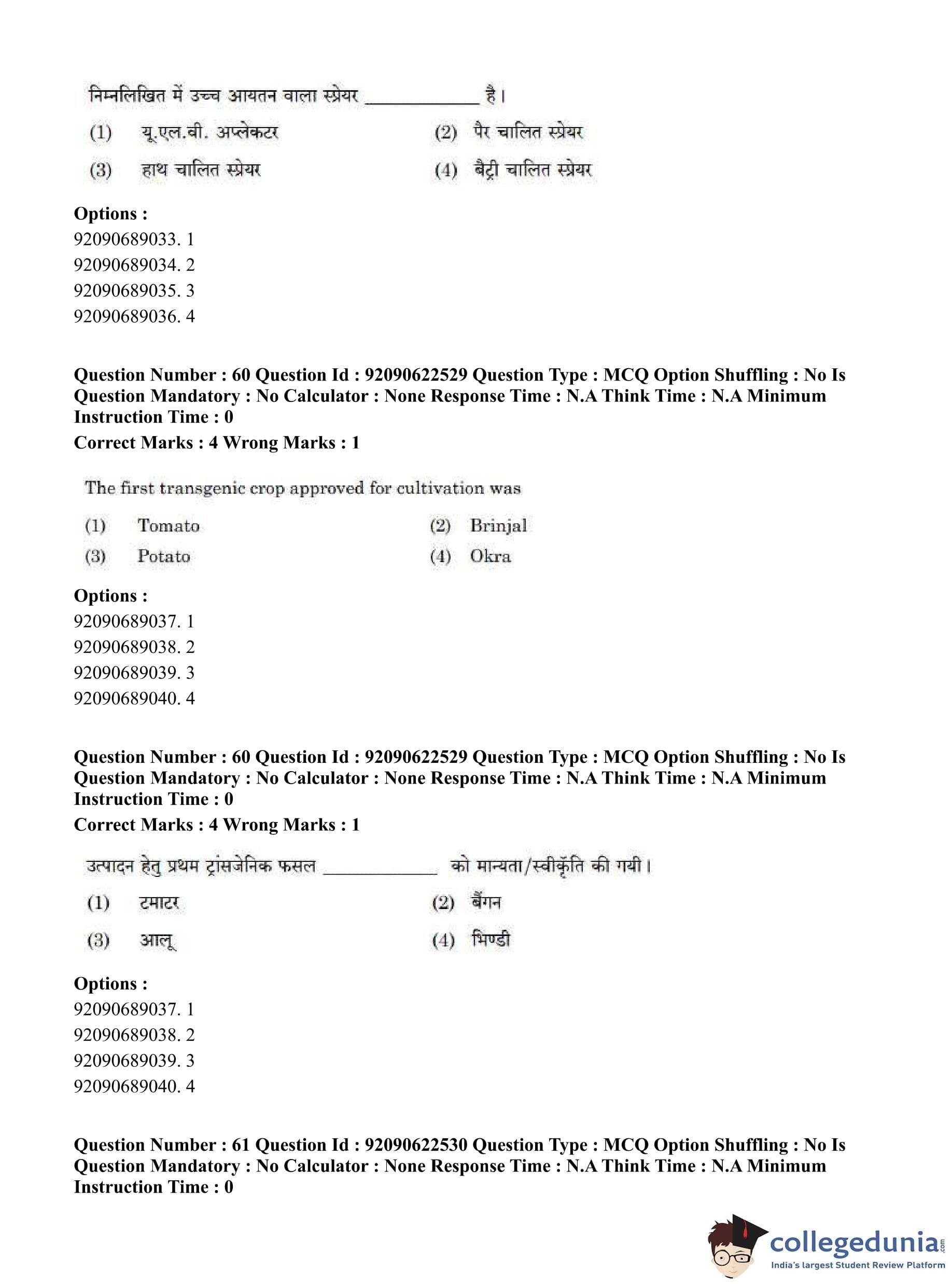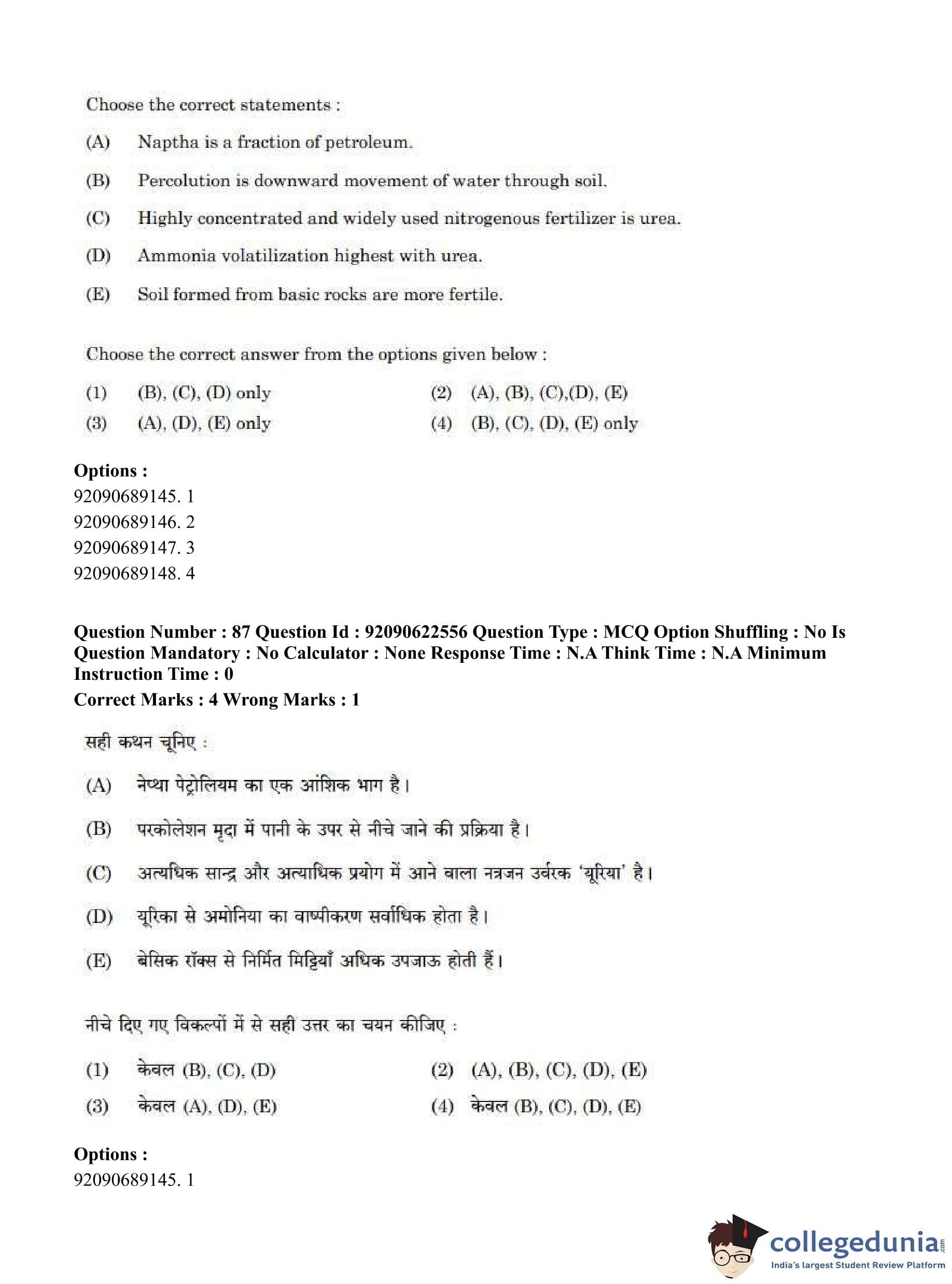 CUET PG 2023 Agricultural Science Question Paper in Hindi (June 24 - Shift 2)