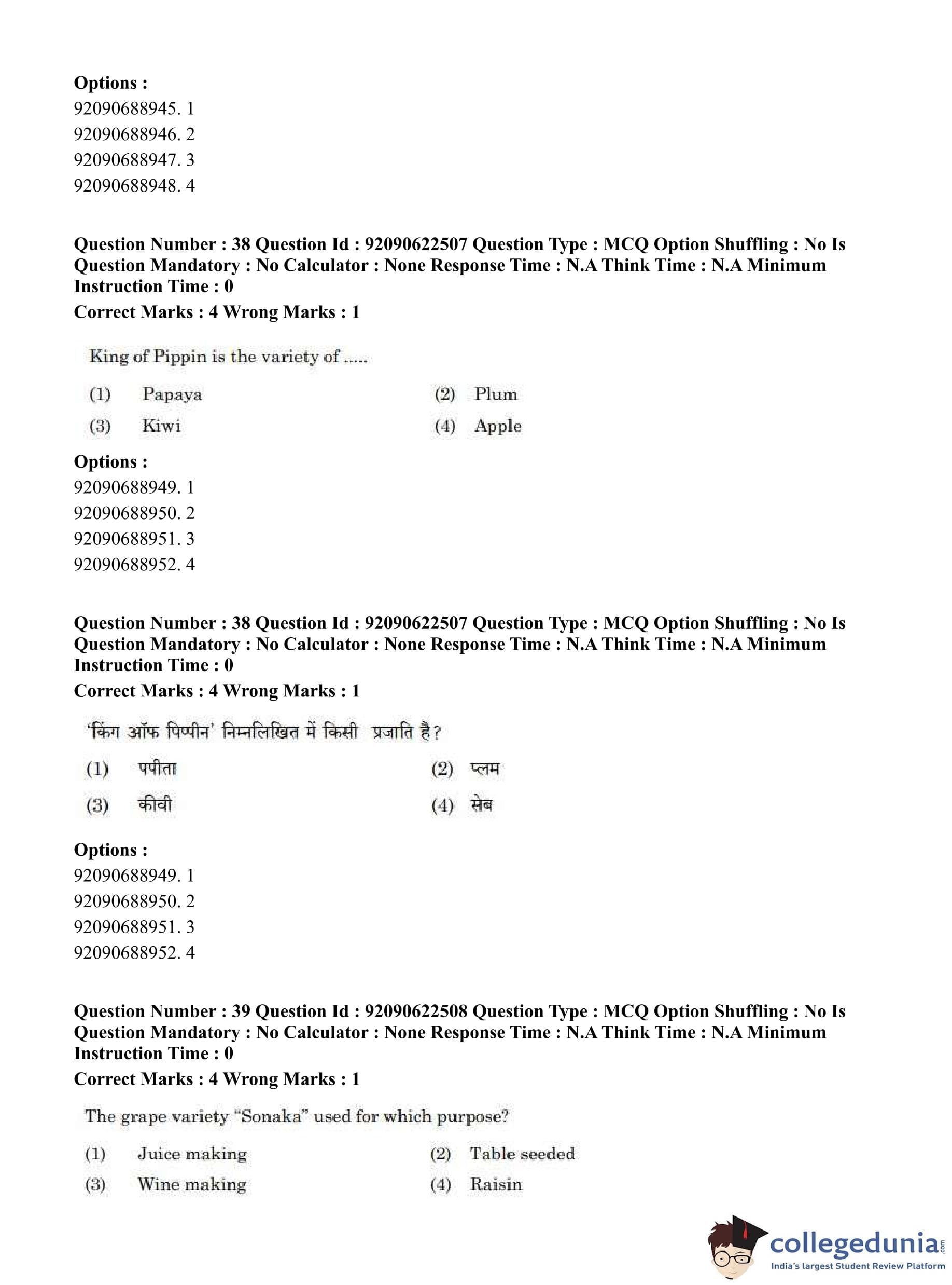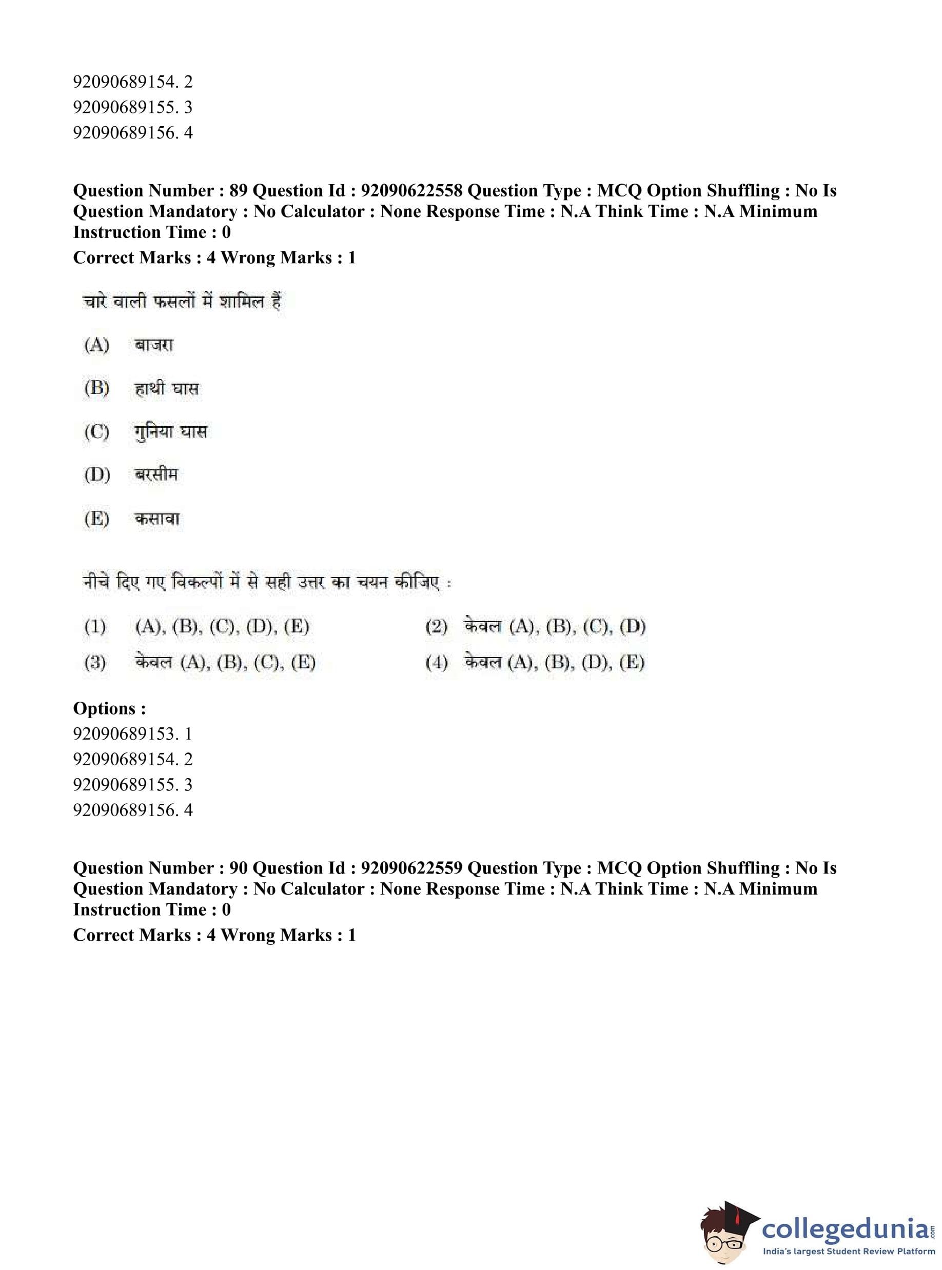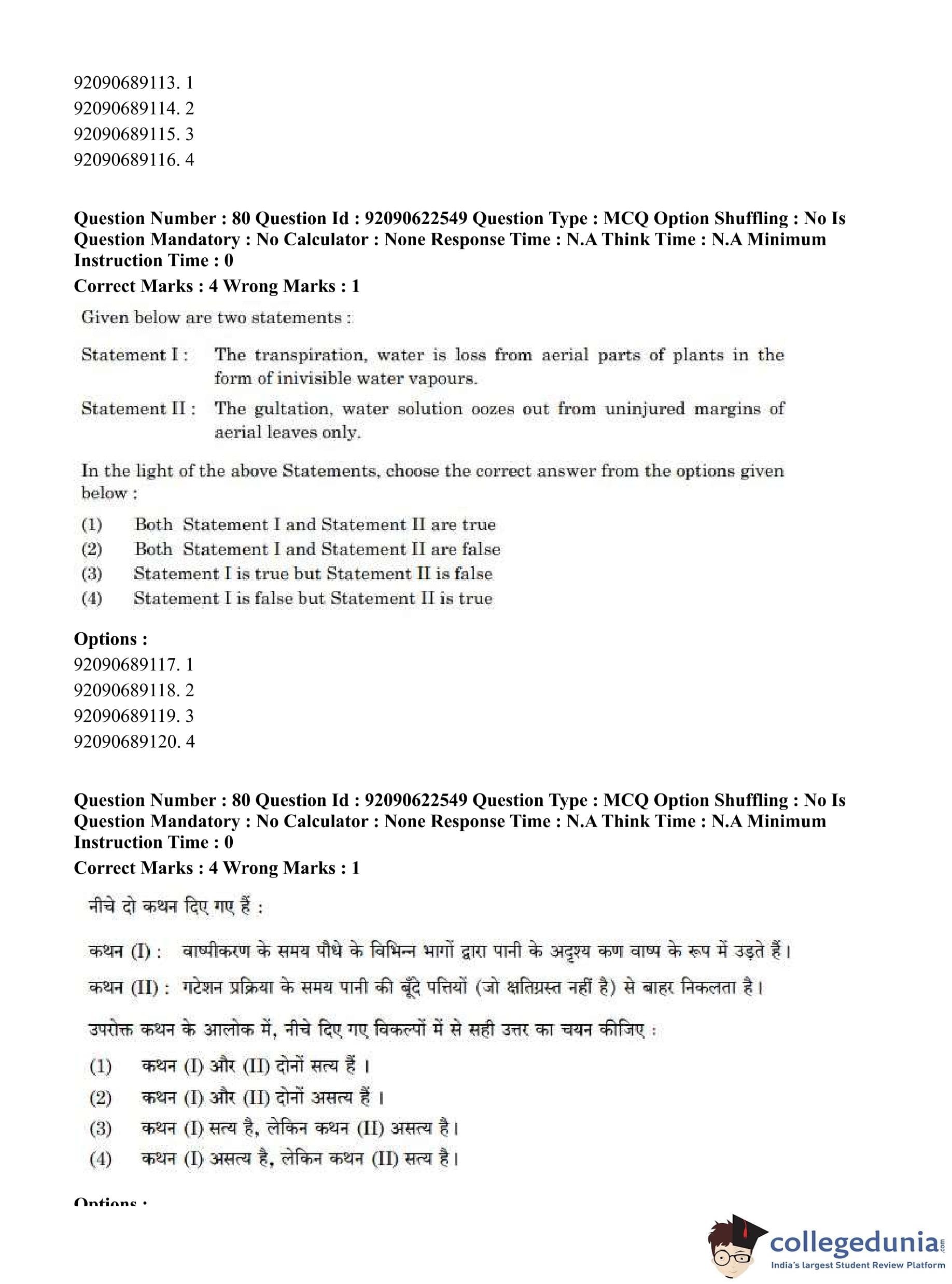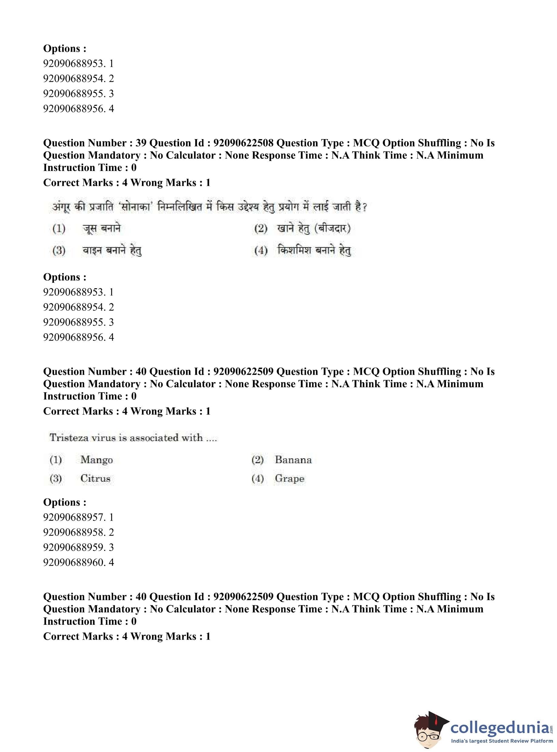 CUET PG 2023 Agricultural Science Question Paper in Hindi (June 24 - Shift 2)