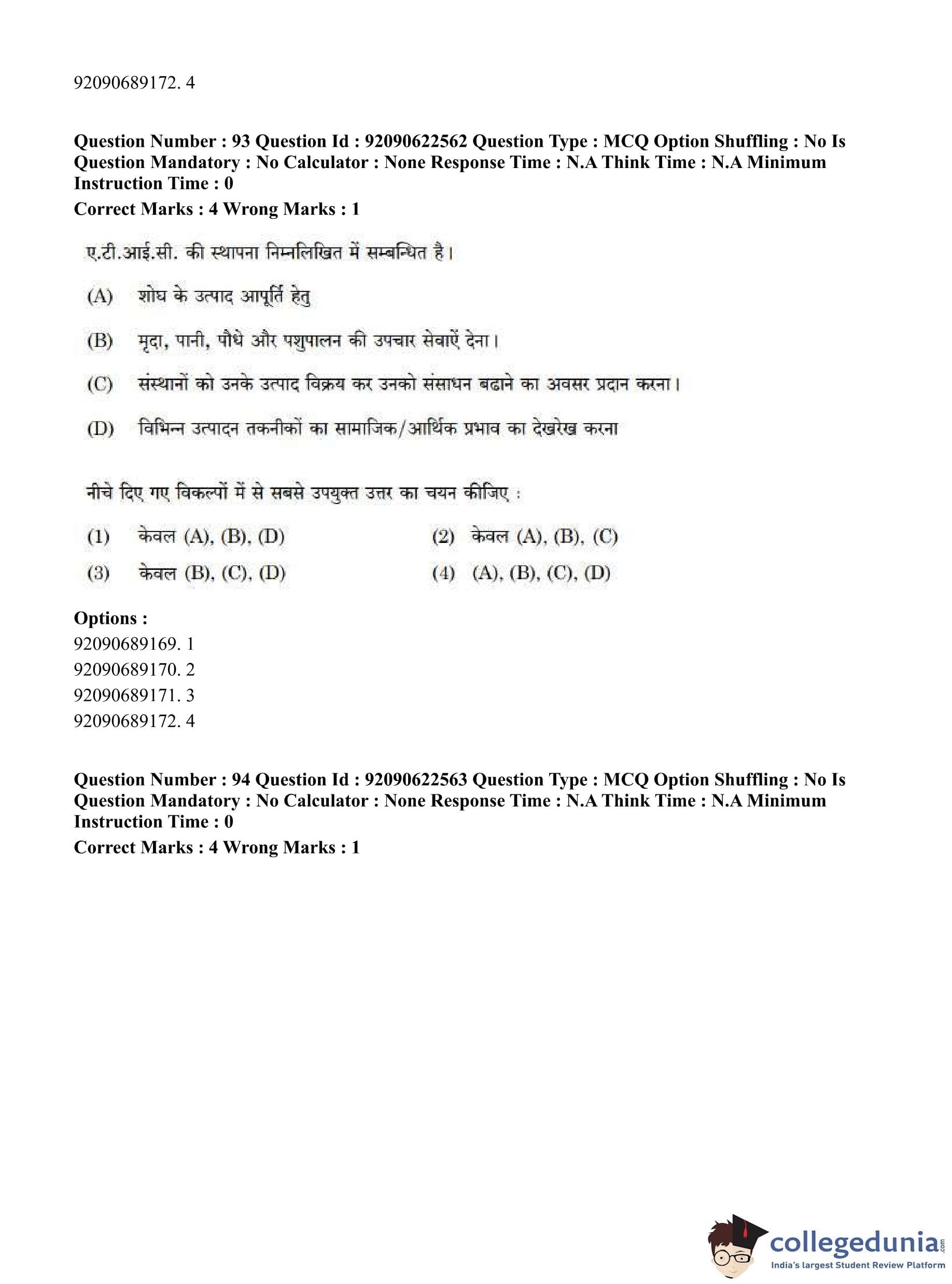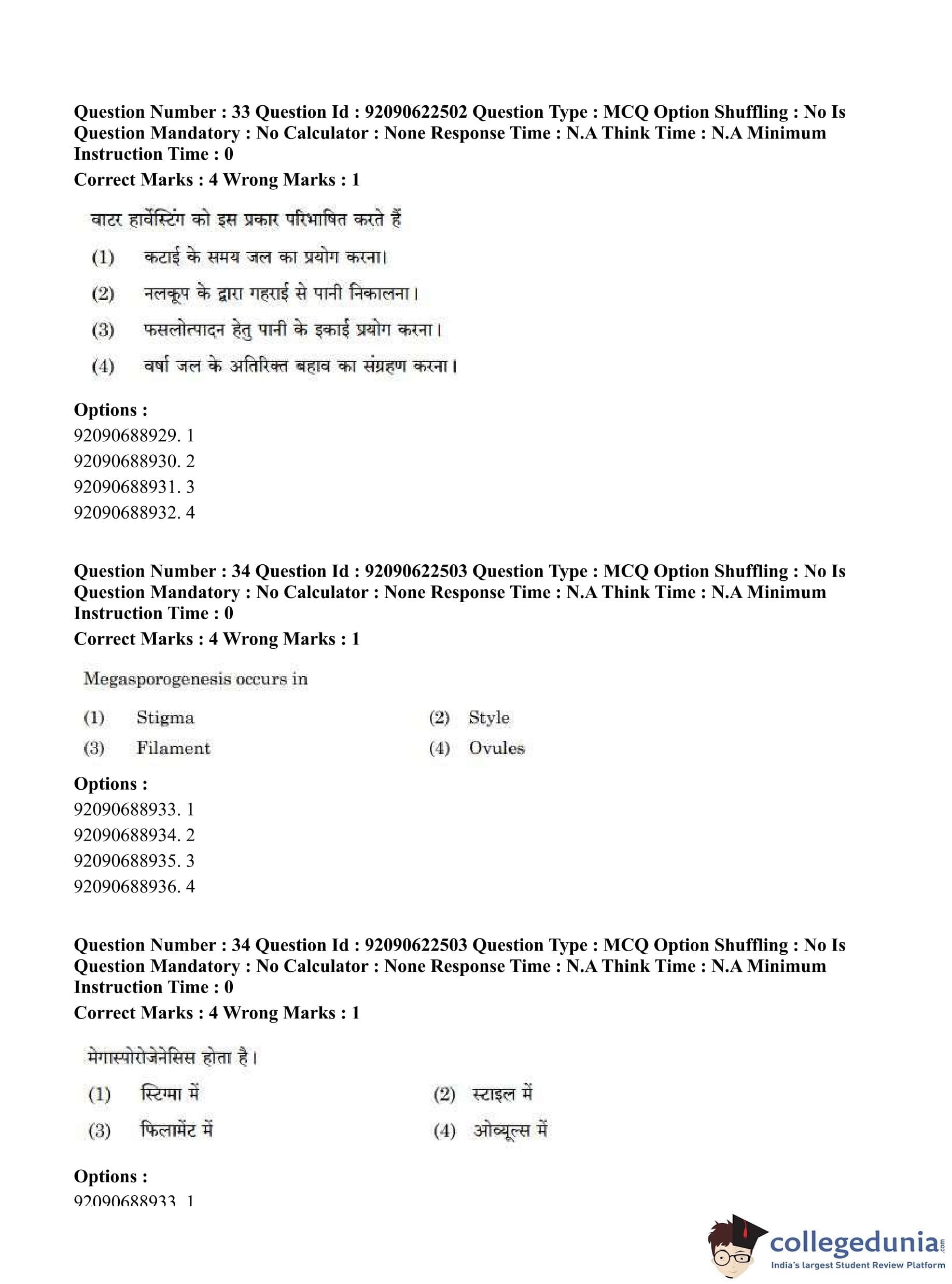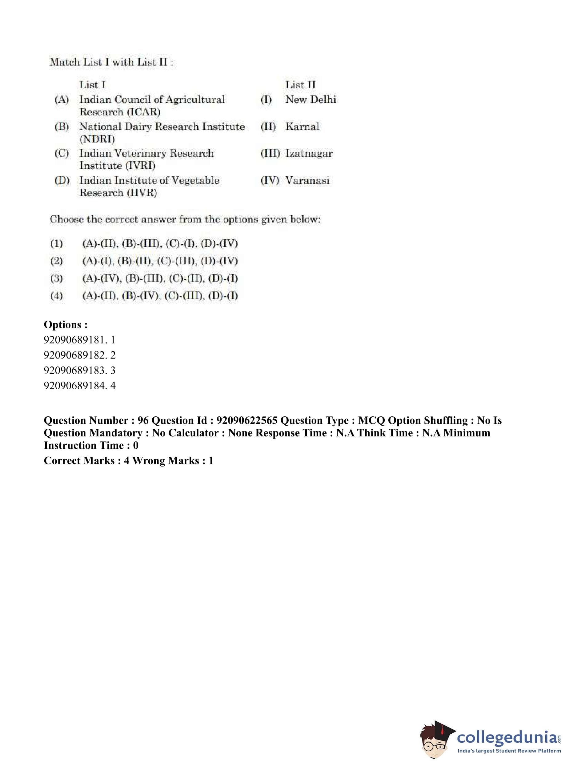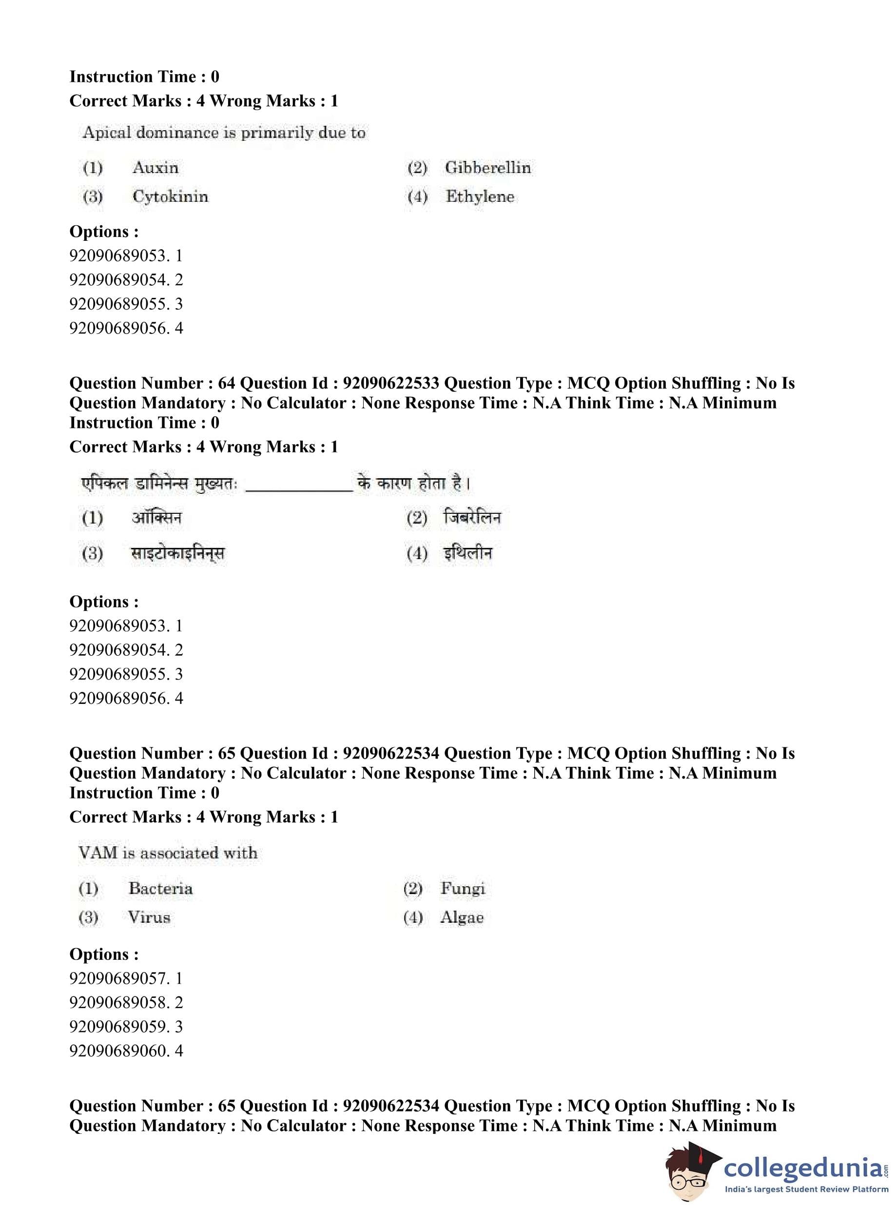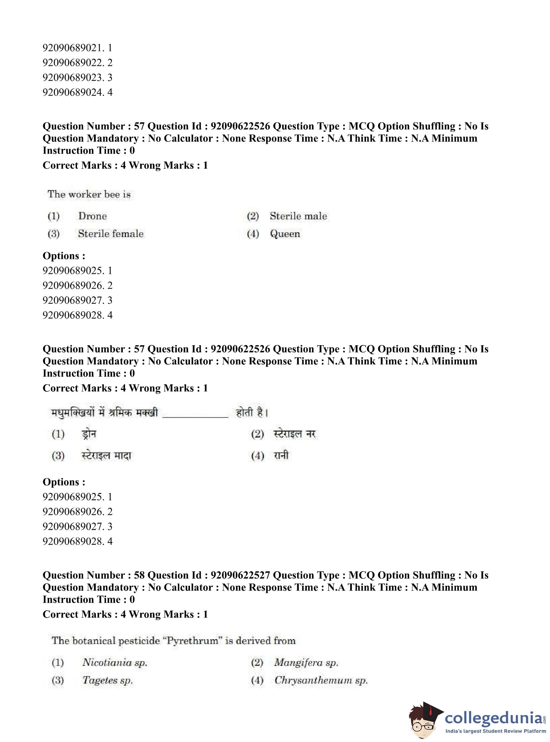 CUET PG 2023 Agricultural Science Question Paper in Hindi (June 24 - Shift 2)