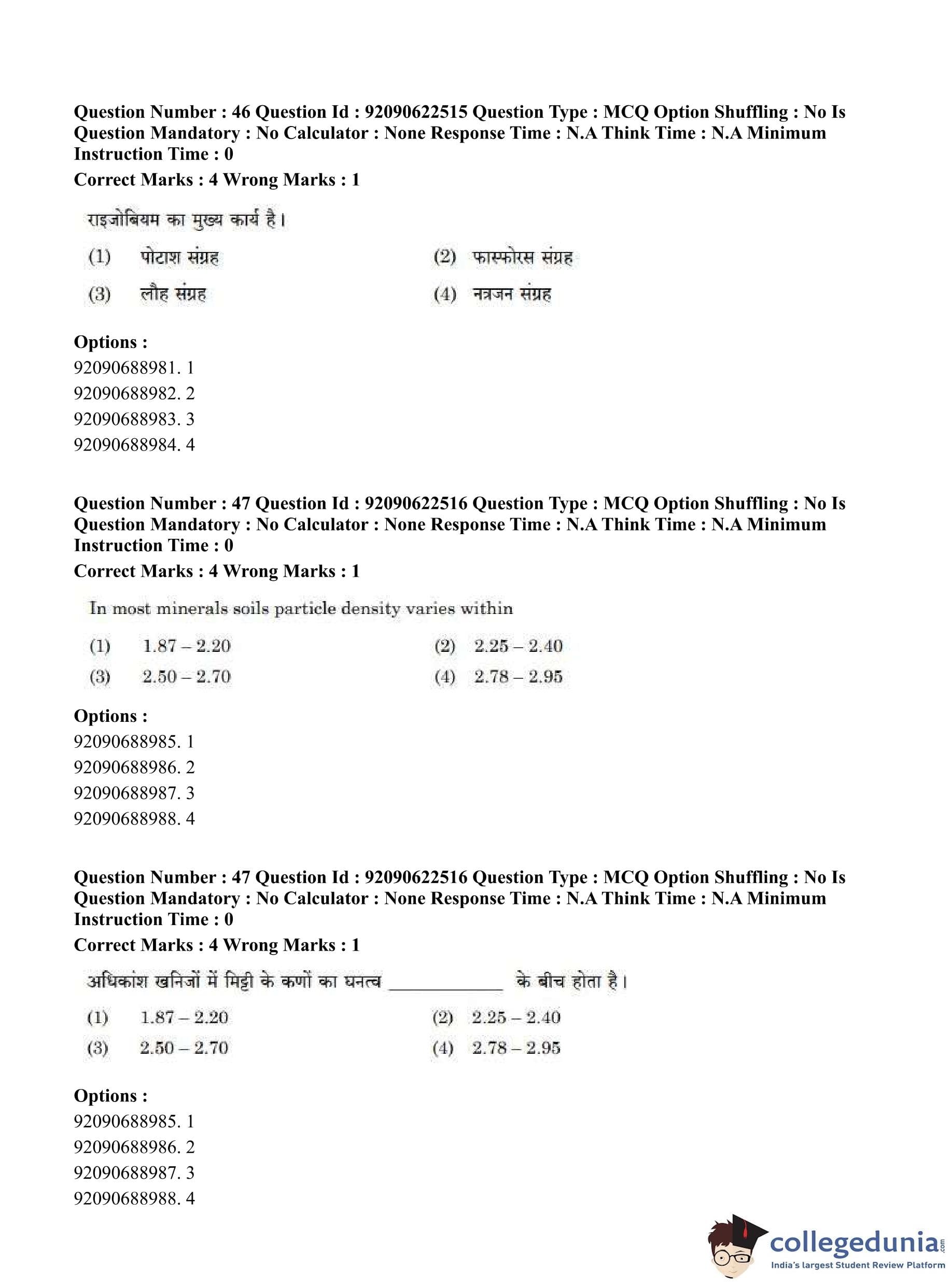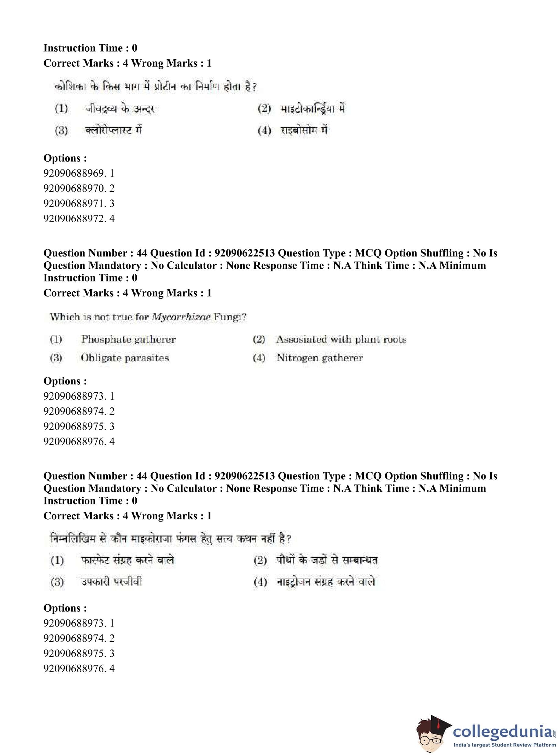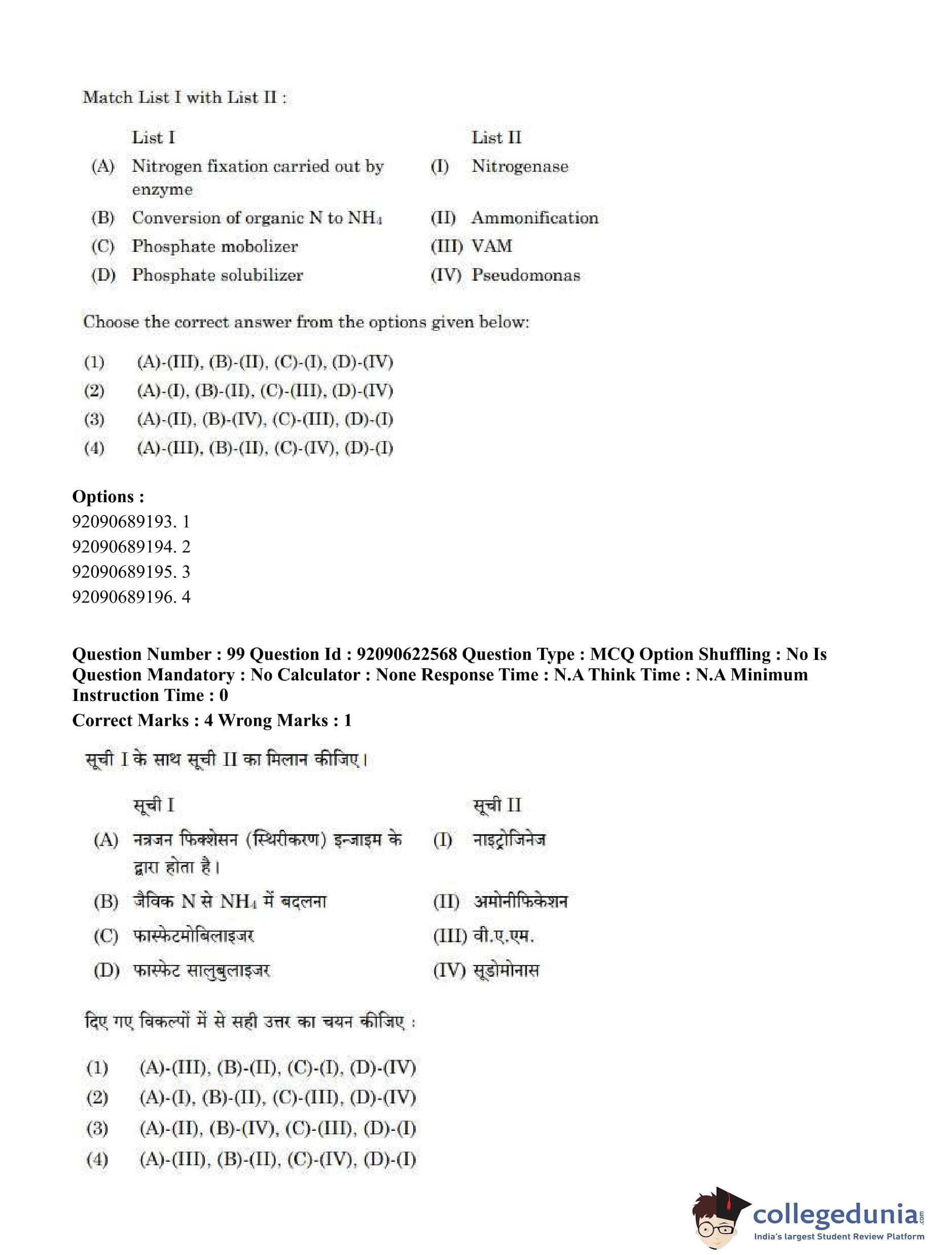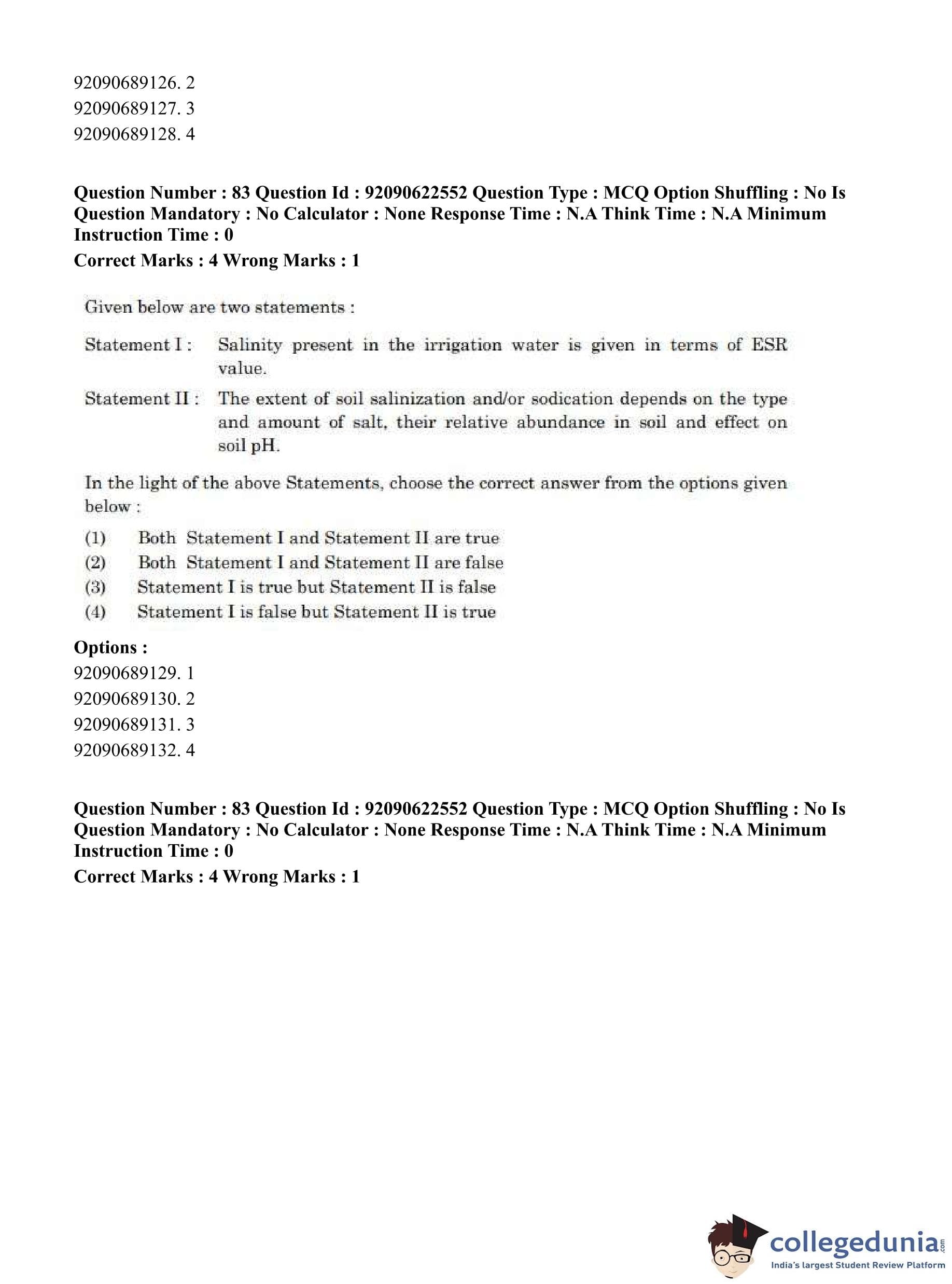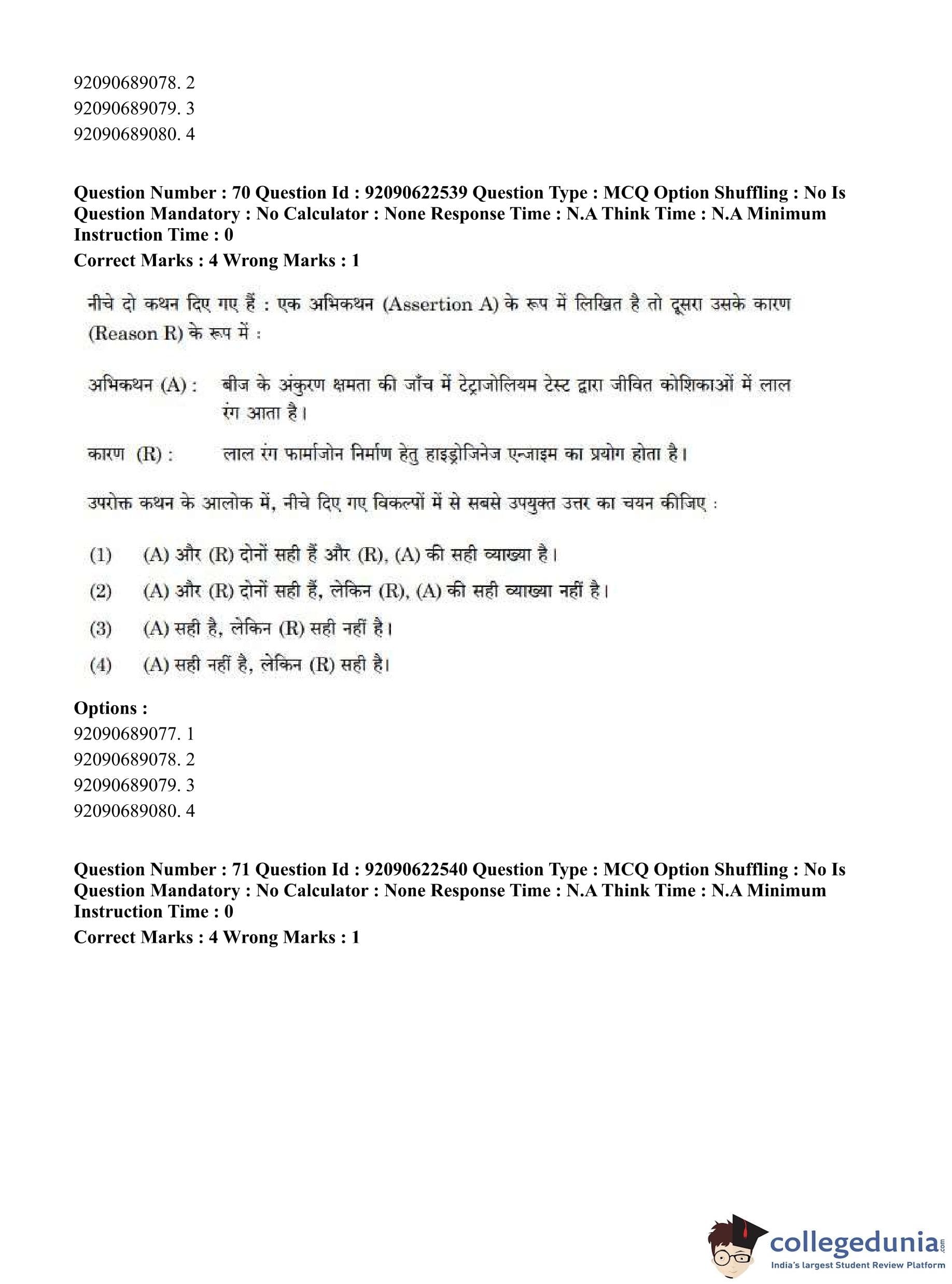CUET PG 2023 Agricultural Science Question Paper in Hindi (June 24 - Shift 2)