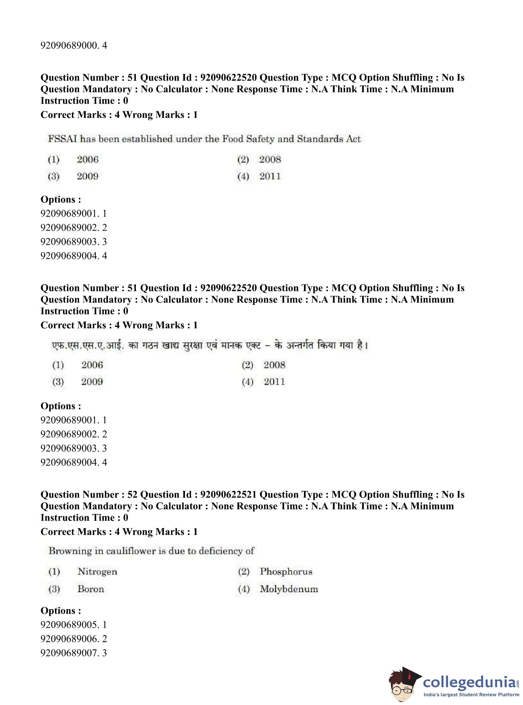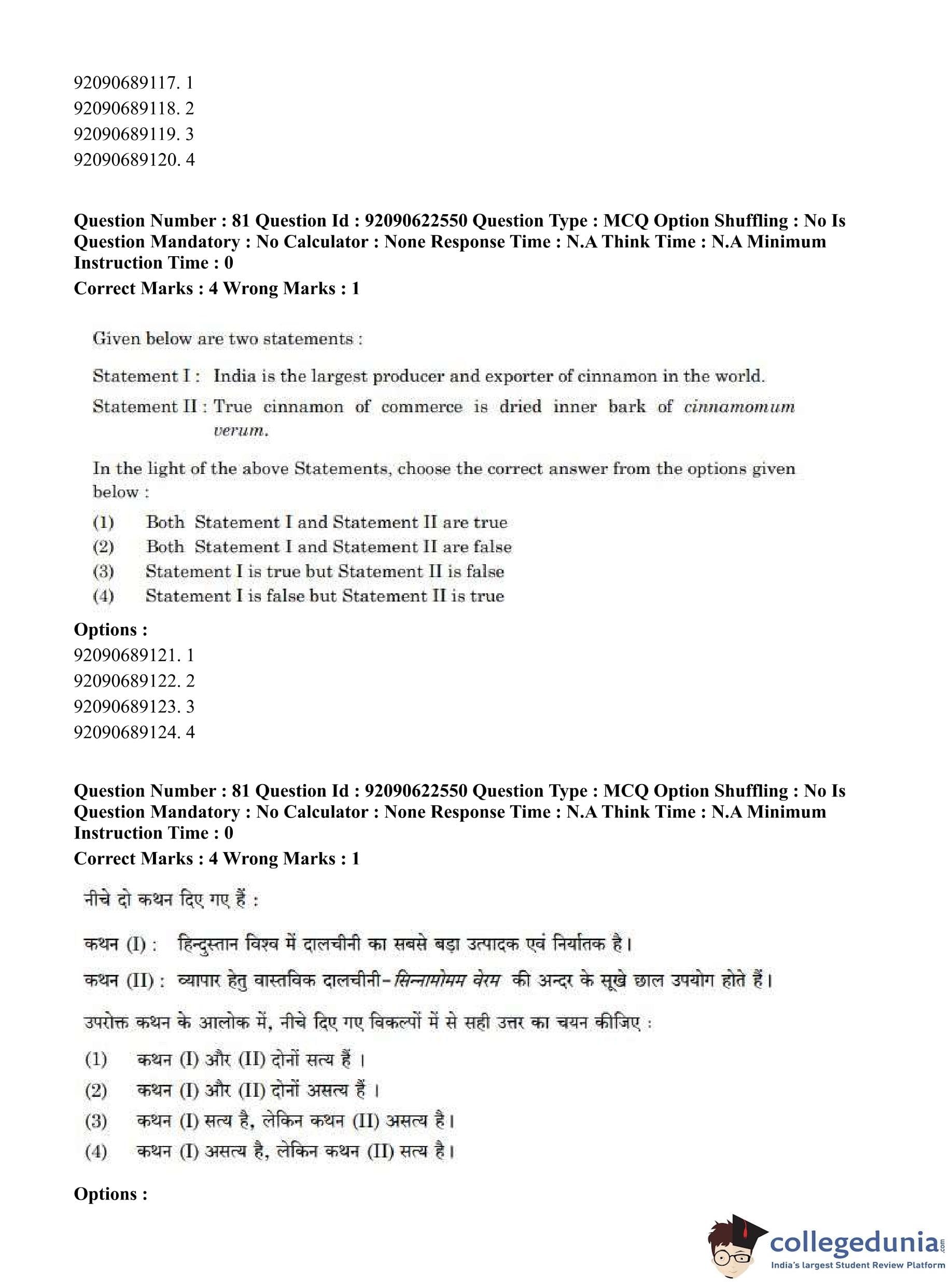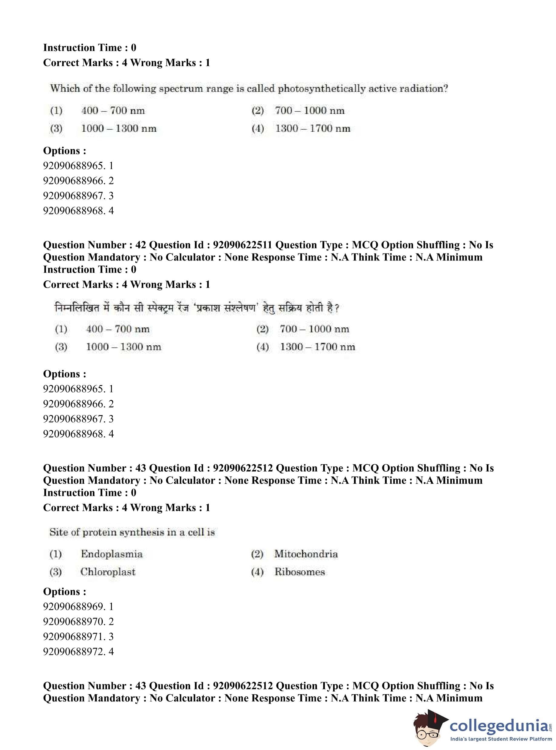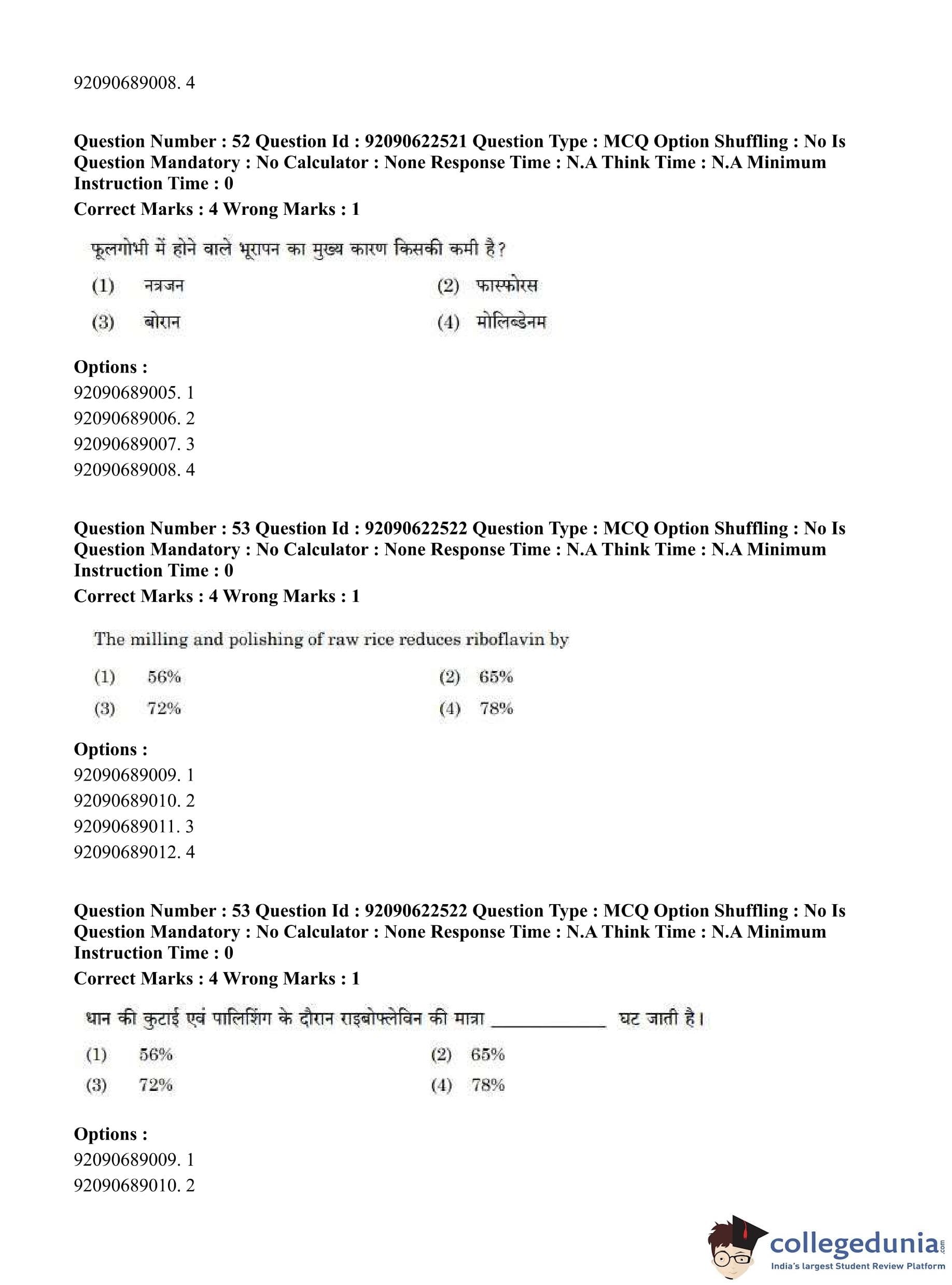 CUET PG 2023 Agricultural Science Question Paper in Hindi (June 24 - Shift 2)