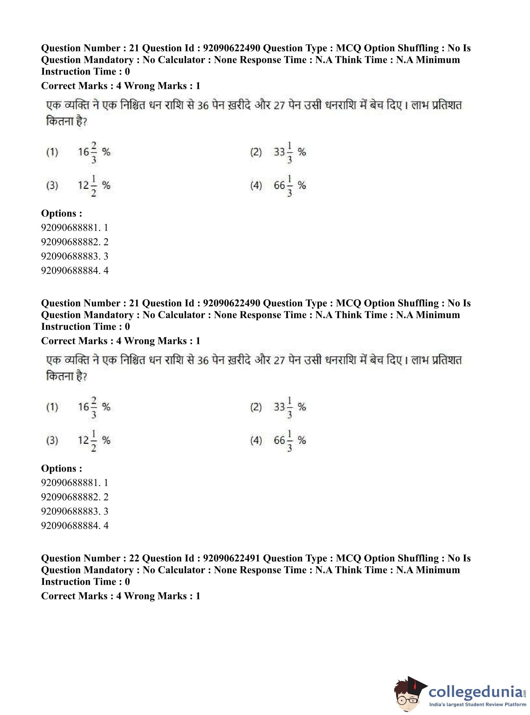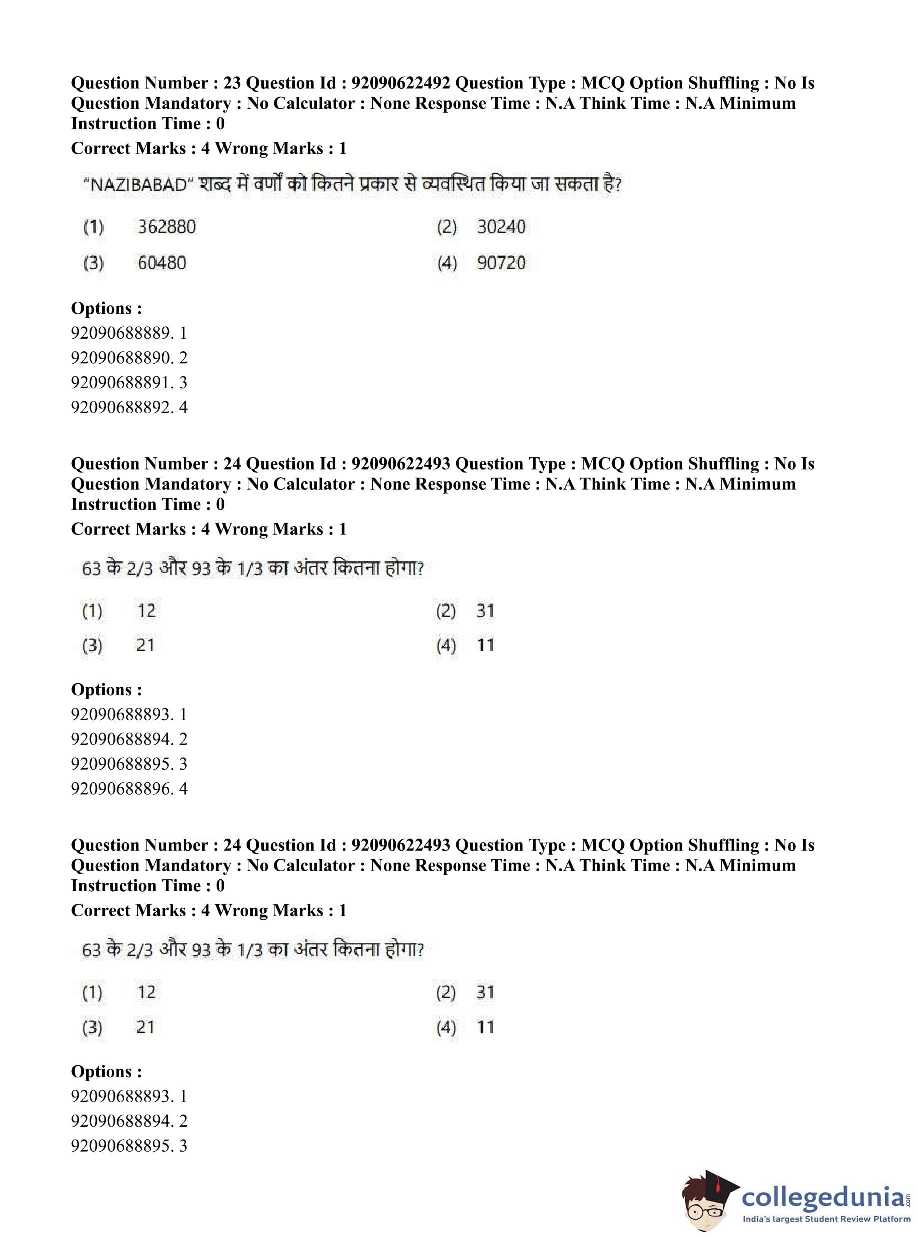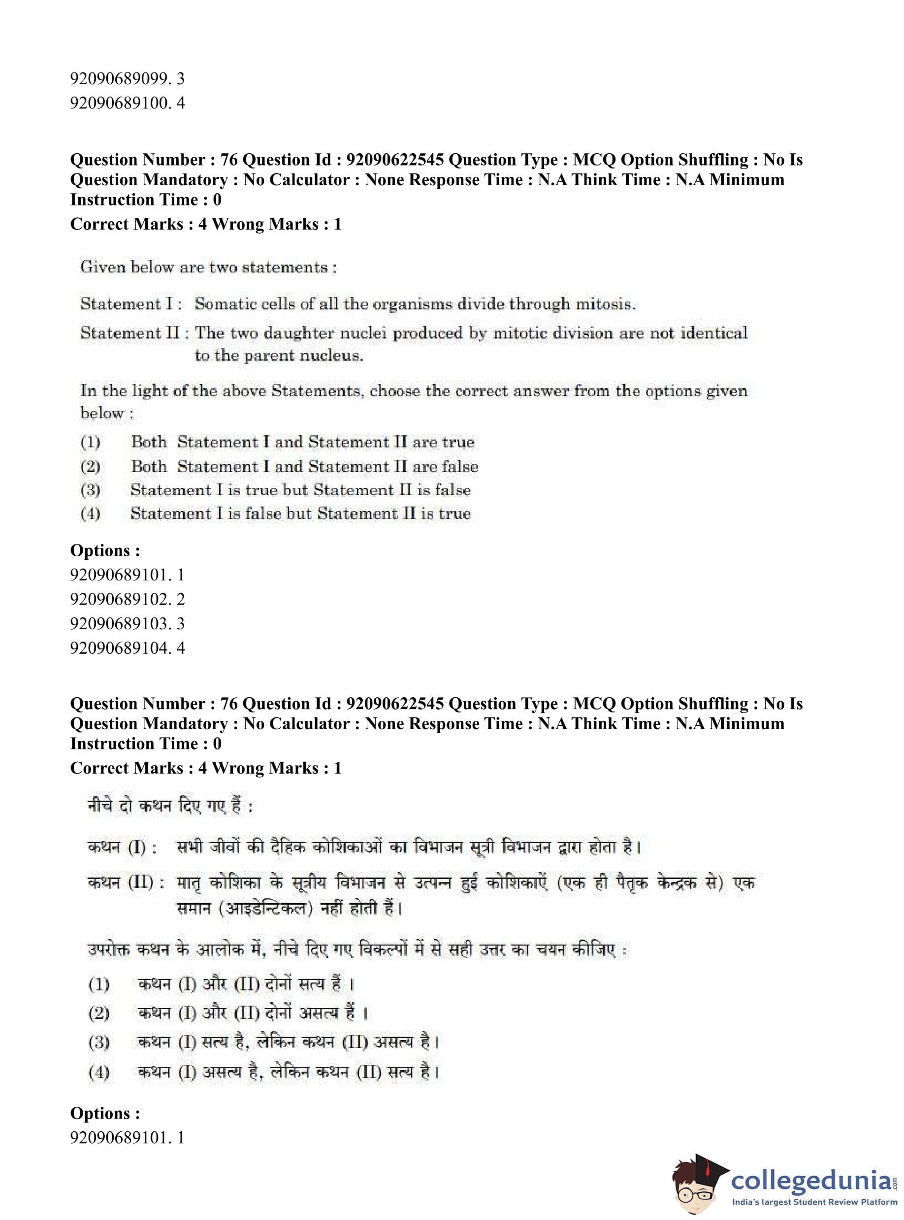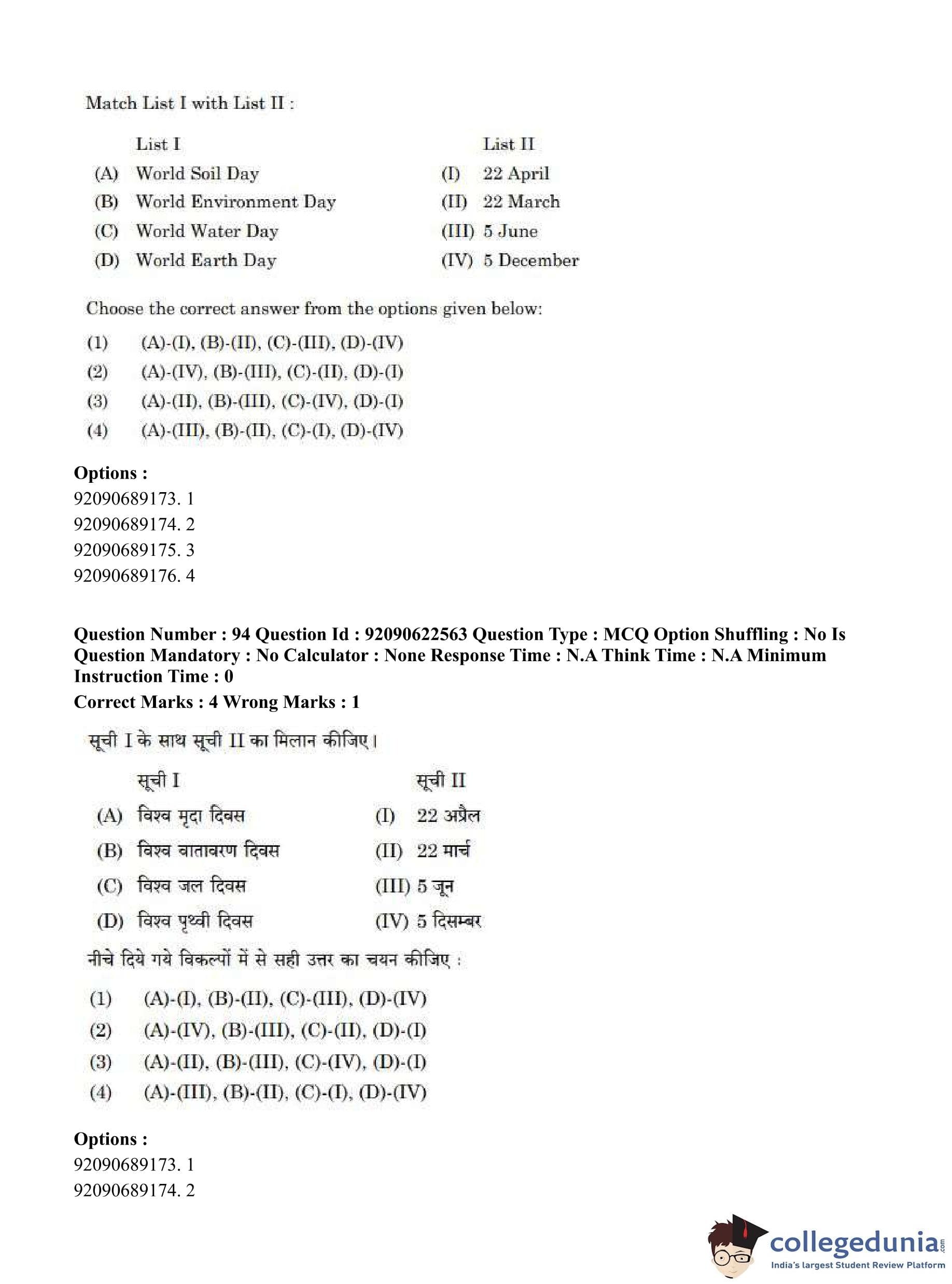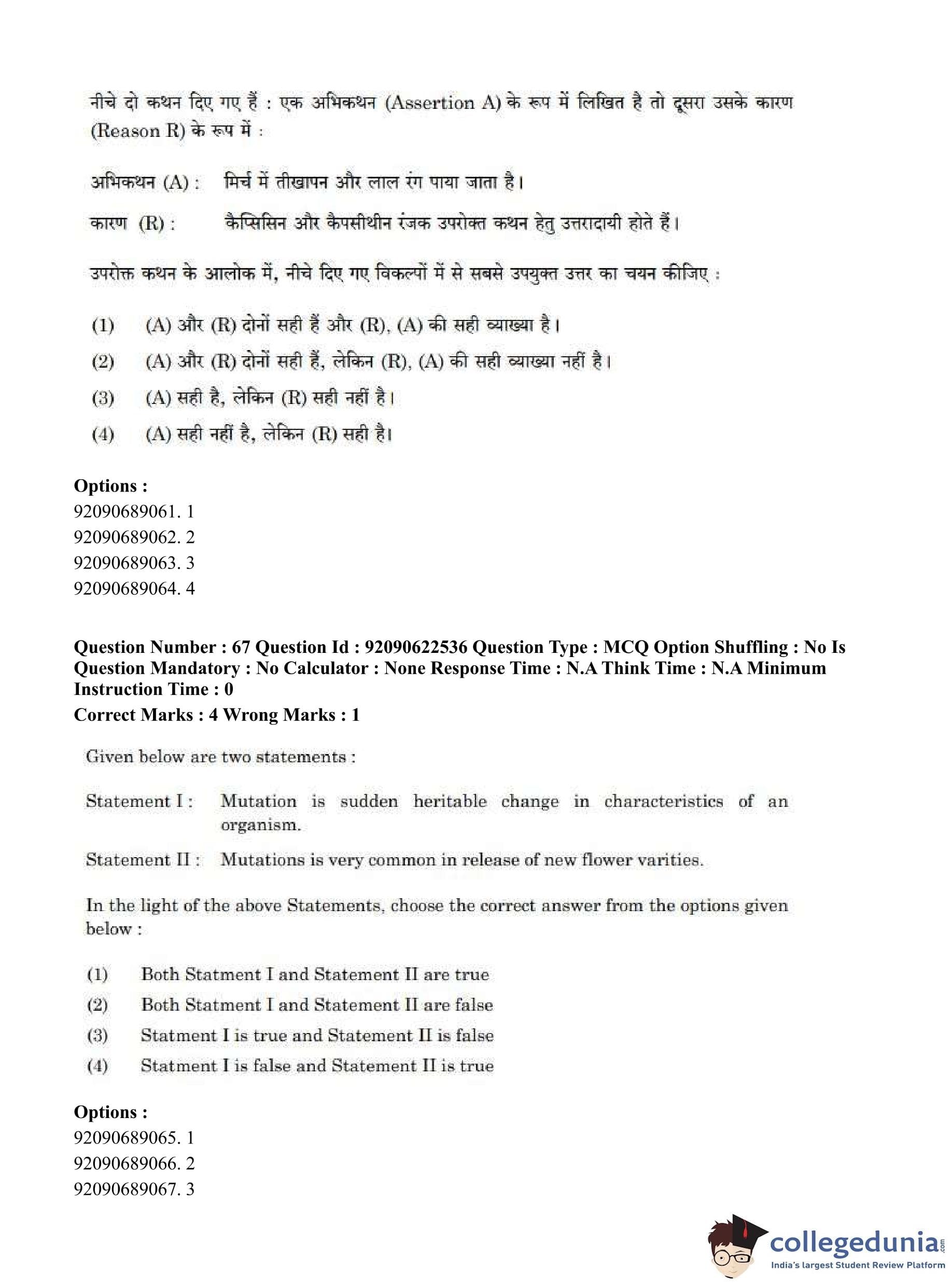 CUET PG 2023 Agricultural Science Question Paper in Hindi (June 24 - Shift 2)
