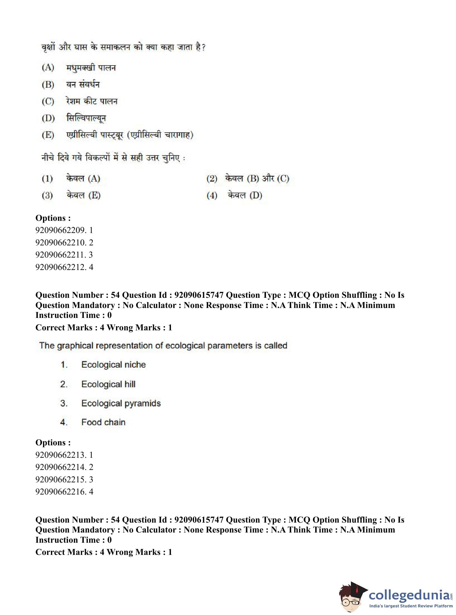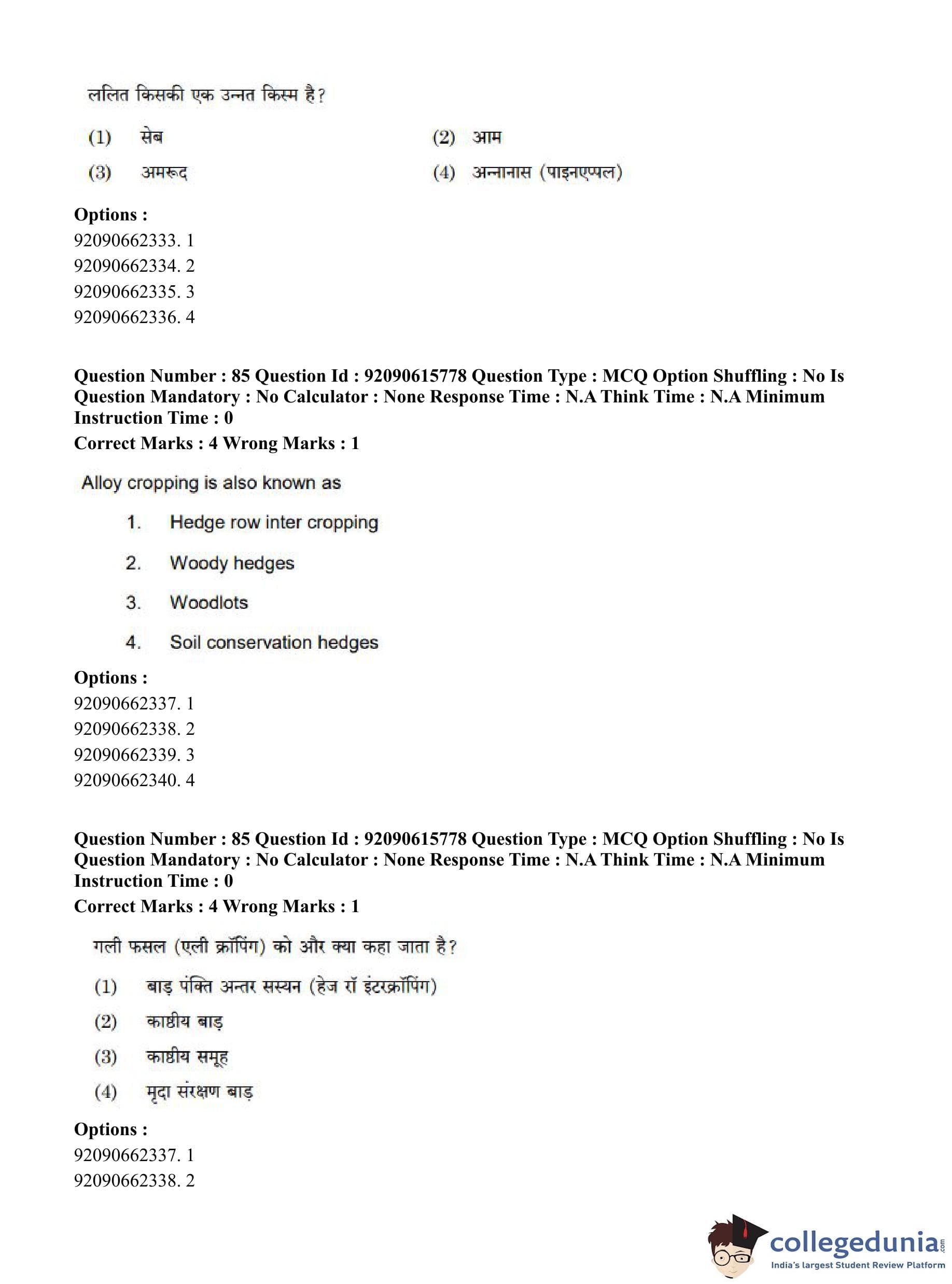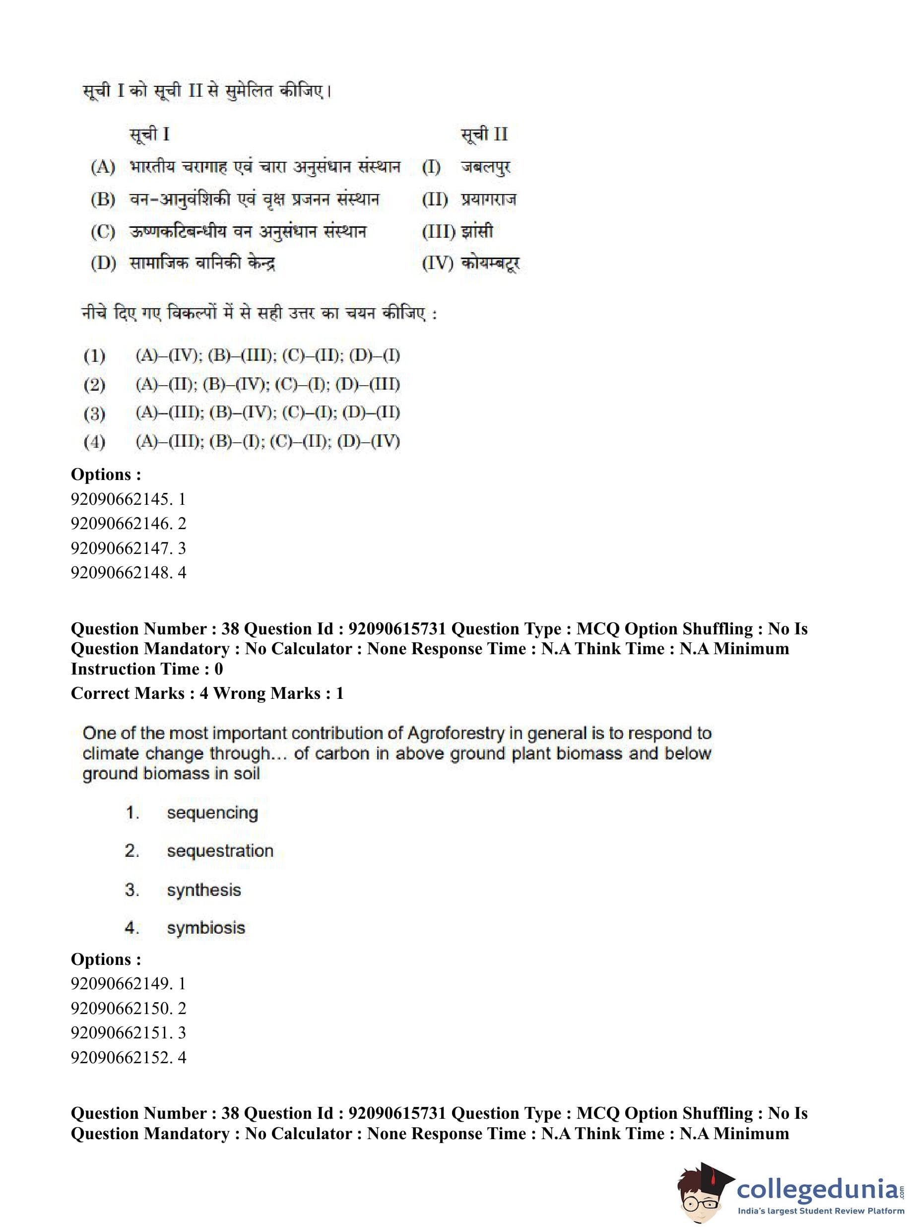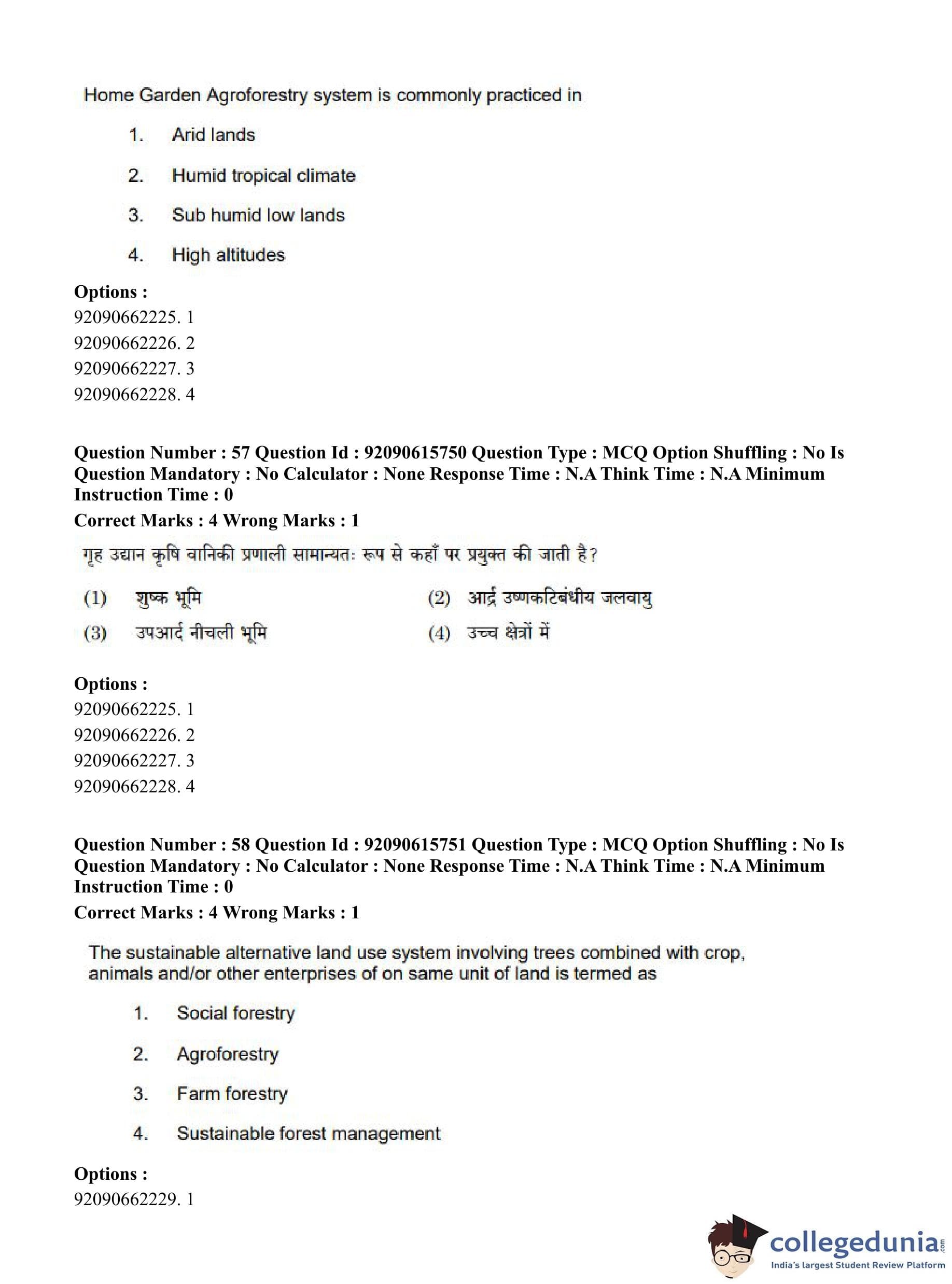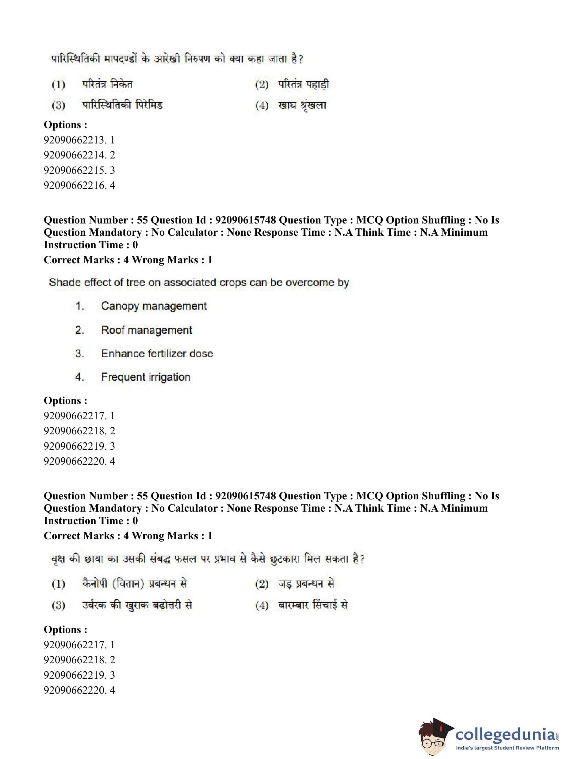 CUET PG 2023 Agro-forestry Question Paper in Hindi (June 12 - Shift 3)