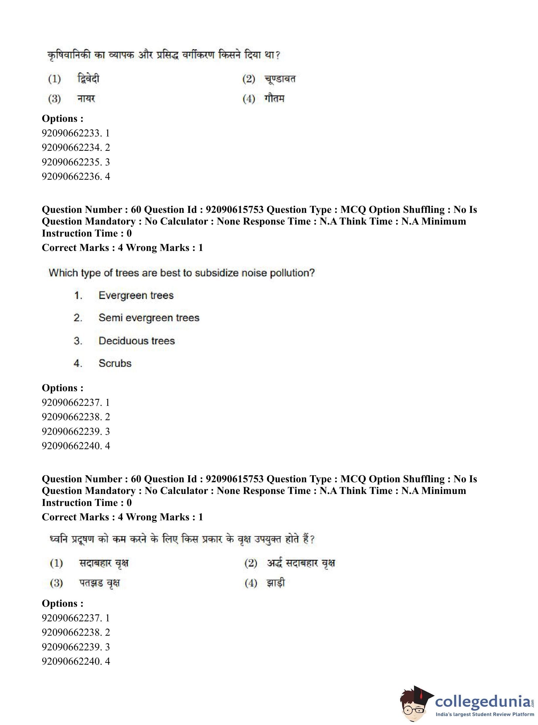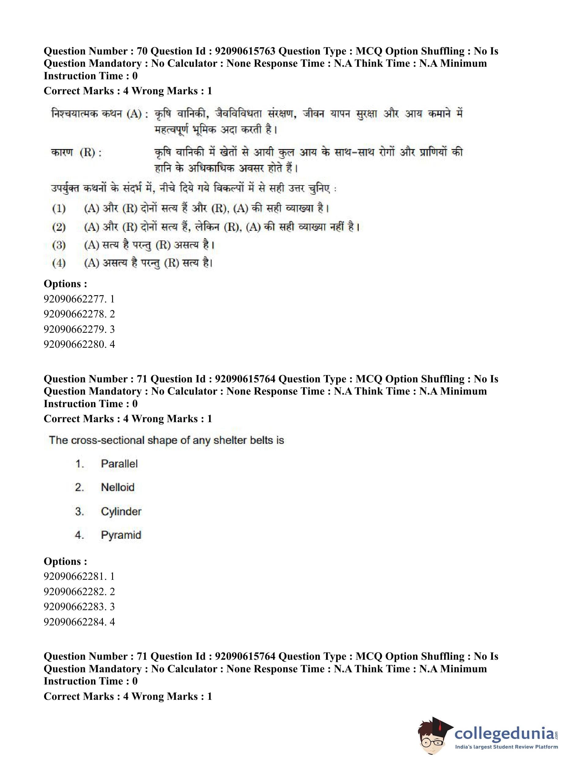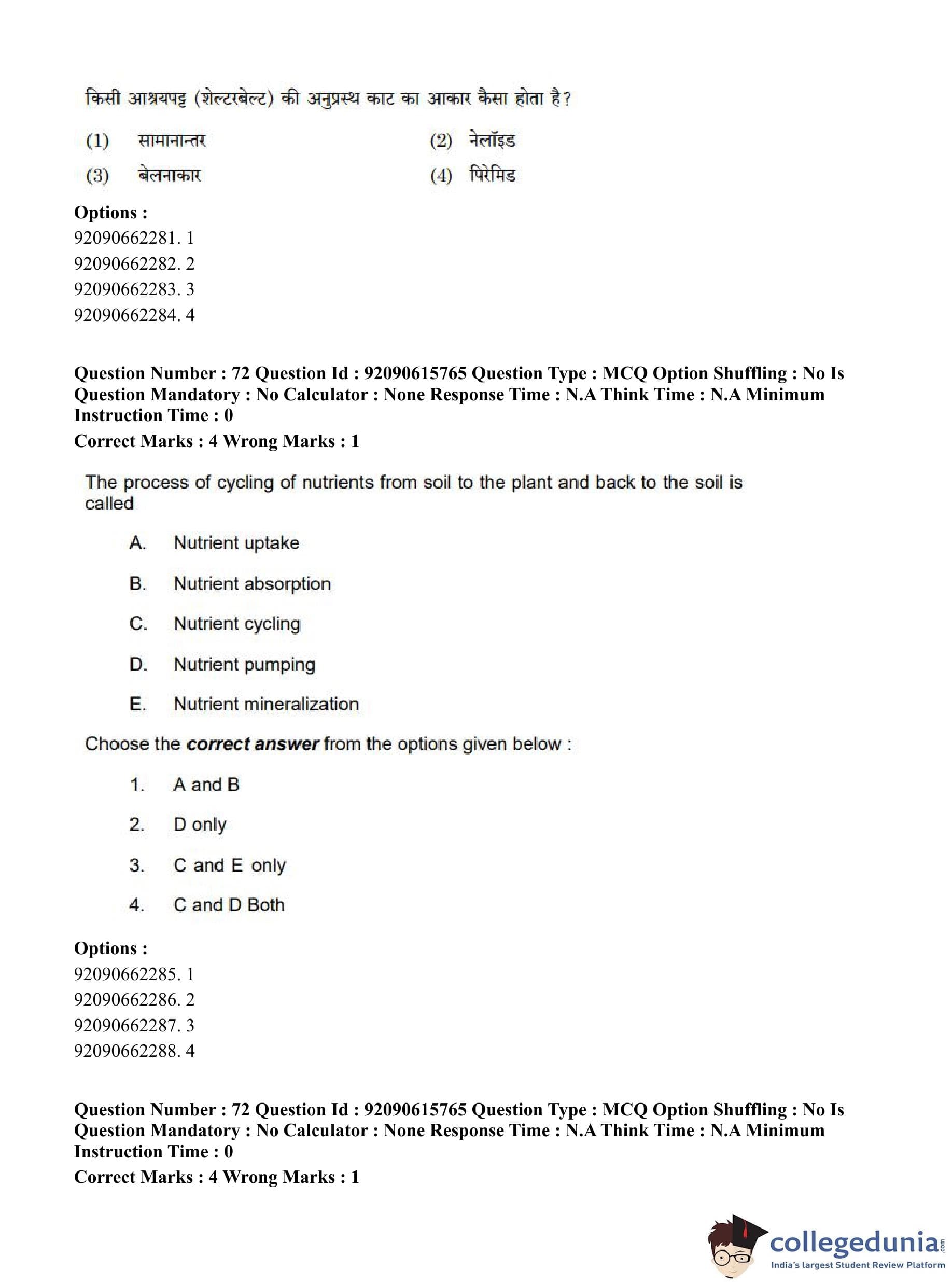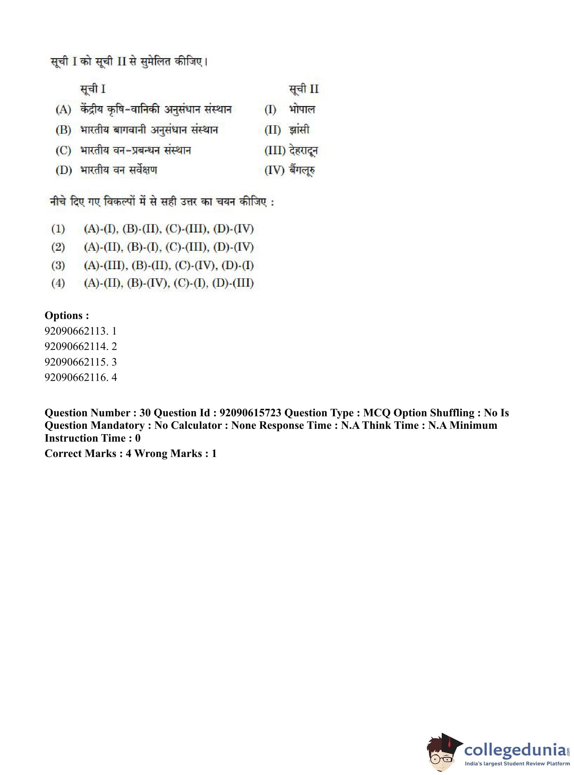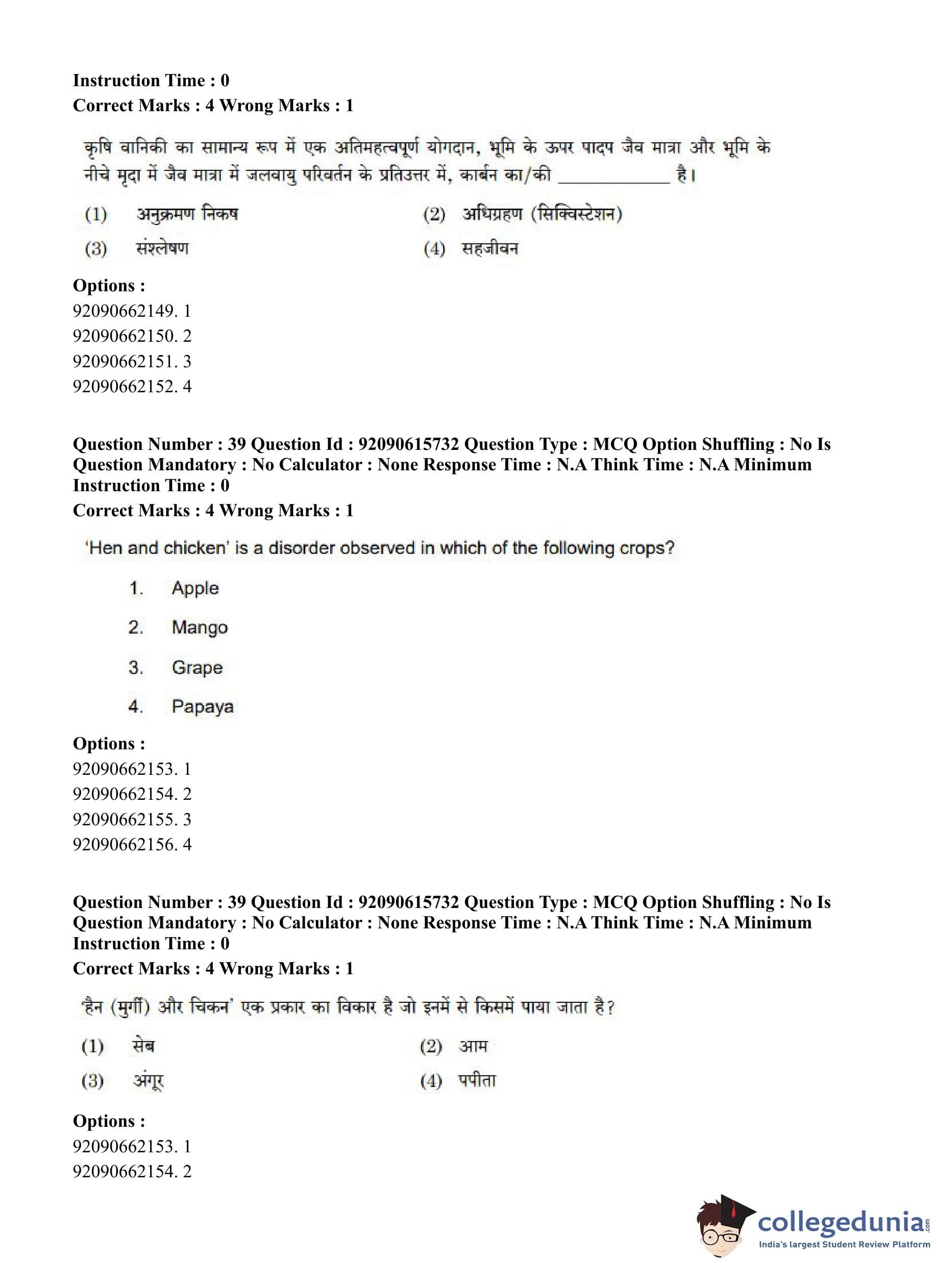 CUET PG 2023 Agro-forestry Question Paper in Hindi (June 12 - Shift 3)