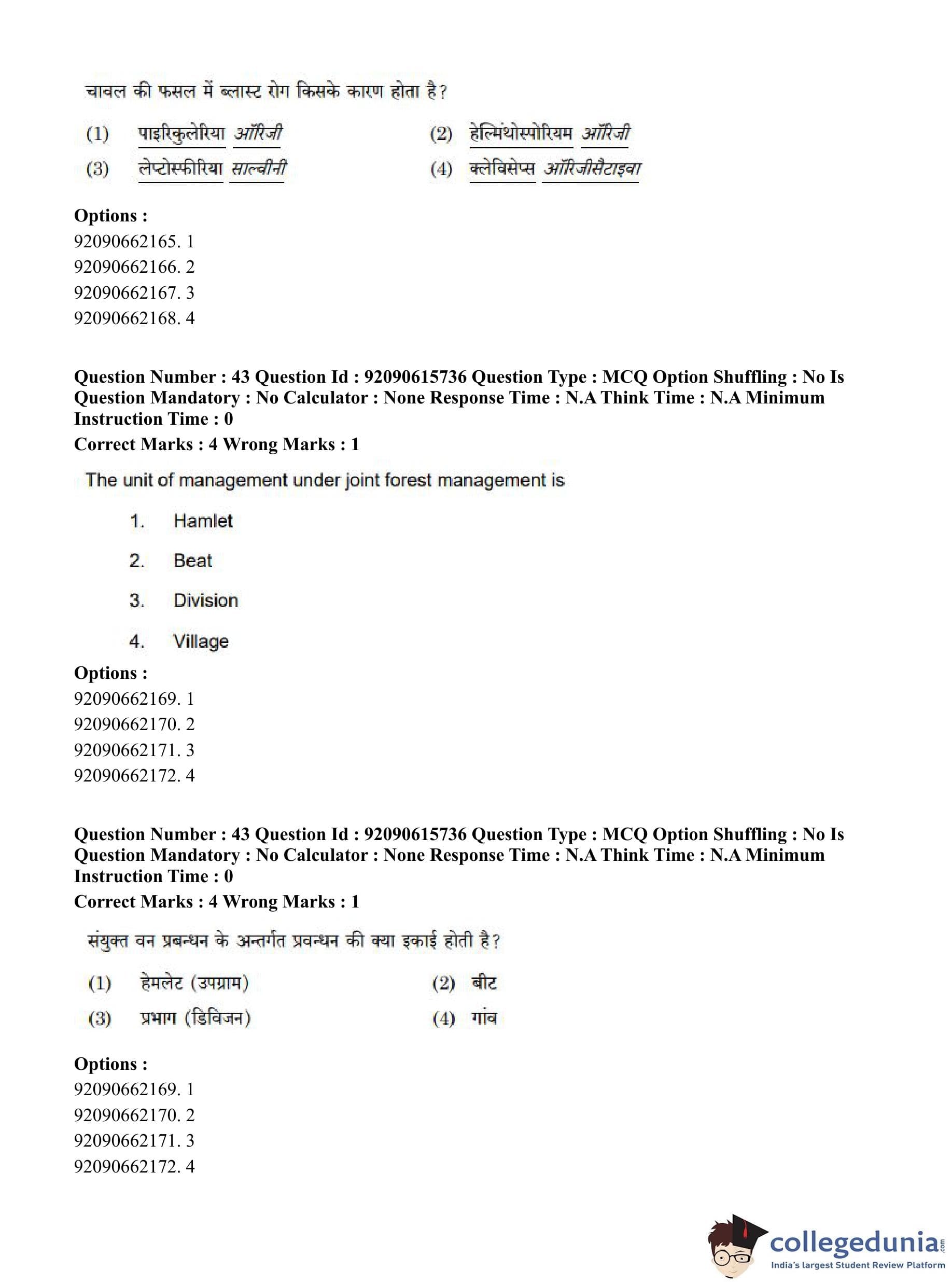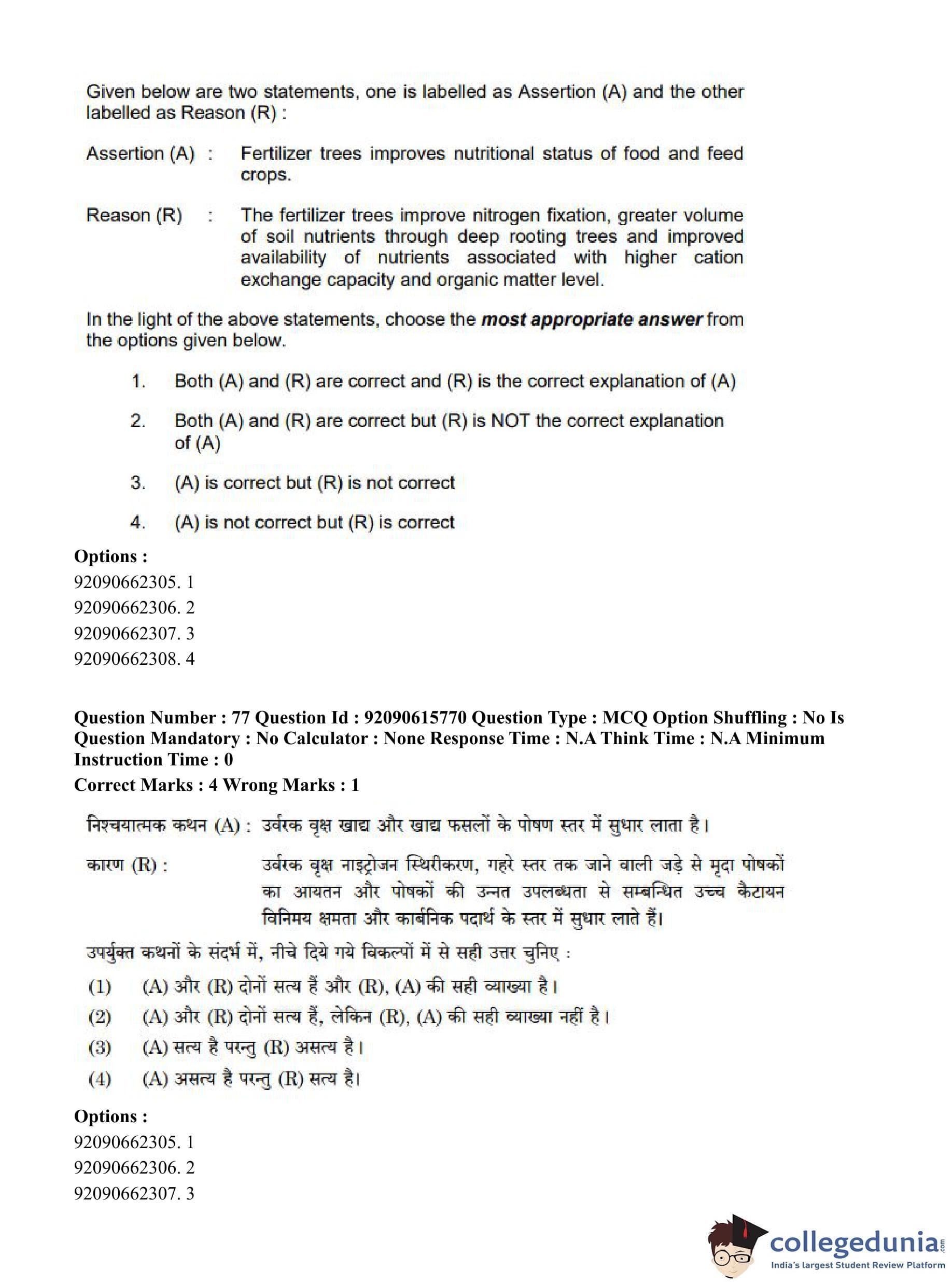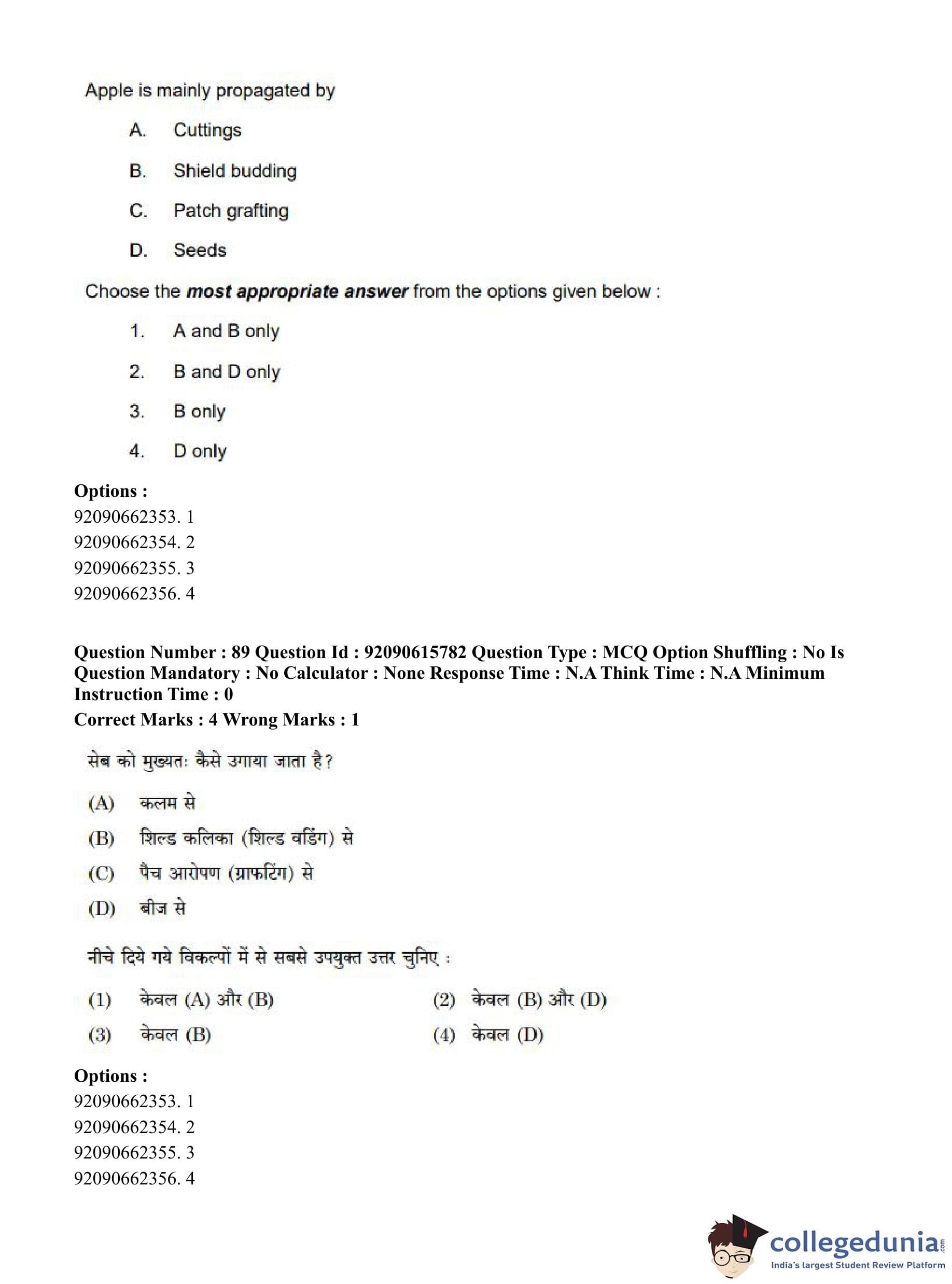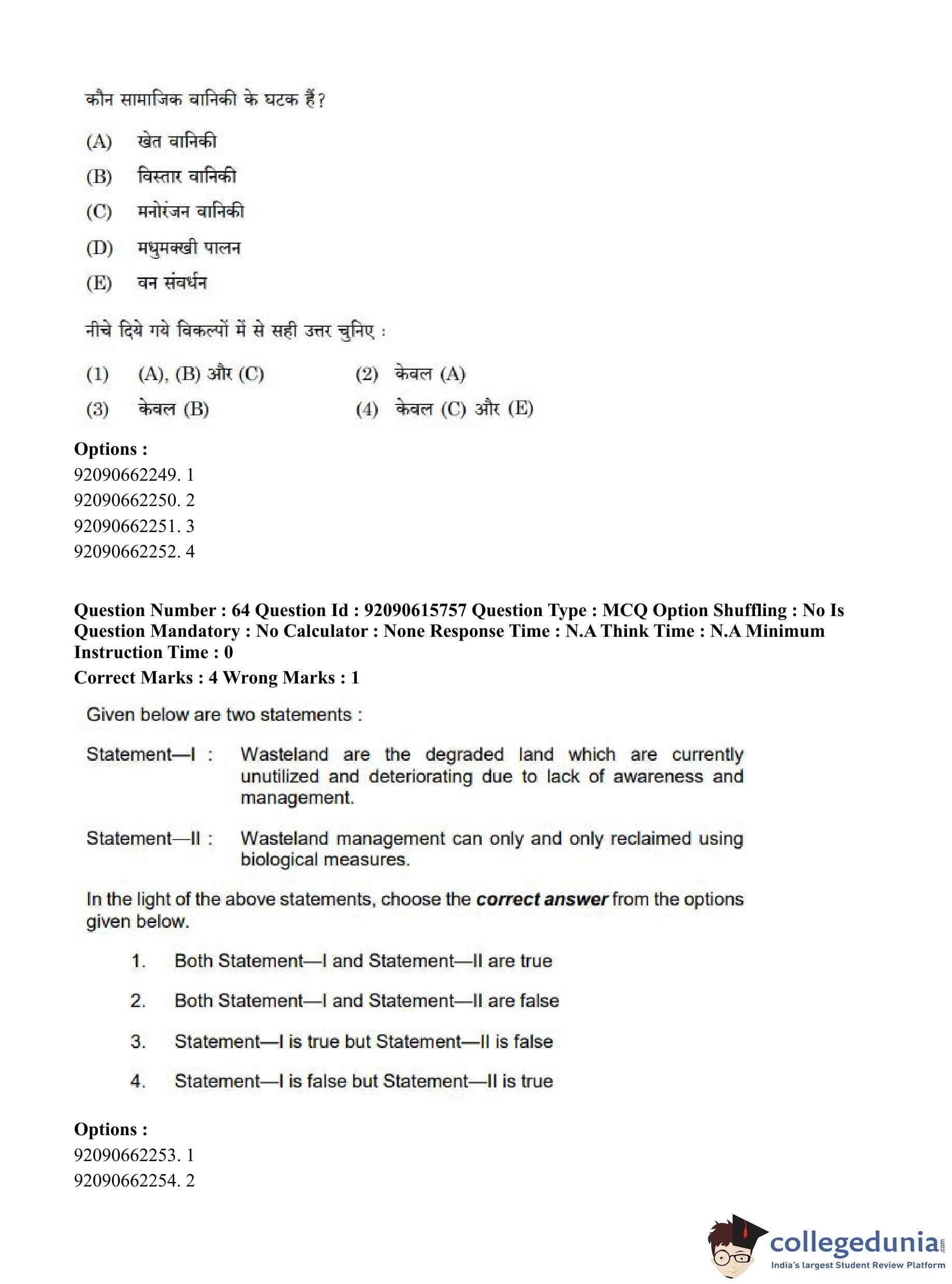 CUET PG 2023 Agro-forestry Question Paper in Hindi (June 12 - Shift 3)