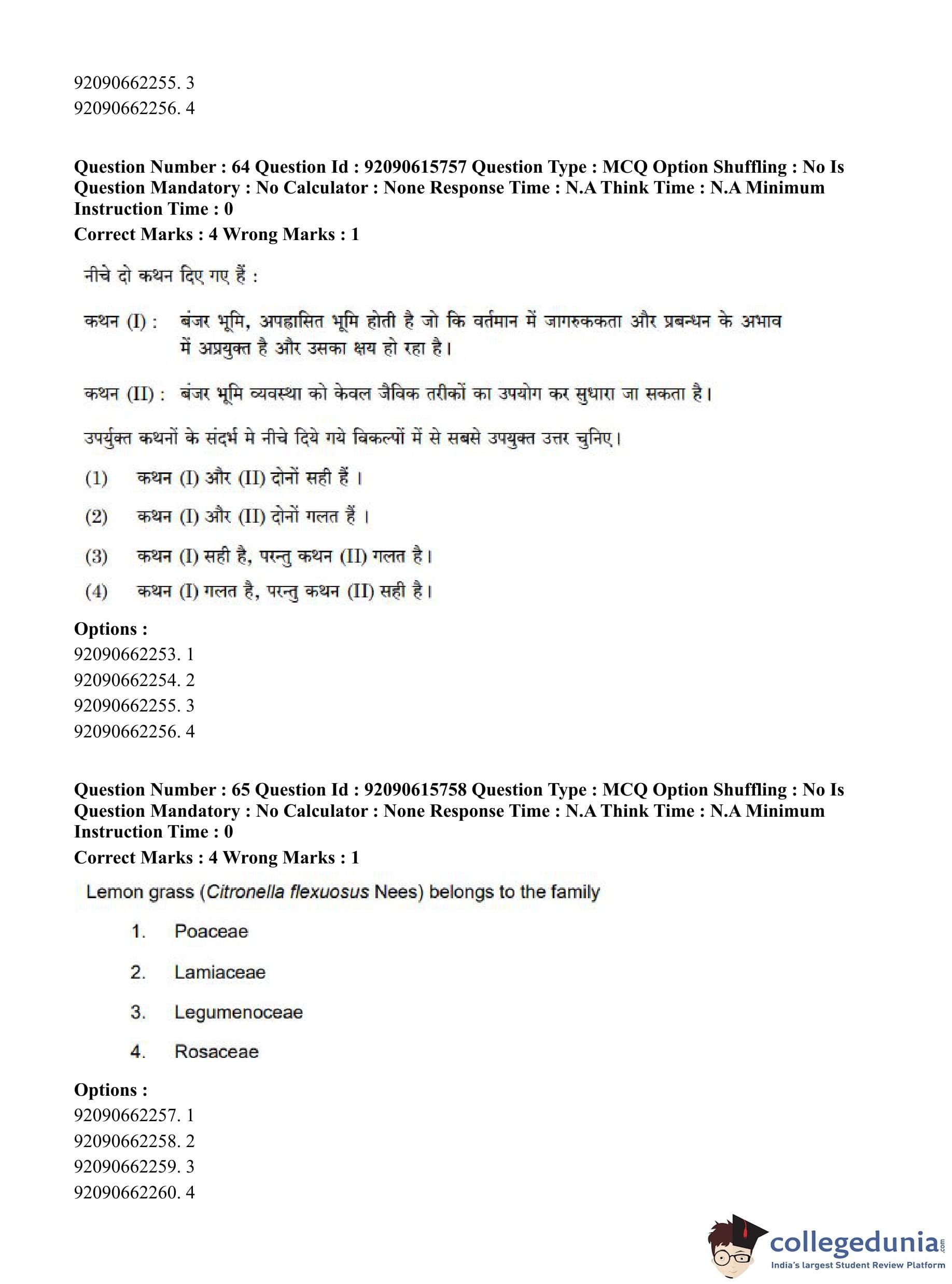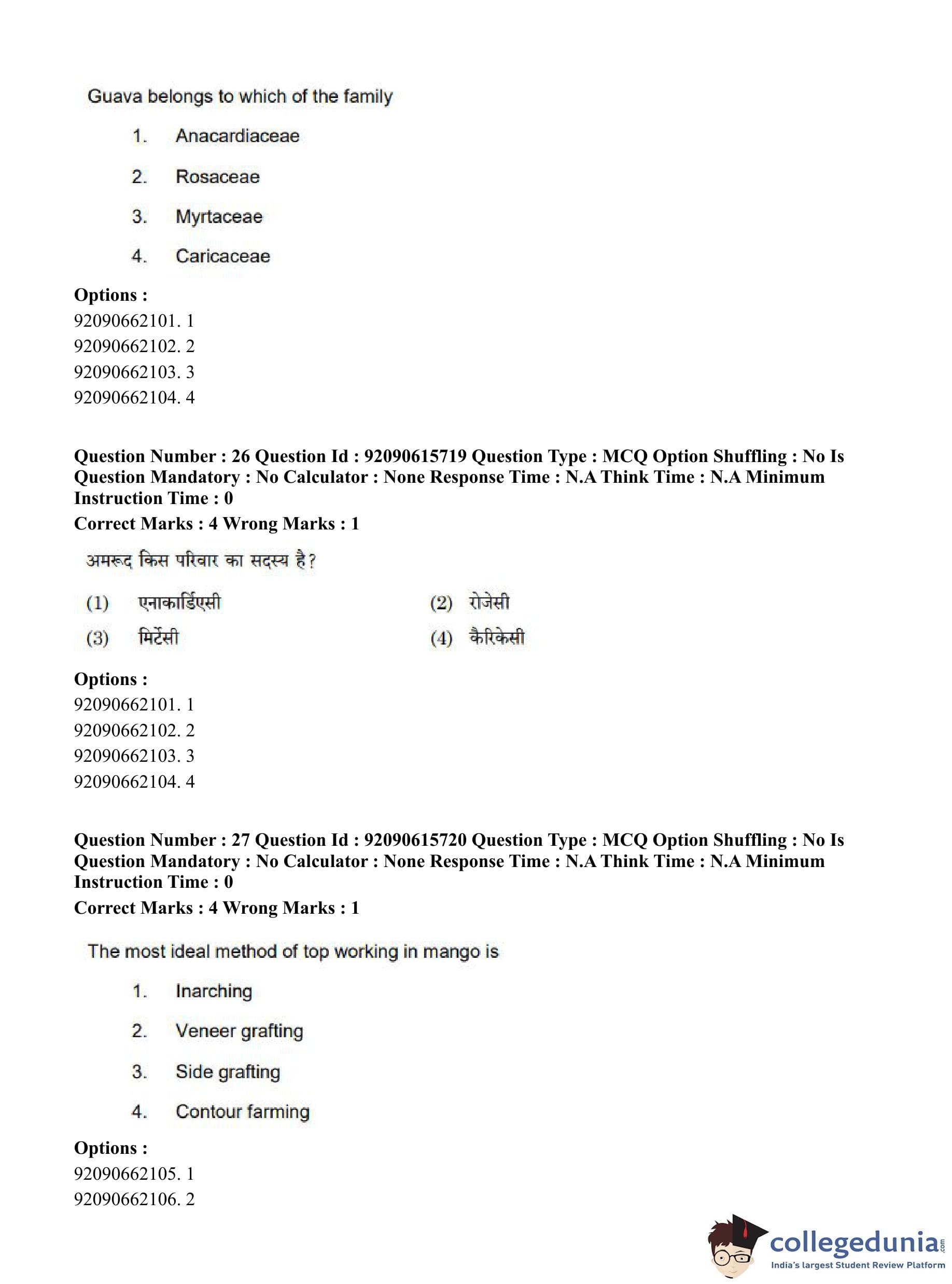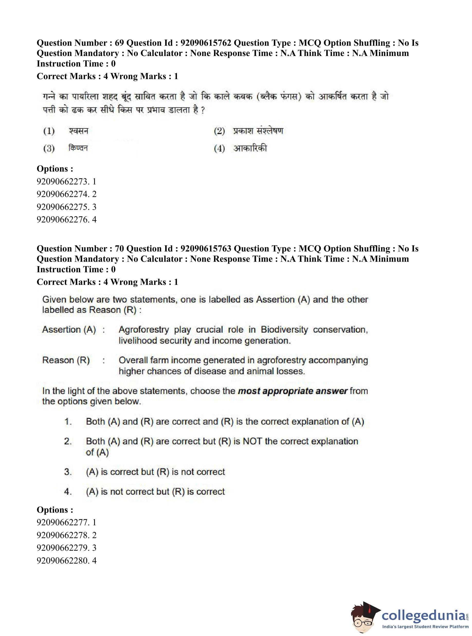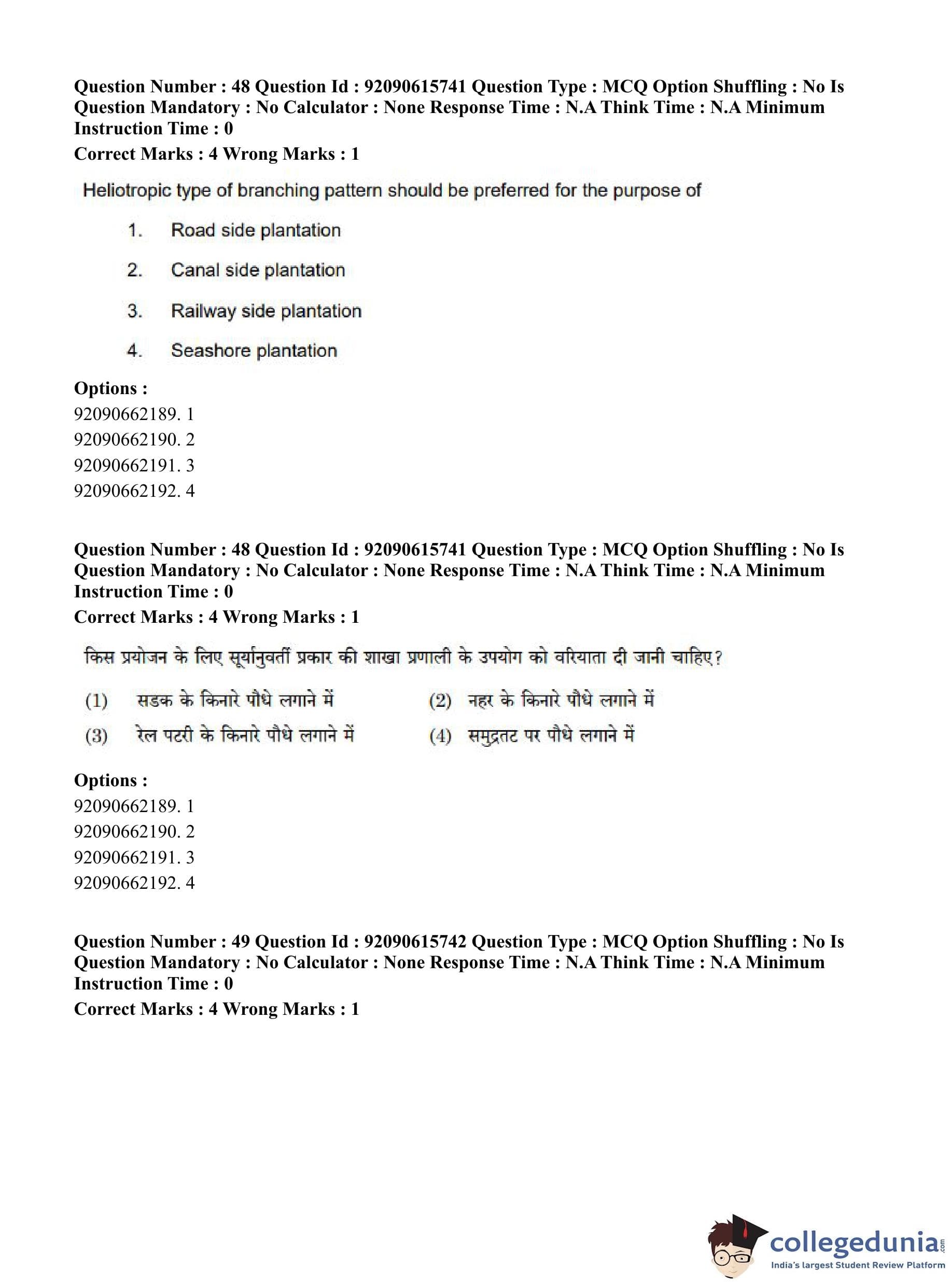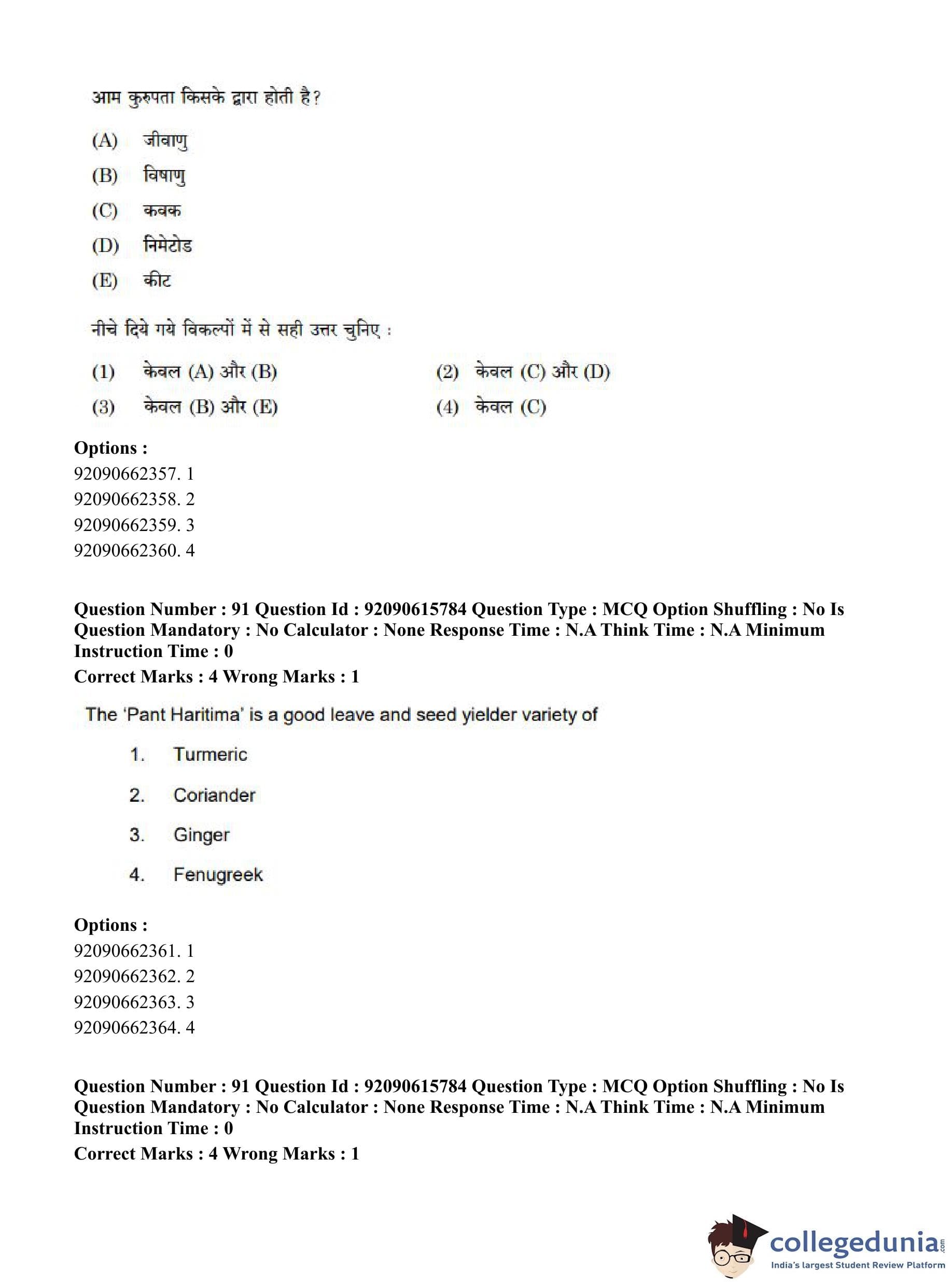 CUET PG 2023 Agro-forestry Question Paper in Hindi (June 12 - Shift 3)