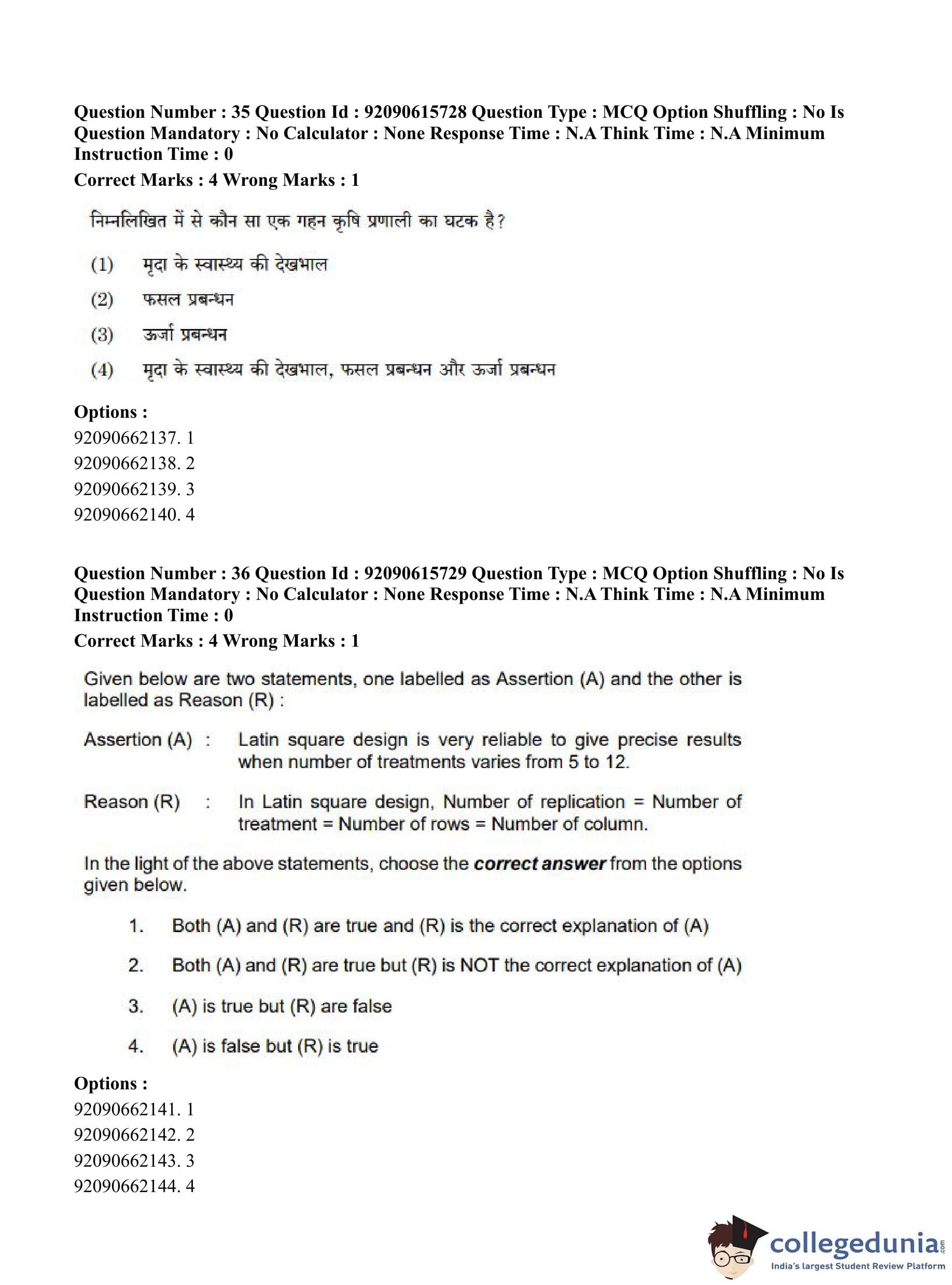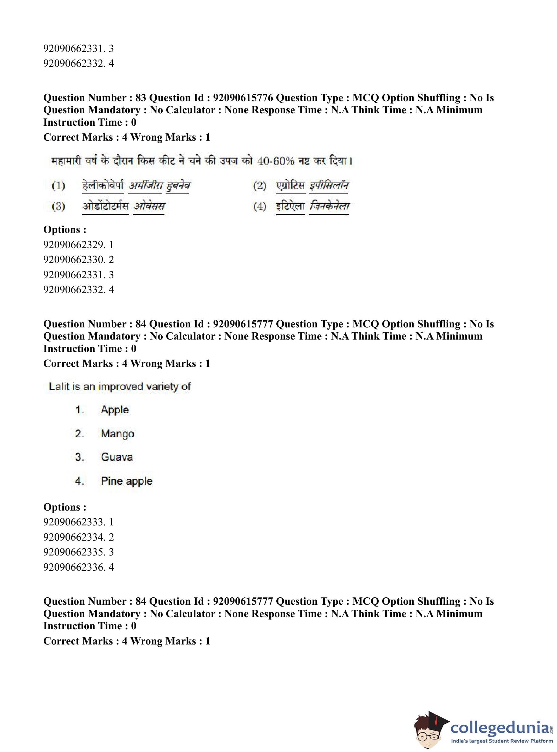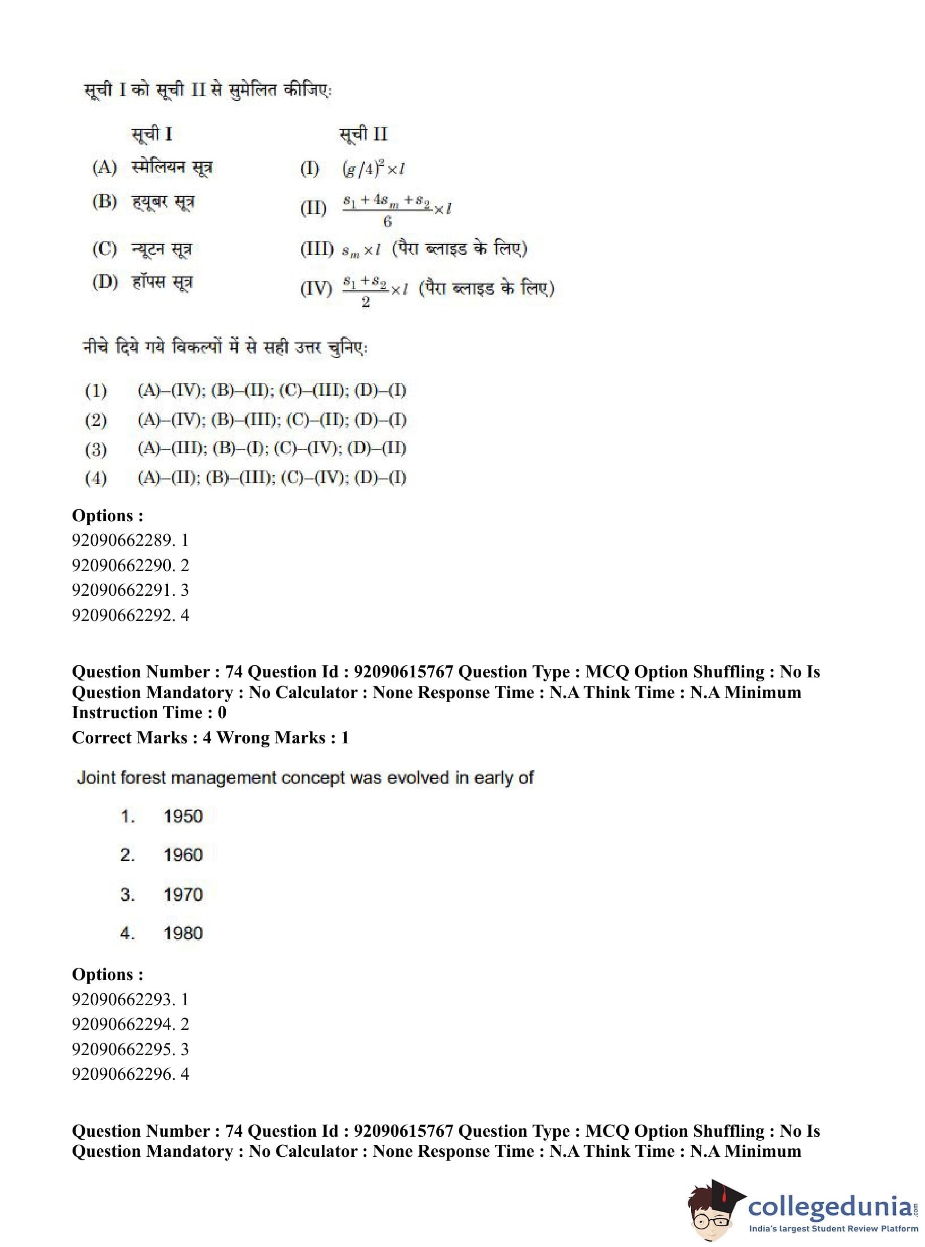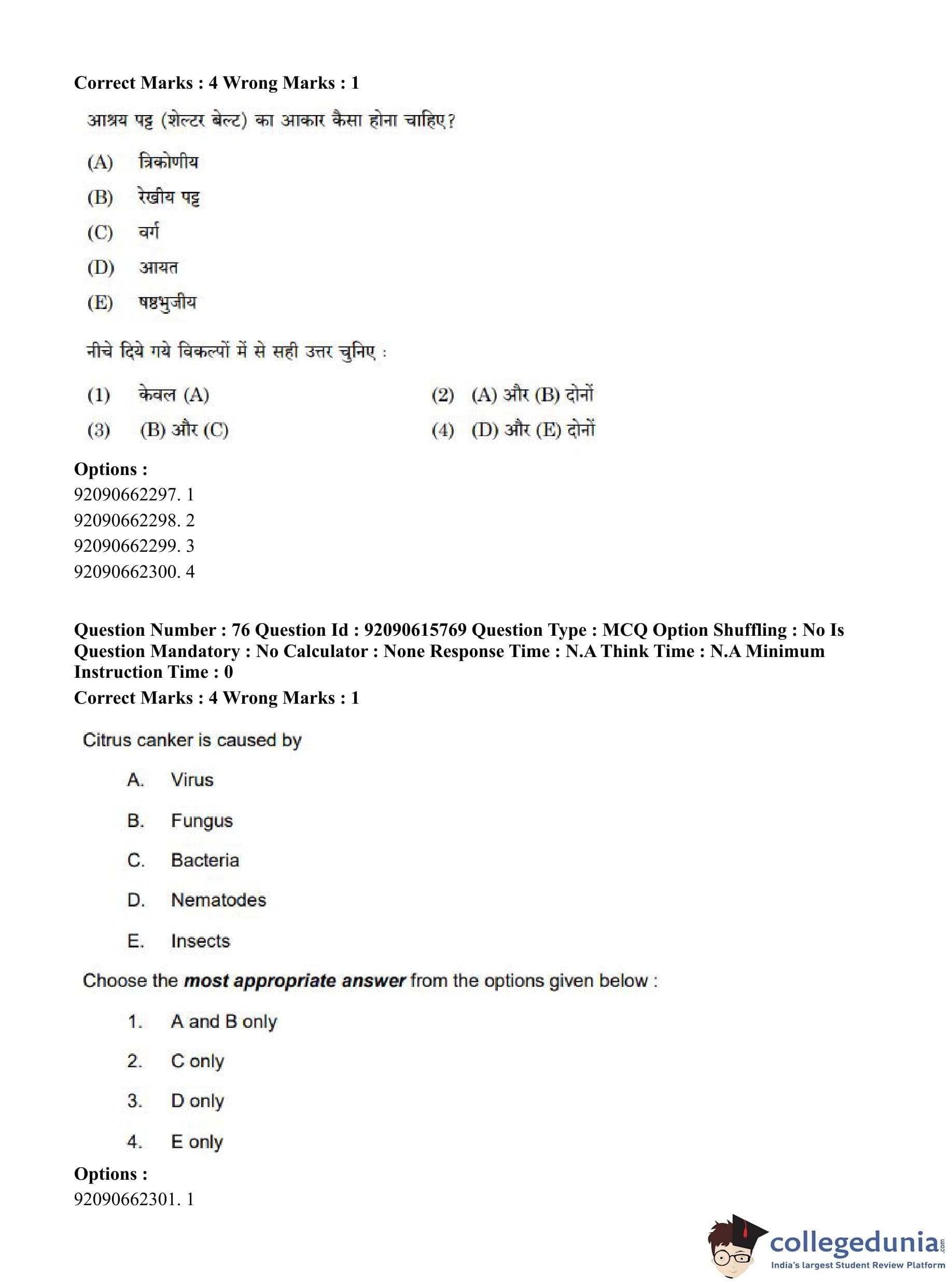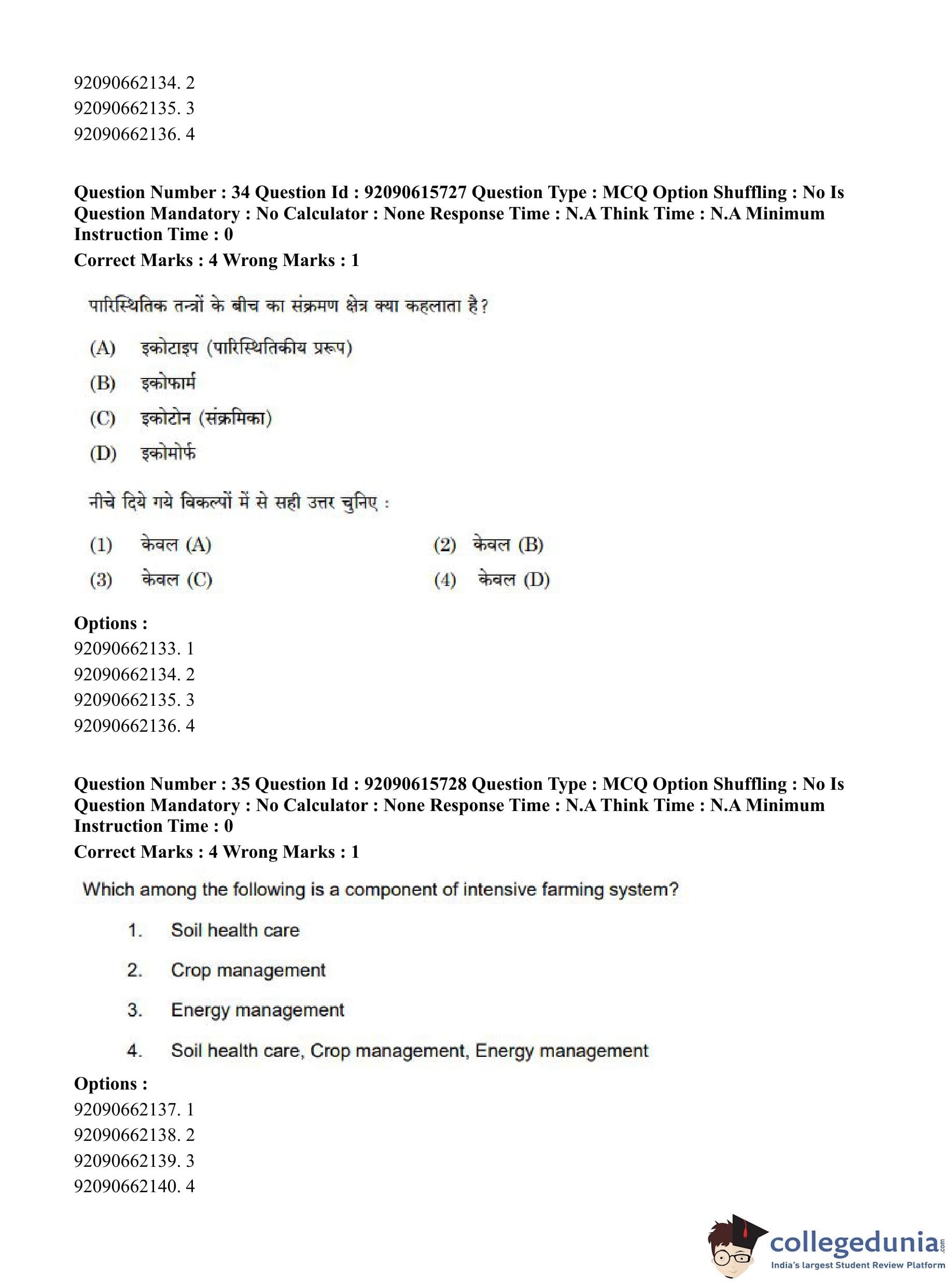 CUET PG 2023 Agro-forestry Question Paper in Hindi (June 12 - Shift 3)