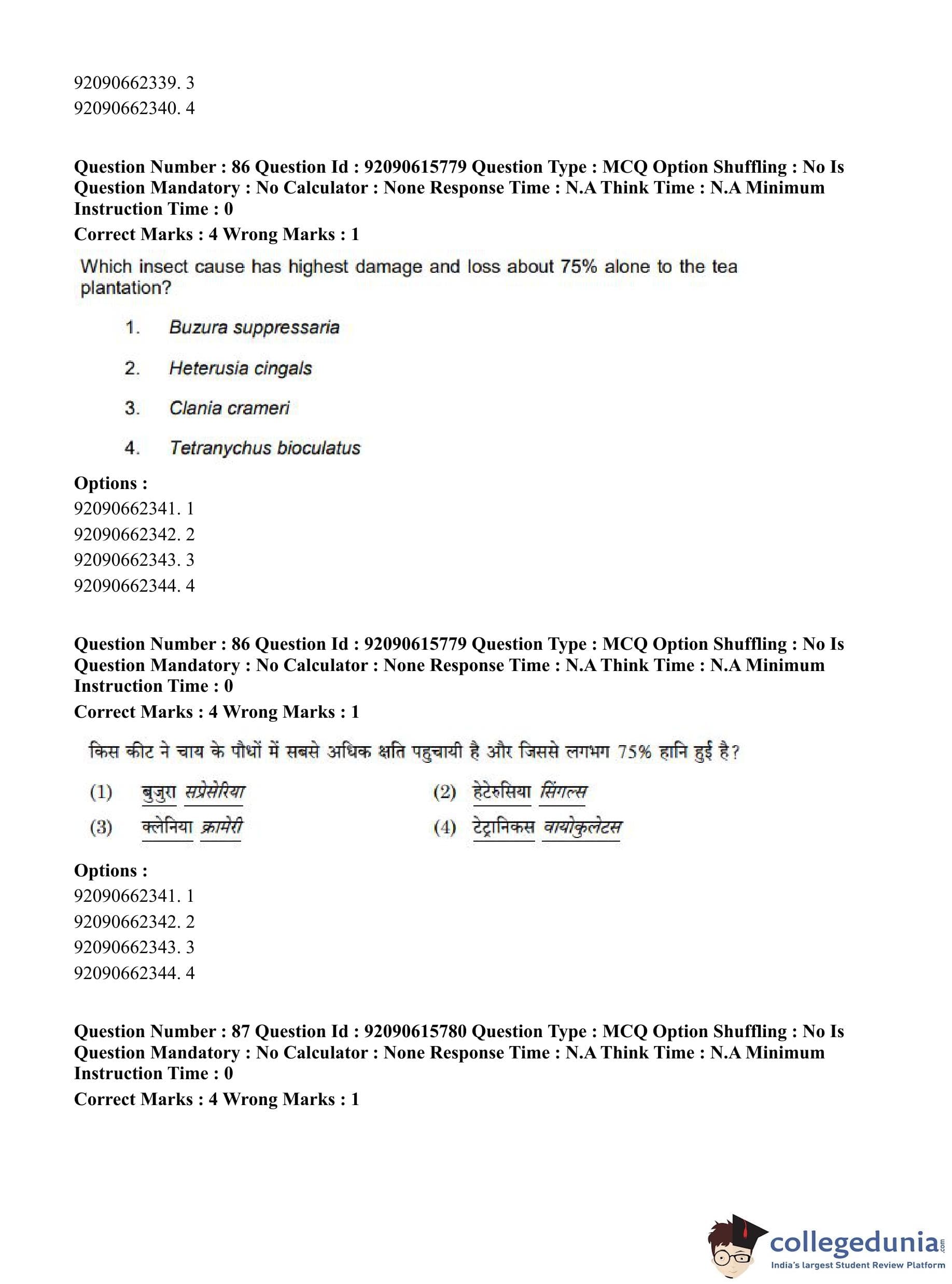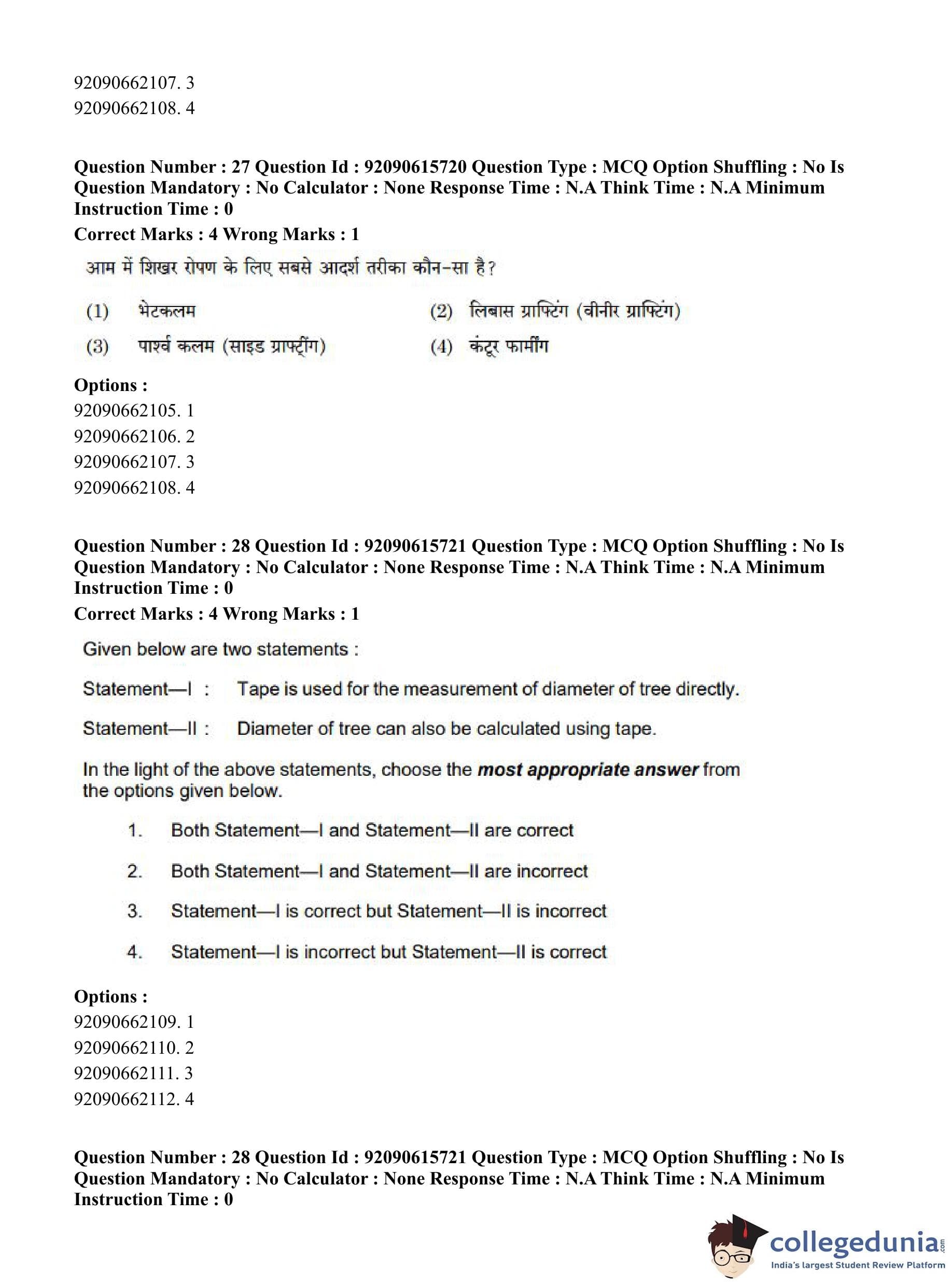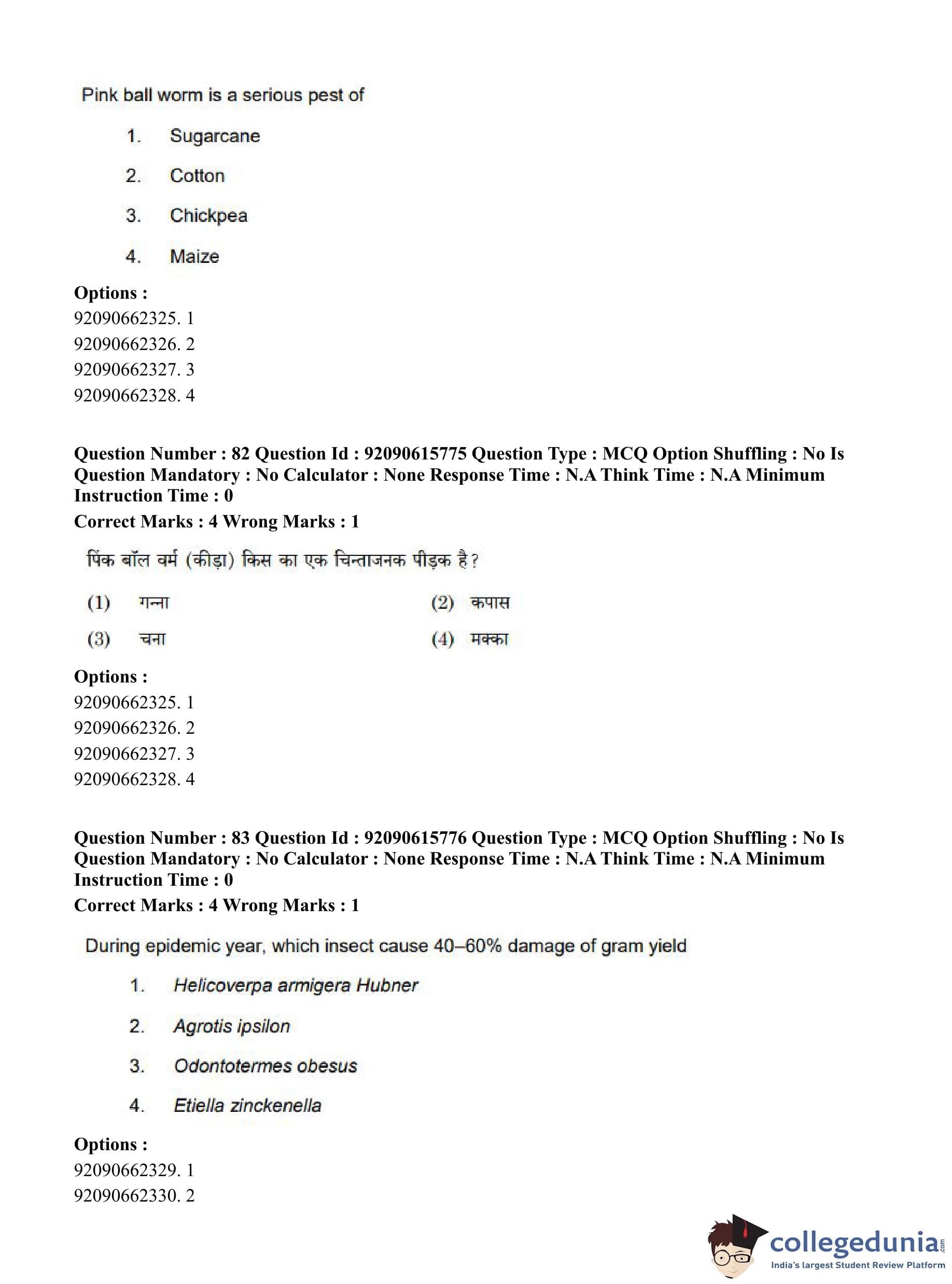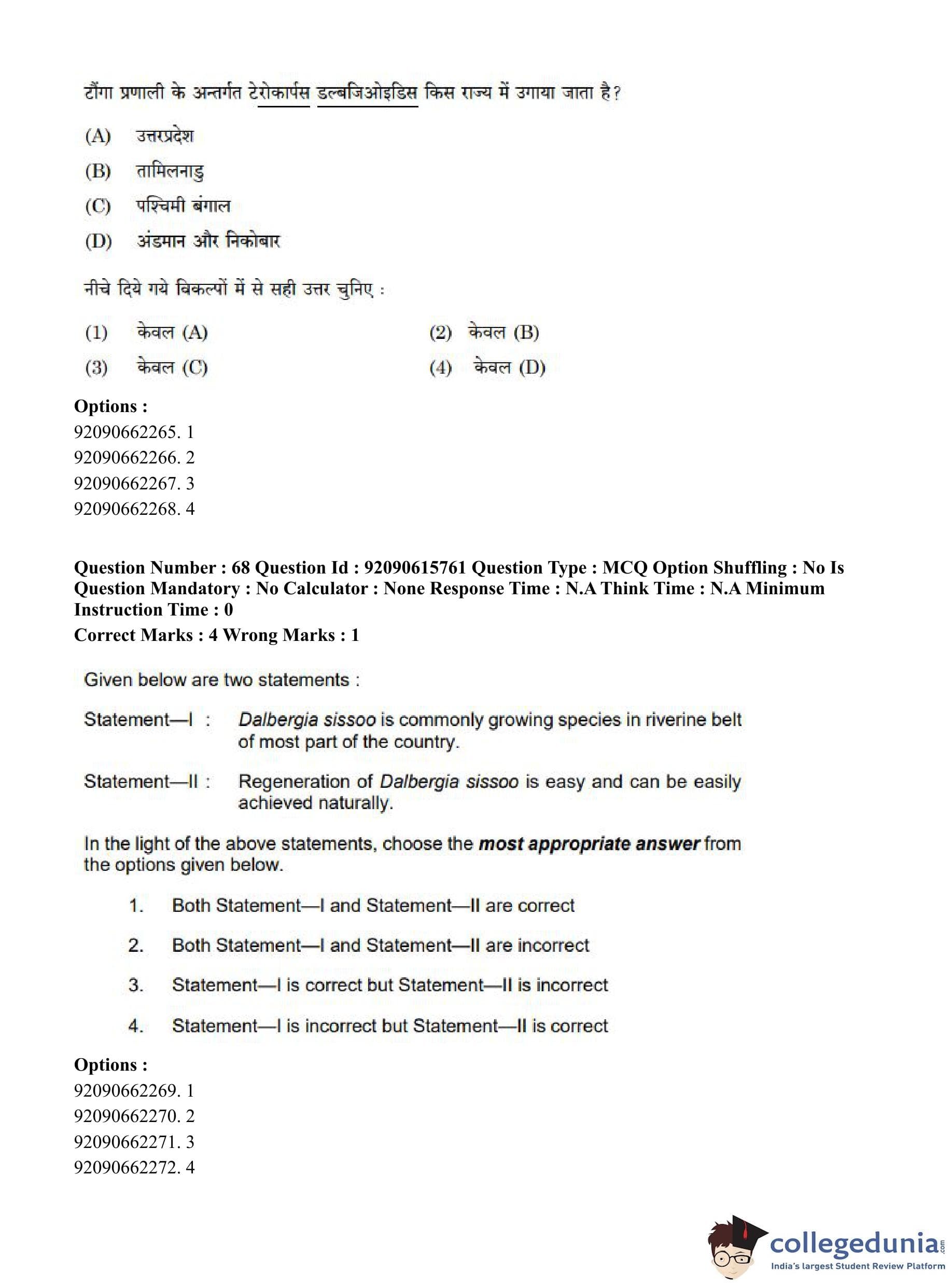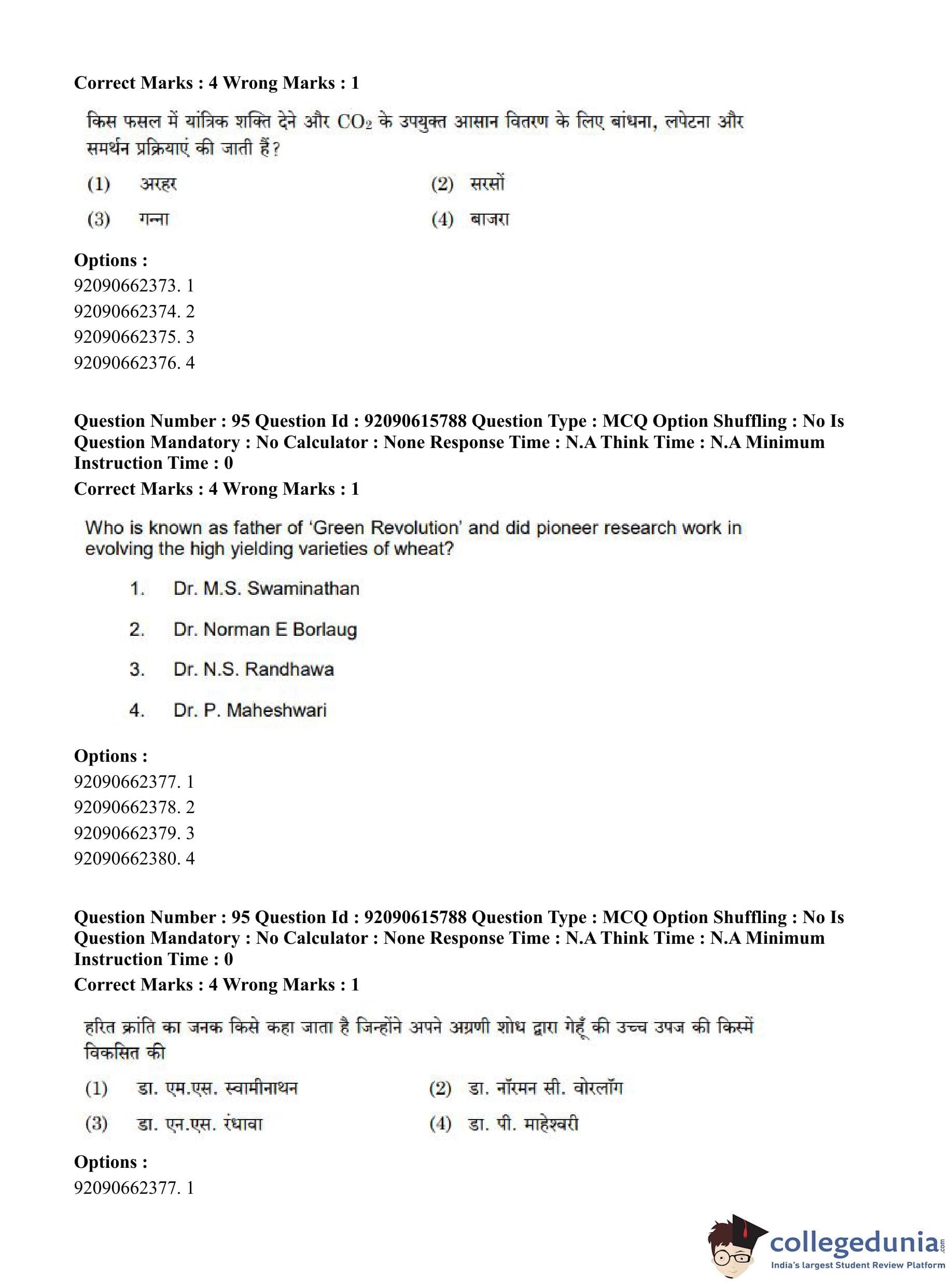 CUET PG 2023 Agro-forestry Question Paper in Hindi (June 12 - Shift 3)