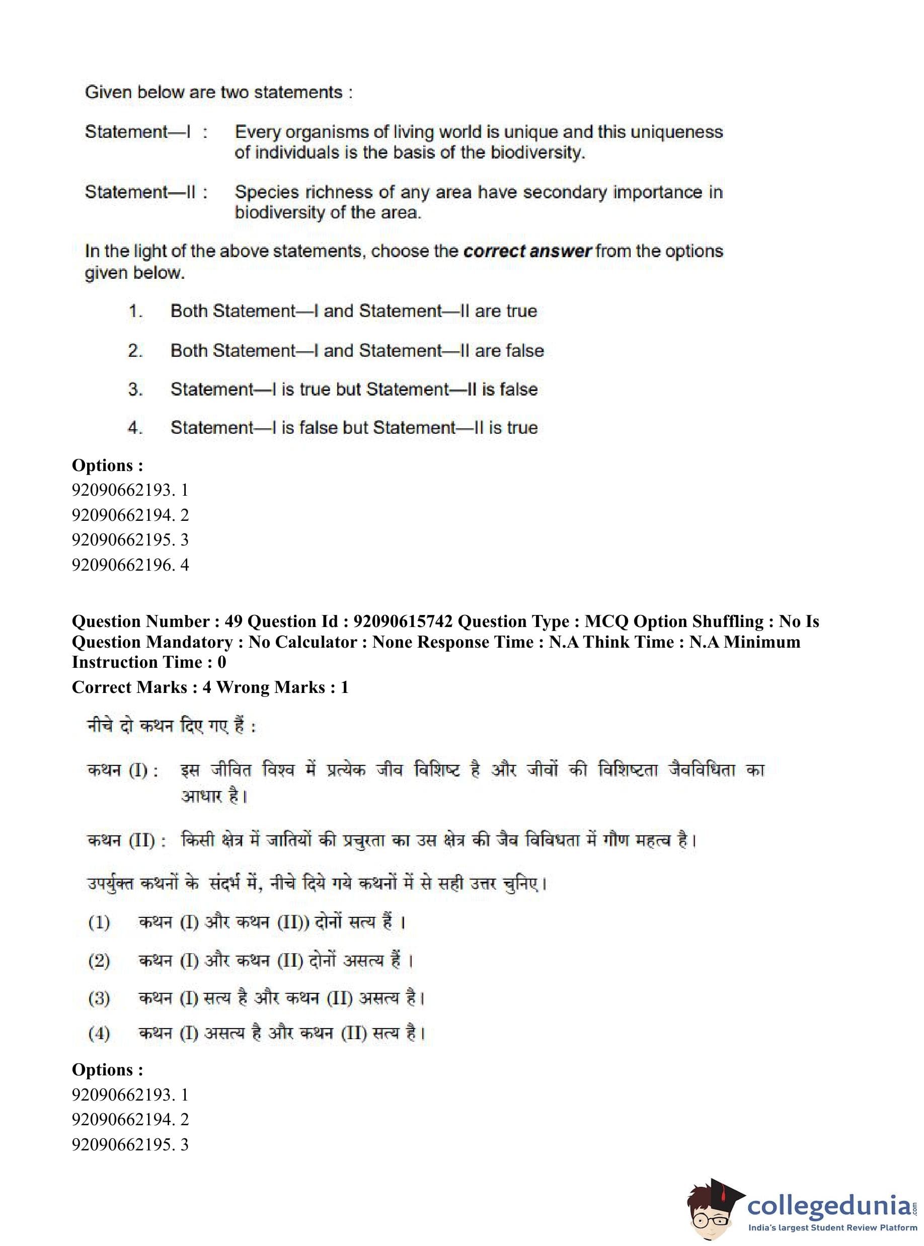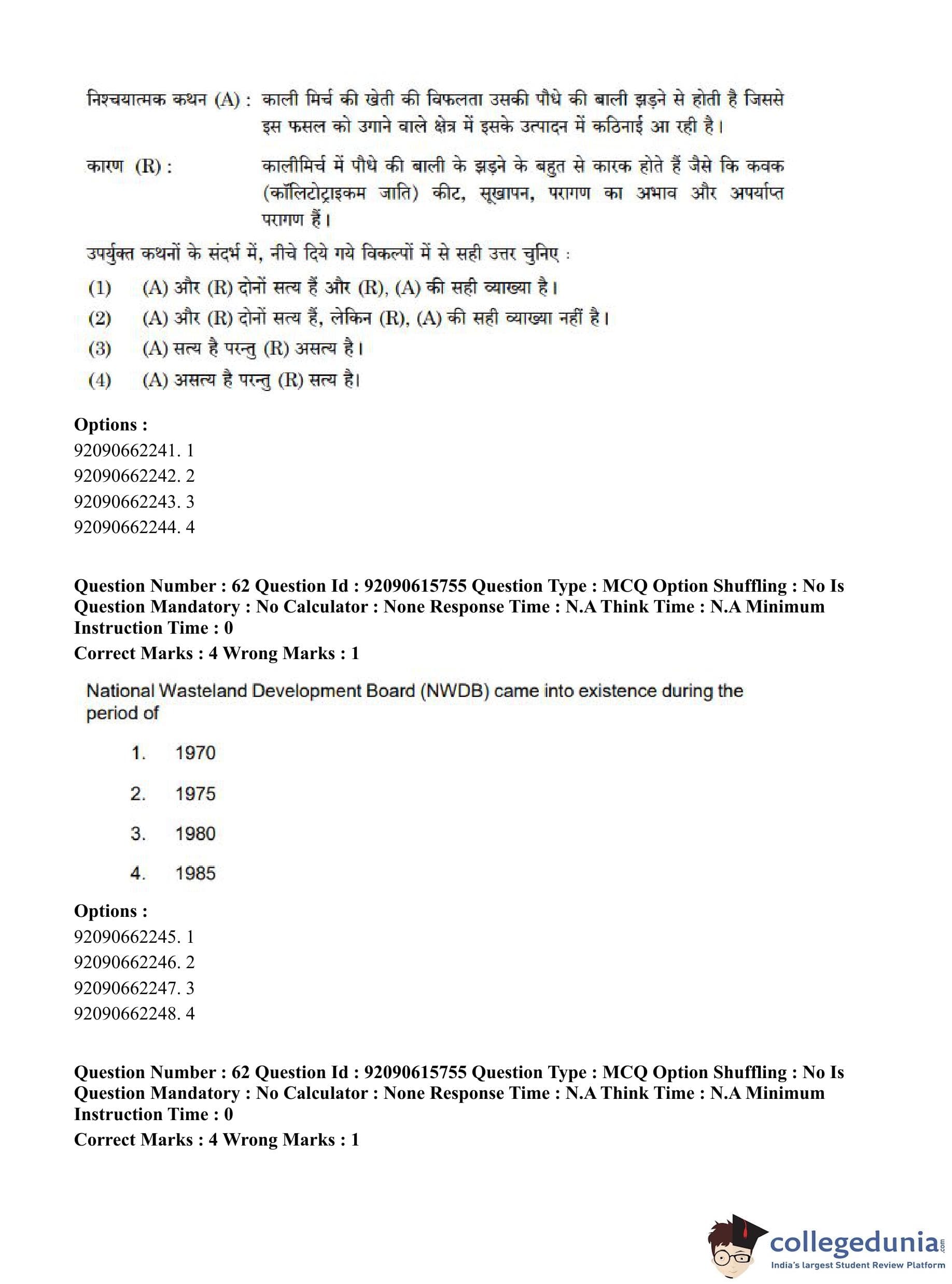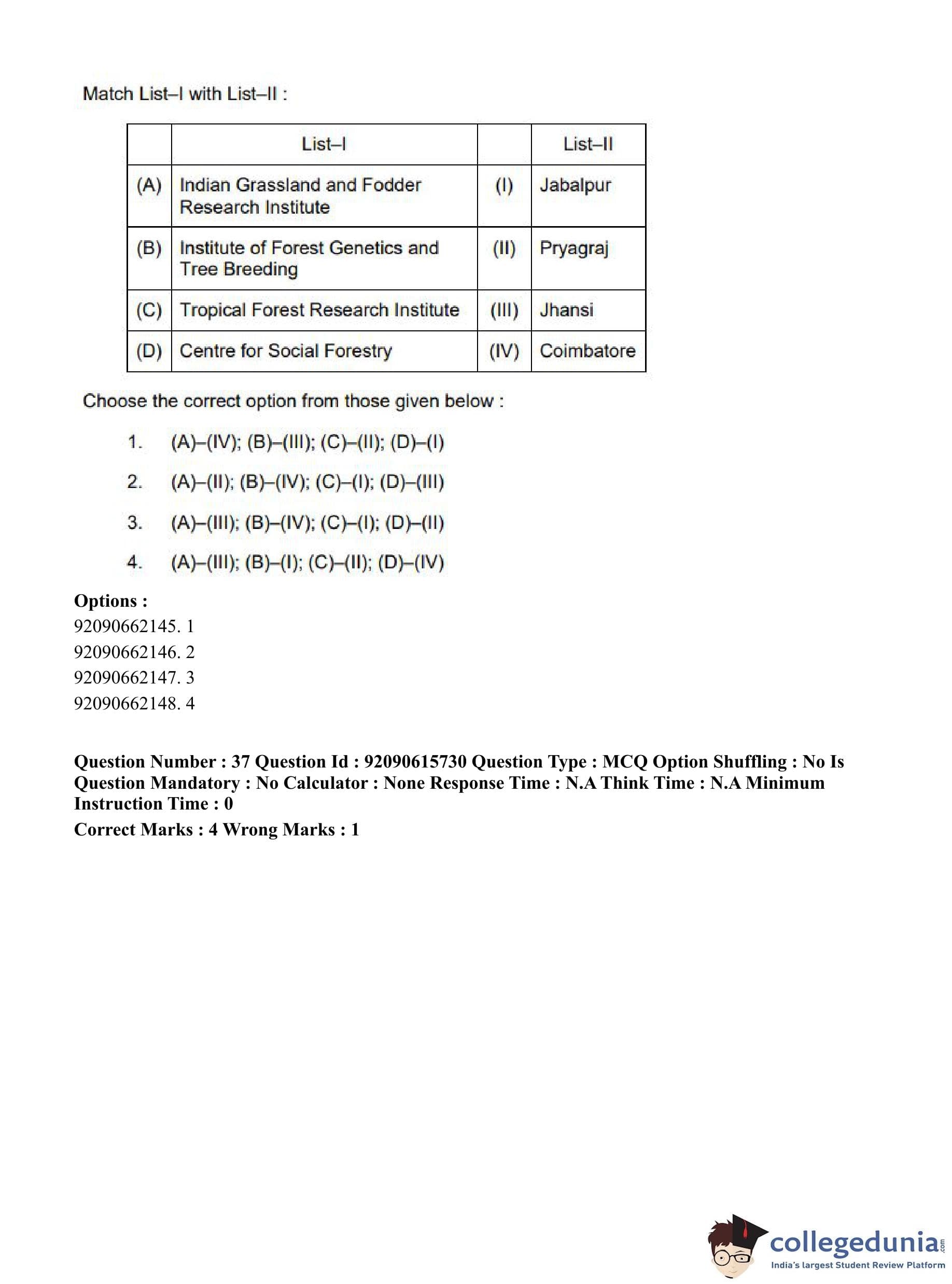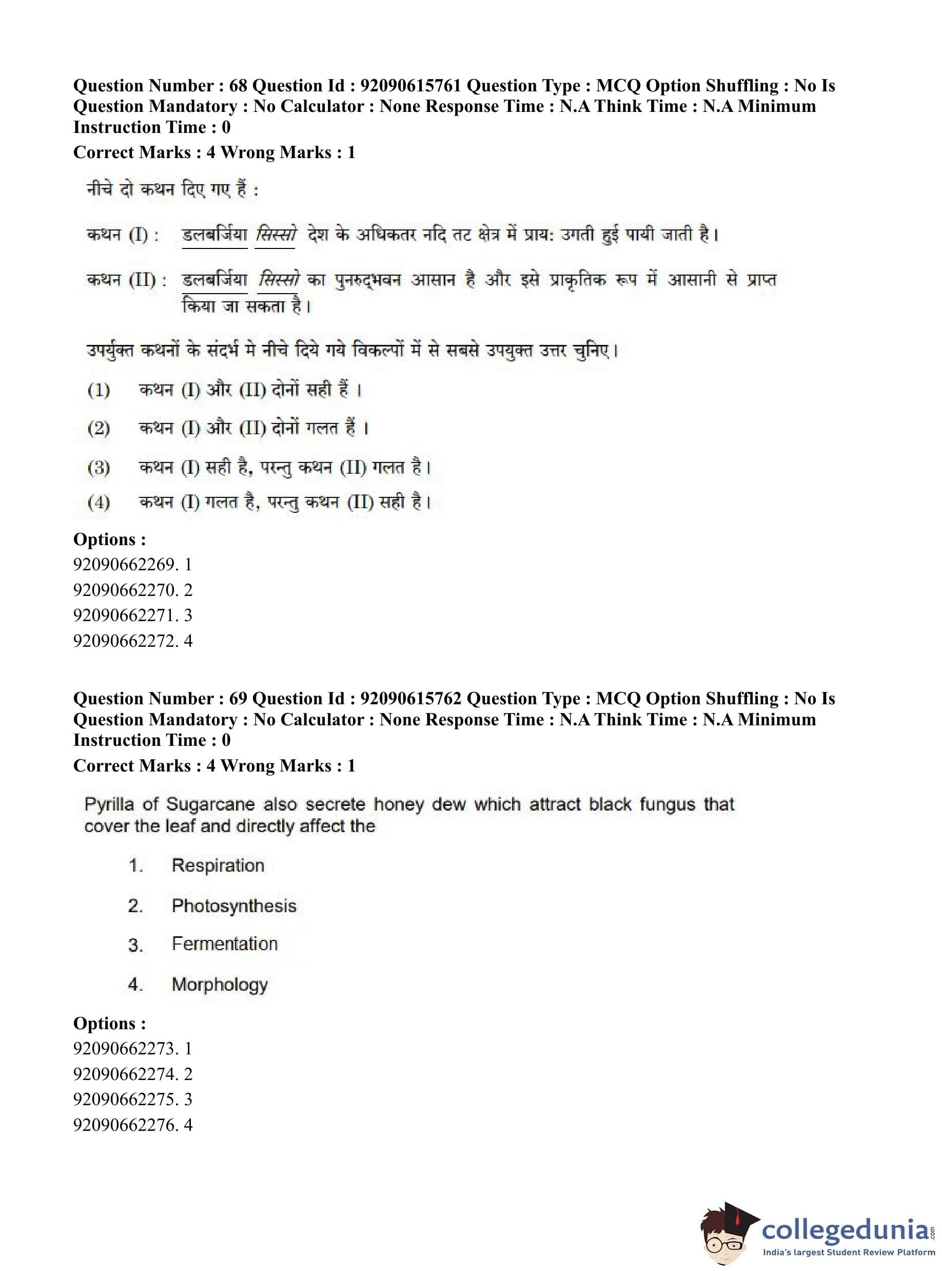 CUET PG 2023 Agro-forestry Question Paper in Hindi (June 12 - Shift 3)