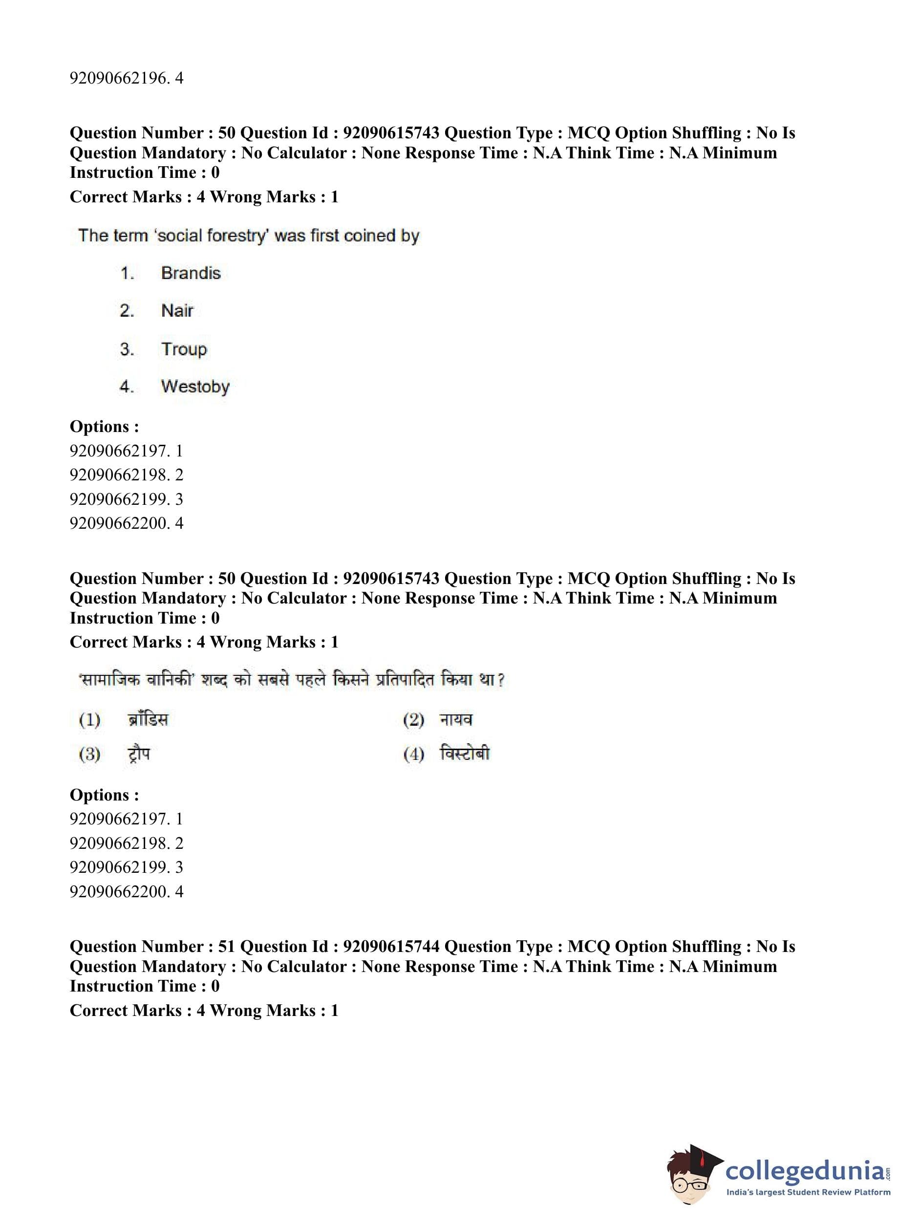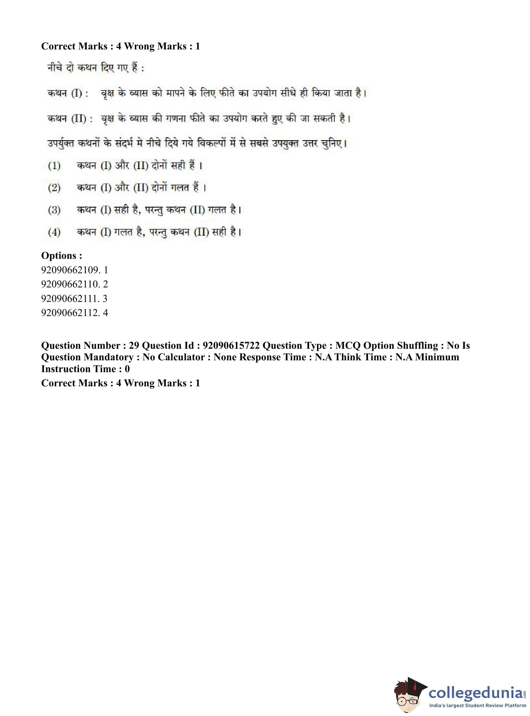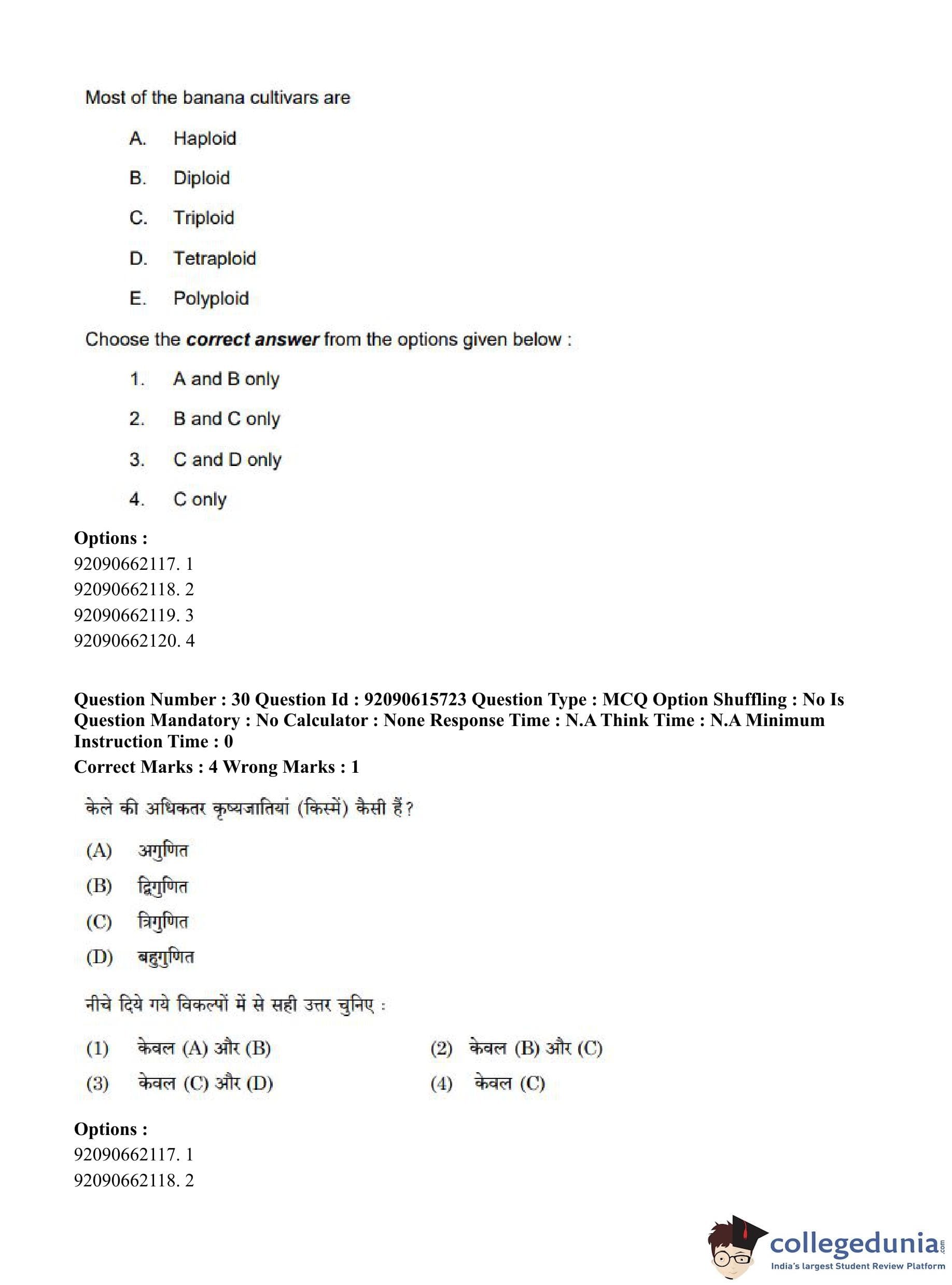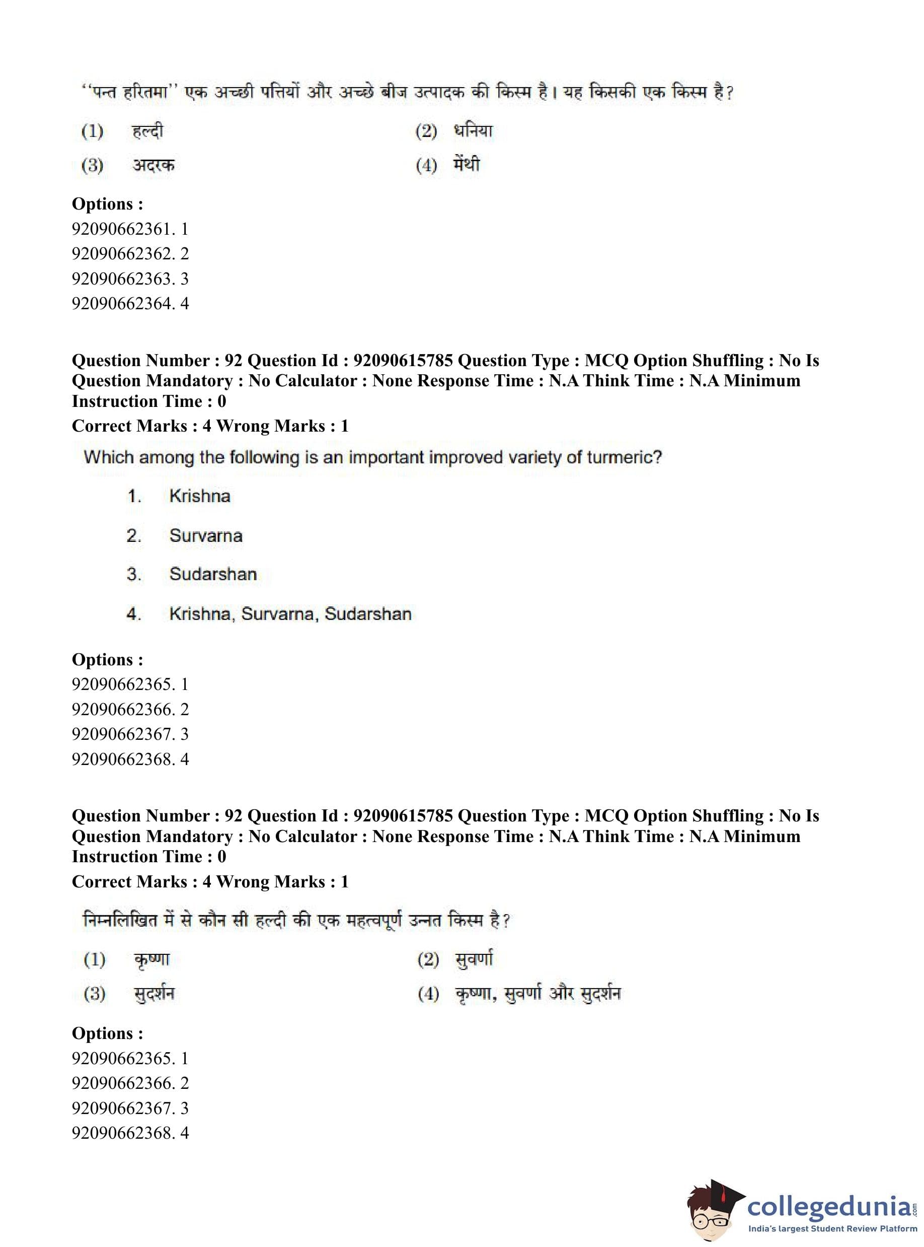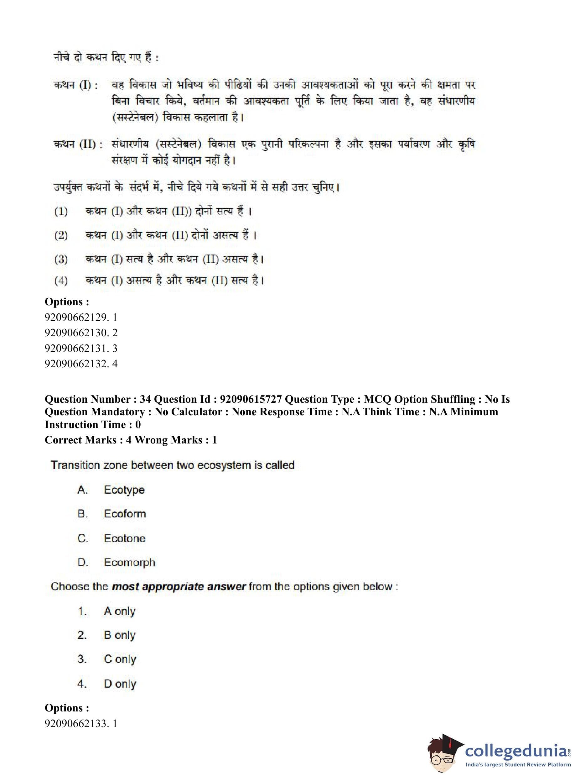 CUET PG 2023 Agro-forestry Question Paper in Hindi (June 12 - Shift 3)