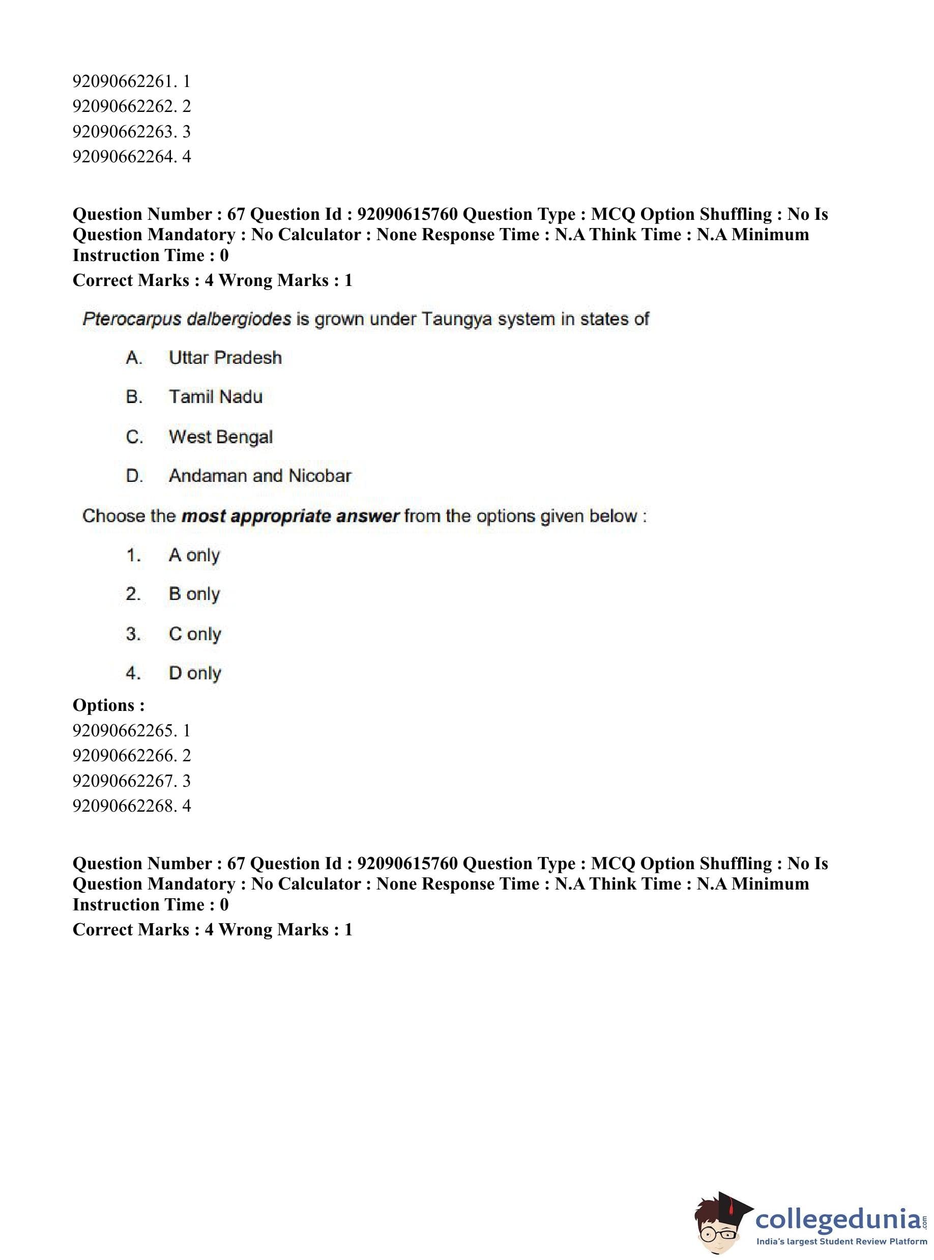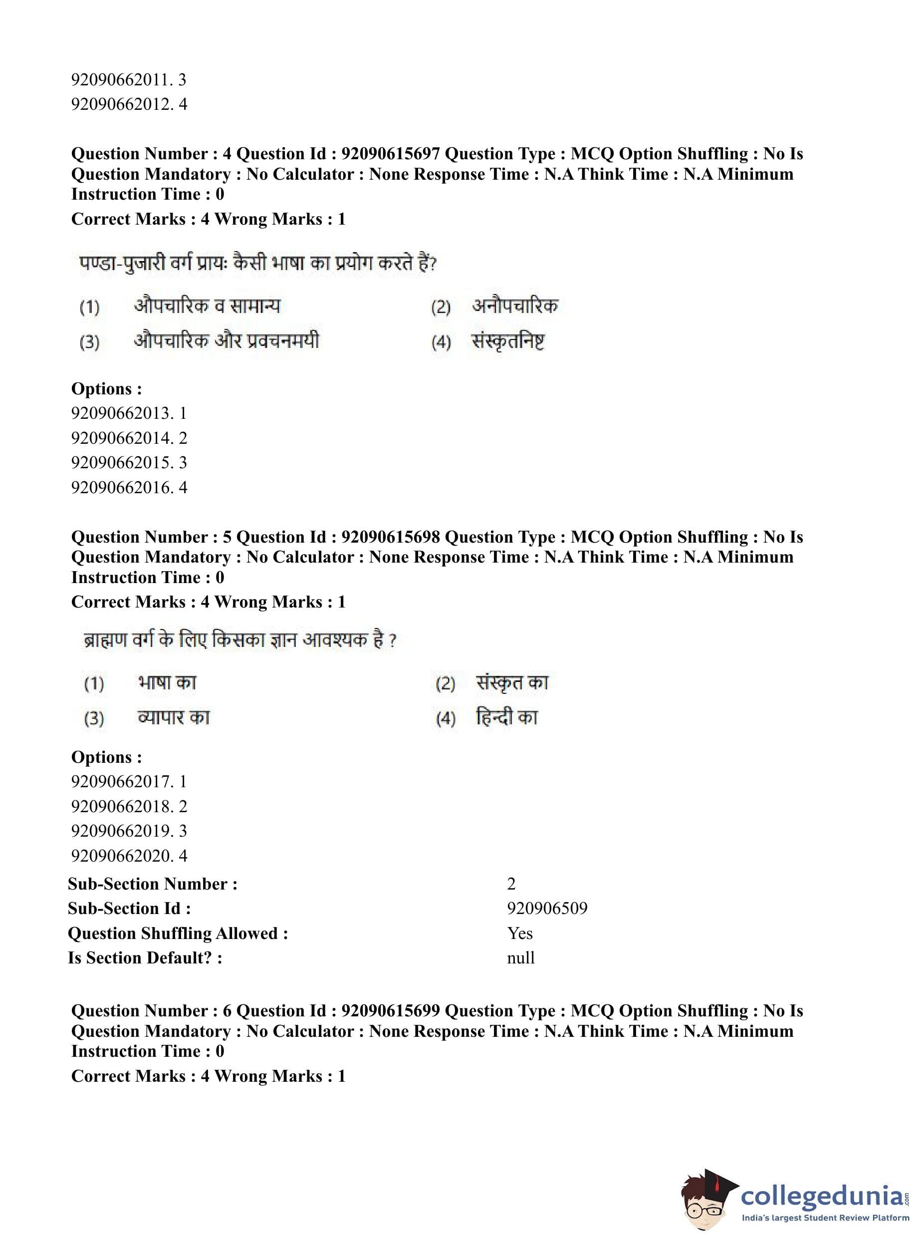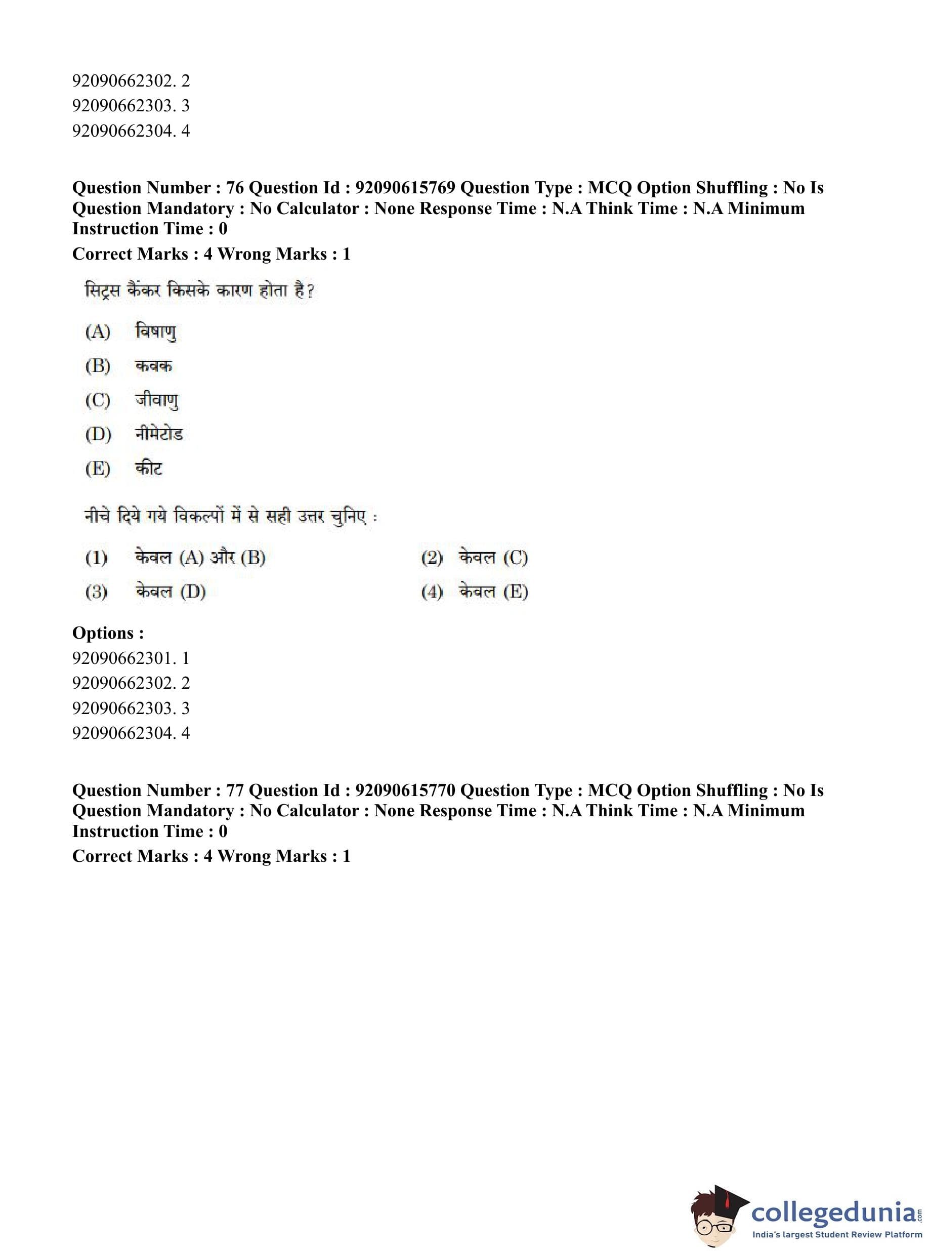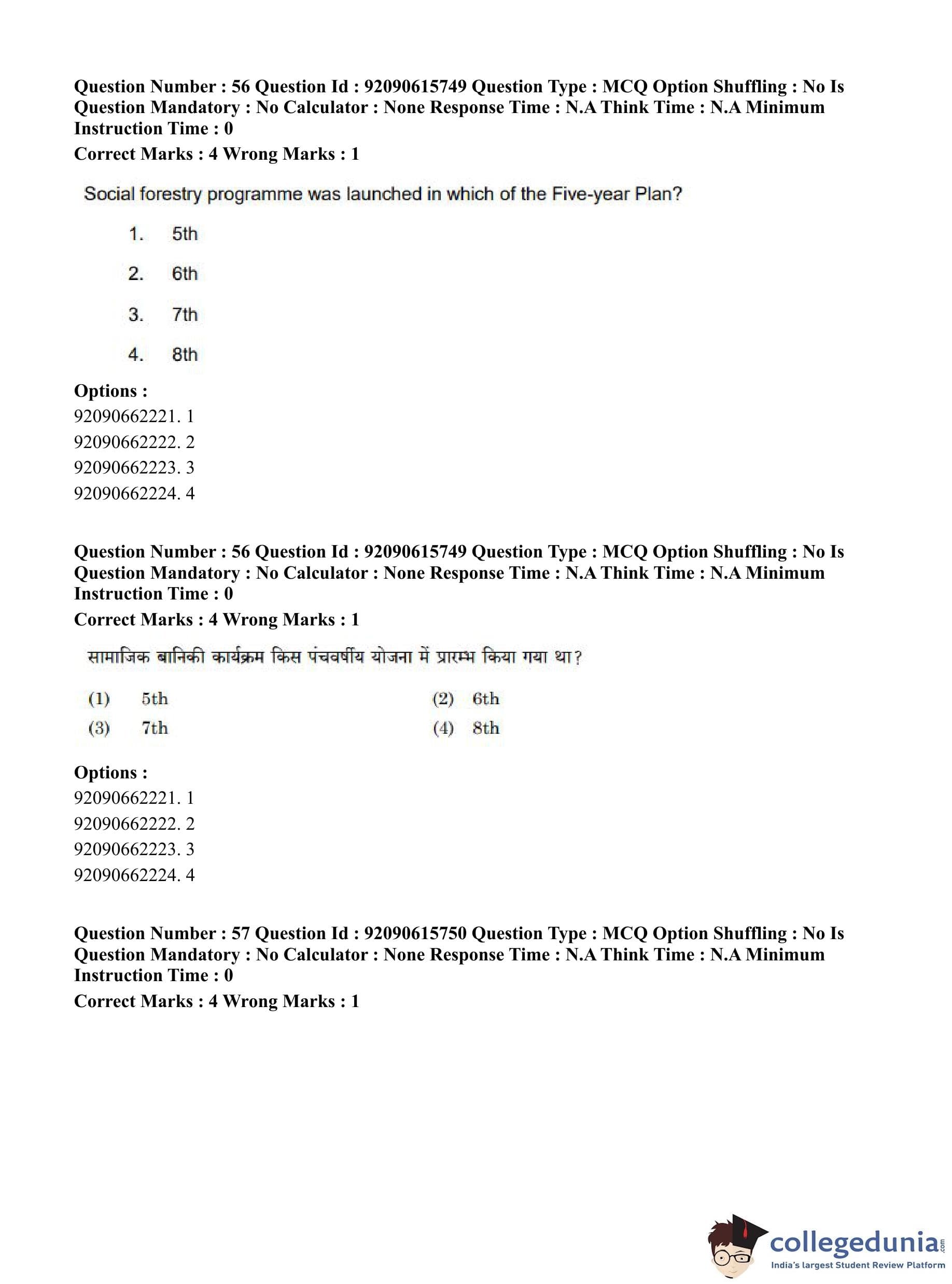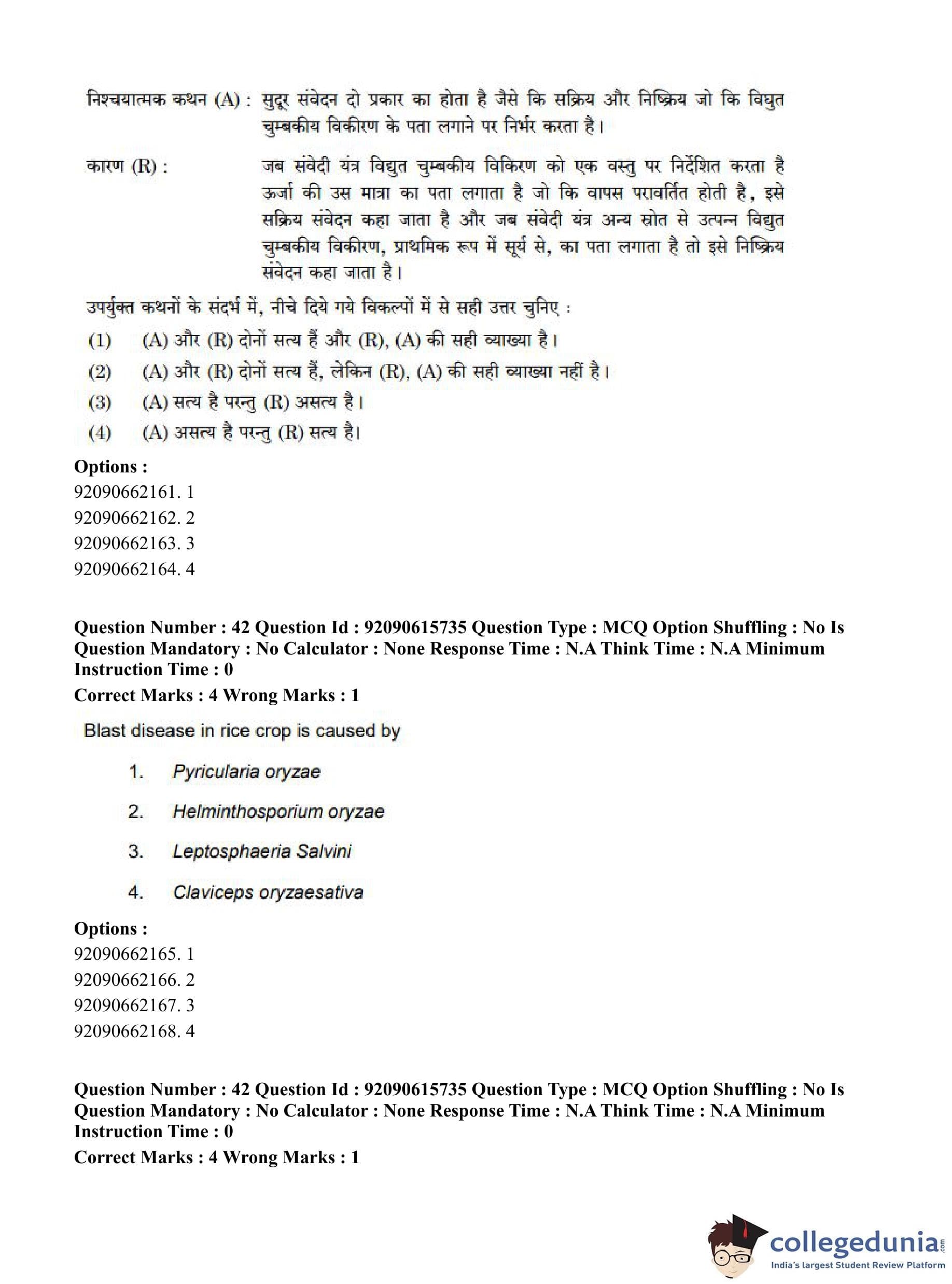 CUET PG 2023 Agro-forestry Question Paper in Hindi (June 12 - Shift 3)