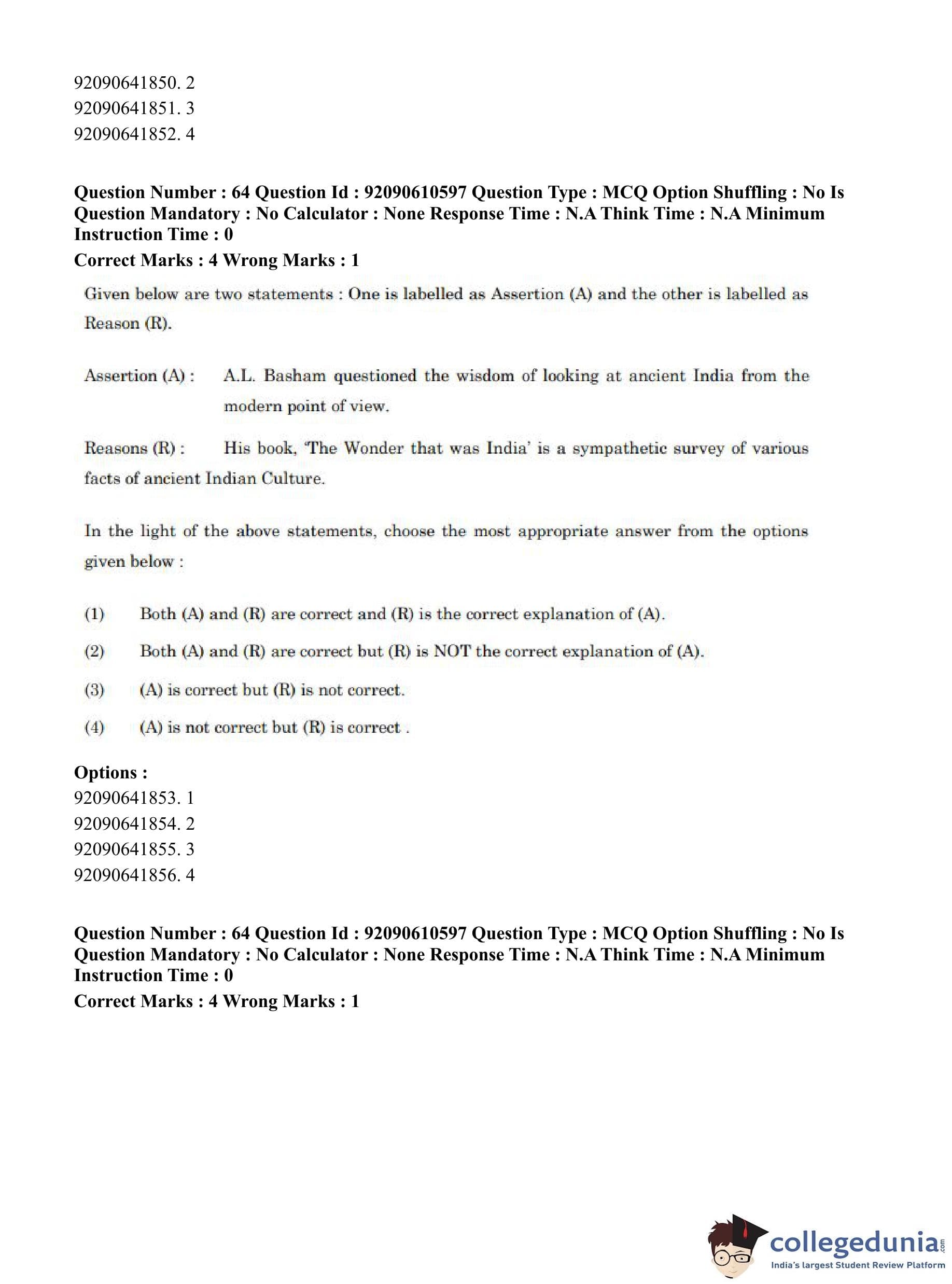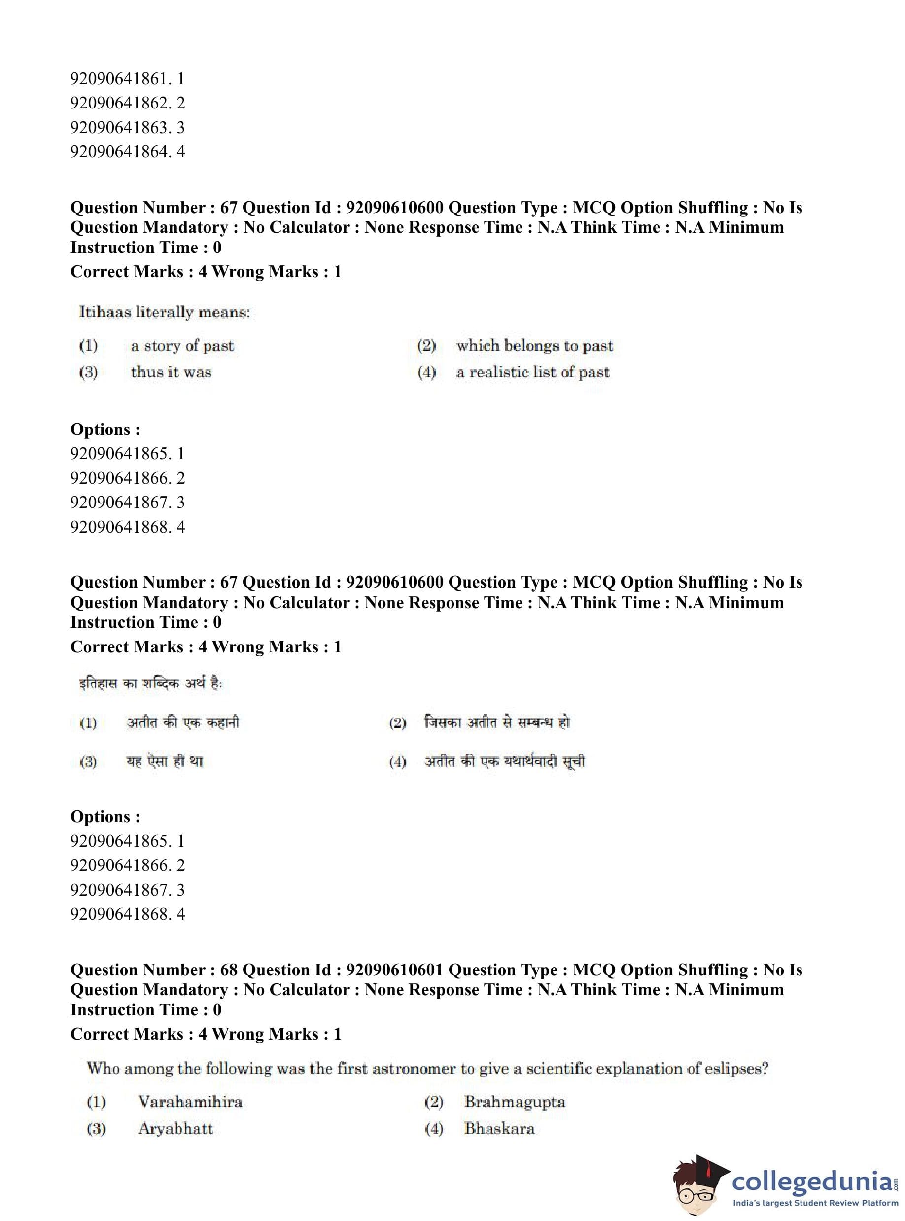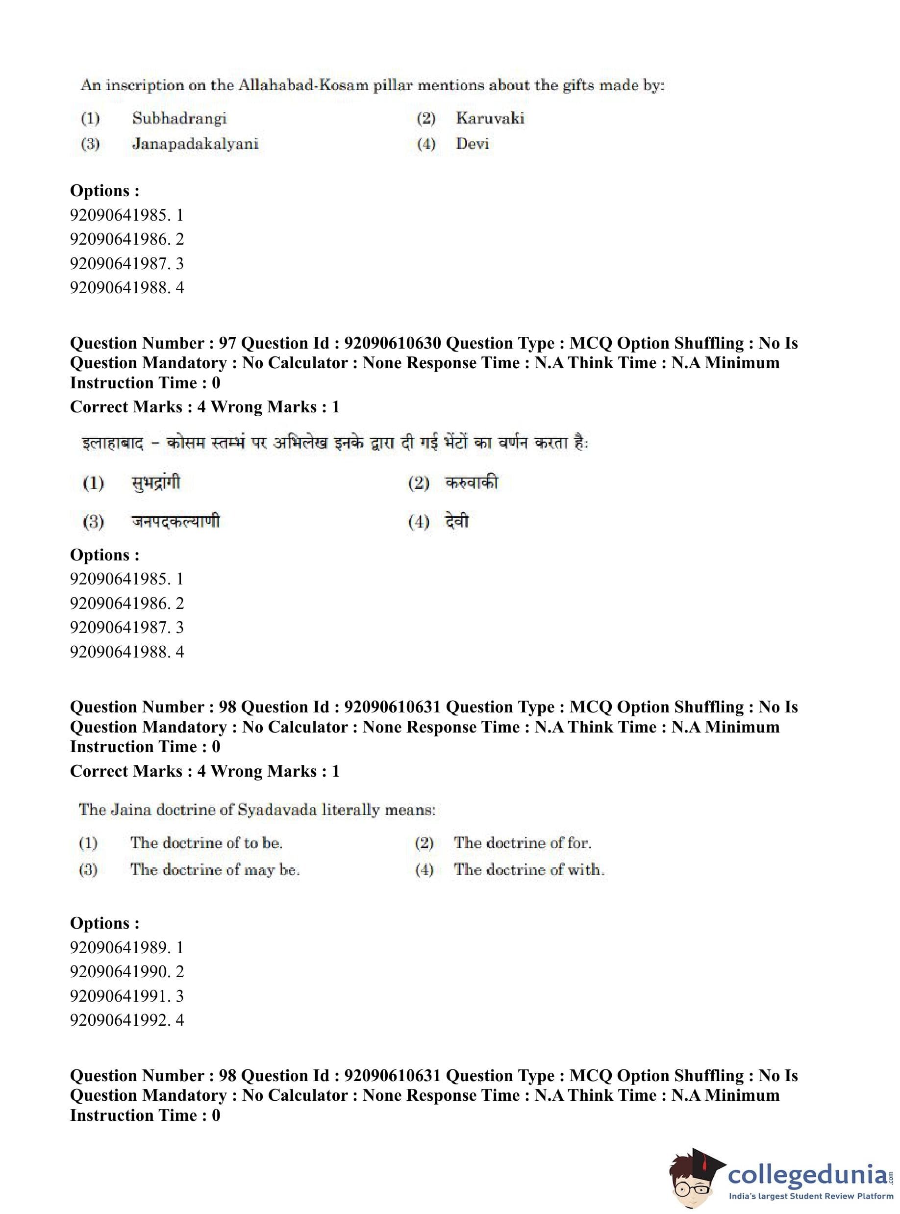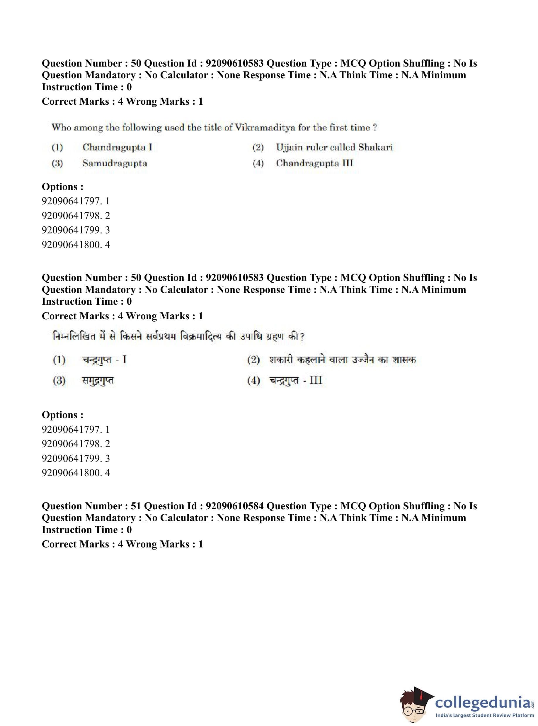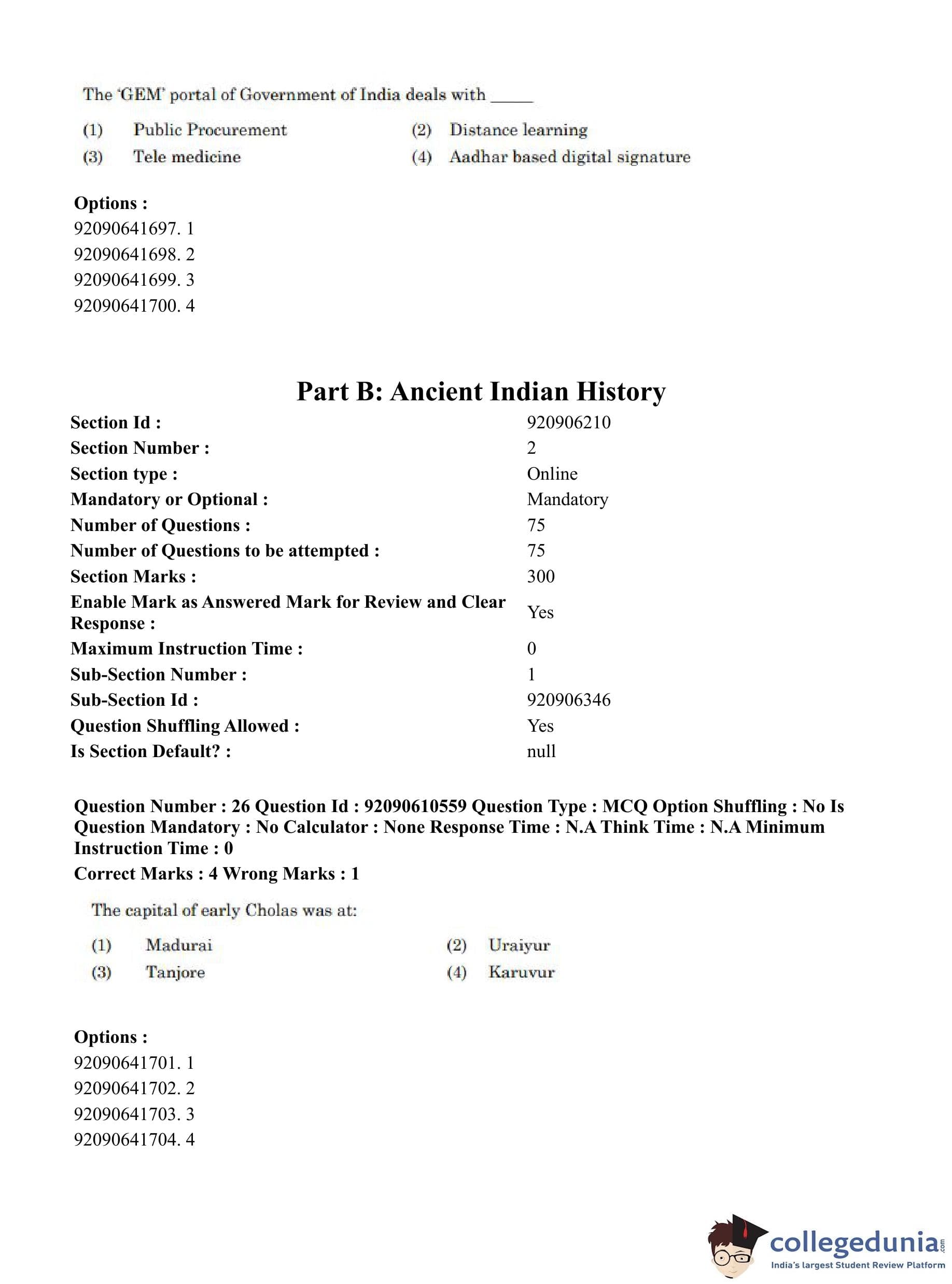 CUET PG 2023 Ancient Indian History Question Paper in English (June 10 - Shift 2)