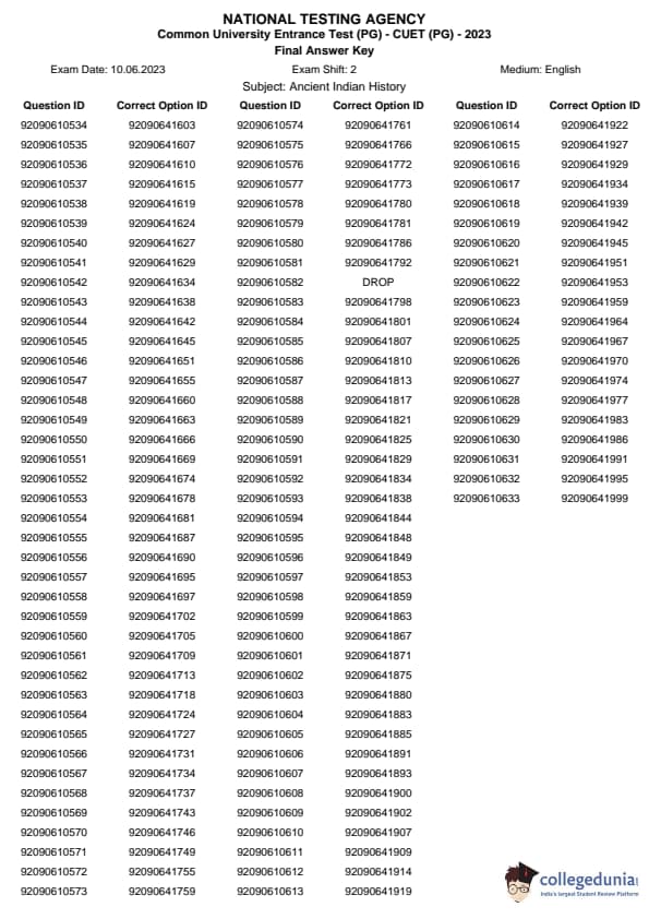 | CUET PG Ancient Indian History Question Paper 2023 PDF | CUET PG Ancient Indian History Answer Key 2023 PDF |